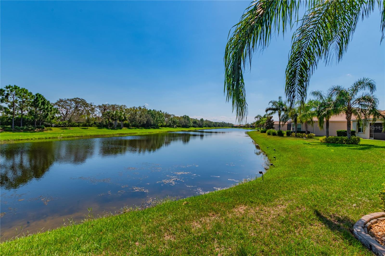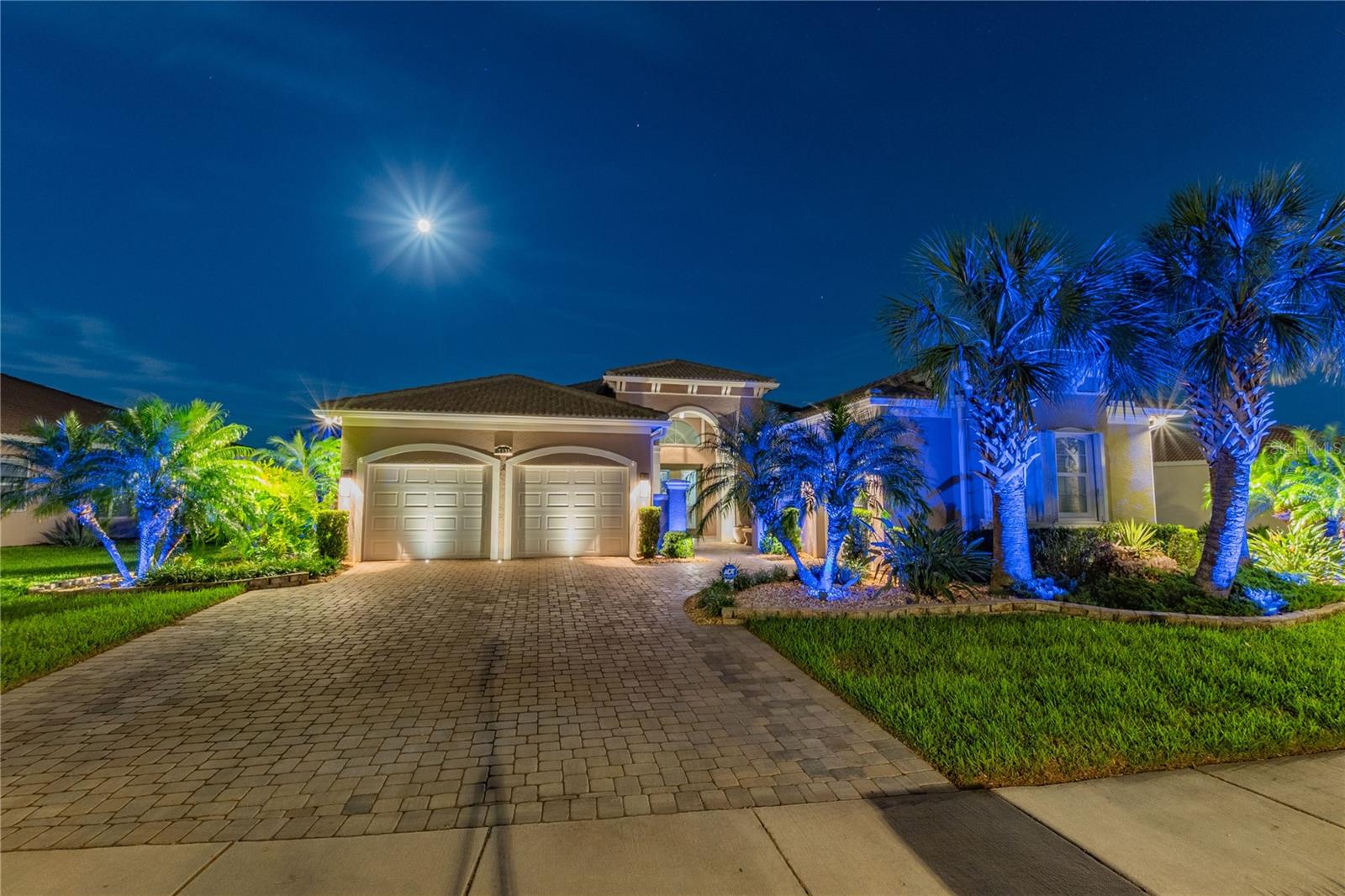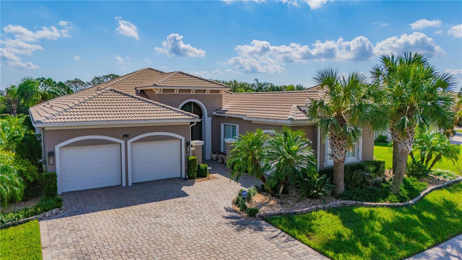 Experience luxury at its finest with this highly customized Carlyle model, located in Valencia Lakes, Tampa Bay's premier 55 plus resort community. This stunning home was built on one of the largest homesites in the community and showcases a "SPECTACULAR WATER VIEW" that will take your breath away! Notice the extended brick paver driveway, tile roof, lush landscaping, lighting and water feature that add a touch of elegance to the exterior. This 3 bedroom, plus large club room, 3.5 bathrooms, 3-car garage great room plan is loaded with extra features such as: New 80 gallon water heater, crown molding, designer lighting and ceiling fans, custom window treatments, stone/brick accents, custom trim work/wood paneling throughout, designer paint, epoxy garage floor, water softener system, reverse osmosis system, built-in closets, accordion storm shutters, gutters, belt drive garage opener, overhead garage storage racks, upgraded security system and more. As you enter this amazing home through the double impact glass decorative entry doors, you will notice the 16 ft. coffered ceiling, designer chandelier w/ custom medallion and stunning birch wood panel accents. The spacious great room is open to the kitchen, casual dining and the formal dining room giving this home an open and airy feeling. The great room features a coffered ceiling, a custom built-in with birch paneling, glass shelving and lighting. The wet bar has granite countertops, a sink and a beverage fridge. The large wine refrigerator is conveniently nestled into the niche next to the bar. 12 x24 Porcelain floor tile in all main living areas and LVP flooring in all bedrooms. No carpet anywhere. The 8 ft. sliders lead directly out to the extended covered screened lanai area, which includes large ceiling fans, exterior lighting and a long water view. The outdoor kitchen is every chef's dream with a granite bar top, large gas grill, Green Egg, sink and refrigerator. Making it the perfect indoor/outdoor living space for relaxing or entertaining. The high-end gourmet "eat-in" kitchen features a large center island with storage and a prep sink, granite countertops w/ 18" serving bar, 42" soft-close white painted maple cabinets, under/over cabinet lighting, designer metal backsplash, reverse osmosis system, cabinet pantry, roll out shelving, top of the line stainless steel appliances and more. For special occasions the formal dining room is located next to the kitchen for convenience and features designer wood barn doors, custom tin ceiling w/ faux paint, brick accent walls and custom lighting. The primary suite showcases a coffered ceiling with 2 large walk-in custom built-in closets, custom molding and trim work and sitting bay. The primary bath retreat has separate vanities, granite countertops, white maple cabinets, linen closet, walk-in shower with built-in seat/tile to the ceiling and a Roman tub. The 2nd and 3rd bedrooms are away from the primary suite and each have their own full baths, providing your guests with maximum privacy. The spacious club room is a multipurpose living space and features decorative ceiling beams (club room ceiling fan does not convey). The laundry room includes Samsung washer, dryer, sink and built-in storage cabinet. Come see for yourself and experience the resort style lifestyle today with a 40,000 clubhouse, 24 hr. fitness, pools, tennis, clubs, pickleball, bocce ball, clubs, live shows, arts and crafts, cooking classes, walking paths and so much more.