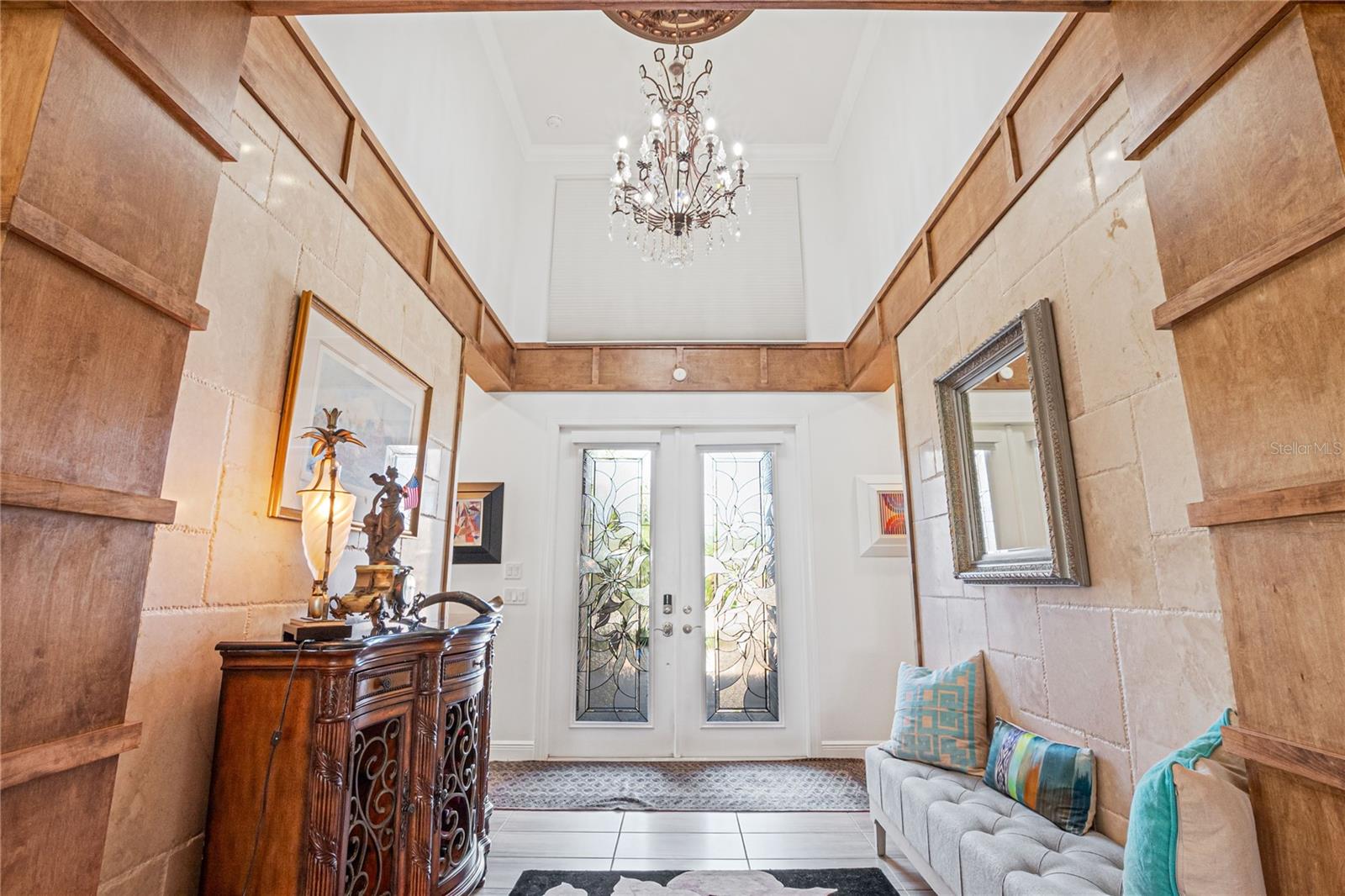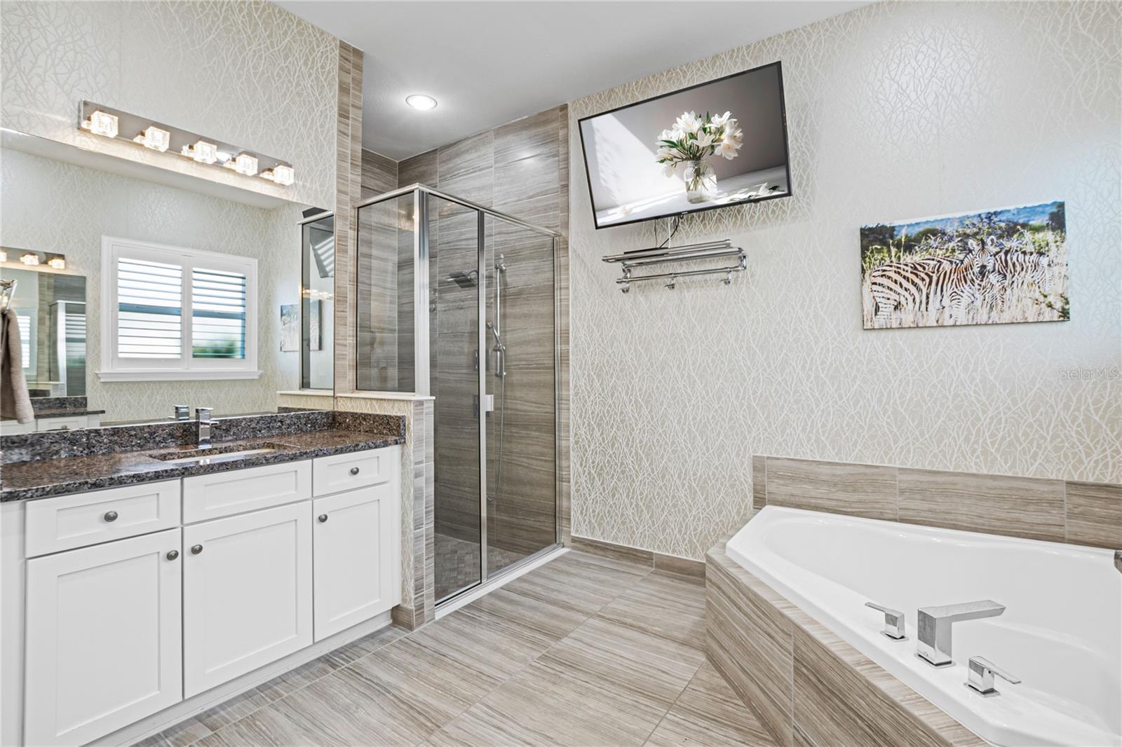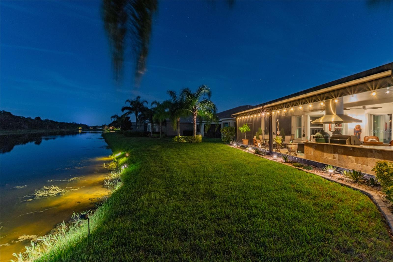 Experience luxury at its finest with this highly customized Carlyle model, located in Valencia Lakes, Tampa Bay's premier 55 plus resort community. This stunning home was built on one of the largest homesites in the community and showcases a "SPECTACULAR WATER VIEW" that will take your breath away! Notice the extended brick paver driveway, tile roof, lush landscaping, lighting and water feature that add a touch of elegance to the exterior. This 3 bedroom, plus large club room, 3.5 bathrooms, 3-car garage great room plan is loaded with extra features such as: New 80 gallon water heater, crown molding, designer lighting and ceiling fans, custom window treatments, stone/brick accents, custom trim work/wood paneling throughout, designer paint, epoxy garage floor, water softener system, reverse osmosis system, built-in closets, accordion storm shutters, gutters, belt drive garage opener, overhead garage storage racks, upgraded security system and more. As you enter this amazing home through the double impact glass decorative entry doors, you will notice the 16 ft. coffered ceiling, designer chandelier w/ custom medallion and stunning birch wood panel accents. The spacious great room is open to the kitchen, casual dining and the formal dining room giving this home an open and airy feeling. The great room features a coffered ceiling, a custom built-in with birch paneling, glass shelving and lighting. The wet bar has granite countertops, a sink and a beverage fridge. The large wine refrigerator is conveniently nestled into the niche next to the bar. 12 x24 Porcelain floor tile in all main living areas and LVP flooring in all bedrooms. No carpet anywhere. The 8 ft. sliders lead directly out to the extended covered screened lanai area, which includes large ceiling fans, exterior lighting and a long water view. The outdoor kitchen is every chef's dream with a granite bar top, large gas grill, Green Egg, sink and refrigerator. Making it the perfect indoor/outdoor living space for relaxing or entertaining. The high-end gourmet "eat-in" kitchen features a large center island with storage and a prep sink, granite countertops w/ 18" serving bar, 42" soft-close white painted maple cabinets, under/over cabinet lighting, designer metal backsplash, reverse osmosis system, cabinet pantry, roll out shelving, top of the line stainless steel appliances and more. For special occasions the formal dining room is located next to the kitchen for convenience and features designer wood barn doors, custom tin ceiling w/ faux paint, brick accent walls and custom lighting. The primary suite showcases a coffered ceiling with 2 large walk-in custom built-in closets, custom molding and trim work and sitting bay. The primary bath retreat has separate vanities, granite countertops, white maple cabinets, linen closet, walk-in shower with built-in seat/tile to the ceiling and a Roman tub. The 2nd and 3rd bedrooms are away from the primary suite and each have their own full baths, providing your guests with maximum privacy. The spacious club room is a multipurpose living space and features decorative ceiling beams (club room ceiling fan does not convey). The laundry room includes Samsung washer, dryer, sink and built-in storage cabinet. Come see for yourself and experience the resort style lifestyle today with a 40,000 clubhouse, 24 hr. fitness, pools, tennis, clubs, pickleball, bocce ball, clubs, live shows, arts and crafts, cooking classes, walking paths and so much more.