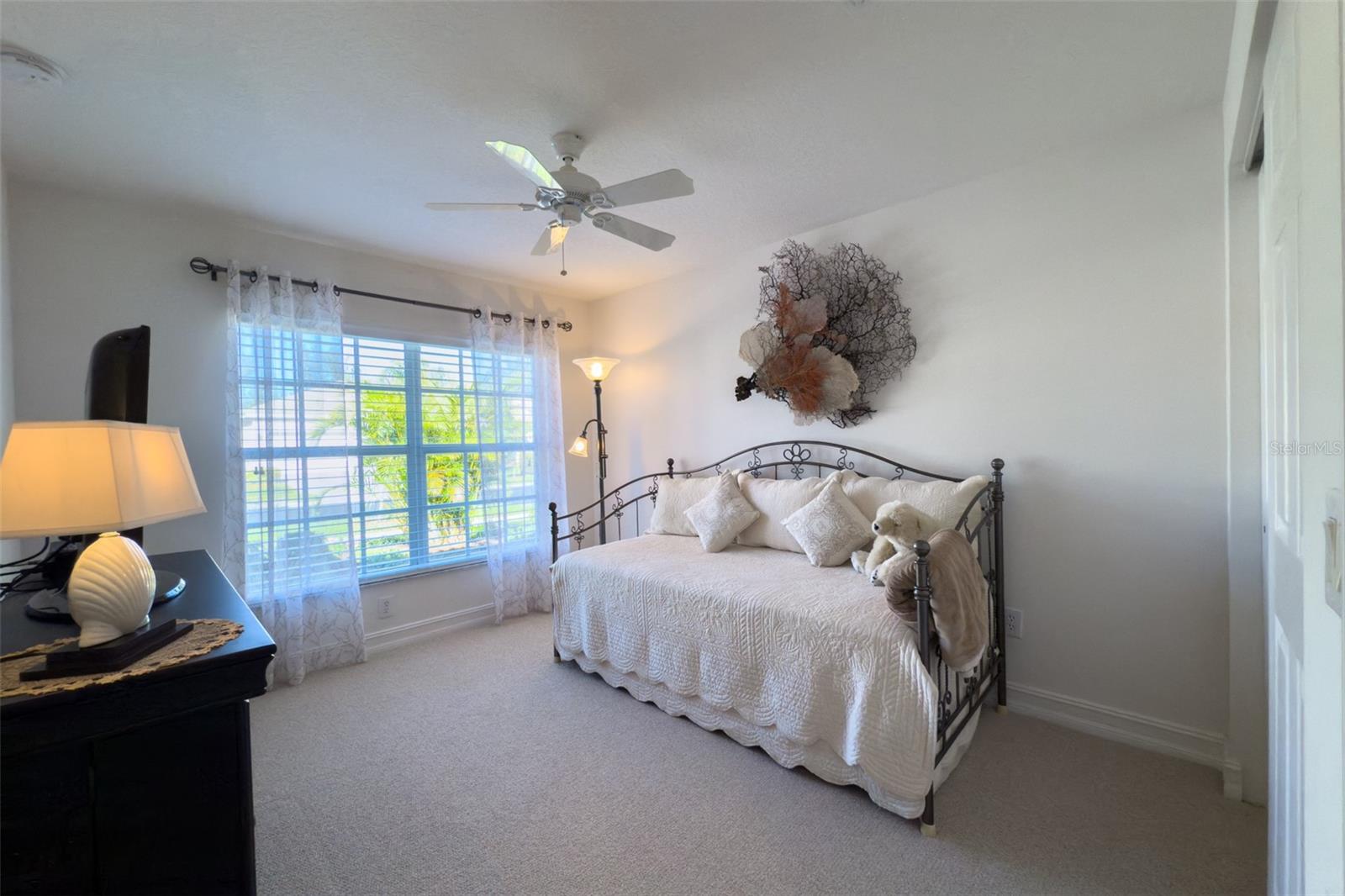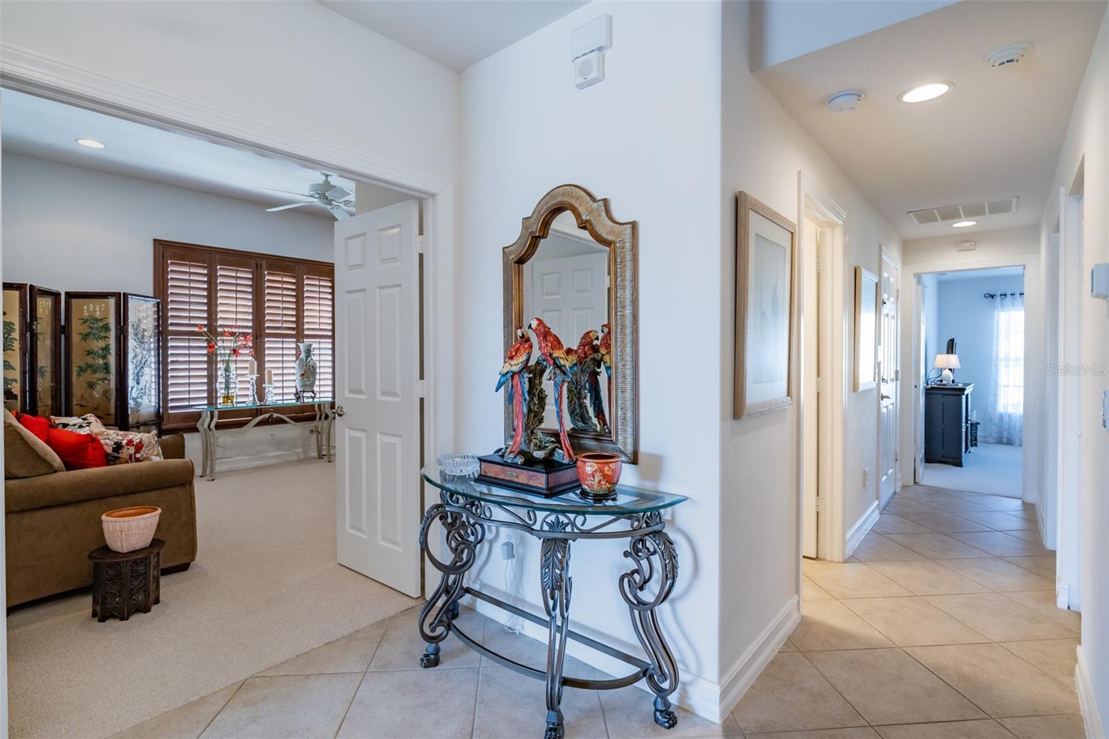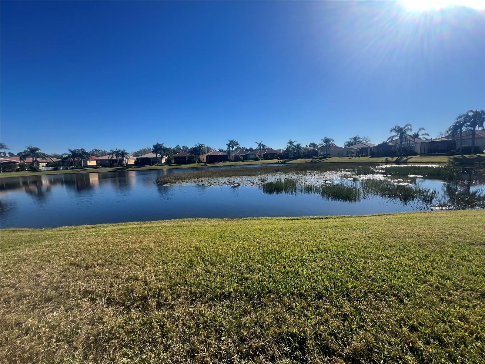Seize the day and make this GL Homes POSITANO your oasis. The eco-friendly littoral shelf water view will make for some of the most amazing opportunities to see Florida’s beautiful fauna and wildlife. Located in Valencia Lakes, Tampa Bay’s premier 55+ Active Adult community, this 1,986 POSITANO offers 2 bedrooms, an office, an expansive open floorplan featuring a large kitchen, dining room, great room and a spectacular backyard space featuring a lanai and open-air patio. Take note of the pristine barrel-tile roof, gutters fore and aft, anchors for hurricane shutters, and sophisticated exterior lighting that lights up your approach. Inside and out, this POSITANO exudes outstanding quality. Entering the home, you will be welcomed into a tall 10’-11’ foyer adorned with a rich traditional chandelier, and an all-encompassing view of the open floorplan and the spectacular water view. Floors throughout are 17”x17” ceramic tile on the diagonal, capped by 5½” baseboards. Left of the foyer is an expansive eat-in kitchen that affords ample space for the Chef and Sous-Chef too. Solid 42” Maple wood cabinets abound; lower cabinets are topped by luxurious granite counters and a mosaic stone backsplash; upper cabinets are accented with under/over cabinet lighting. The GE Profile stainless-steel appliances will surpass all your needs. The dinette has two windows adorned with elegant drapes and provides a wonderful space for daily or intimate meals. Forward of the foyer is an inviting dining room with an 8’ window providing abundant natural light, and the traditional chandelier will make this space glow at night. Forward of the dining room is a spacious great room that features a 58" lighted ceiling fan, and a three-panel 12’ wide slider that provides access to the lanai, open-air patio, and an incredible water view. It’s the perfect space to live outdoors. Right of the foyer is the office/den. Double French-doors, a large window with plantation shutters, 4 recessed lights and a ceiling fan make this a great flex room to use as you choose. The primary bedroom is at the rear of the home and presents exceptional privacy and comfort. The ensuite features double vanities with granite counters, an expansive mirror, a jetted ROMAN tub, a large walk-in shower, and a W/C for the commode. Comfort, quality, style, and practicality make the primary suite a true retreat. A second bedroom with new carpet is at the front of the home and features a ceiling fan and it will be fully appreciated by your family and guests. Environmental comforts are ensured by the 3.5-ton HVAC, and a Culligan water softener system. This POSITANO is certain to meet all your needs and desires. This sought-after community has an amazing 40,000 sq ft clubhouse offering entertainment shows, dances, myriad clubs, a state-of-the heart 24/7 Fitness Center, resort pool, lap pool, exercise classes, card rooms, pickleball, tennis and much more. Conveniently located to hospitals, Downtown Tampa, Tampa airport, and a short drive to Disney, Cruise Ports, Sarasota and some of the best beaches in the country! Come and enjoy elegant comfort and live out your idyllic life in this special home.