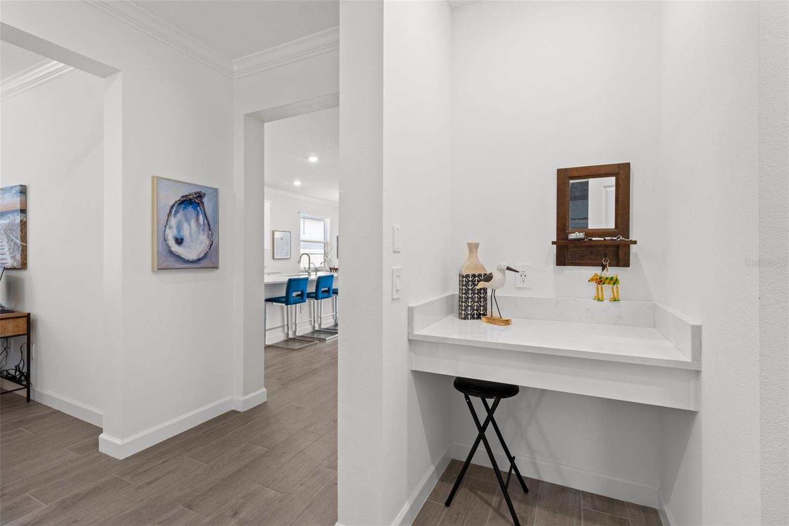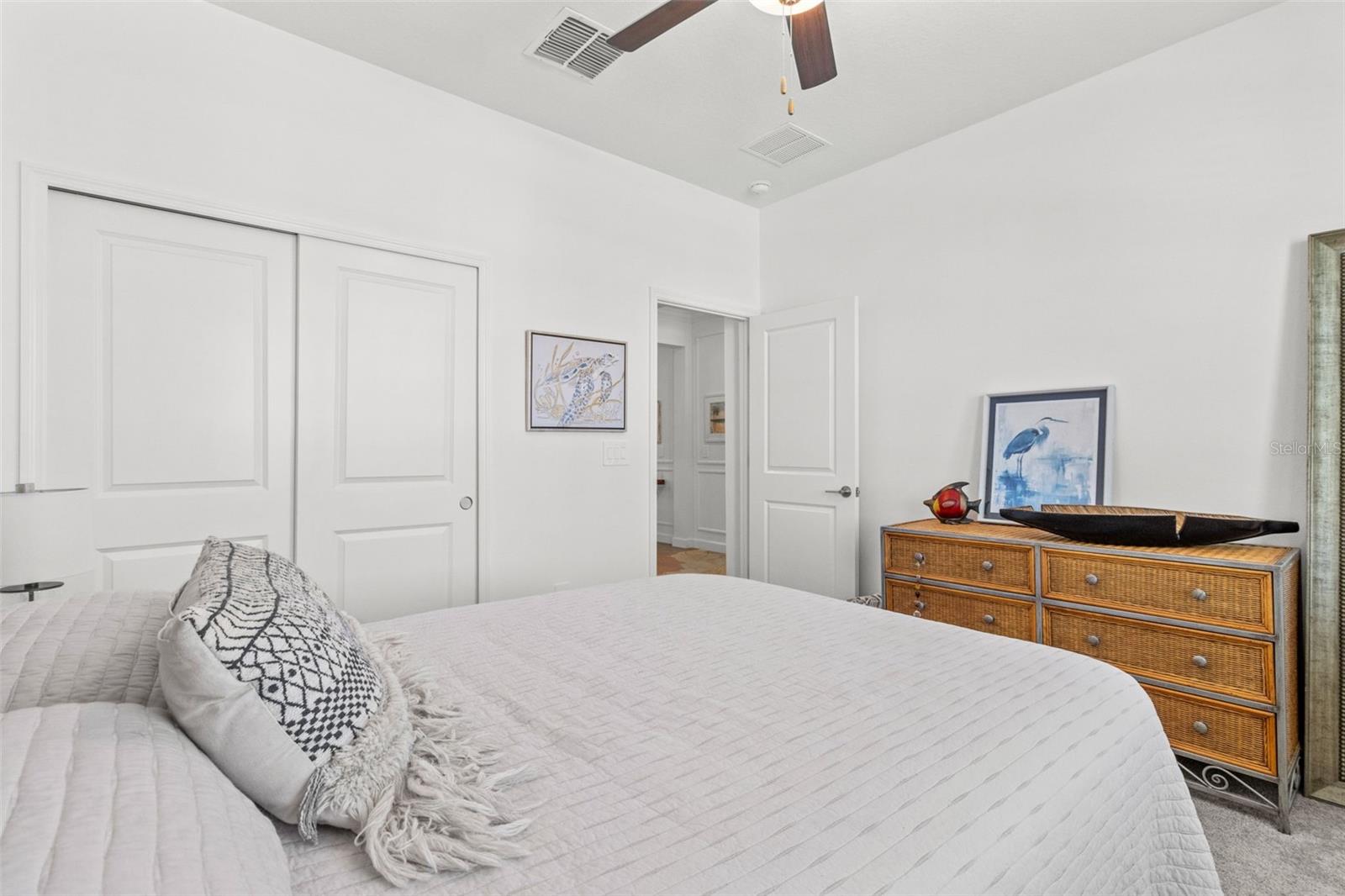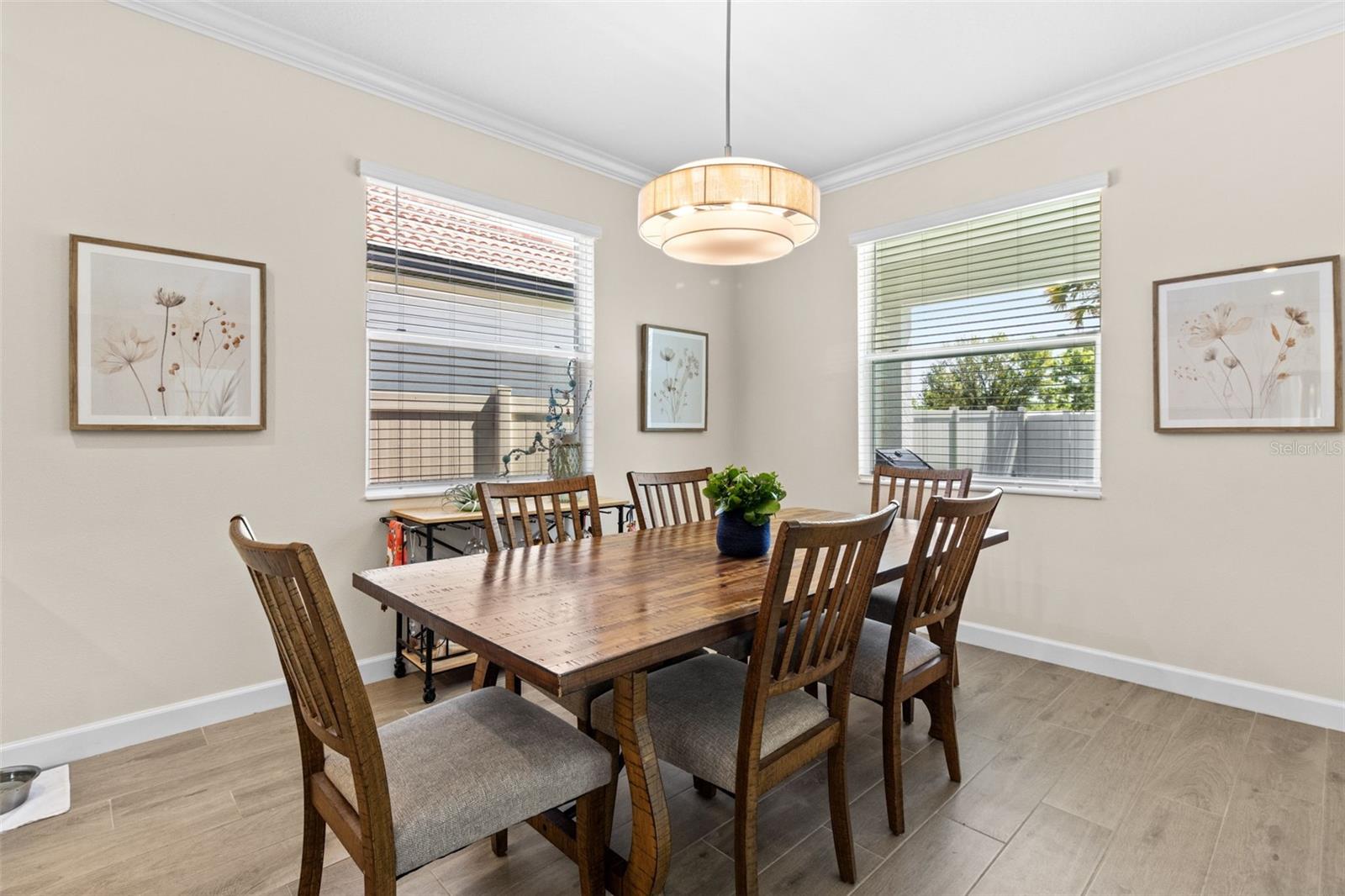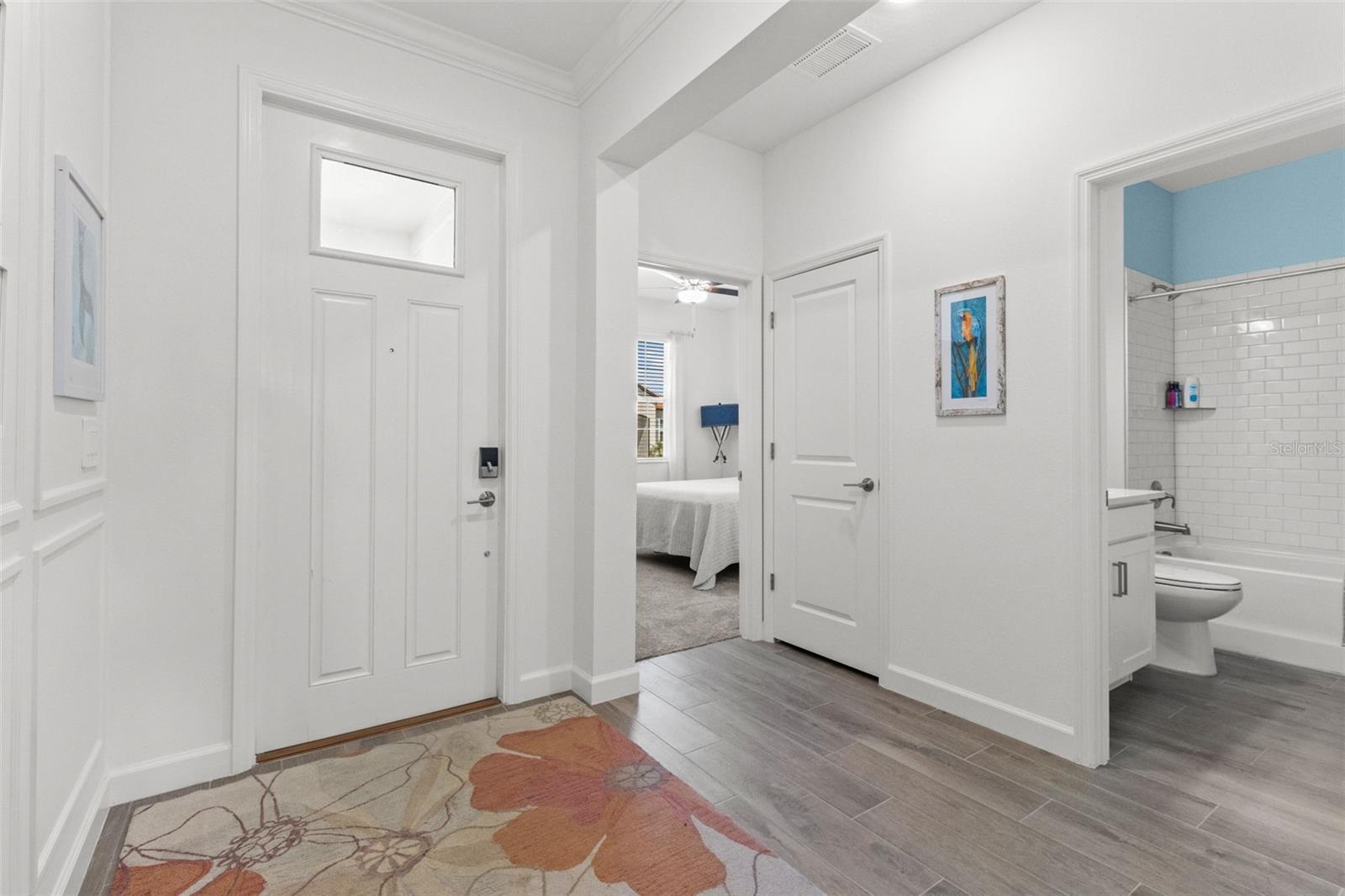 Elegant and professionally decorated 2-bedroom, 2-bathroom home with a flex room (easily converts to a spacious 3rd bedroom) in Medley at South Shore Bay, a premier 55+ gated community. Built in 2024, this move-in-ready home features an open-concept layout with soaring ceilings, abundant natural light, and custom moldings throughout. The chef’s kitchen includes upgraded appliances such as an LG French door refrigerator with craft ice, a 5-burner KitchenAid gas stove, a large breakfast bar, and a spacious dining area that opens to the main living space—ideal for entertaining. The owner’s suite is located at the rear of the home and includes a spa-style bath and walk-in closet. The second bedroom is positioned at the front, along with a flex room that can serve as a third bedroom, office, or hobby space. A screened lanai opens to a private backyard featuring a brand-new 6' vinyl privacy fence. Additional highlights include a paver driveway, two-car garage with golf cart space, oversized laundry room, enhanced security system, designer lighting, and professionally landscaped exterior. Enjoy resort-style amenities including a clubhouse, pool, fitness center, sports courts, walking trails, and a 5.5-acre crystal lagoon for kayaking, paddleboarding, and relaxing. Located in Wimauma near Sun City Center, shopping, dining, healthcare, and outdoor recreation. Experience luxury low-maintenance living in one of Tampa Bay’s most vibrant 55+ communities.