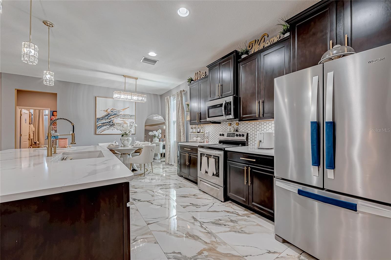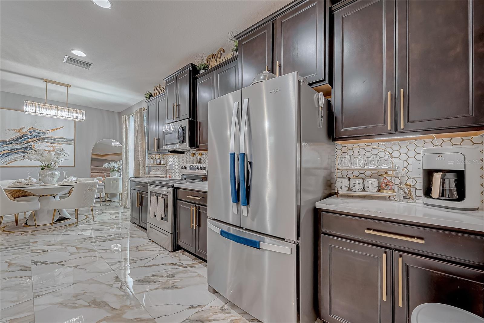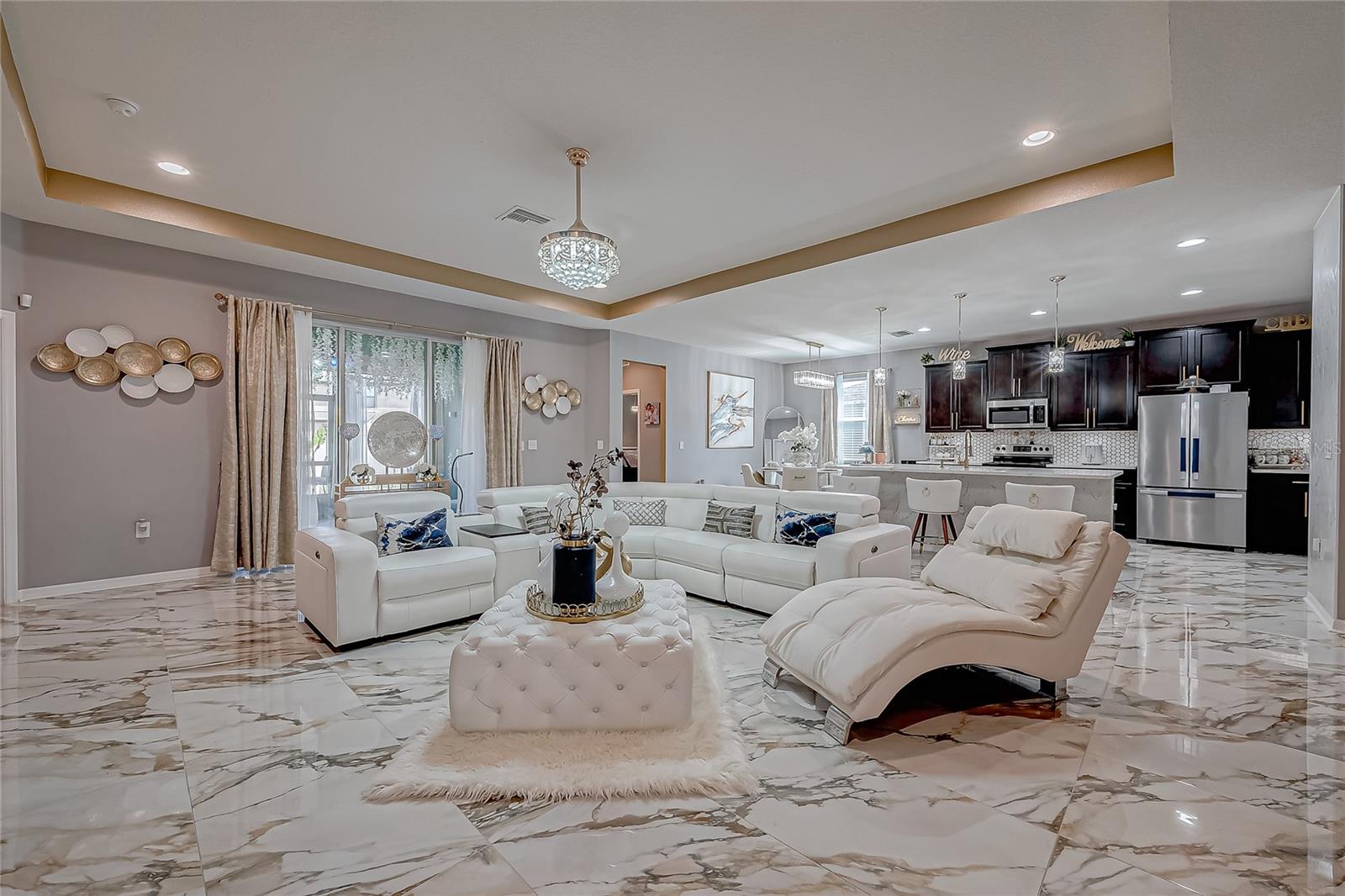 Stunning Home with an amazing price in Sereno Gated Community. Impeccable Design and Exceptional Features! This immaculate 4 bedrooms, 3 full bathrooms house offers over 2,300 Sq.Ft. Of exquisite living space, blending elegance with modern comfort. From the moment you step inside, you'll be captivated by its model-home appearance enhanced by beautiful ceramic tile floors, nice wall accents, and stunning light fixtures throughout. The spacious living room boats soaring tray ceiling, filling the space with natural light and charm. The formal dining room is perfect for entertaining, while the spectacular kitchen features a long, elegant island, high-end stainless stell appliances, tall caninetry, and cozy breakfast nook for casual meals. The Home's meticulous decor creates an inviting atmosphete, with every detail carefully curated, from the tastefull paint choices to the luxurious lighting fixtures. The bedrooms are spaciuos and serene, and the bathrooms are beautiful appointed with modern finishes.Step outside to a large open patio with breathtaking views, complemented by a charming enclosed covered patio, perfect for relaxing or entertaining guests. Addidional conveniences incluide a well-designed laundry room and three car garage. Located in a tranquil Sereno gated community with top-notch amenities, including a clubhouse, swimming pool, tennis courts, racquetball courts, playground, dog park, and scenic walking trails. The HOA includes high speed WiFi, and TV cable service. Conveniently close to supermarkets, banks, hospitals, major highways, downtown and more. This home offersthe best of Florida living. Don't miss this opportunity to own a truly spectacular home that feels like a model residence from the moment you walk in!