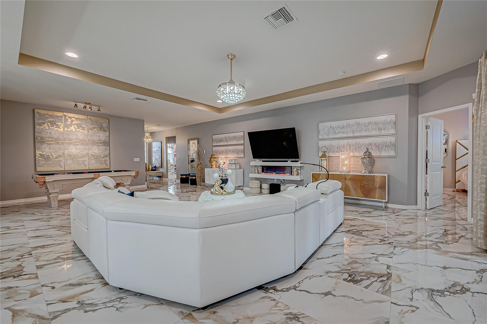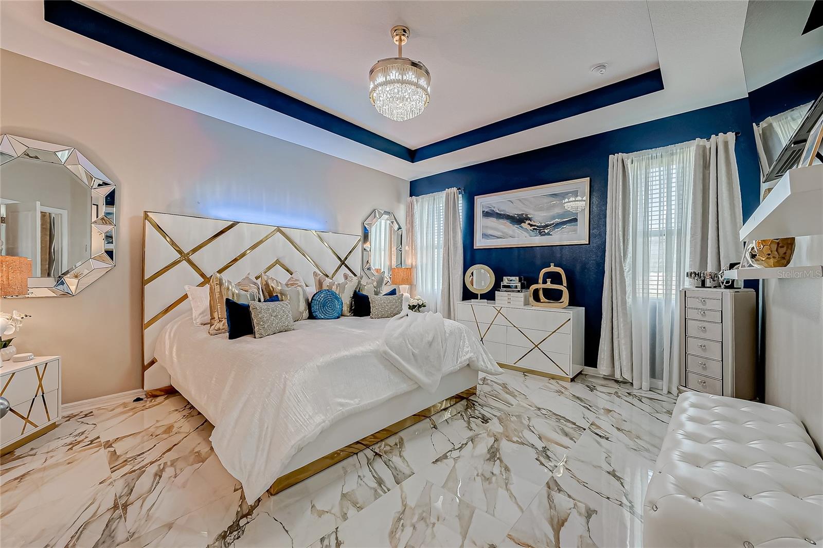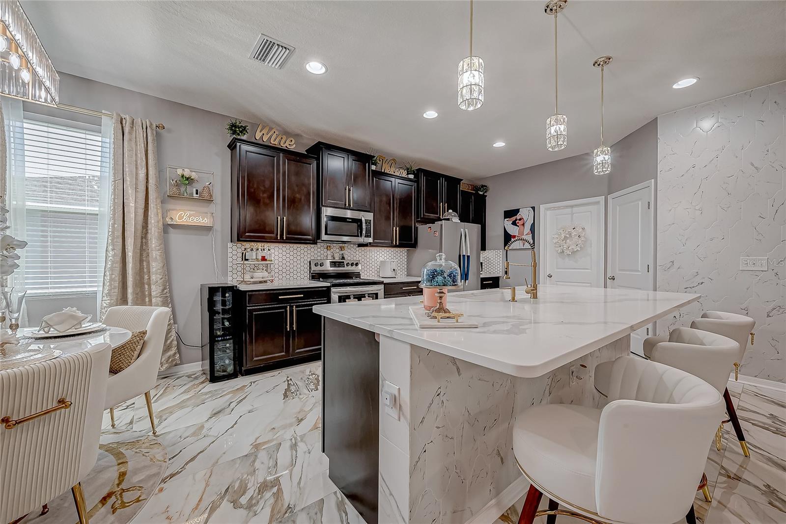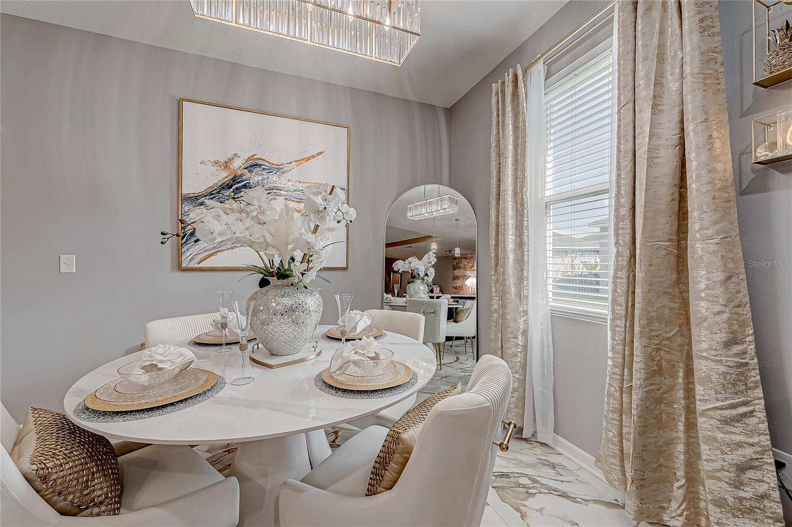 Stunning Home with an amazing price in Sereno Gated Community. Impeccable Design and Exceptional Features! This immaculate 4 bedrooms, 3 full bathrooms house offers over 2,300 Sq.Ft. Of exquisite living space, blending elegance with modern comfort. From the moment you step inside, you'll be captivated by its model-home appearance enhanced by beautiful ceramic tile floors, nice wall accents, and stunning light fixtures throughout. The spacious living room boats soaring tray ceiling, filling the space with natural light and charm. The formal dining room is perfect for entertaining, while the spectacular kitchen features a long, elegant island, high-end stainless stell appliances, tall caninetry, and cozy breakfast nook for casual meals. The Home's meticulous decor creates an inviting atmosphete, with every detail carefully curated, from the tastefull paint choices to the luxurious lighting fixtures. The bedrooms are spaciuos and serene, and the bathrooms are beautiful appointed with modern finishes.Step outside to a large open patio with breathtaking views, complemented by a charming enclosed covered patio, perfect for relaxing or entertaining guests. Addidional conveniences incluide a well-designed laundry room and three car garage. Located in a tranquil Sereno gated community with top-notch amenities, including a clubhouse, swimming pool, tennis courts, racquetball courts, playground, dog park, and scenic walking trails. The HOA includes high speed WiFi, and TV cable service. Conveniently close to supermarkets, banks, hospitals, major highways, downtown and more. This home offersthe best of Florida living. Don't miss this opportunity to own a truly spectacular home that feels like a model residence from the moment you walk in!