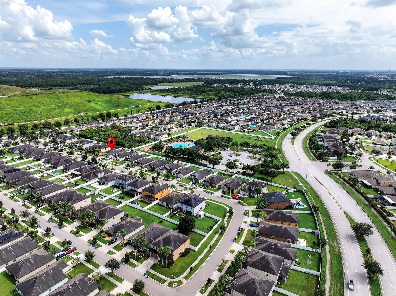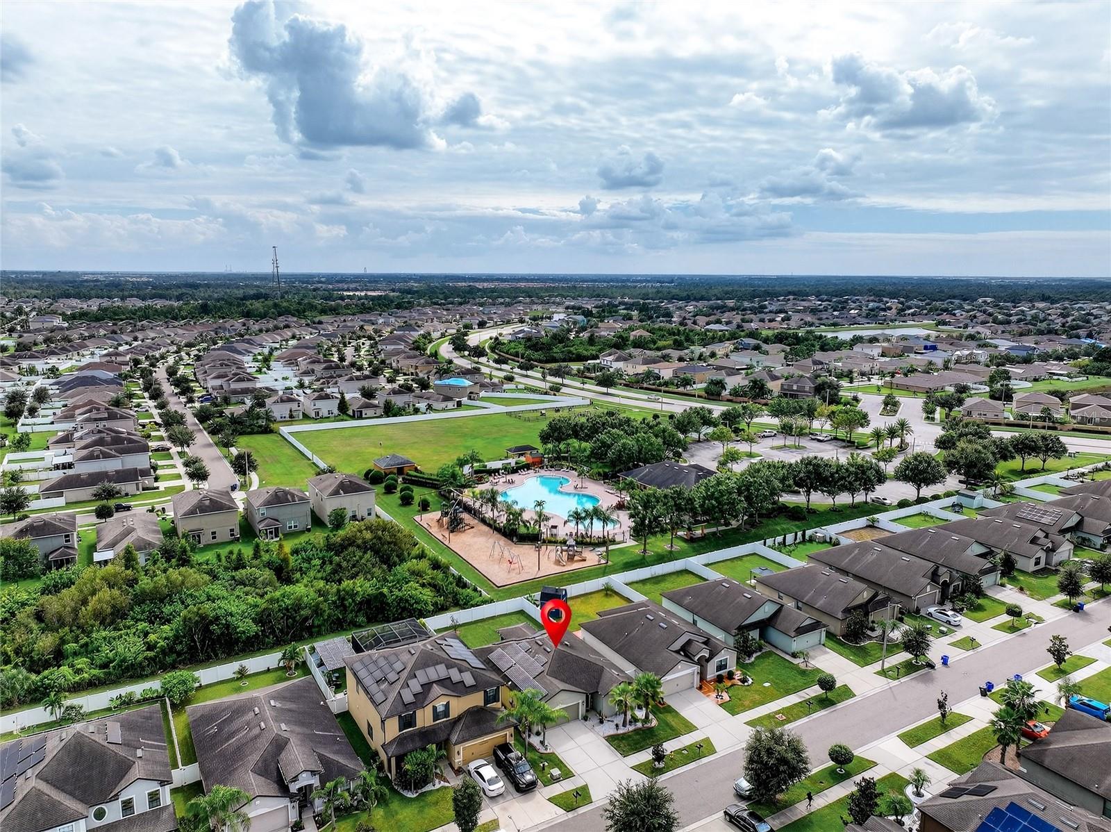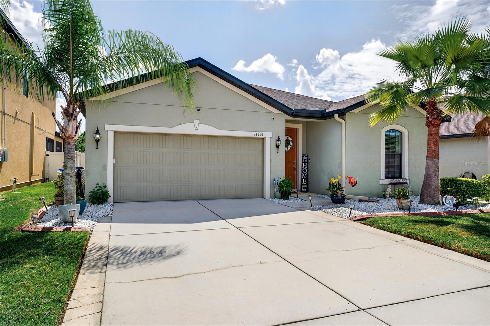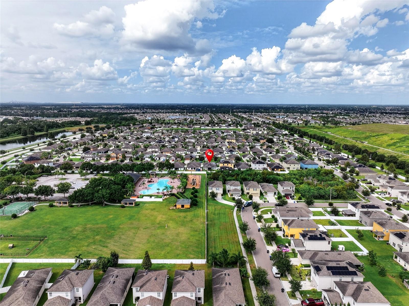 A priced right must see in an amazing community that offers excellent amenities including a sparkling resort style pool with a clubhouse, playground, fitness center, and walking trails. This stunning and immaculate 2017 built home offers a split floor plan for privacy with 3 bedrooms and 2 full baths. The mature and well-maintained landscape boasts beautiful palm trees and lawn. The open floor plan features a spacious living room and dining room/kitchen combo with vaulted ceilings and porcelain tile throughout. The kitchen has beautiful white cabinets, stainless steel appliances, walk-in pantry and a kitchen island with dual sinks for cooking and entertaining. From the dining room you enter the backyard through sliding doors into a screened and covered lanai to enjoy the peaceful fully fenced yard. The generous size master bedroom located in the back of the home for additional privacy has two walk-in closets with an en-suite master bath featuring dual sinks, private lav and walk-in tile shower. The laundry room is conveniently located right down the hall near the two additional spacious bedrooms along with the additional full bathroom with a bathtub. The home also features fully paid for solar panels that convey so you can enjoy minimal electricity cost. Don't miss the opportunity to make this beautiful home your own. Preferred lender offering $2,000 credit to be used toward one year rate buydown.