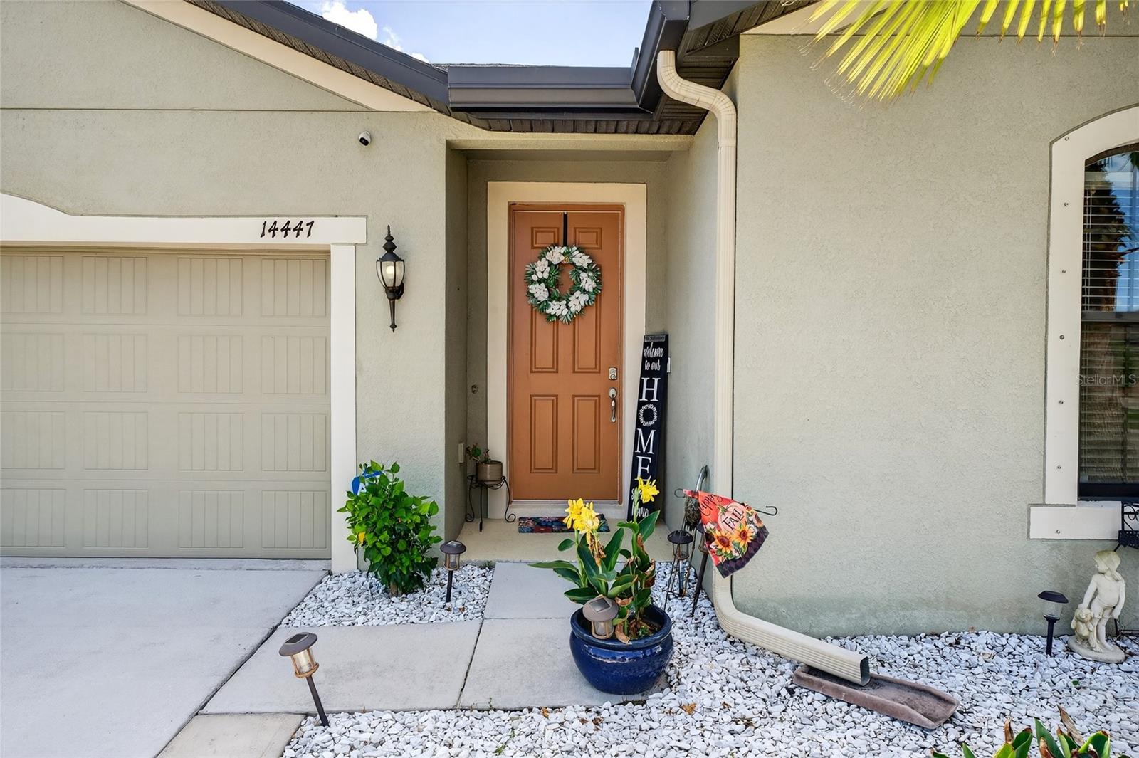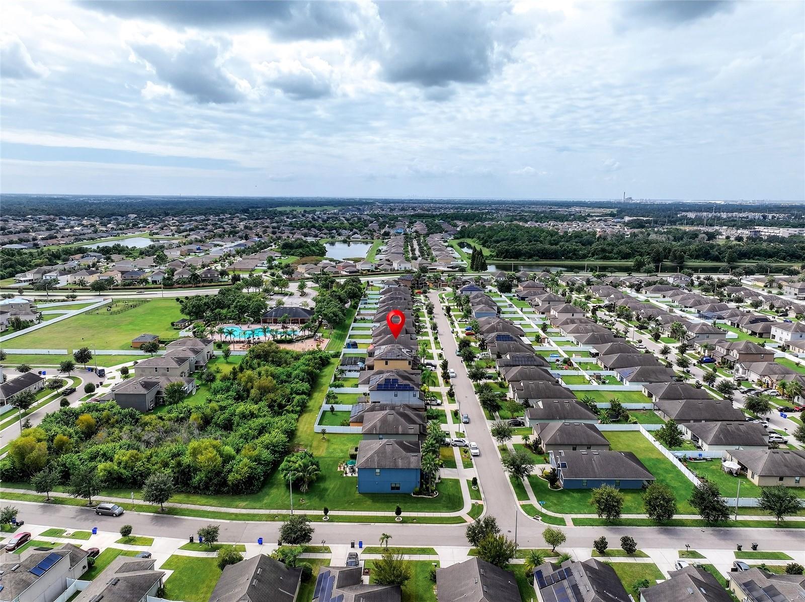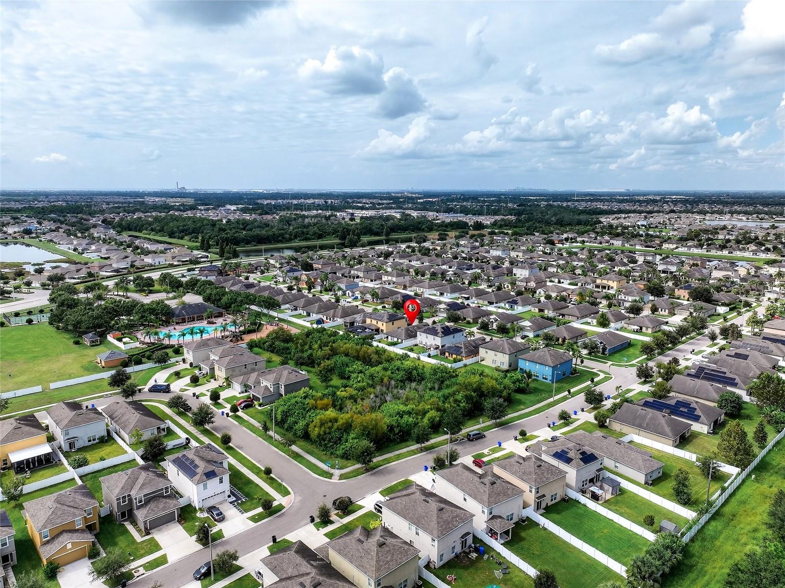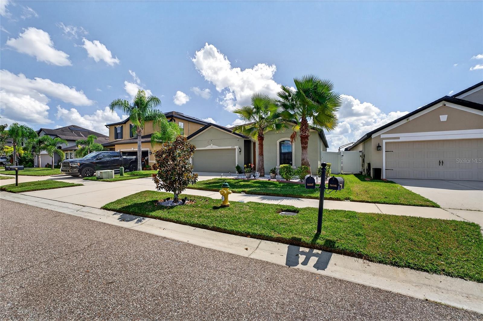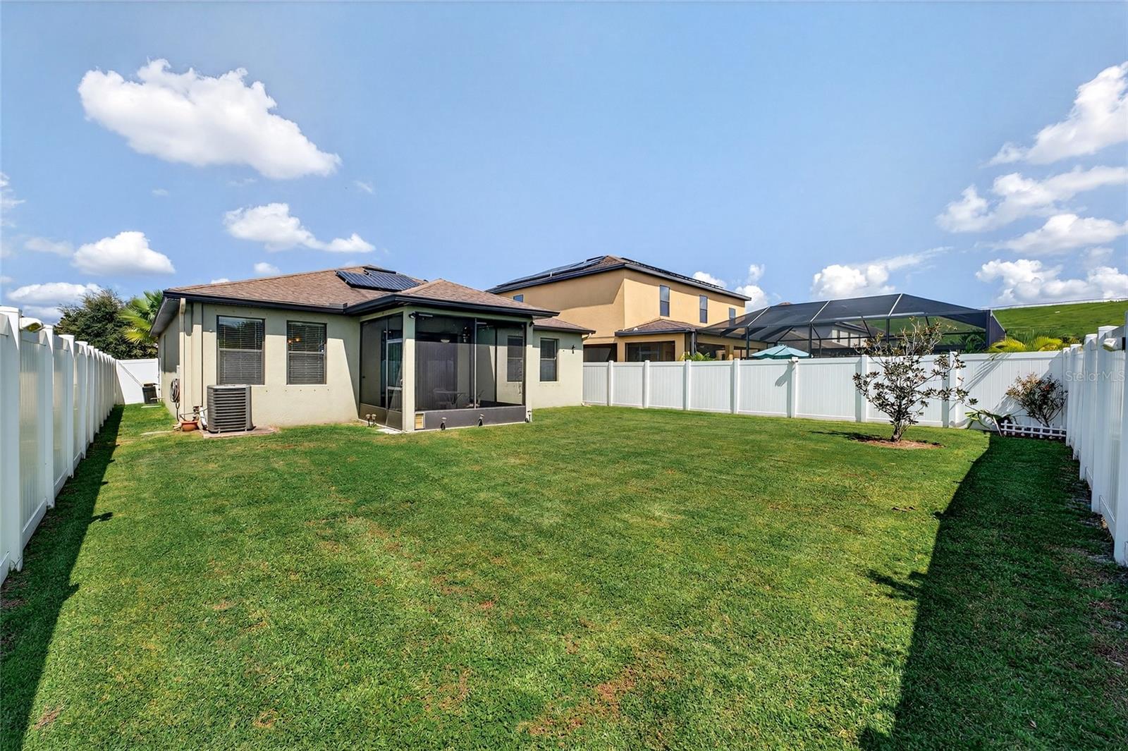 A priced right must see in an amazing community that offers excellent amenities including a sparkling resort style pool with a clubhouse, playground, fitness center, and walking trails. This stunning and immaculate 2017 built home offers a split floor plan for privacy with 3 bedrooms and 2 full baths. The mature and well-maintained landscape boasts beautiful palm trees and lawn. The open floor plan features a spacious living room and dining room/kitchen combo with vaulted ceilings and porcelain tile throughout. The kitchen has beautiful white cabinets, stainless steel appliances, walk-in pantry and a kitchen island with dual sinks for cooking and entertaining. From the dining room you enter the backyard through sliding doors into a screened and covered lanai to enjoy the peaceful fully fenced yard. The generous size master bedroom located in the back of the home for additional privacy has two walk-in closets with an en-suite master bath featuring dual sinks, private lav and walk-in tile shower. The laundry room is conveniently located right down the hall near the two additional spacious bedrooms along with the additional full bathroom with a bathtub. The home also features fully paid for solar panels that convey so you can enjoy minimal electricity cost. Don't miss the opportunity to make this beautiful home your own. Preferred lender offering $2,000 credit to be used toward one year rate buydown.