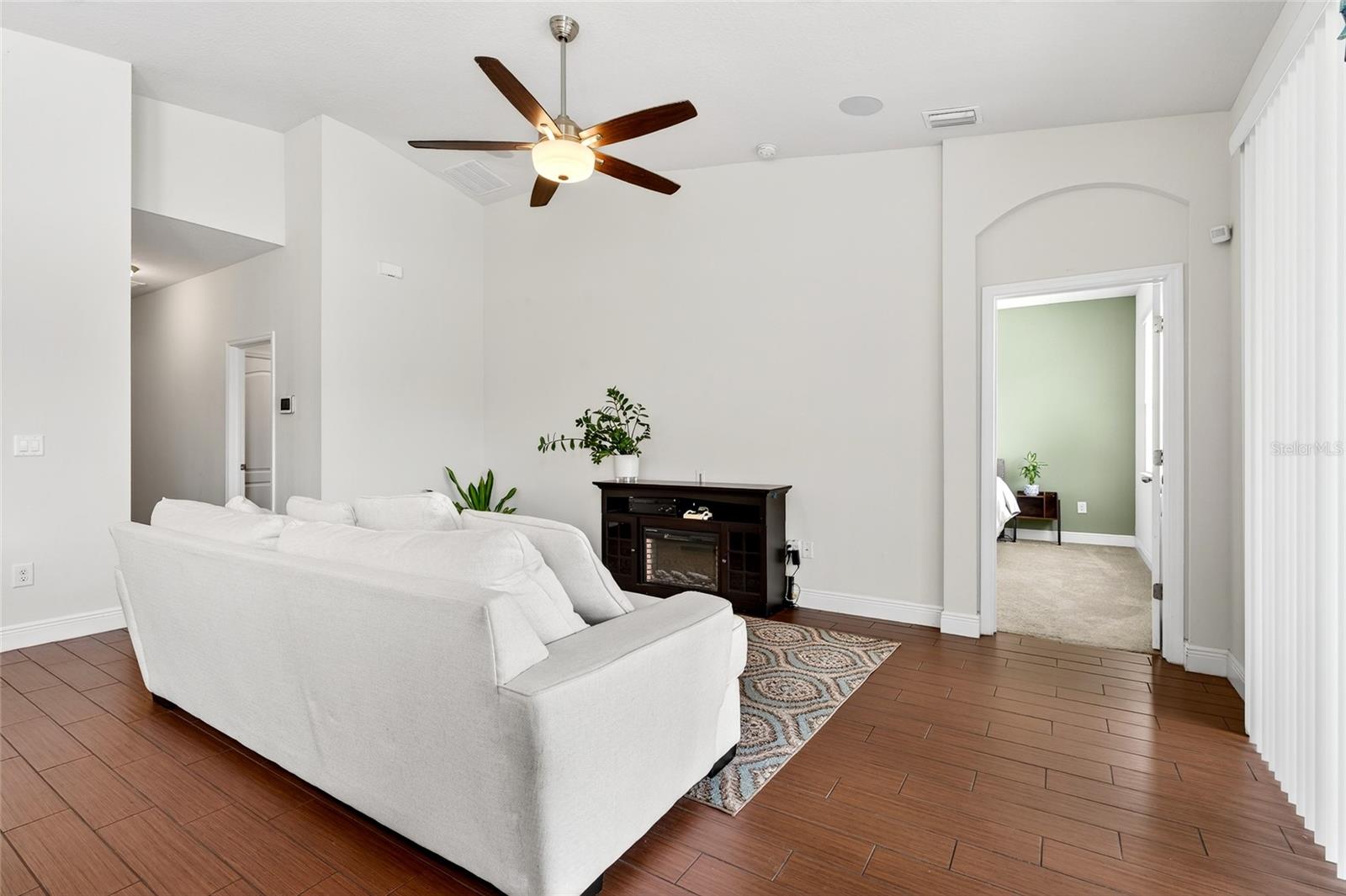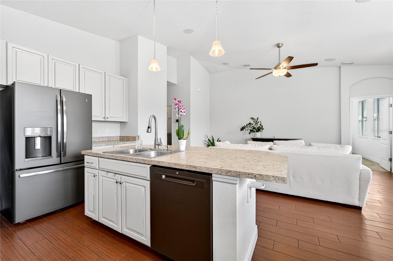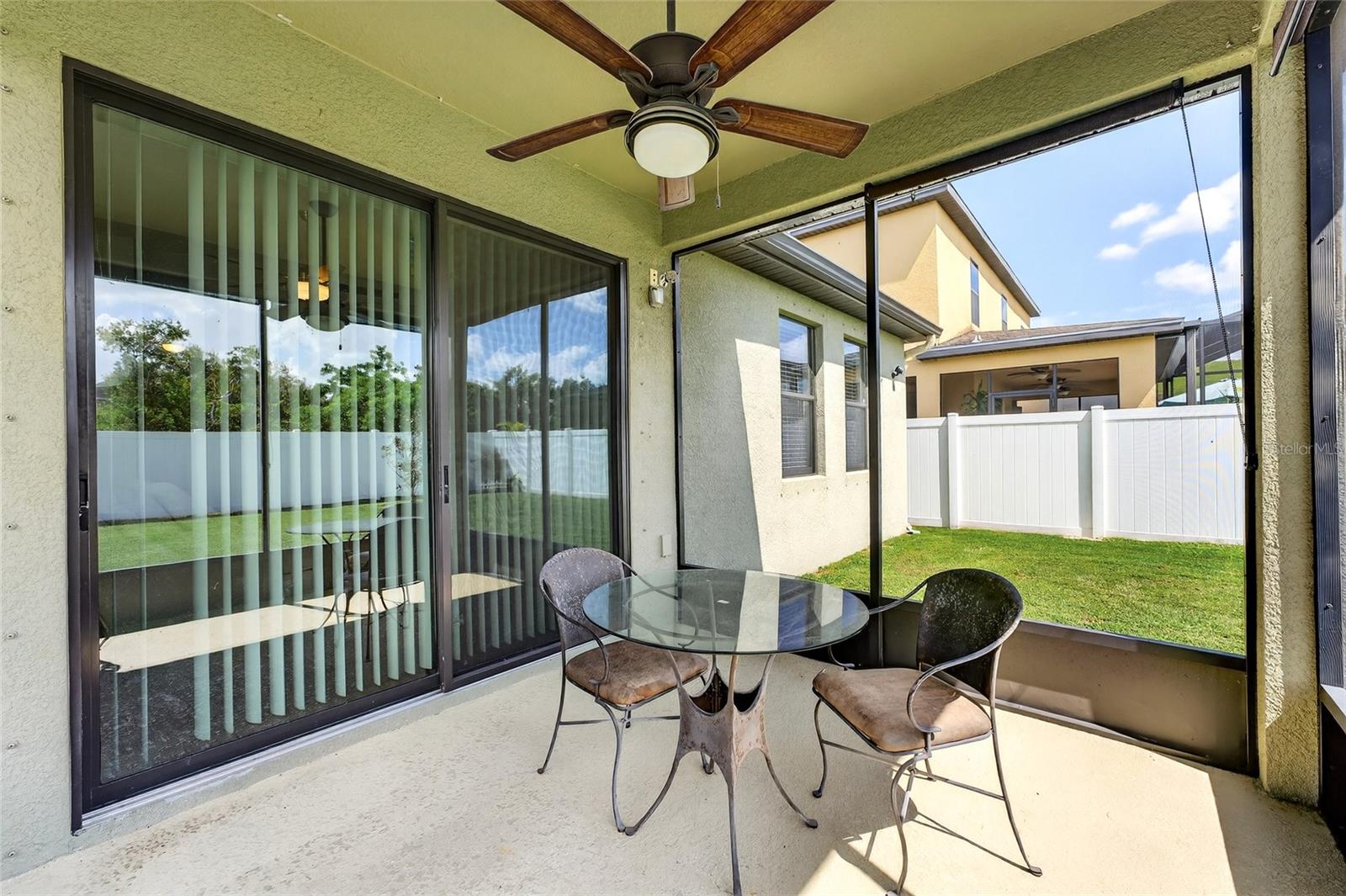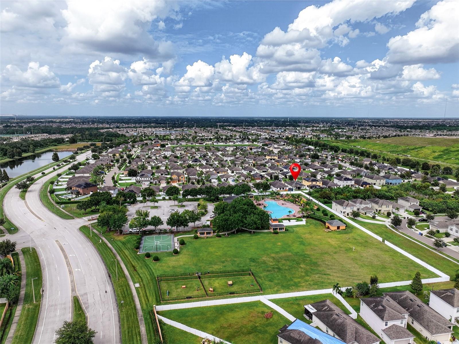 A priced right must see in an amazing community that offers excellent amenities including a sparkling resort style pool with a clubhouse, playground, fitness center, and walking trails. This stunning and immaculate 2017 built home offers a split floor plan for privacy with 3 bedrooms and 2 full baths. The mature and well-maintained landscape boasts beautiful palm trees and lawn. The open floor plan features a spacious living room and dining room/kitchen combo with vaulted ceilings and porcelain tile throughout. The kitchen has beautiful white cabinets, stainless steel appliances, walk-in pantry and a kitchen island with dual sinks for cooking and entertaining. From the dining room you enter the backyard through sliding doors into a screened and covered lanai to enjoy the peaceful fully fenced yard. The generous size master bedroom located in the back of the home for additional privacy has two walk-in closets with an en-suite master bath featuring dual sinks, private lav and walk-in tile shower. The laundry room is conveniently located right down the hall near the two additional spacious bedrooms along with the additional full bathroom with a bathtub. The home also features fully paid for solar panels that convey so you can enjoy minimal electricity cost. Don't miss the opportunity to make this beautiful home your own. Preferred lender offering $2,000 credit to be used toward one year rate buydown.
