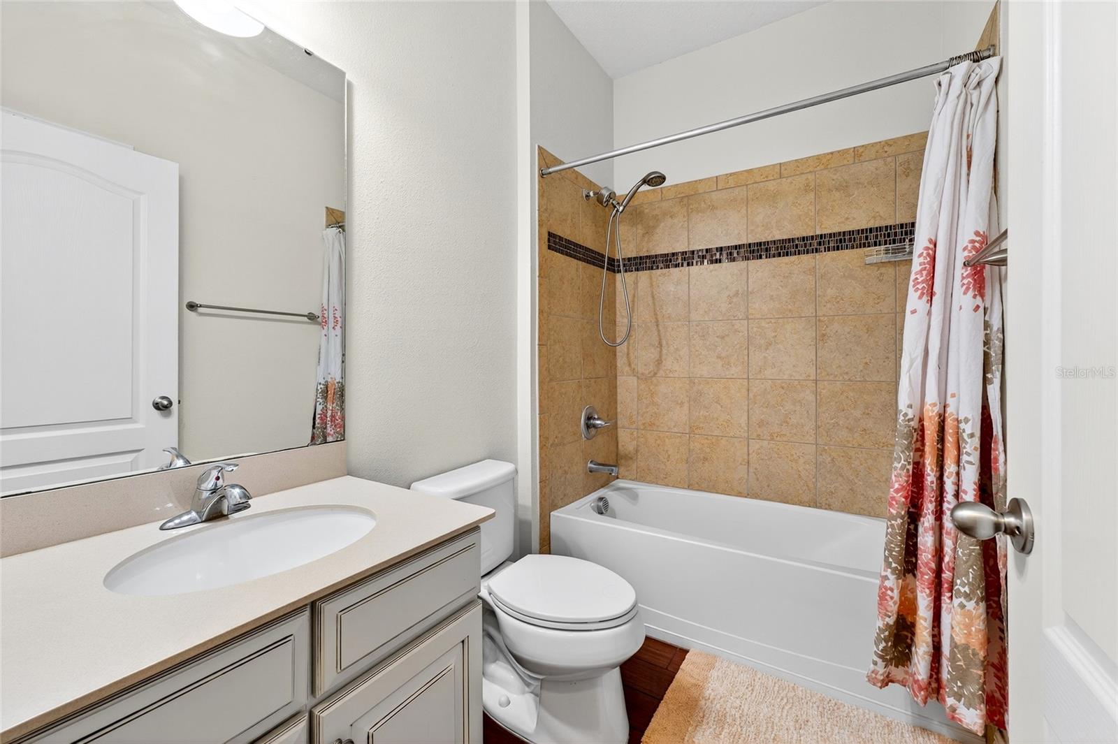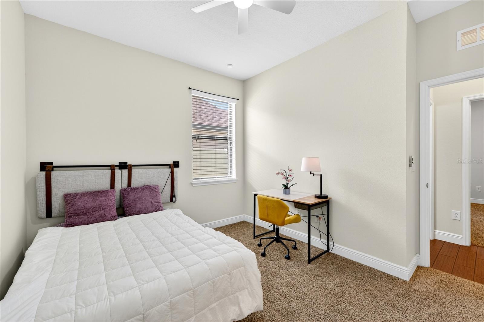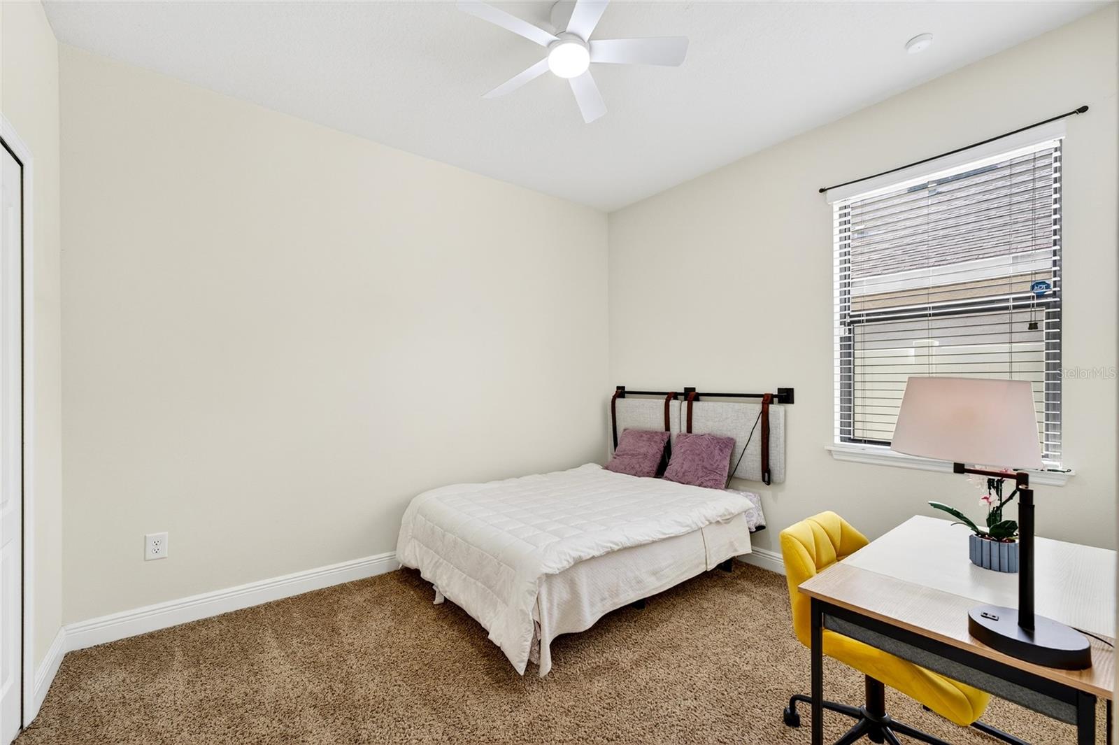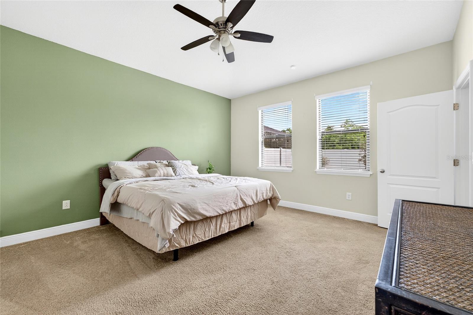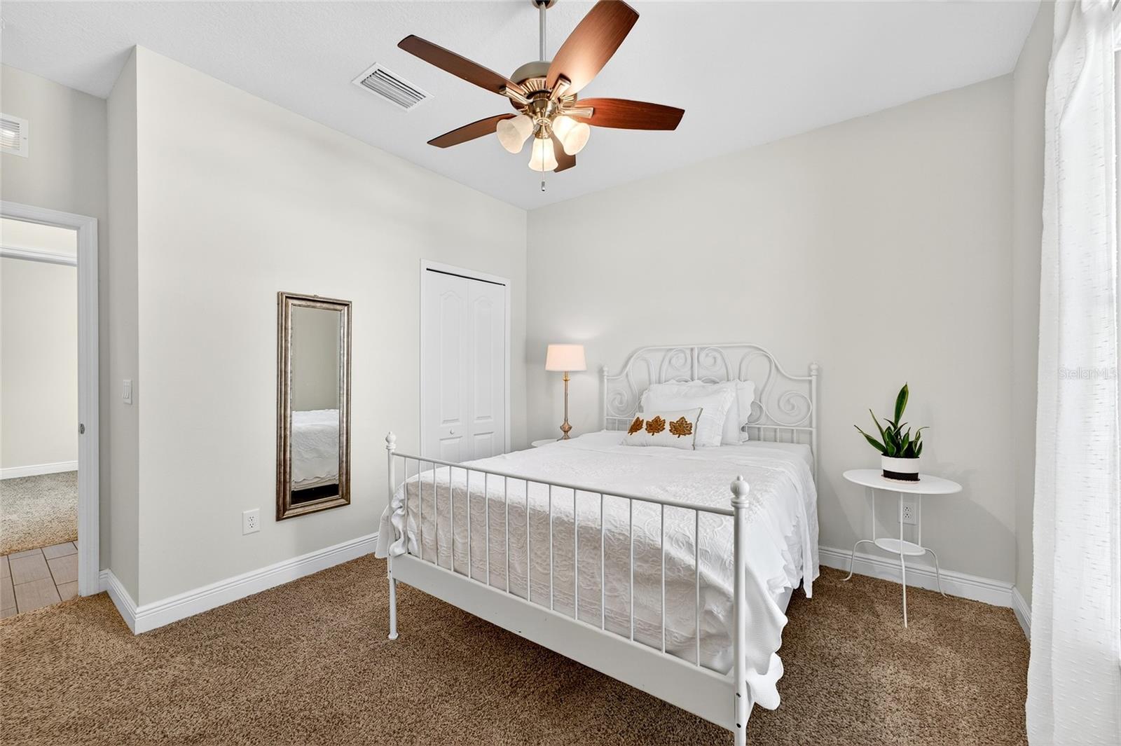 A priced right must see in an amazing community that offers excellent amenities including a sparkling resort style pool with a clubhouse, playground, fitness center, and walking trails. This stunning and immaculate 2017 built home offers a split floor plan for privacy with 3 bedrooms and 2 full baths. The mature and well-maintained landscape boasts beautiful palm trees and lawn. The open floor plan features a spacious living room and dining room/kitchen combo with vaulted ceilings and porcelain tile throughout. The kitchen has beautiful white cabinets, stainless steel appliances, walk-in pantry and a kitchen island with dual sinks for cooking and entertaining. From the dining room you enter the backyard through sliding doors into a screened and covered lanai to enjoy the peaceful fully fenced yard. The generous size master bedroom located in the back of the home for additional privacy has two walk-in closets with an en-suite master bath featuring dual sinks, private lav and walk-in tile shower. The laundry room is conveniently located right down the hall near the two additional spacious bedrooms along with the additional full bathroom with a bathtub. The home also features fully paid for solar panels that convey so you can enjoy minimal electricity cost. Don't miss the opportunity to make this beautiful home your own. Preferred lender offering $2,000 credit to be used toward one year rate buydown.