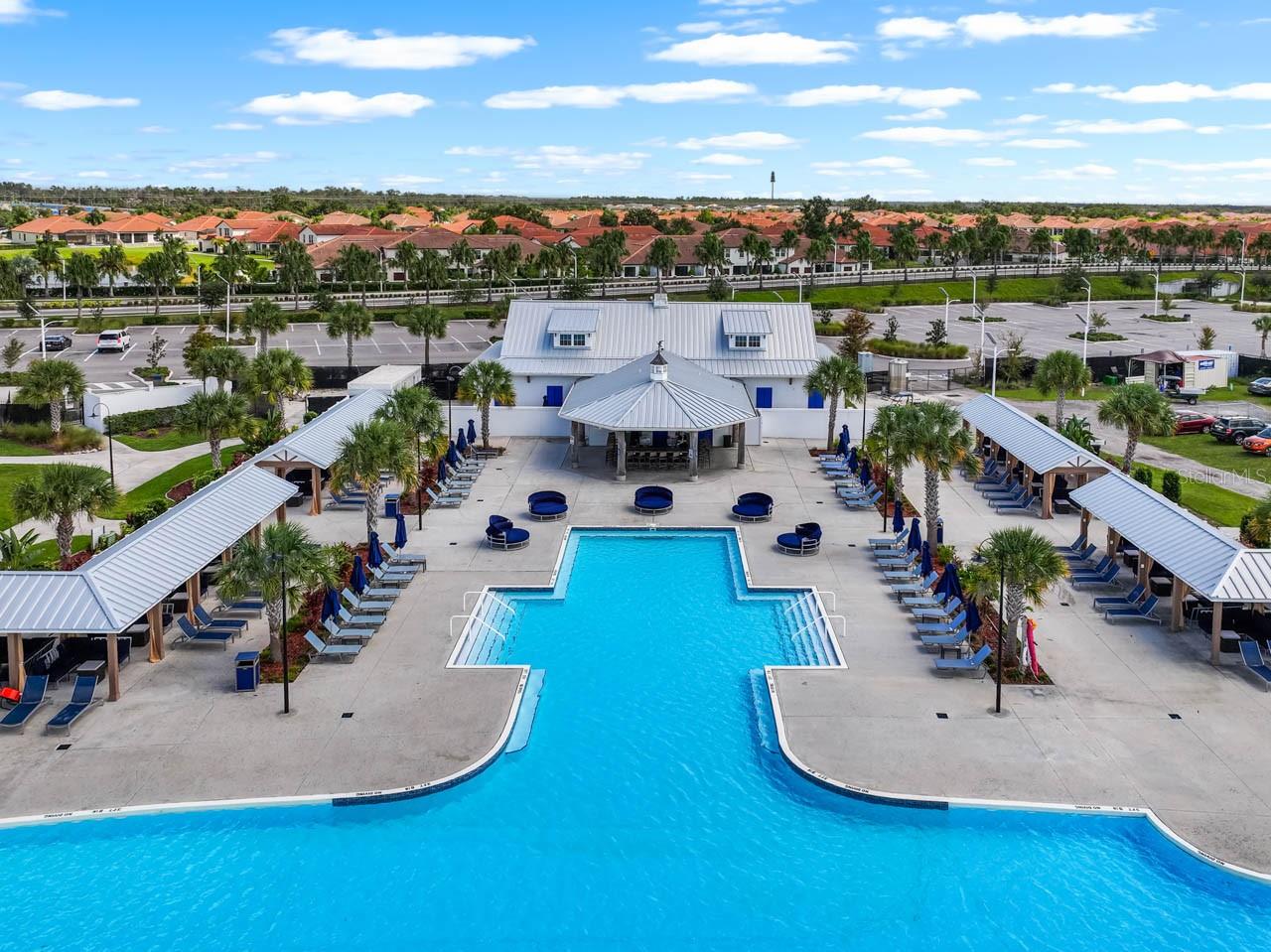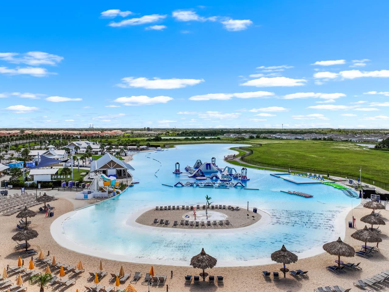 Luxury amenities await you in this beautifully maintained 3-bedroom, 2.5-bathroom, 2-car garage home in the active 55+ Medley neighborhood within the gorgeous Southshore Bay community! The garage features an under-stair closet, ceiling racks, and a second-story LOFT STORAGE room. No need for a costly storage unit; there's a space for everything right here! Plentiful highlights of this gorgeous home include: PAVER DRIVEWAY, QUARTZ COUNTERTOPS, diamond pattern CERAMIC TILE FLOORING in most of the home, CROWN MOLDING, WATER SOFTENER, TRAY CEILINGS, a covered front porch, and so much more. This OPEN CONCEPT floorplan splits a spacious living room area with custom accent wall with a lovely dining area and the show-stopping, COMPLETELY UPDATED KITCHEN. Stainless Steel appliances, backsplash, large ISLAND with bar seating, wall-mounted oven & microwave with separate cooktop & range hood, kitchen sink WATER PURIFICATION system, and an excess of countertop and cabinet space. Make your culinary dreams come true! The opulent primary suite boasts a deep WALK-IN CLOSET and an EN-SUITE BATHROOM complete with a DUAL-SINK VANITY, OVERSIZED SHOWER stall, and water closet. One of the secondary bedrooms features its own EN-SUITE BATHROOM with single-sink vanity and tub/shower combination. The third bedroom, currently used as an office, has French Doors and is only a few steps from the half bathroom with its single-sink vanity. The Laundry Room has cabinet storage as well as countertop space. The COVERED & SCREENED LANAI is more like extending living space with its indoor/outdoor carpet, ceilings fans, and fully ENCLOSED windows that can be opened to take in a breeze through the screen or closed if there's a chill. Entertain outside in comfort! Enjoy a wide range of resort-style amenities exclusive to living in Medley, such as their clubhouse, pickleball courts, resort-style pool, billiard room, ballroom, an on-site cafe & bar, and the state-of-the-art fitness center! In addition to these amenities are those available to all of Southshore Bay, most notably the incredible 5-acre crystal clear lagoon: kayak, paddleboard, swim, or visit the swim-up bar! Enjoy a carefree and relaxed lifestyle here, where everyday can feel like a vacation.