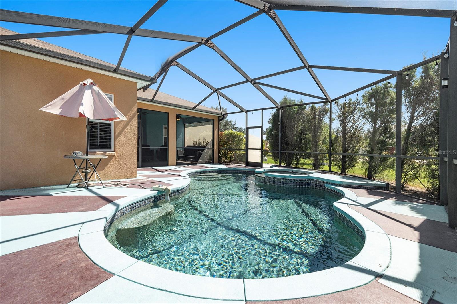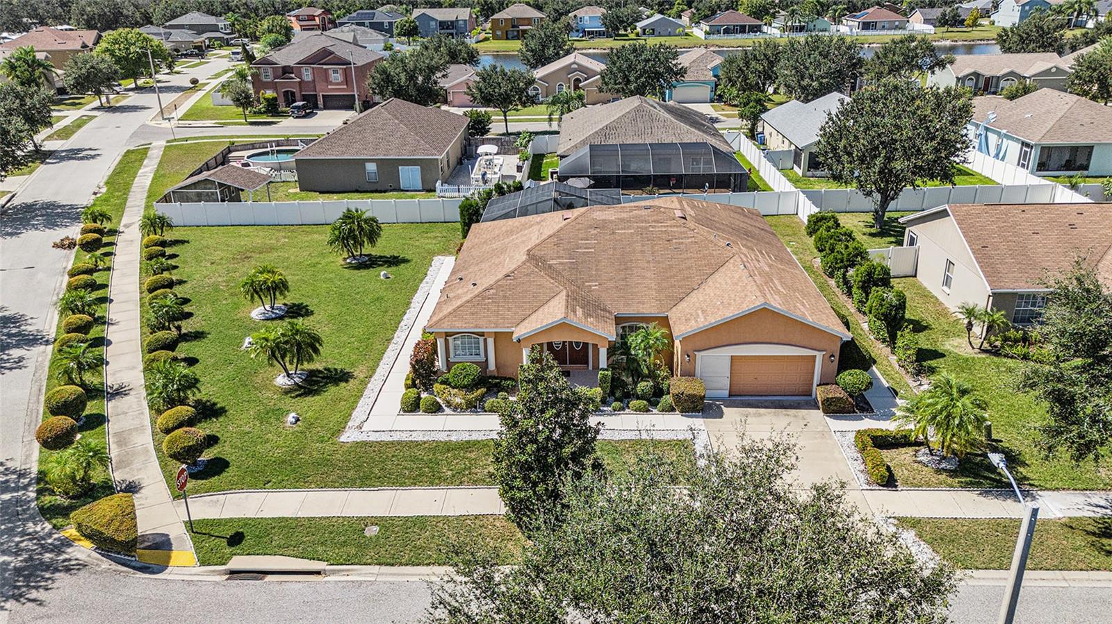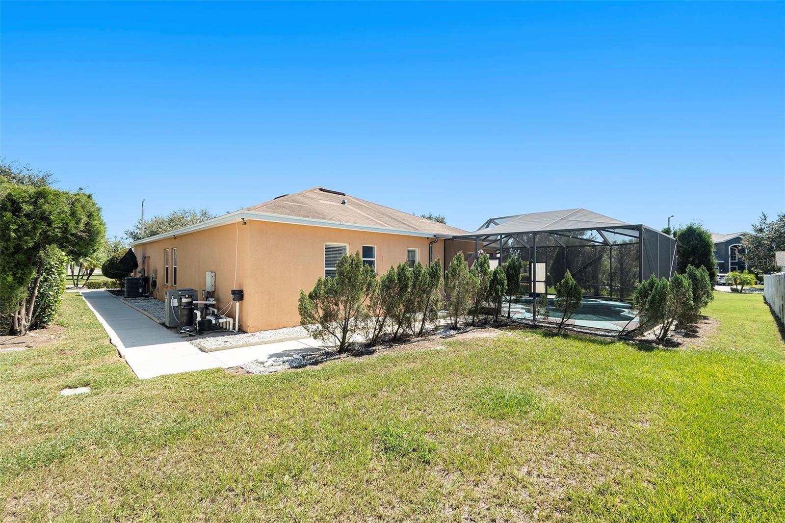 PRICE REDUCTION FOR A QUICK SALE. POOL HOME, LARGE CORNER LOT!! SELLER IS OFFERING $5000 TOWARDS BUYER CLOSING COSTS! This meticulously crafted 4-bedroom, 2-bathroom home, built by renowned Highland Homes, is nestled on an oversized corner lot. Featuring a spacious 2-car garage, the property is designed to impress with its stunning pool area—perfect for creating cherished memories with family and friends, all while overlooking a beautifully manicured lawn. Ideally situated in a highly sought-after neighborhood, this home offers the perfect blend of tranquility and convenience, with easy access to hospitals, shopping, dining, and more. Enjoy an extraordinarily low HOA fee of just $100 annually, ensuring peace of mind and exceptional value. Even better, there are NO CDD fees! As you step through the grand double doors, you'll be welcomed by an elegant foyer that leads into the inviting living and dining spaces. The owner's suite, located to the left, offers direct pool access, expansive walk-in closet, and a spa-inspired en suite bathroom featuring a soaking tub, a luxurious walk-in shower, and fine finishes throughout. The thoughtful floor plan also includes three additional generously sized bedrooms, all located off the family room with new hypo-allergic carpet, along with a beautifully appointed second bathroom. Recent upgrades include a new HVAC system (2021), new pool pump (2025) hot water heater, and roof (both 2025), ensuring the home is in impeccable condition and move-in ready. This is the home you've been waiting for—where comfort, luxury, and convenience seamlessly come together.