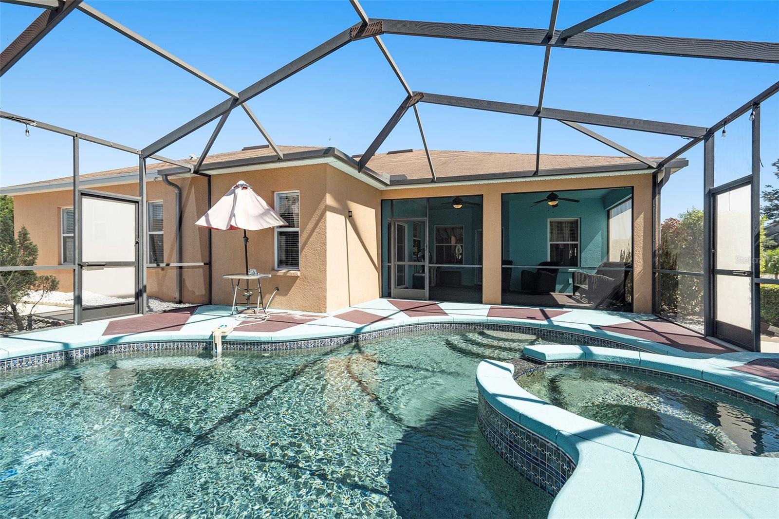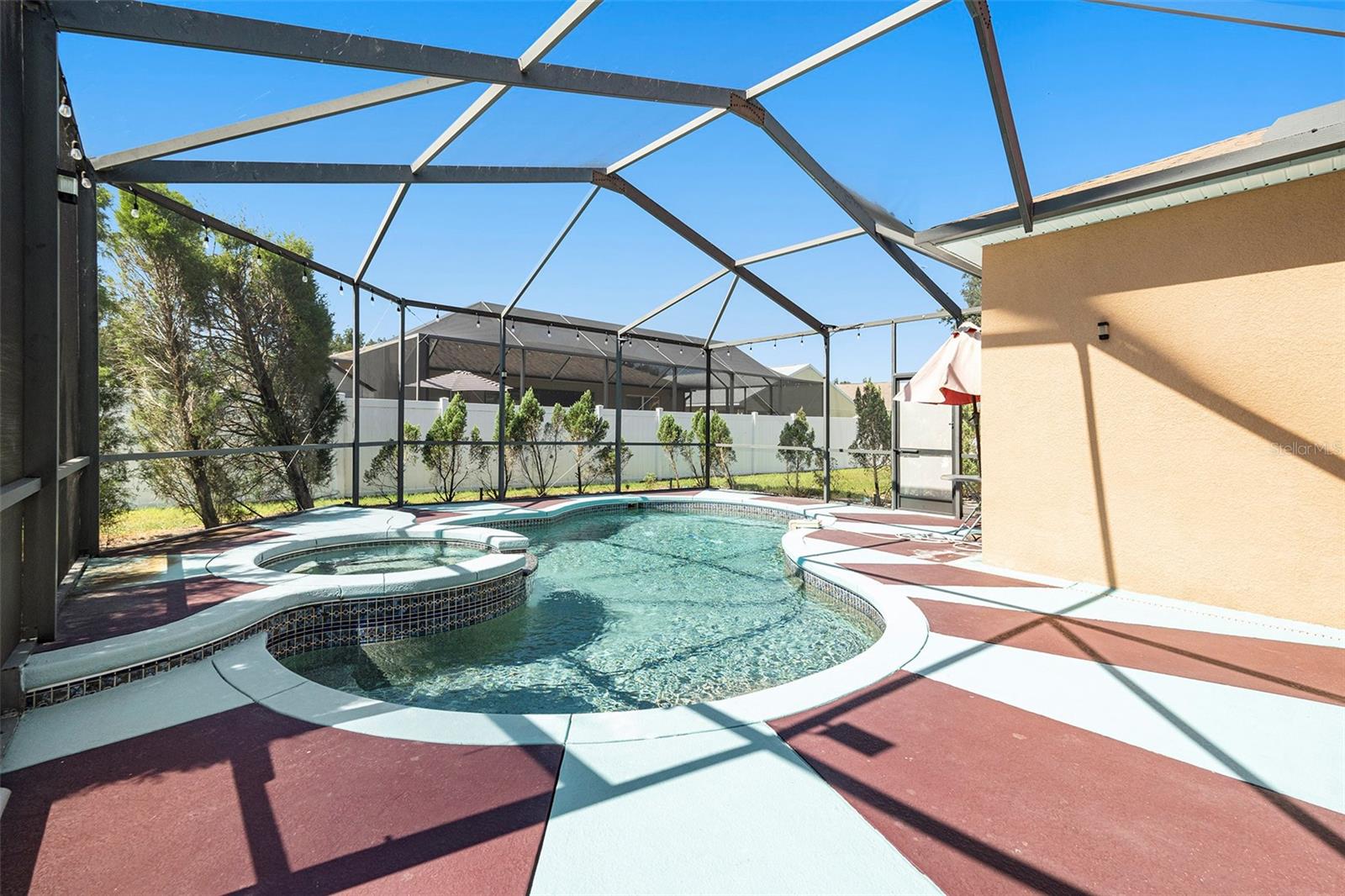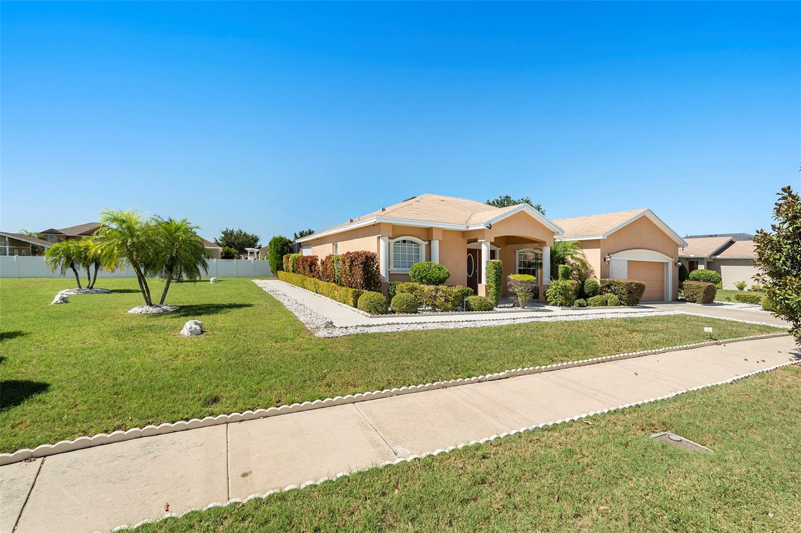 PRICE REDUCTION FOR A QUICK SALE. POOL HOME, LARGE CORNER LOT!! SELLER IS OFFERING $5000 TOWARDS BUYER CLOSING COSTS! This meticulously crafted 4-bedroom, 2-bathroom home, built by renowned Highland Homes, is nestled on an oversized corner lot. Featuring a spacious 2-car garage, the property is designed to impress with its stunning pool area—perfect for creating cherished memories with family and friends, all while overlooking a beautifully manicured lawn. Ideally situated in a highly sought-after neighborhood, this home offers the perfect blend of tranquility and convenience, with easy access to hospitals, shopping, dining, and more. Enjoy an extraordinarily low HOA fee of just $100 annually, ensuring peace of mind and exceptional value. Even better, there are NO CDD fees! As you step through the grand double doors, you'll be welcomed by an elegant foyer that leads into the inviting living and dining spaces. The owner's suite, located to the left, offers direct pool access, expansive walk-in closet, and a spa-inspired en suite bathroom featuring a soaking tub, a luxurious walk-in shower, and fine finishes throughout. The thoughtful floor plan also includes three additional generously sized bedrooms, all located off the family room with new hypo-allergic carpet, along with a beautifully appointed second bathroom. Recent upgrades include a new HVAC system (2021), new pool pump (2025) hot water heater, and roof (both 2025), ensuring the home is in impeccable condition and move-in ready. This is the home you've been waiting for—where comfort, luxury, and convenience seamlessly come together.