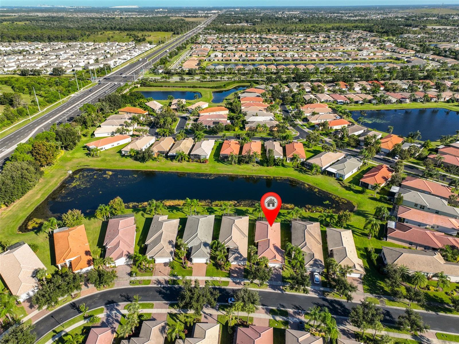 Experience Refined Living in Valencia Lakes The Beautiful Amalfi Model 1,597 Sq. Ft. of Elegance and Comfort in a gated community Welcome home to this beautifully appointed Amalfi model, perfectly nestled on a lushly landscaped lot in the highly sought-after Valencia Lakes 55+ community. From the moment you approach the inviting front entry, the beauty of the surroundings sets the tone for the warm, sophisticated interior that awaits within. Step through the glass entry door into an open and airy floor plan bathed in natural light. Elegant diagonal tile flooring flows throughout the main living areas, leading your eye toward the expansive sliding glass doors that open to a screened extended lanai with tranquil water views, the perfect setting for morning coffee or evening relaxation. The gourmet kitchen is both stylish and functional, featuring rich wood cabinetry, granite countertops, and a travertine backsplash. An extended breakfast bar and cozy eat-in nook provide space for casual dining, while the formal dining area offers a gracious setting for entertaining family and friends. The primary suite is a serene retreat, highlighted by a tray ceiling and a spacious walk-in closet. The spa-inspired primary bath features dual vanities, a luxurious garden tub, and a separate walk-in shower, creating a true sanctuary for relaxation. The split floor plan ensures comfort and privacy for guests, with a second bedroom and full bath. A versatile third bedroom or den, complete with its own walk-in closet, adds flexibility for a home office, library, or creative space. Throughout the home, neutral tones, tasteful finishes, and designer light fixtures and ceiling fans enhance its timeless appeal. Step outside to the screened lanai, where lush tropical landscaping and peaceful water views create your own private oasis. Move right in and start enjoying the Valencia Lakes lifestyle, a vibrant 55+ community offering resort-style amenities, scenic walking paths, and a true sense of connection and relaxation.