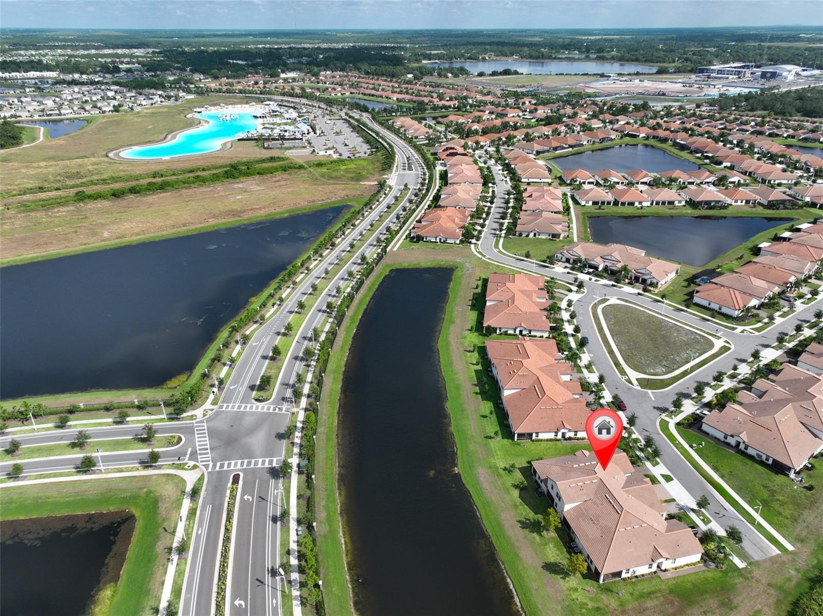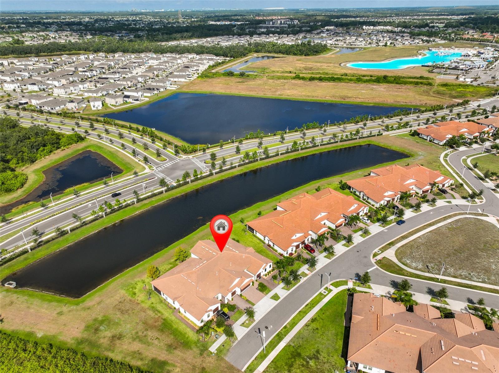 BIG PRICE ADJUSTMENT! Situated on a pond tucked away in a peaceful cul-de-sac this 2 bed, 2 ½ bath, 2 car garage Villa in a prime position, boasts an unrivaled outlook of brilliant sunsets and abundant birdlife. Relax on the screened lanai with brick tile flooring and newer blinds, perfect for taking in the peaceful pond views that enhances the home’s serene setting. Located in a desirable 55+ active community, this spacious 4-block Villa offers comfort, style, and peace of mind. Enjoy newer high-impact windows (2024) on the upper level, Gas Water Heater, Carrier 2-ton A/C (2022) for year-round efficiency & a Kinetico water softener. The kitchen features elegant stone countertops, a gas range, breakfast bar, and reverse osmosis system for pure, great-tasting water. The primary bedroom is conveniently located on the main level, with 1.5 baths for added functionality. The second level includes a bedroom with murphy bed, a second bath and a sizeable loft area. Additional features include an alarm system with keypad & phone connectivity for enhanced security, and EV charger in garage. Experience low-maintenance living in a scenic, friendly community—the perfect blend of comfort, convenience, and natural beauty. Medley at Southshore Bay in Wimauma, FL is a vibrant 55+ gated community that features a clubhouse with large ballroom including a stage and projection facility, a games room with billiards, a café and bar, fully equipped fitness center, and a resort-style pool with outside bar. Six pickle ball courts, three bocce ball courts and available for the more sports inclined residents. Frequent social events are arranged by community management & the many resident clubs. Two dog parks are available for dog owners, Further info. on Southshore Bay is available at Home–Medley Southshore Bay. Directly opposite the Medley complex is the Southshore Bay Lagoon, a 5½ acre lagoon complex that features swimming, kayaking & paddle boarding activities. A bar overlooks the pool area with food available. Movie nights & performers are routinely arranged as are Holiday celebrations. Medley residents enjoy preferential access to the lagoon complex. For more info visit the website: Southshore Bay Lagoon-MetroLagoons.