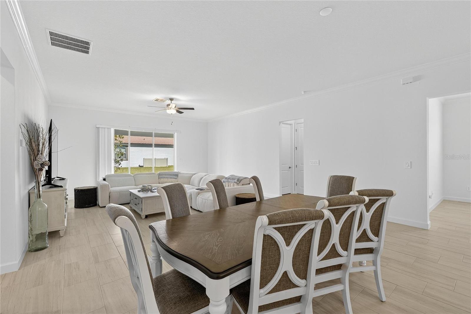 Welcome home to this beautifully upgraded residence at 17415 Holly Well Ave. Nestled in a vibrant and well-connected community just south of Tampa, this home offers modern luxury, vaulted tray ceilings and designer finishes from floor to ceiling. The inviting open-concept layout flows effortlessly from the gourmet kitchen into a bright and spacious great room where family and friends will gather with ease. The heart of the home is the chef-inspired kitchen, anchored by a generous island and quartz countertops, tall shaker cabinetry, stainless-steel appliances and a dedicated butler’s pantry that expands your prep space and storage. Adjacent, a walk-in pantry ensures every detail is covered. The wood-look tile flooring spans the main living areas, lending warmth and continuity while making maintenance simple. Three private bedroom suites provide comfort and flexibility, with the primary retreat designed for total relaxation. The master bedroom features a tray ceiling, plush carpeting and a window that invites natural light without sacrificing privacy. Once inside, you’ll step into the spa-inspired master bath, a soaking tub and oversized walk-in shower, dual vanities with elegant fixtures, and a custom closet that conveniently connects directly to the laundry room. Whether it’s settling in at the end of the day or entertaining, the design emphasizes flow and ease. Outside, the covered lanai overlooks a generous backyard, offering a tranquil setting for morning coffee or an evening wind-down. With plenty of space to personalize the outdoor area, this home invites you to enjoy both ease and potential. The oversized three-car garage (2-car + golf-cart capacity) offers abundant storage and workshop potential thanks to a walk-up attic space. Positioned for convenience, the home is minutes from dining and shopping in Wimauma and Sun City Center. Local favorites include SOL Mexican Restaurante and Don Julio’s Wimauma. For healthcare and peace of mind, the area is served by the full-service HCA Florida South Shore Hospital in Sun City Center, offering 24/7 emergency care and advanced services. Easy access to major roadways places the excitement of Tampa and Gulf Coast beaches within reach, while preserving the peaceful, suburban-Florida backdrop you’ll love. Whether you’re entertaining in the chic kitchen and open living area, relaxing in the luxurious master suite, or enjoying the expansive lot and garage space, this home checks every box for today’s lifestyle. Don’t miss the opportunity to call this turnkey retreat your own. Schedule your private showing today!