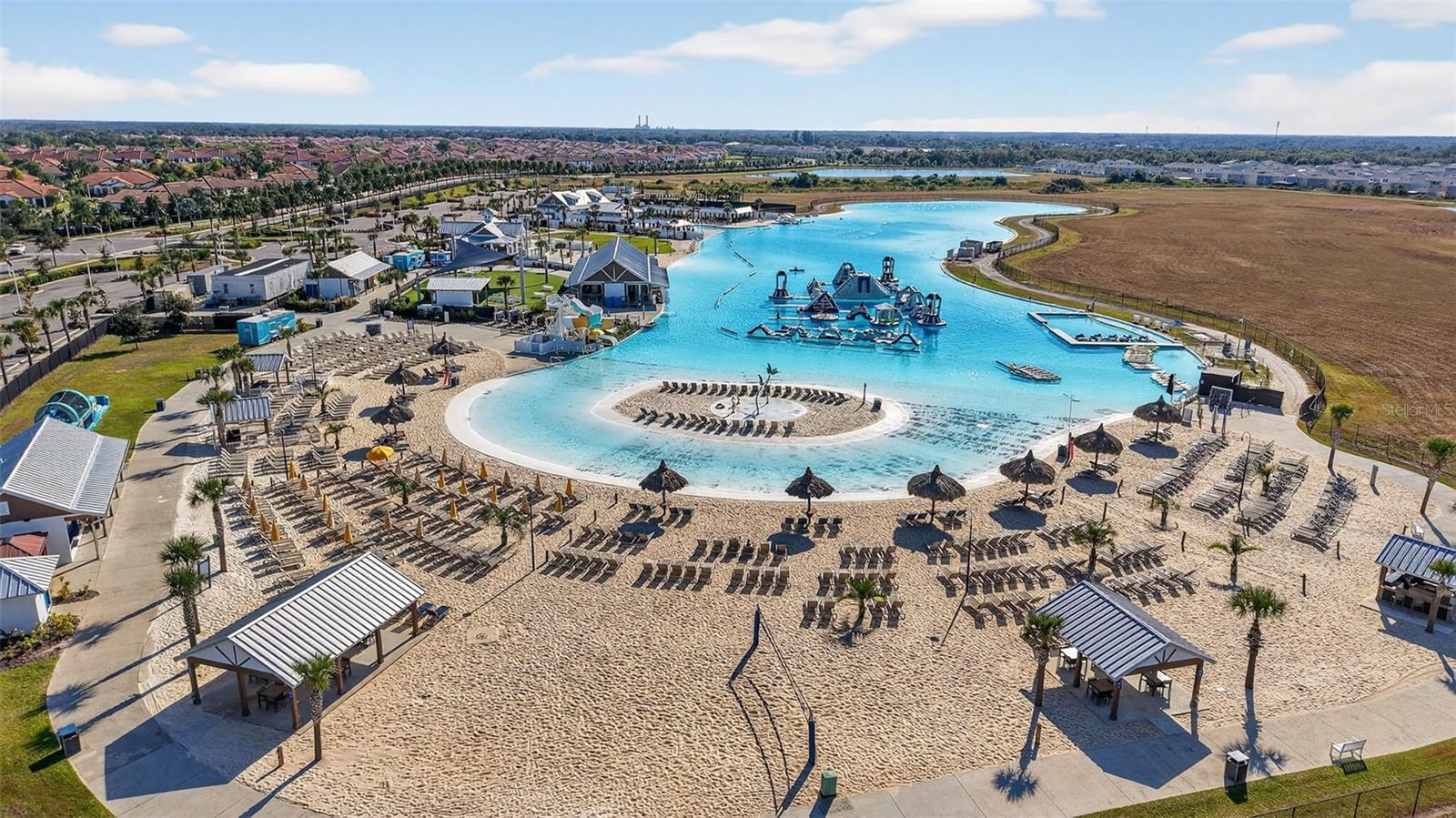 Step into resort-style living at Medley at Southshore Bay, the premier 55+ active adult community where luxury and lifestyle come together. This stunning 4-bedroom, 3-bath home with a 3-car garage delivers an impressive blend of sophistication, comfort, and functionality—all wrapped in a bright, open floor plan with upscale plank tile flooring throughout. At the center of the home, the gourmet kitchen commands attention with gleaming quartz countertops, sleek modern cabinetry, stainless steel appliances, and an oversized island designed for gathering. A walk-in pantry plus a dedicated butler’s pantry provide exceptional storage and prep space, keeping your kitchen organized and ready for any occasion. The kitchen flows seamlessly into the dining and living areas, setting the stage for effortless entertaining and easy everyday living. The split-bedroom layout is thoughtfully designed for privacy and versatility. The expansive primary suite offers a serene escape with its spa-inspired bathroom featuring dual vanities, an oversized walk-in shower, and a generous walk-in closet that conveniently connects directly to the laundry room. Bedrooms 2 and 3 share a well-appointed Jack-and-Jill bath, while Bedroom 4 sits separately with access to a nearby full bath—ideal for guests, in-laws, or a private home office. Step outside and you’ll find your own personal oasis. A sparkling pond and with wildlife watching that makes the afternoons melt away. The oversized screened-in patio will is an incredible space for relaxing afternoons, evening cocktails, or year-round gatherings. Community life is all about elevated living and vibrant community energy. You’ll enjoy secure, convenient access through both manned and unmanned gates and golf-cart friendly paths that make it easy to explore. The private clubhouse serves as the community’s heartbeat, offering a café and bars, billiards, card, games and activity rooms plus and an elegant ballroom hosting events of every kind. A packed activities calendar keeps the excitement going with karaoke nights, comedy shows, live music, and a wide selection of clubs—everything from hobby groups to cigar socials. Outdoor recreation is abundant with pickleball and bocce courts, walking trails, a dog park with its own bathing station, and a heated resort-style pool. And just steps away lies the breathtaking 5-acre Metro Lagoon by Crystal Lagoons—an unmatched amenity offering endless fun in the Florida sunshine. With HOA fees covering internet, basic cable, and lawn care, you can focus less on maintenance and more on enjoying the lifestyle you’ve earned. This move-in ready home delivers luxury, convenience, and community at every turn—where coming home truly feels like arriving at your own private resort.