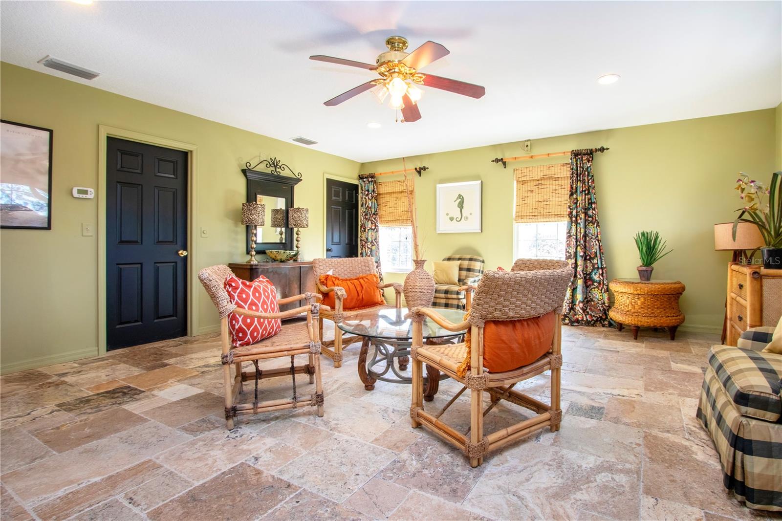 One or more photo(s) has been virtually staged. Experience the best of Florida living in Sundance Trails in this spacious 3,000-square-foot home featuring three bedrooms, three and a half bathrooms, a pool, and a three-car garage. The property sits on 1.57 acres, with an extra 1.57-acre vacant parcel also available. This residence offers a warm and inviting atmosphere, featuring travertine flooring throughout. Spacious enough to accommodate multi-generational living. The first floor includes a primary bedroom with a generous walk-in closet and an ensuite bathroom equipped with a soaking tub, separate stand-alone shower, and a private water closet. Additionally, the formal dining room may be conveniently converted into an office or a fourth bedroom. The second bedroom on the first floor features sliding doors that open to the sparkling pool and include its own ensuite bathroom. The third bedroom offers a private living space and another ensuite bathroom, making it ideal for multi-generational living, an entertainment room, or simply relaxing. This area also boasts an enclosed porch with views of conservation. The kitchen features an open-concept design with breakfast bars on both sides. It is equipped with stainless steel appliances and laminate countertops, which provide direct access to the laundry room and a three-car garage. Adjacent to the kitchen is the living room and office nook, which provide access to the second bedroom. Here, you'll find sliding doors that open to the sparkling screened-in pool and spa, overlooking the spacious backyard. The second parcel can be purchased with the home. It is split with its own parcel number that can be adjoined at closing or kept separate. Sundance Trails has a low and relaxed HOA and this home is across the street from the Little manatee State Park that offers hiking, biking, kayaking, horseback riding with camping and stalls for camping with your horses and still only 15 minutes to Parrish and Sun City Center and I-75 and I-275 for easy commute to the tri county area. Don’t let this opportunity pass you by, schedule a private showing today!