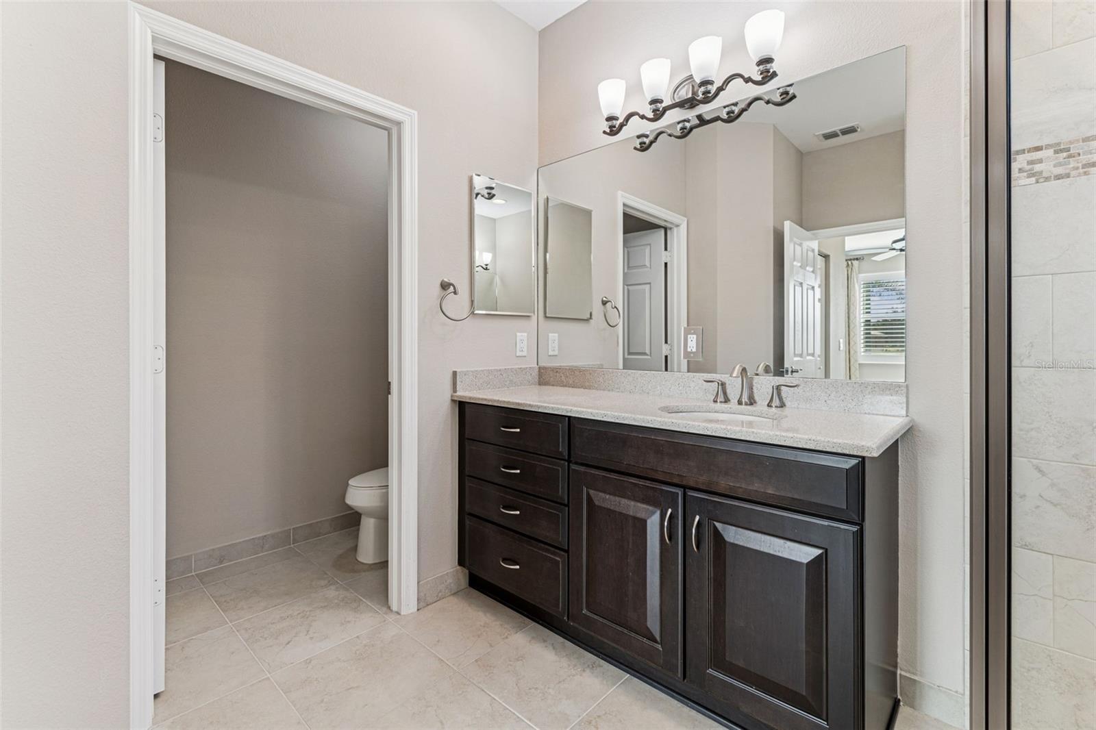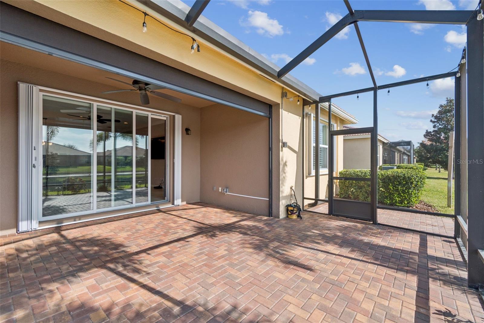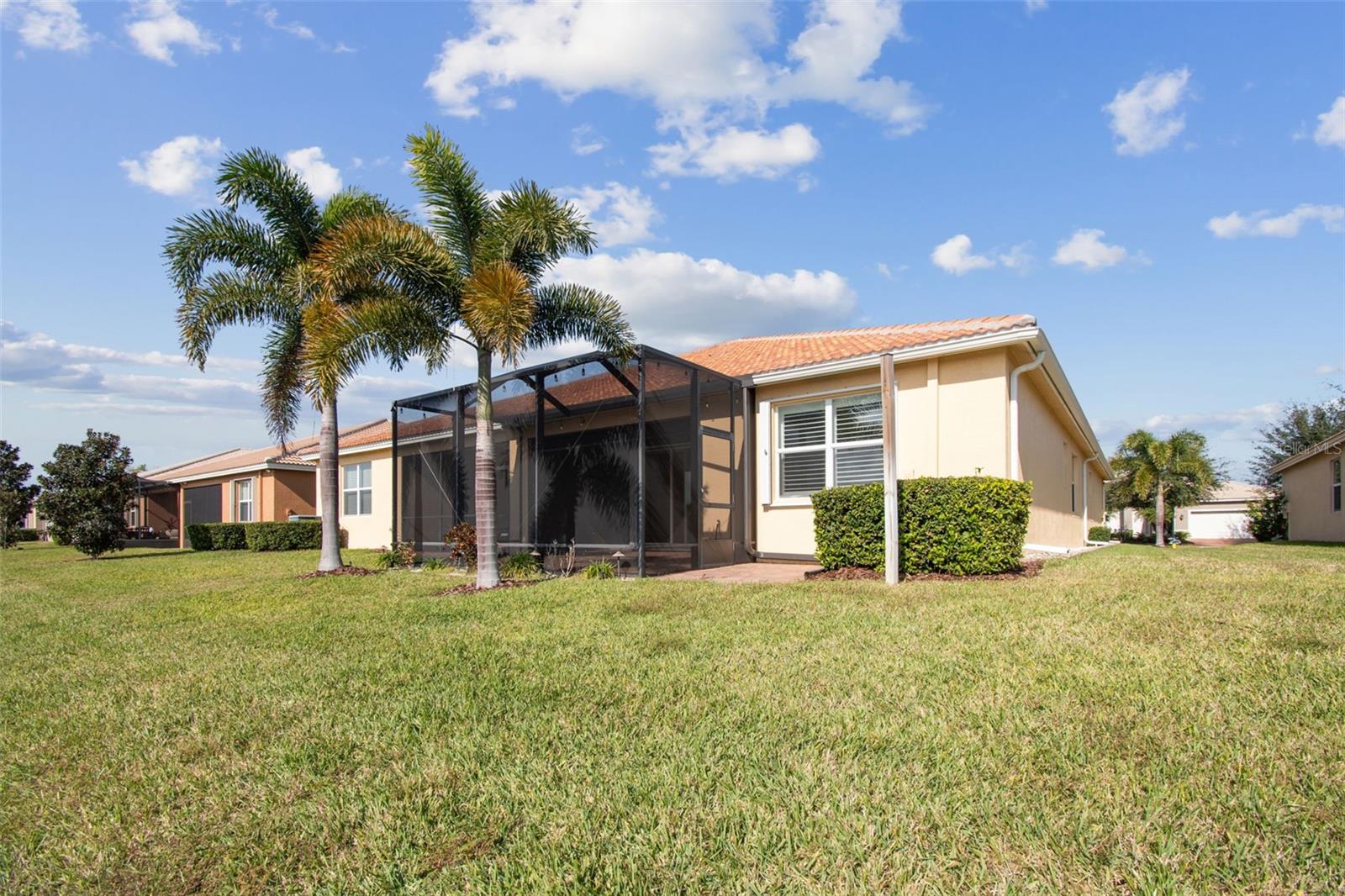 Spectacular views are yours from this 2 bdrm and den/3rd bdrm, 2 bath exemplary Julia model from the renowned GL Homes Regal Twin Villas Collection located in the newest section of Valencia Lakes. The back of the house provides a serene water view, and the front offers lush curb appeal with a widened driveway and paved landscaping borders. Hardwired lights illuminate the yard at night. A large screened front patio creates an additional private outdoor space to relax/entertain on lovely Florida days. A 12’ high ceiling in the elegant foyer leads to the heart of the home with an open floor concept that is ideal for both daily living and entertainment. High-end ceramic tiles are installed in all main areas. Engineered hardwood floors are in the den/3rd bdrm and upgraded carpeting in pristine condition is in 2 brms. Crown molding, enhancing the main areas, and plantation shutters plus electric blinds over the sliding door leading to the lanai, add even more charm and quality to this home. Large gourmet kitchen has granite countertops offering an 18” extended serving bar with high quality natural glass/stone linear backsplash and upgraded stainless style appliances including a stove, microwave, dishwasher and double door refrigerator. The 42" wood cabinets with crown molding feature over/under lighting, sliding drawers, a custom-made cabinet pantry and large pots and pans drawers. The kitchen offers a sizable breakfast area with space for informal dining. There is a dedicated space for a formal dining room that could sit at least 8-10 persons. The large primary bedroom in the back of the house, designed as a private en-suite, offers 2 walk-in closets with tastefully designed built-in cabinetry. The luxurious bath has two separate vanities with lots of cabinet space and drawers. The glass door shower features floor-to-ceiling tiles installed with a decorative listello and a corner built-in bench for both comfort and mobility. 2nd bdrm and the guest bath are located in the front section of the house, away from the main areas, providing additional comfort and privacy for you and your guests. An 8’ tall sliding door leads to a large extended screened lanai (10x20 ft) where you can enjoy lovely and breezy days with beautiful water and nature views capturing the essence of Florida living. The lanai is equipped with an additional electric sun/rain screen and lights that add a festive atmosphere at night! Interior/exterior have been recently painted. Additional features include hurricane shutters with an addition of accordion shutters added to the back of the house, water softener system, epoxy floor in the garage and plenty of storage and a 5 YR HOME WARRANTY ON ALL APPLIANCES, ELECTRICAL AND PLUMBING GOOD THROUGH 2/9/2029 transferable to new owners! Valencia Lakes is a 55 and better active adult golf cart community, 40-acre waterfront outdoor recreation area with resort-style heated pool, lap and resistance pool, 40,000 sq. ft. clubhouse, deluxe Bistro coming soon, arts and crafts studio, har-tru tennis courts, gym, half-court basketball, pickleball, bocce courts, dog park, baseball park, community garden, hundreds of clubs and activities, RV/boat parking. Over 100 acres set aside as nature preserves; enjoy the quiet and solitude of peaceful views, birds & wildlife by the water. Great sense of community with great friendly neighbors. Tampa, St. Pete and Sarasota 30-45 minutes away. Close to the airport, medical facilities, shopping and golf.