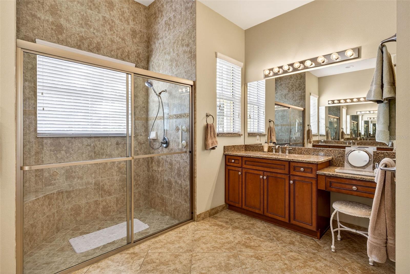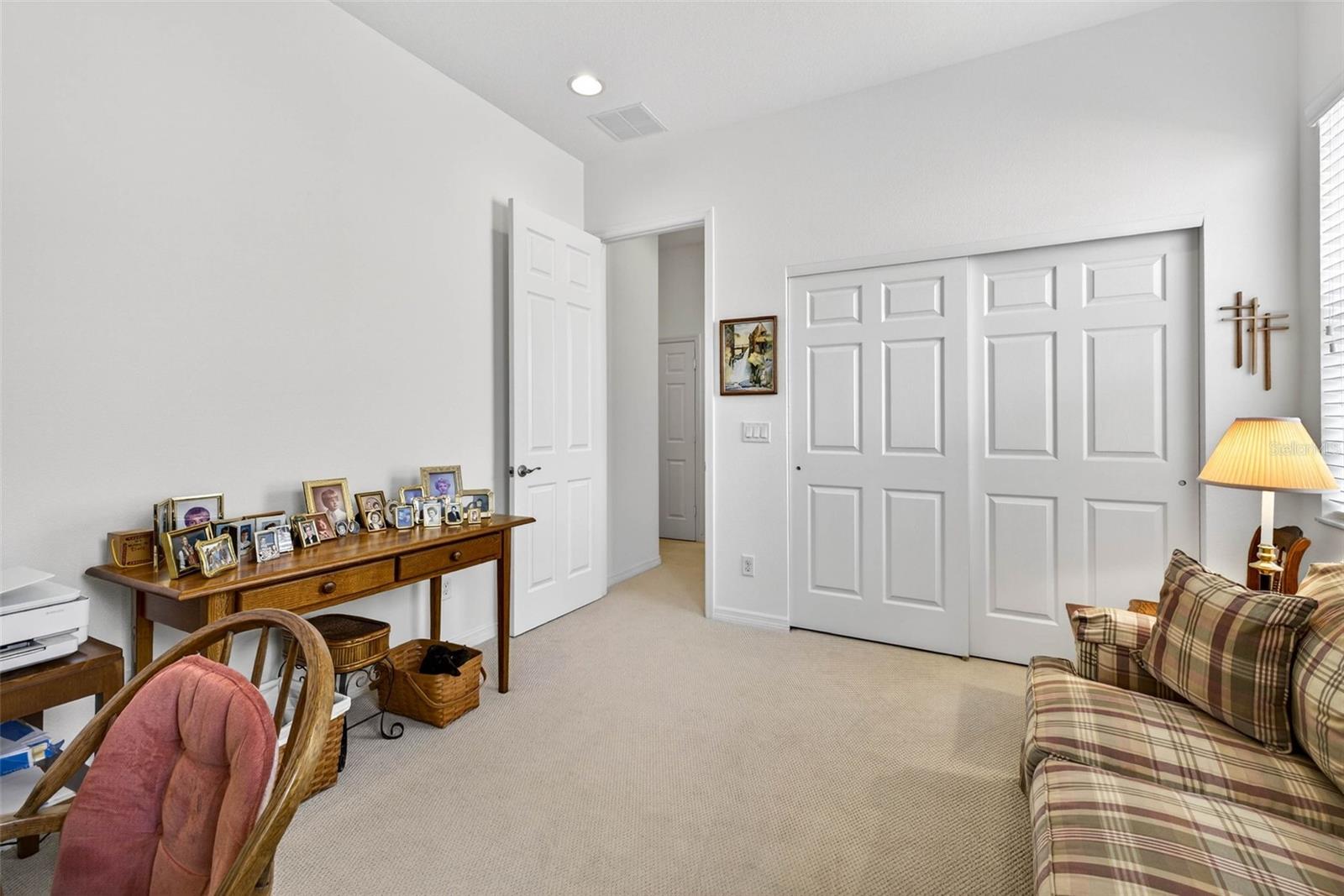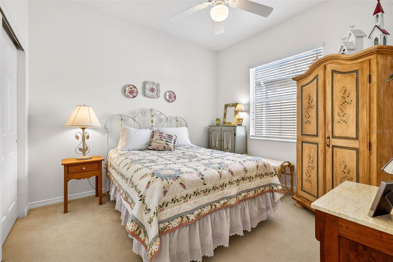 Bright, open, and inviting with 10 foot ceilings—this home captures the essence of relaxed Florida living. Priced to sell, with consideration for new flooring in the carpeted areas. This home features double-pane windows and easy-close hurricane shutters for comfort and peace of mind. The true split floor plan offers three bedrooms, ensuring privacy for both owners and guests. The expansive primary suite showcases a coffered ceiling, large windows overlooking the pond and conservation area, two walk-in closets, and a generous en-suite bath with dual vanities and a large walk-in shower. The upgraded kitchen features custom-designed cabinetry, stone countertops, designer tile backsplash, and above- and below-cabinet lighting, including illuminated glass display cabinets. The popular Rialto floor plan offers an abundance of windows, perfectly positioned to capture tranquil views of the natural setting behind the home. The spacious 18' x 20' family room is filled with natural light and flows seamlessly into a large breakfast nook with oversized windows and a sliding glass door leading to the covered, screened lanai. An additional open patio provides the perfect spot to enjoy peaceful pond and wooded conservation views. Located in Valencia Lakes, HOA fees include yard maintenance, mowing, irrigation, cable TV, high-speed internet, and a monitored security system, allowing for truly carefree living. Just a short distance from the renovated 40,000-square-foot clubhouse and lifestyle center, residents enjoy three pools including a resort-style pool, resistance pool, and lap pool, an outdoor hot tub, sauna and steam rooms, ballroom, state-of-the-art fitness center, tennis courts, pickleball, bocce, softball, shuffleboard, basketball, recreation paths, RV and boat storage on premises, and a full calendar of clubs, crafts, and social activities. The community also features the Veterans Memorial Park, known as the Circle of Honor. Conveniently located minutes from shopping, dining, hospitals, and everyday conveniences, this home offers the best of resort-style, maintenance-free living—all that’s left to do is move in and enjoy.
