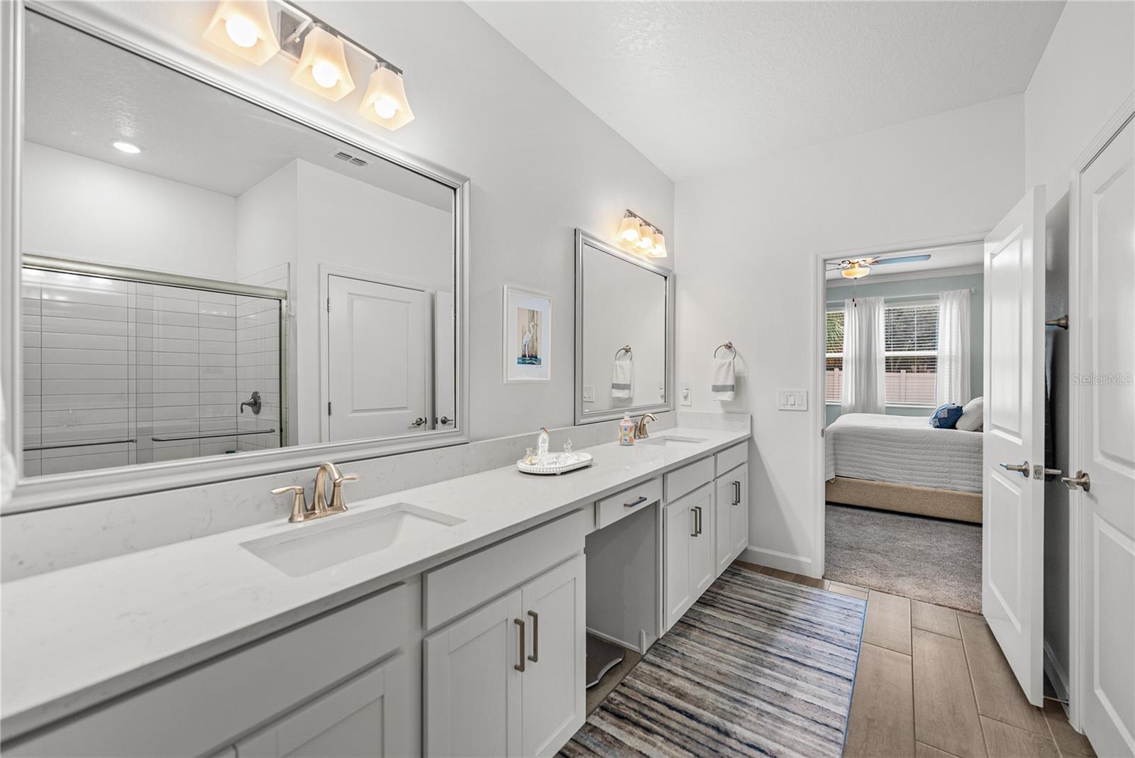 Welcome to this elegantly UPGRADED single-family residence located in the highly sought-after Medley at Southshore Bay, an active 55+ lifestyle community designed for refined, low-maintenance living. This thoughtfully designed home offers 1,956 square feet of living space with 2 bedrooms, 2 bathrooms, and a versatile BONUS FLEX ROOM featuring upgraded sliding French doors, ideal for a private home office, guest retreat, or creative space. The open-concept interior showcases custom ARCHITECTURAL details at the entry, crisp white cabinetry, QUARTZ countertops, and stainless steel appliances, including a GAS COOKTOP/OVEN for the home chef. Additional upgrades include a TANKLESS GAS WATER HEATER, designer lighting fixtures, and calming, sophisticated paint tones in the main living areas and primary suite. The primary bedroom features a CUSTOM-DESIGNED walk-in closet, offering both functionality and elevated storage. Step outside to the screened-in lanai, where peaceful evenings can be enjoyed overlooking a fenced backyard with serene country vibes and no rear neighbors, providing a rare sense of privacy. Homes with this level of outdoor privacy are rarely available within the community. Additional highlights include a generously sized laundry room, ample storage, and a 2-car garage. Residents of Medley enjoy a vibrant 55+ resort-style lifestyle, with exceptional amenities, an active social calendar, and a community designed to support both relaxation and connection. Opportunities to own a single-family home with this combination of upgrades, privacy, and location are limited, making this an exceptional offering within one of Wimauma’s most desirable active adult communities. Schedule your private showing today to experience this exceptional home firsthand.