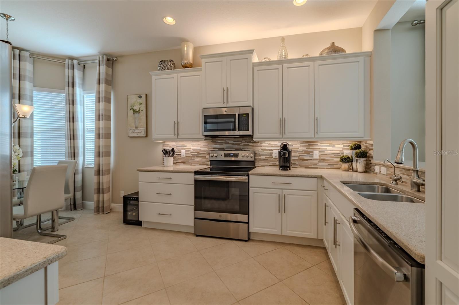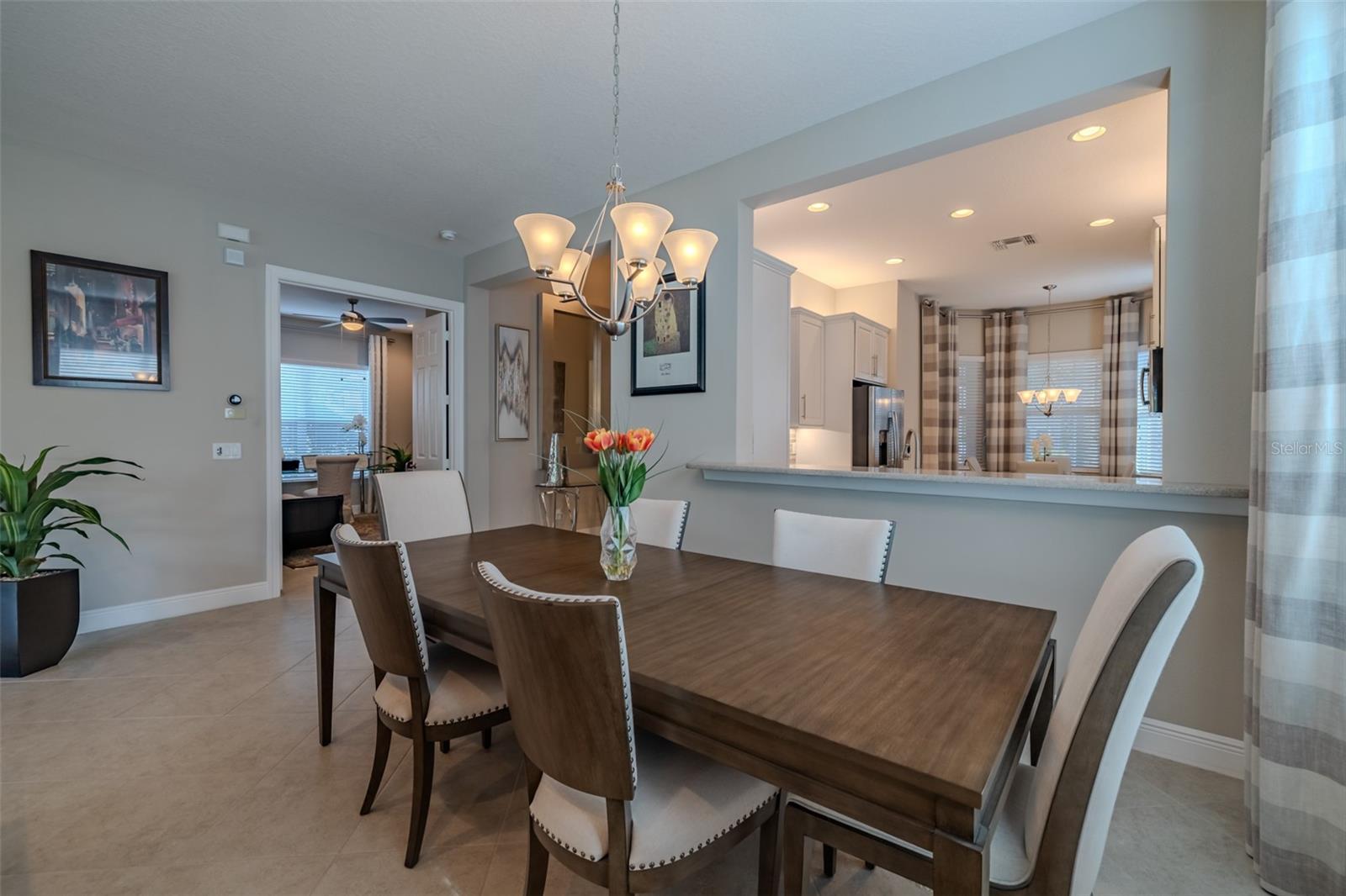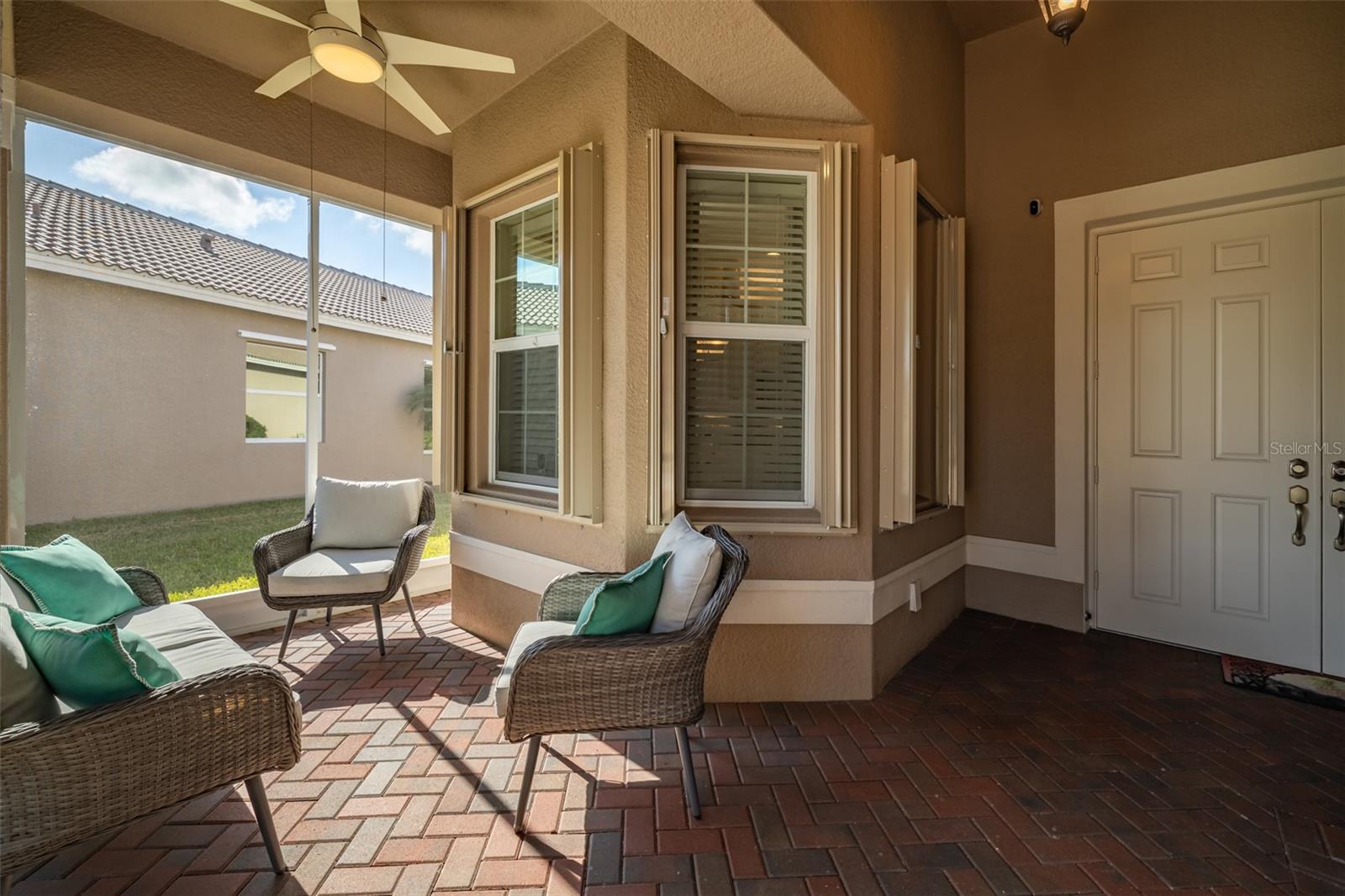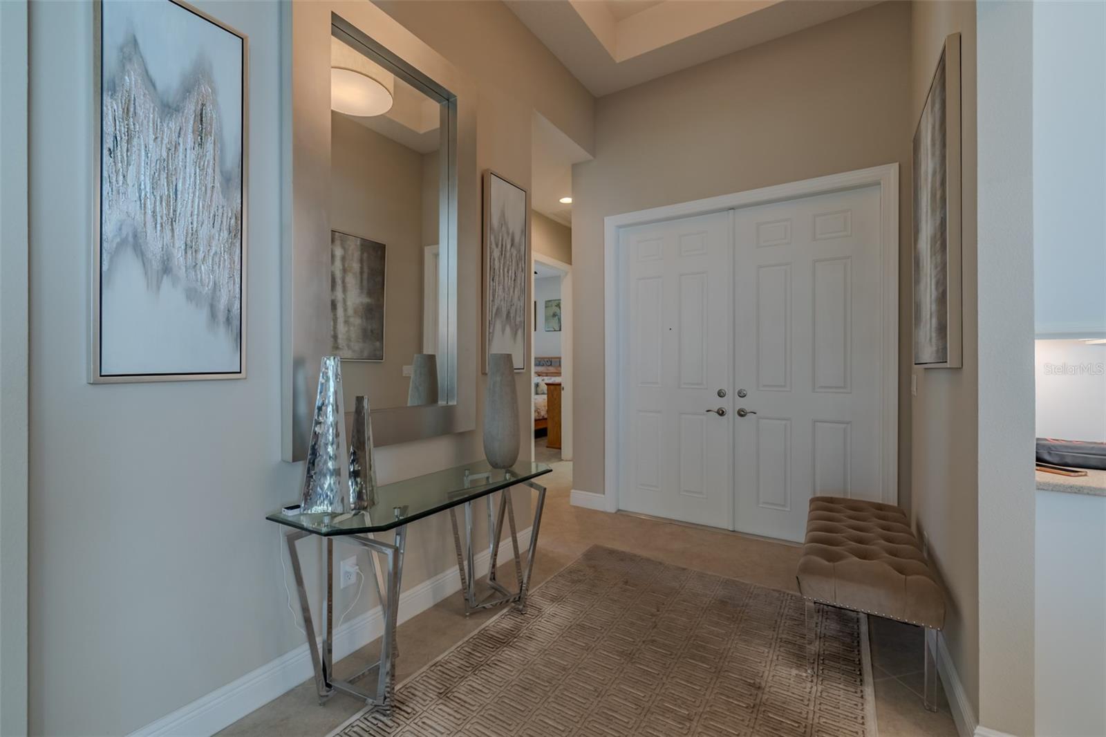 PRICE REDUCED - RESORT LIVING AT A BETTER VALUE! Are you ready for this? Located in Valencia Lakes, Tampa Bay’s premier 55+ Active Adult community, this beautiful CAPRI model with 1870SF, offers three bedrooms, a wonderful open floorplan with an offset water view, and it’s in pristine move-in ready condition. The screened in porch affords a great private space to relax out front and take life in stride. Solid double French doors provide wide access, when desired, to a welcoming Foyer, with its airy 13’ tray ceiling, that provides an impressive view of the open floorplan beyond. 18”x18” ceramic tile on the diagonal capped by 5 ¼” baseboards grace the floors except in two of the three bedrooms which are carpeted. Bedroom 2 is carpeted and lies at the front of the house and provides exceptional comfort and privacy and it features a Design House LEXI 52” LED ceiling fan with satin nickel finish. Bedroom 3 is centrally located in the house and has French double doors, a 6’-wide window, ceramic tile, 4 recessed lights, and a Generation Lighting DISCUS CLASSIC 52” LED ceiling fan. Bedroom 3 also has a closet, but you might decide to use this space as an Office or a Den. Having options is always good, right? The carpeted Primary Bedroom with its 10’-11’ tray ceiling is very generously sized, and its 9’-wide window provides abundant natural light and stunning sunset views. Beyond the two walk-in closets is a beautiful Ensuite Bathroom with two separated quartz vanities, a large walk-in shower with a privacy glass window, and a Water Closet for the commode. The Kitchen is well appointed with a 4’-wide cabinet Pantry with four sliding shelves, GE Profile Stainless Steel appliances, a double sink with a Reverse-Osmosis faucet, solid wood cabinetry including three pot drawers, and substantial oatmeal quartz counters capped by a gorgeous mosaic glass backsplash. And, this Kitchen is big enough for the Sous-Chef too. The adjoining Dinette will be the perfect space for daily or intimate meals. Forward of the Kitchen is a Dining Room that will comfortably accommodate 10 persons. The Great Room anchors the home, and it features a Matrix DÉCOR 72” brushed chrome ceiling fan and 12’ sliders lead to the Lanai. It’s spacious, bright and comfortable. The screened-in Lanai is a great space for outdoor living with its secluded location and beautiful offset water view. The 20’x20’ garage features luxury epoxy floors, two 4’x8’ overhead storage racks, and a Culligan Water Softener system. Accordion shutters are fitted on all windows making storm prep a breeze. Beyond your front door, Valencia Lakes offers a vibrant, resort-style lifestyle centered around a spectacular 40,000 sq.ft. clubhouse featuring live entertainment, dances, 100+ clubs and a newly renovated Cafe. Residents enjoy 7 pickleball courts, 6 lighted Har-Tru tennis courts, softball field, bocce, shuffleboard, basketball half court, miles of walking paths, craft studios, card and billiards rooms, community garden, dog park, resort-style pool, resistance and lap pools, sauna and steam rooms, and a 5,000 sq.ft. state-of-the-art fitness center with varied choice of professional classes if desired. Conveniently located near Tampa, Sarasota, & St.Petersburg, with exceptional shopping, medical facilities, and some of Florida’s most beautiful beaches just a short drive away. This home offers not just a place to live—but a lifestyle to embrace.