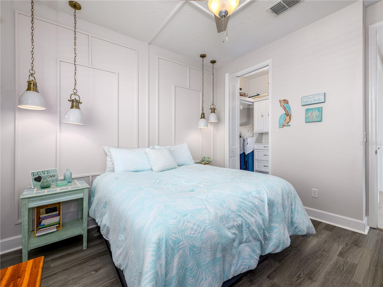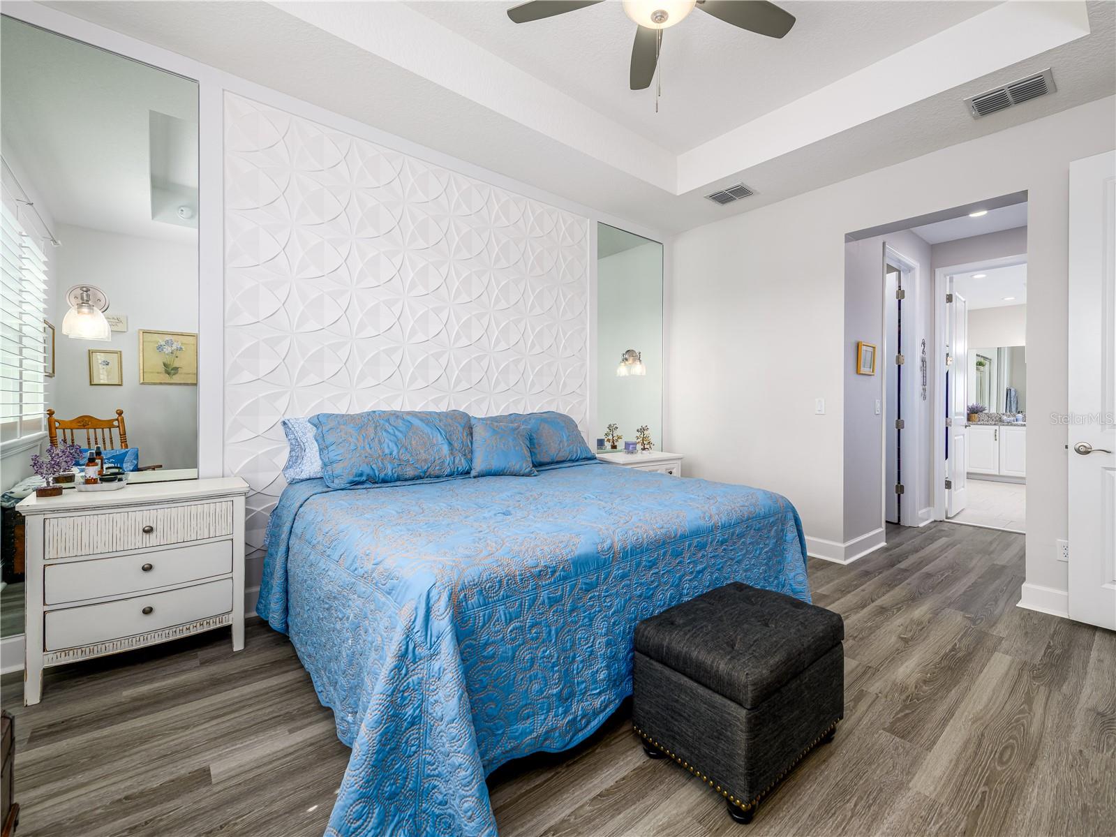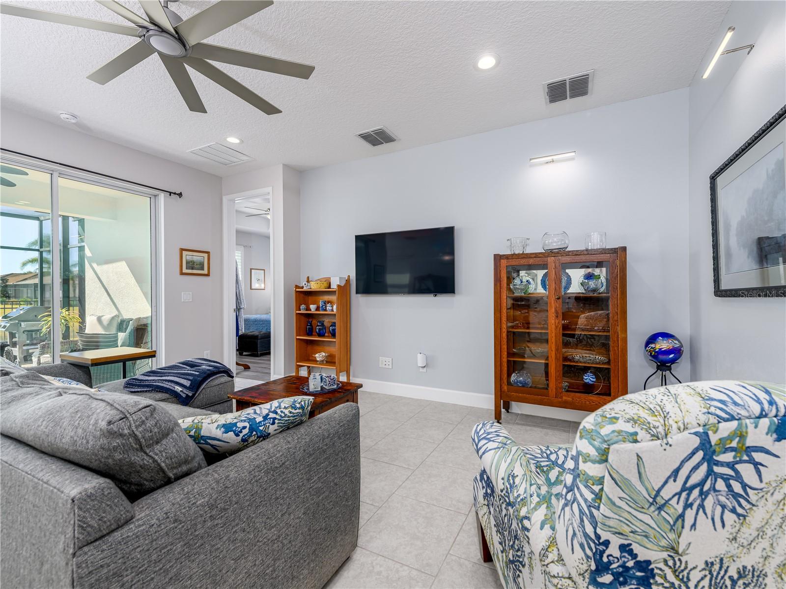 Wonderful opportunity to live in the sought-after Valencia Del Sol exclusive 55+ private community boasting luxury and location. Built in 2020, this perfectly appointed 2-bedroom, 2-bathroom plus enclosed office single family home features 1,600 square feet of flawlessly designed living space. The open floor plan, perfect for entertaining, sweeps you into a glorious water and greenery view from your living room through the extended lanai. Any professional or amateur chef will love the kitchen featuring a gas stove/range, granite countertops, large pantry, 42" cabinets, large island and a flow that makes cooking a breeze. Off the main living area, you will find the primary suite with custom built-in walk-in closet and a beautifully designed bathroom featuring a large shower, dual vanities, and a linen closet. Additional features include 9-foot ceilings, a two-car garage and built-ins throughout. Residents of Valencia Del Sol enjoy a vibrant, low-maintenance lifestyle with resort-style amenities including a clubhouse with bistro and outdoor bar, fitness center, beach-entry pool, pickleball and tennis courts, bocce ball, game rooms, and organized social events. Two dog parks add convenience for pet owners. Ideally located close to shopping and just minutes from beaches and Tampa International Airport. This move-in ready home offers the best of Florida living in a community large enough to offer all the amenities and small enough where friends are right around the corner.