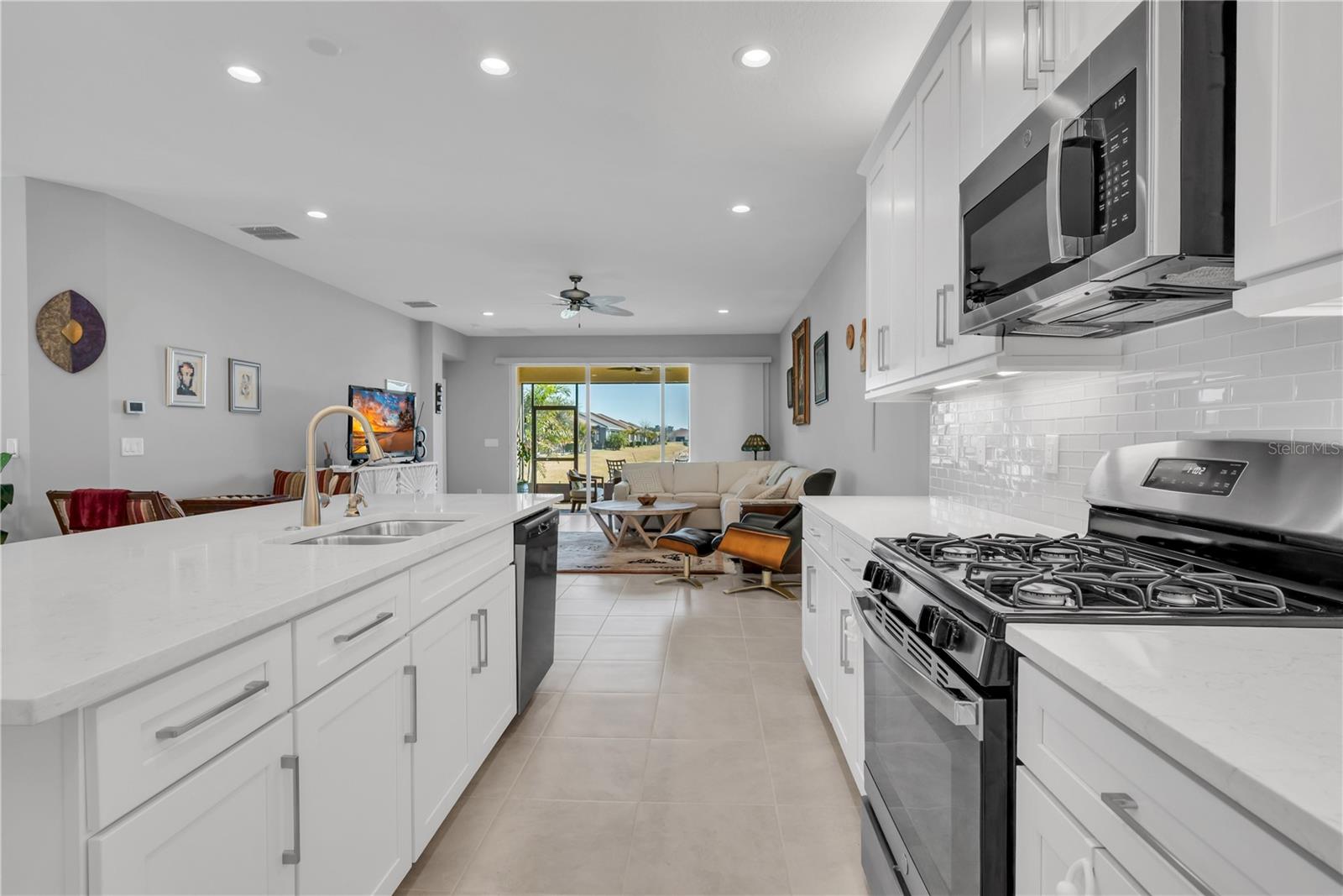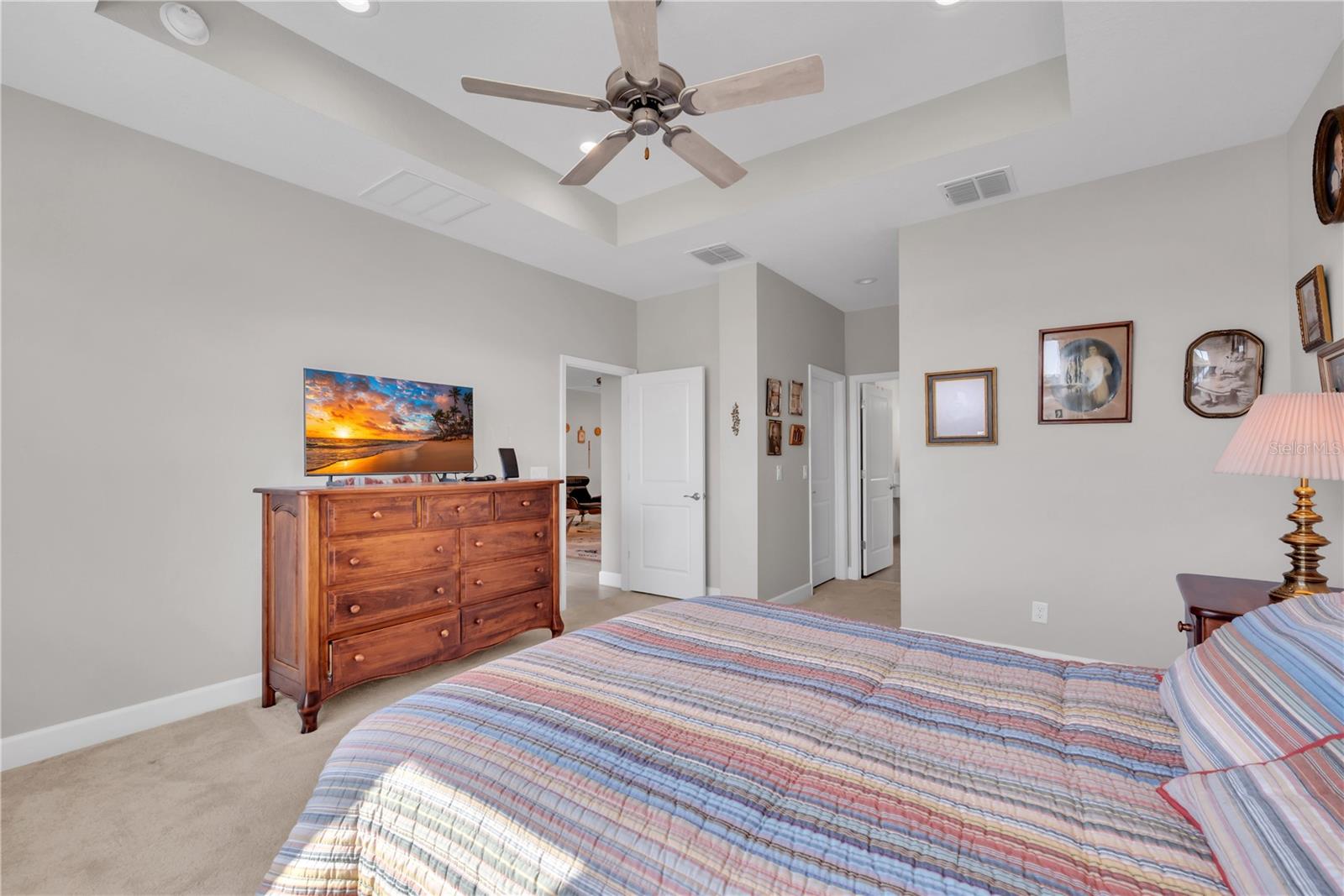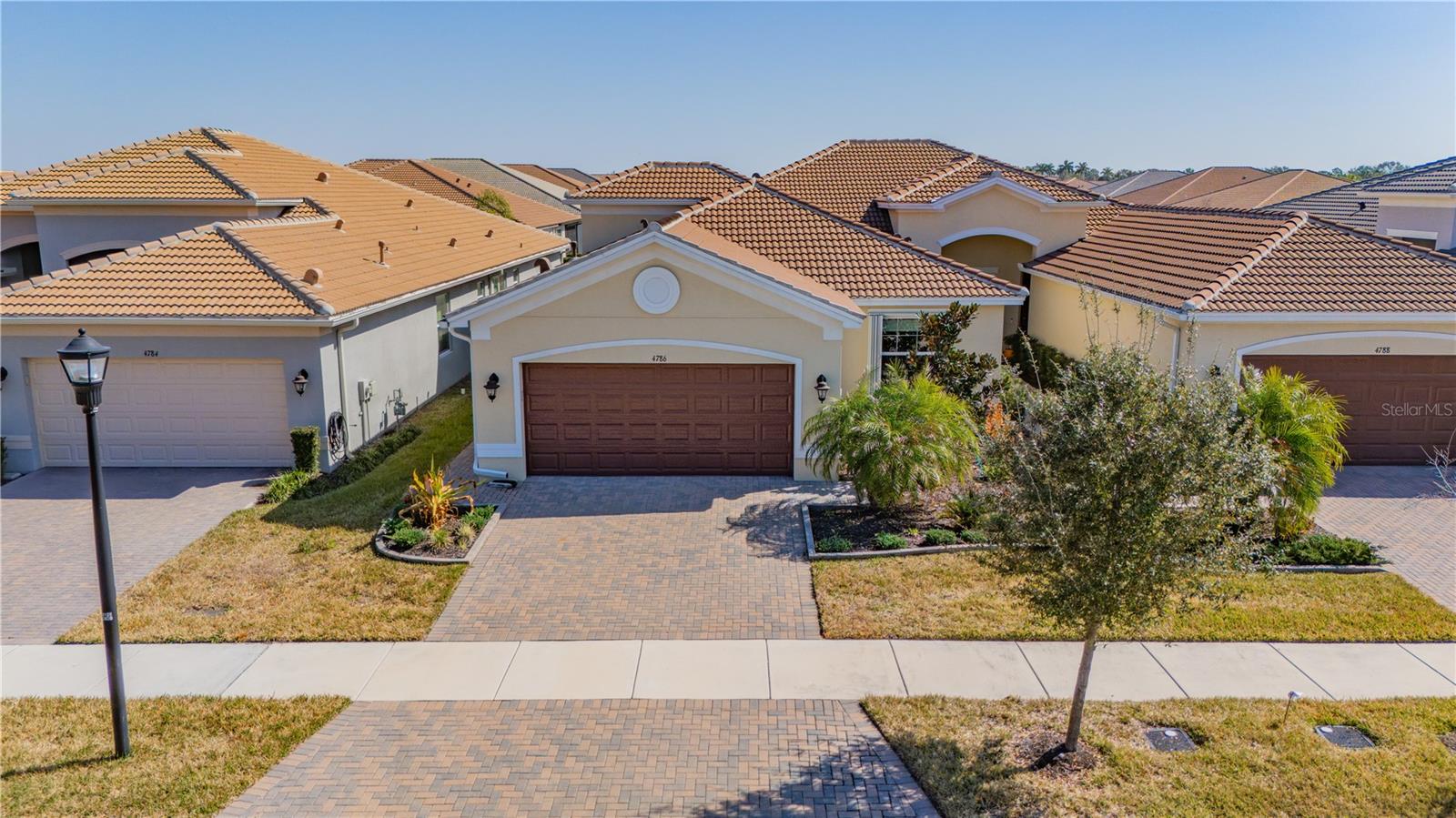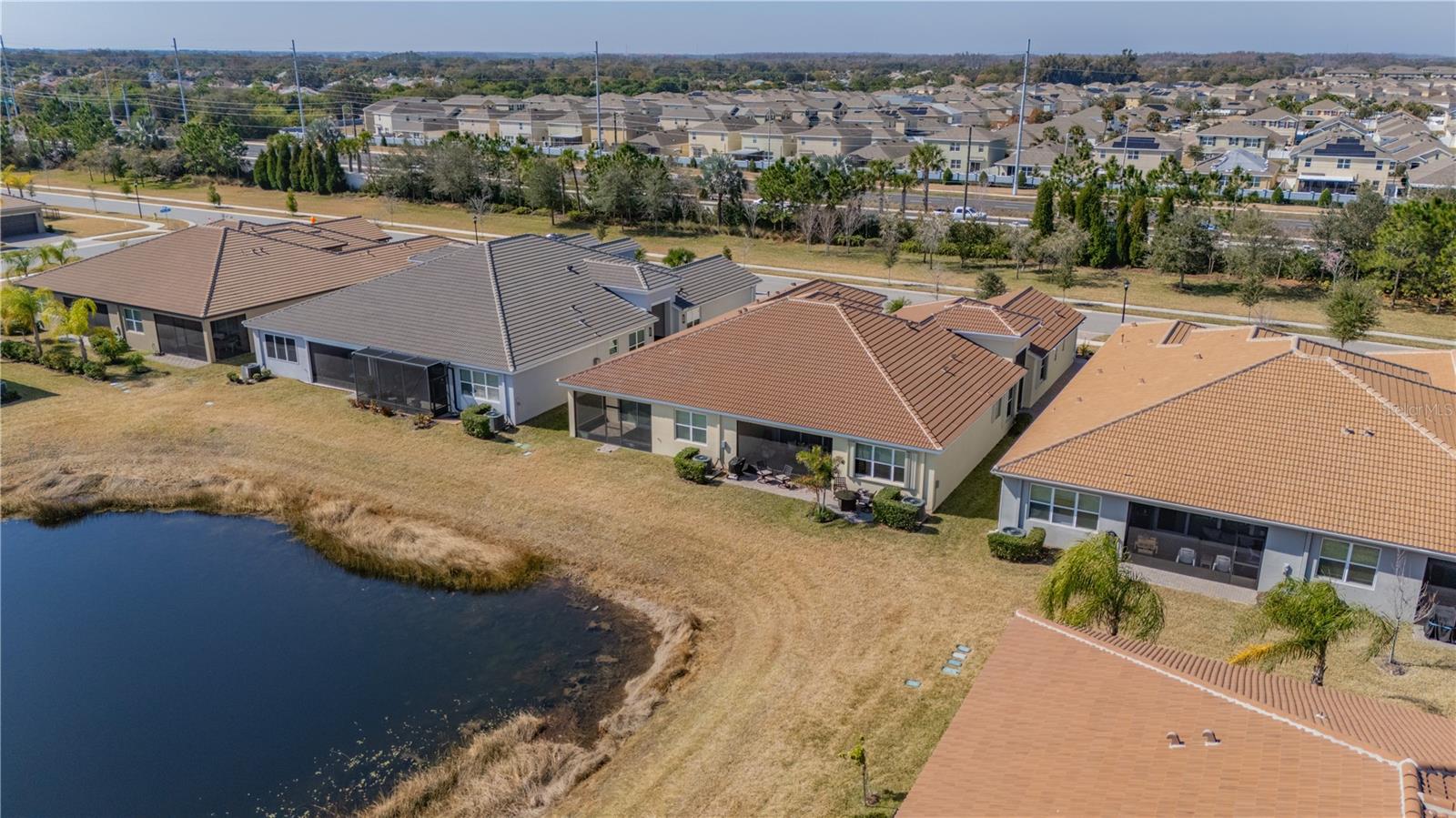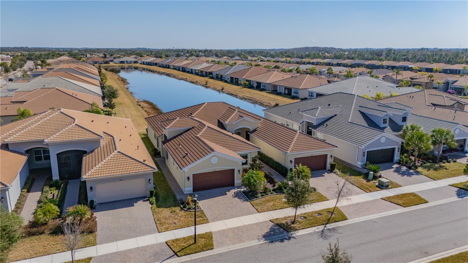 Welcome to Valencia del Sol, the most exciting 55+ community offering Tampa residents a lifestyle full of endless entertainment, action-packed activities, and resort-style relaxation. Redefining carefree living on Florida’s Gulf Coast, Valencia del Sol is where you’ll experience the perfect blend of luxury and leisure. This luxurious York model is designed with an open great room plan and features 2 spacious bedrooms, a large den (or 3rd bedroom), 2.5 bathrooms, and a 2-car garage. As you approach the home via the beautiful brick paver walkway, you'll be greeted by lush landscaping and a stunning decorative glass entry door. Step inside and be impressed by the upgraded tile plank flooring throughout the main living areas and den, offering a clean, low-maintenance aesthetic. The gourmet kitchen is a chef’s dream, open to the informal dining room and spacious great room. Large glass sliders lead to the screened lanai, where you can enjoy tranquil water views that will truly take your breath away. The kitchen features high-end cabinets, custom pull-outs, and upper and lower lighting with crown molding, soft-closing action drawers and the large kitchen island boasts a custom quartz countertop with a counter-height extended bar top. Additional highlights include an undermount stainless single-bowl sink, designer subway tile backsplash, panel package island surround, built-in cabinet pantry and upgraded stainless steel appliances such as a gas slide-in range, French door refrigerator, and space-saver microwave. The primary suite is both spacious and serene, with a coffered ceiling and two large walk-in closets. The ensuite bathroom features a luxurious walk-in shower with ceiling-height tile, quartz countertops, and separate vanities with upgraded cabinetry. The comfort-height commode completes this relaxing retreat. The second bedroom offers luxury flooring and a walk-in closet, while the second bathroom features a glass-enclosed shower. The den (or 3rd bedroom) boasts 8-foot double doors for added elegance. Guests will appreciate the conveniently located powder room, and the laundry room comes with a washer and dryer for your convenience. This home is loaded with upgrades such as a programmable thermostat, custom crown molding, designer light fixtures and ceiling fans. Plus, with accordion type hurricane shutters. Conveniently located within 30-60 minutes of Tampa, St. Petersburg, and Sarasota, this spectacular home is ready for you to make it your own. Schedule a showing today—this gem won’t last long!