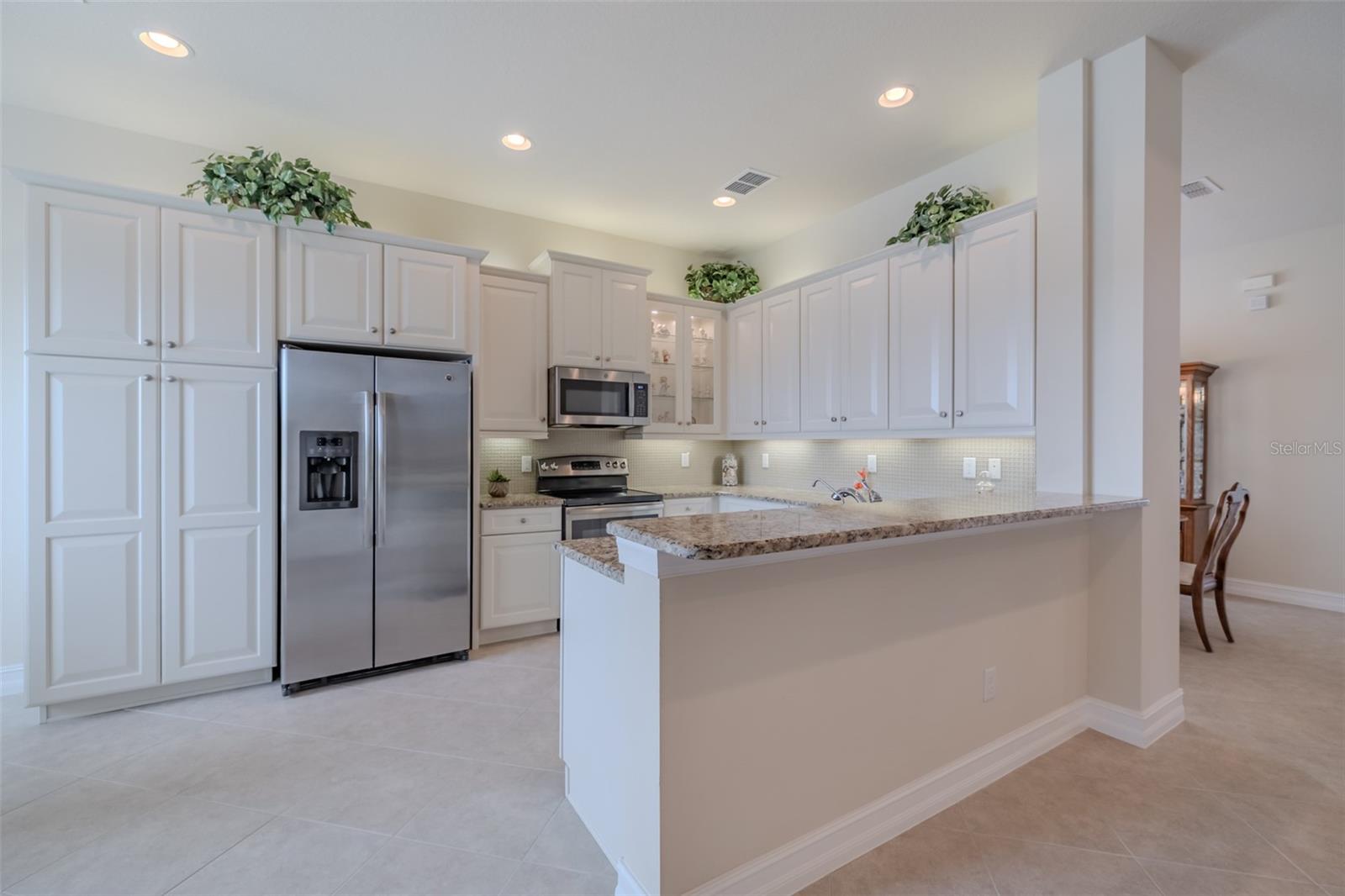 Experience the best of Florida retirement living in the highly sought-after Sorrento model by GL Homes—a beautifully maintained residence in Valencia Lakes, Tampa Bay’s premier 55+ Active Adult Community. Offering 1,823 square feet of air-conditioned living space, this thoughtfully designed home welcomes you with an open floor plan, soaring 12.6’ tray ceilings, and a stunning water view the moment you step through the door. The expansive great room features a 10’ tray ceiling, recessed lighting, and a lighted ceiling fan, while 12-foot sliding glass doors lead to a screened-in lanai overlooking the tranquil pond—perfect for morning coffee or relaxing sunsets. The exterior showcases timeless curb appeal with a barrel tile roof, whole-house gutters, hurricane storm shutters, and a 2-car garage. Enjoy peace of mind with major updates including a 3.5-ton heat pump air handler (2025), Rheem Professional water heater with expansion tank (2023), and a Culligan Medallist Plus water softener system. Designed for both everyday comfort and entertaining, the gourmet kitchen boasts solid wood cabinetry, granite countertops, glass tile backsplash, stainless steel GE appliances, double sink, spacious pantry, and abundant storage. The bar-height granite counter seats four and opens to the great room, while the bright dinette with large windows frames peaceful pond views. A dedicated dining room easily accommodates eight guests—ideal for hosting holidays and dinner parties. Flexible living space includes a generous den with double doors and three large windows perfect as a home office, hobby room, or third bedroom. The guest suite offers privacy with a walk-in closet and adjacent full bath featuring granite countertops and a tiled bath/shower combination. The primary suite is a true retreat (12.6’ x 17.4’), complete with three large windows, a large walk-in closet, and a spa-inspired ensuite bath featuring separate vanities with granite counters, a make-up area, linen closet, tiled walk-in shower with built-in bench, and private water closet. A spacious laundry room includes overhead cabinetry, GE washer and dryer, laundry sink with cabinet, and an additional storage closet—because organized living makes retirement even sweeter. Beyond your front door, Valencia Lakes offers a vibrant, resort-style lifestyle centered around a spectacular 40,000 sq. ft. clubhouse featuring live entertainment, dances, and more than 100 clubs. Residents enjoy 7 pickleball courts, 6 lighted Har-Tru tennis courts, softball field, bocce, shuffleboard, basketball half court, miles of walking paths, craft studios, card and billiards rooms, community garden, dog park, resort-style pool, resistance and lap pools, sauna and steam rooms, and a 5,000 sq. ft. state-of-the-art fitness center with professional classes. Conveniently located near Tampa, Sarasota, and St. Petersburg, with exceptional shopping, medical facilities, and some of Florida’s most beautiful beaches just a short drive away, this home offers not just a place to live—but a lifestyle to embrace. Seize the day and begin living your idyllic Florida dream today.