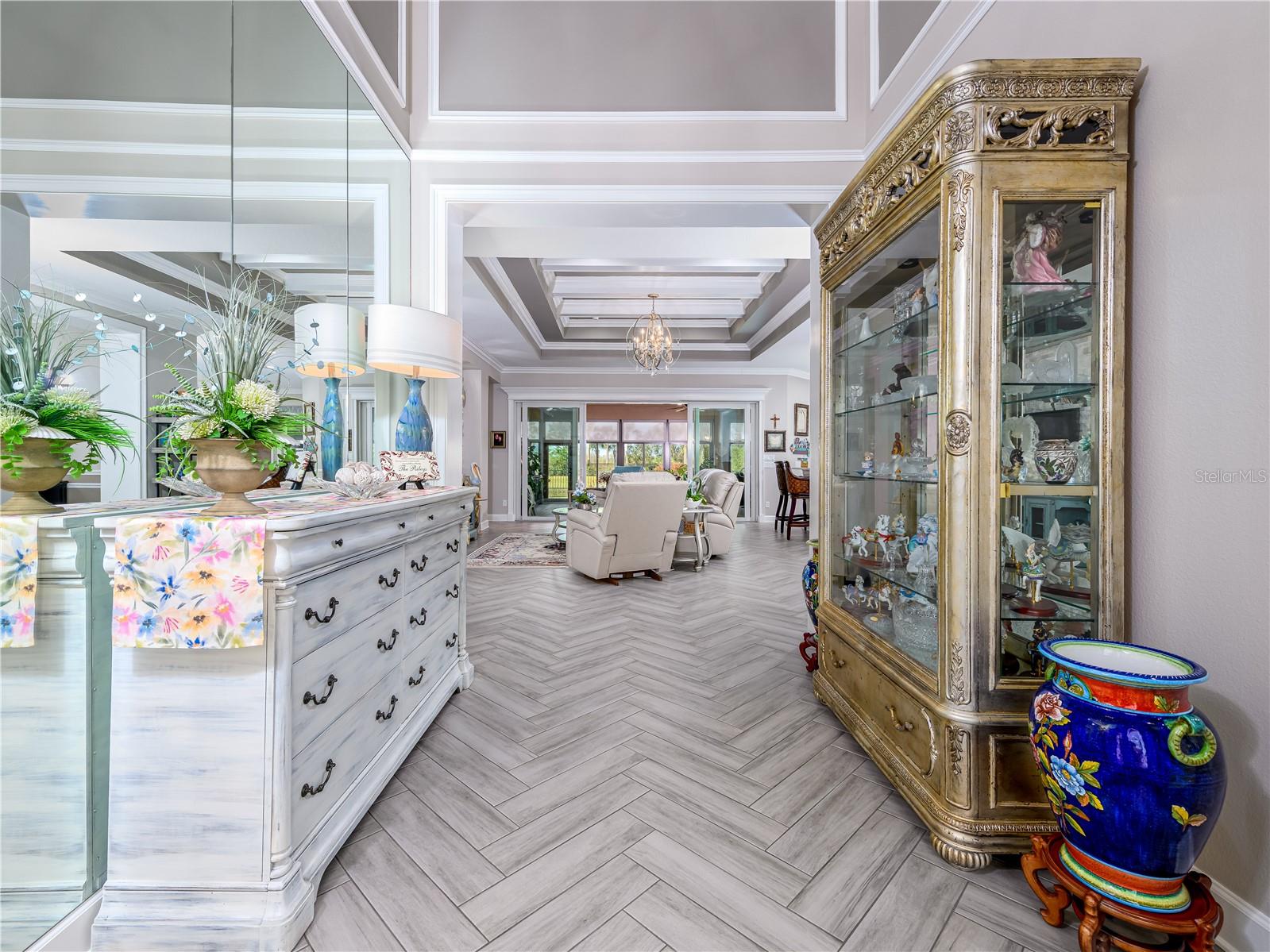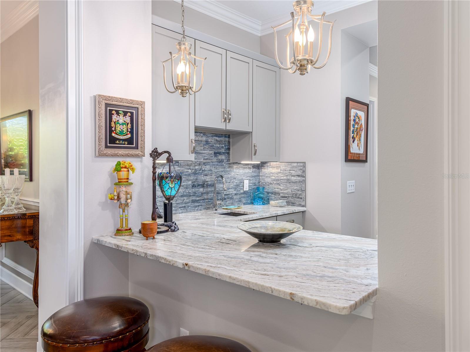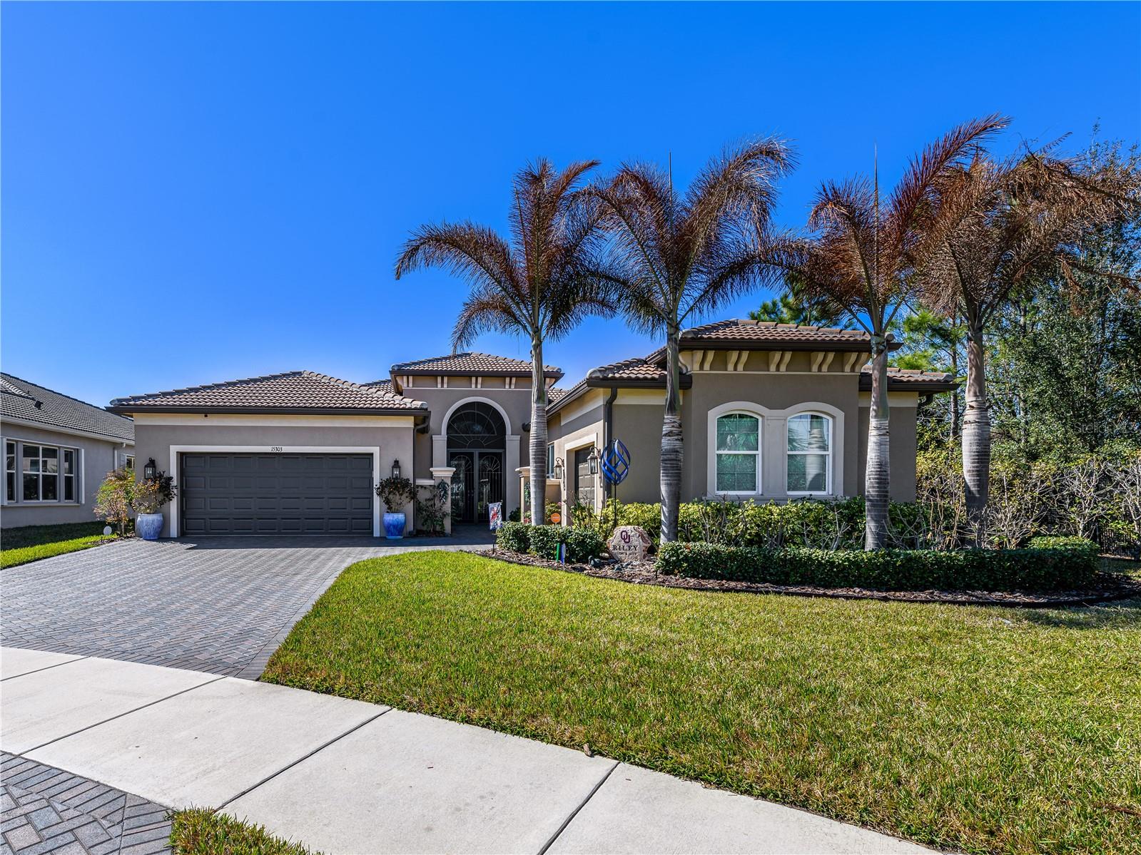 Welcome home to the sought-after Valencia Del Sol exclusive 55+ private community boasting luxury, amenities and location. Built in 2020, this Carlyle Model, wonderfully appointed 3 bedroom; 3.5 bath home promises endless opportunities for entertaining or quiet evenings in your own oasis. Enter through the newly screened front porch (2025) opening custom leaded glass double doors to a mirrored entry way lighted by a tasteful chandelier. Luxury continues in the chef-inspired gourmet kitchen with endless cupboard space, quartz countertops, gas range with dual ovens, kitchen island with veggie sink and dining area. But of course, you also have a custom-built outdoor kitchen in the oversized Florida Room with more than ample cupboard space, an Alfresco grill with range hood, and solid surface countertops. Before joining your guests, let them fill their glass in the separated wet bar complete with a wine fridge, bar sink, solid surface countertops, pendant lighting and generous cabinet space. Settle into the great room where the home’s open layout let’s conversation and entertainment drift from room to room. At dinner’s call, gather in the spacious and beautifully lit dining room just off the kitchen and great room to enjoy the flavors your chef’s kitchen has inspired. Top off the evening nestled in the over 750 square foot Florida Room watching the sunset over the water view. As nightfall calls, the primary suite will bathe you in comfort as you enjoy pond views and elegant finishes. Two walk-in closets with built-ins and an ensuite bath featuring dual vanities, shower and soaking tub. Guests can retire to the second bedroom which also features a walk-in closet and private bath. The third bedroom, complete with a walk-in closet, boasts privacy and a full bathroom with an exquisite walk-in shower just steps away. The spacious Den is a remote worker or hobbyist’s dream with built in double desk and shelving. Extended landscaping is a treat to your eyes in the front, side and backyard extending this home’s beauty at every view. Additional features include extensive crown-molding, Herringbone tile throughout, custom shades, a split three-car garage and hurricane impact windows for effortless peace of mind. Valencia Del Sol boasts social events, full fitness center, meeting rooms, art and card rooms, tennis and pickleball courts, a resort style pool with cabanas galore with access to the restaurant from the pool, bocce ball, a fire pit, and dog parks. The on-site restaurant serves lunches and dinners, Sunday brunch, and caters the many social events that can fill your calendar just down the road from your front door. Ideally located close to shopping and just minutes from beaches and Tampa International Airport. This move-in ready home offers the best of Florida living in a community large enough to offer all the amenities and small enough where friends are right around the corner.