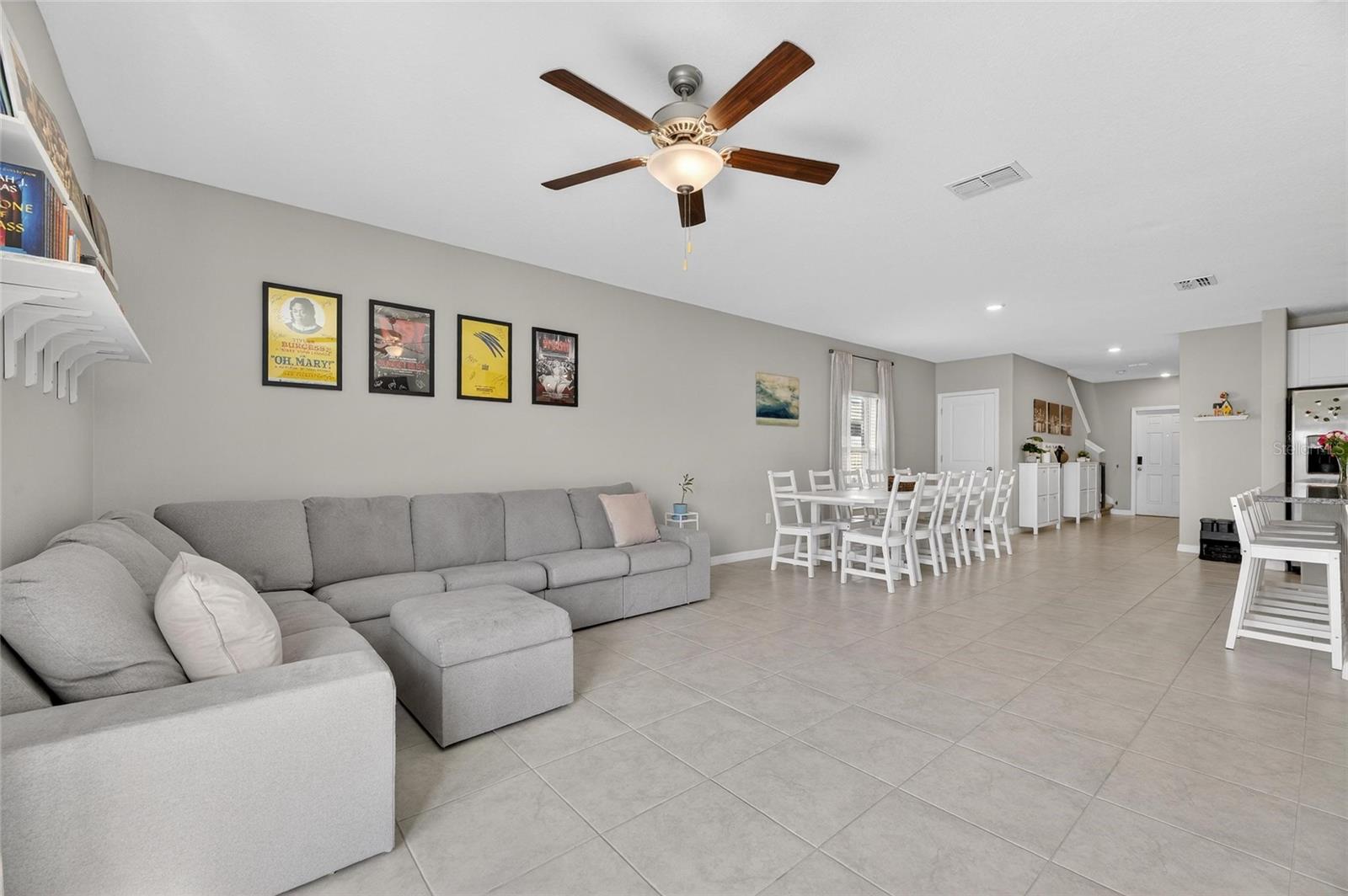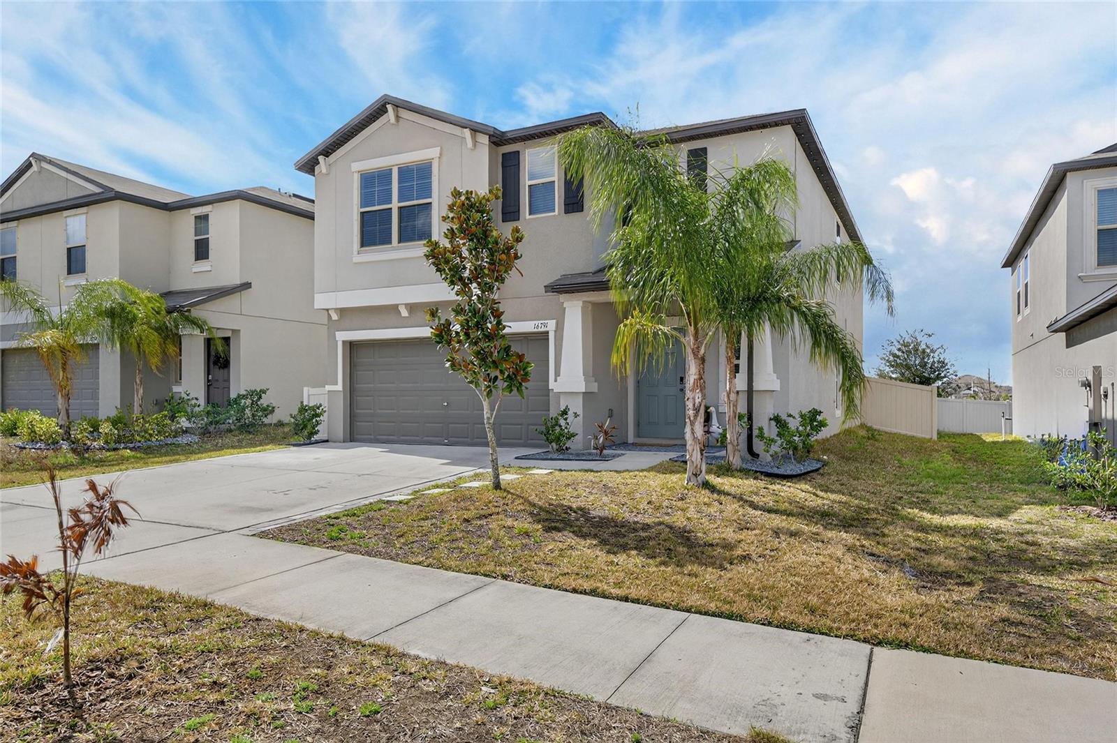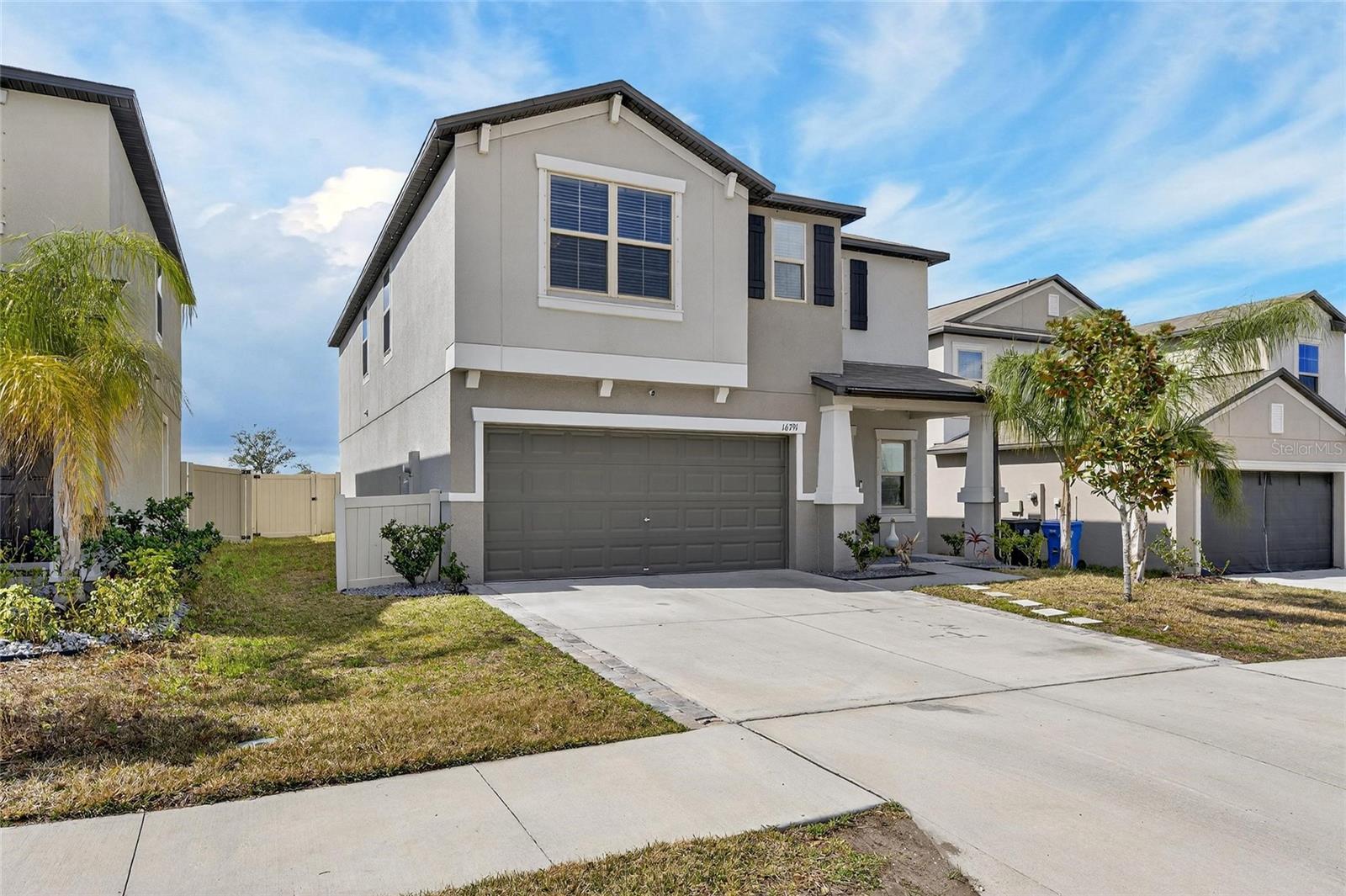 Welcome to this exceptional 2022-built residence offering the perfect blend of modern design, comfort, and effortless Florida living. With six spacious bedrooms, three full bathrooms, and a versatile loft, this thoughtfully designed two-story home provides extraordinary space and flexibility for today’s lifestyle. From the moment you arrive, the home’s beautiful curb appeal and low-maintenance landscaping create a polished first impression. Specialized exterior lighting elegantly enhances the façade, allowing you to showcase the home for holidays, special occasions, or simply enjoy a warm, ambient glow in the evenings. Inside, tile flooring flows seamlessly throughout the first floor, complementing the expansive open-concept design and soaring ceilings. The generous living and dining areas create an inviting atmosphere ideal for both intimate gatherings and large-scale entertaining. At the heart of the home, the kitchen is as functional as it is impressive, featuring granite countertops, abundant prep space, stainless steel appliances, and an oversized island with ample seating. The kitchen opens beautifully to a dining area spacious enough to accommodate a ten-person table, creating a natural setting for memorable meals and celebrations. A highly desirable first-floor bedroom and full bath provide exceptional flexibility, ideal for guests, multigenerational living, or a private home office. Sliding glass doors from the family room lead to the outdoor patio and fully fenced backyard — your own private retreat and slice of Florida sunshine. Upstairs, a generous loft offers additional living space perfect for a media room, playroom, study area, or fitness space. Five well-appointed secondary bedrooms provide comfort and versatility, ensuring room for everyone and everything. An additional full bathroom with countertops and dual sinks supports the needs of a busy household with ease. The split floor plan enhances privacy for the primary suite, a true sanctuary designed for rest and relaxation. This spacious retreat comfortably accommodates large furnishings and features dual vanities, a separate water closet, a walk-in closet, tiled flooring, and a private shower area — thoughtfully designed for both luxury and functionality. Throughout the home, a neutral color palette and modern finishes create a timeless aesthetic. Only four years young, this residence is move-in ready and waiting for you to make it your own. Residents enjoy access to community amenities including a cabana-style pool, clubhouse, playground, and basketball courts, all with a low HOA fee. Ideally situated near major highways, medical facilities, shopping, dining, MacDill Air Force Base, and the beautiful Gulf Coast beaches, the location offers both convenience and lifestyle. This remarkable six-bedroom home delivers the space, comfort, and setting you’ve been searching for. Schedule your private tour and experience everything this stunning property has to offer.