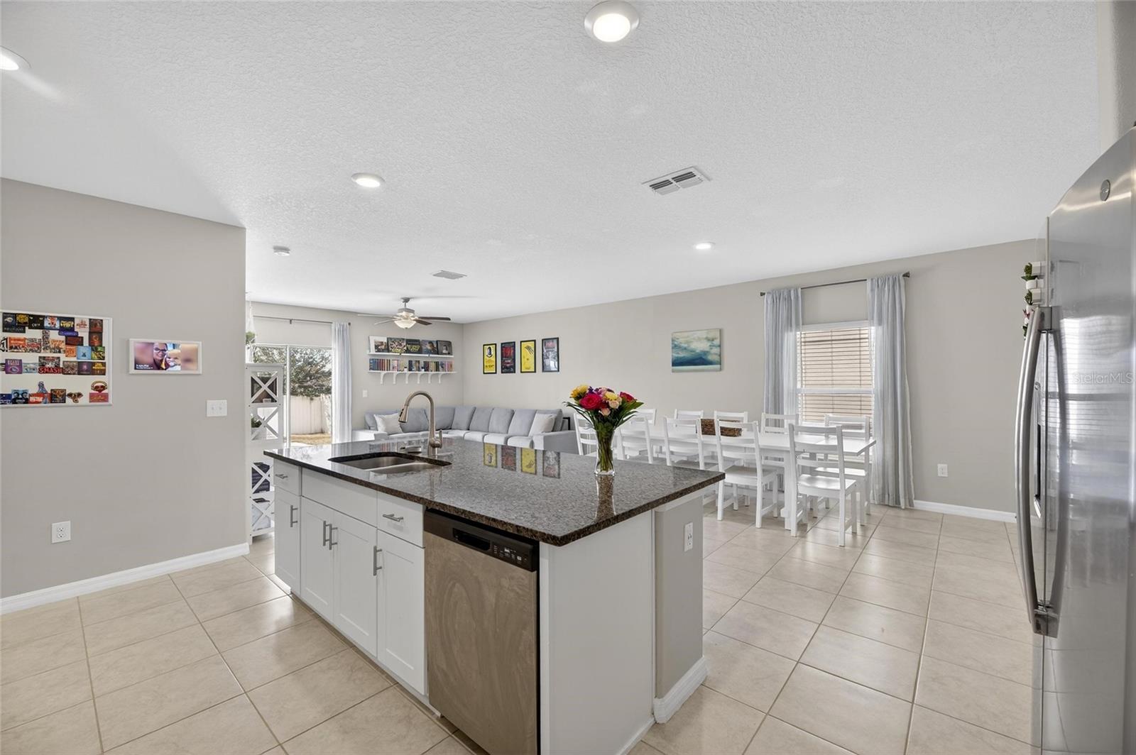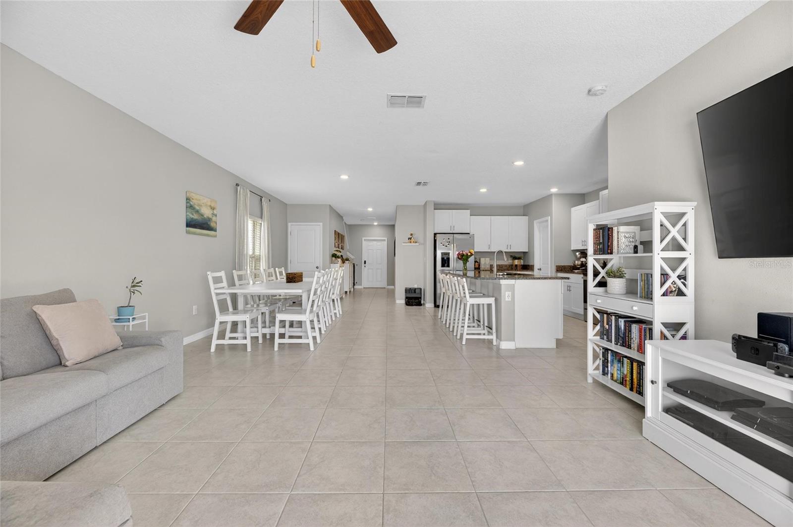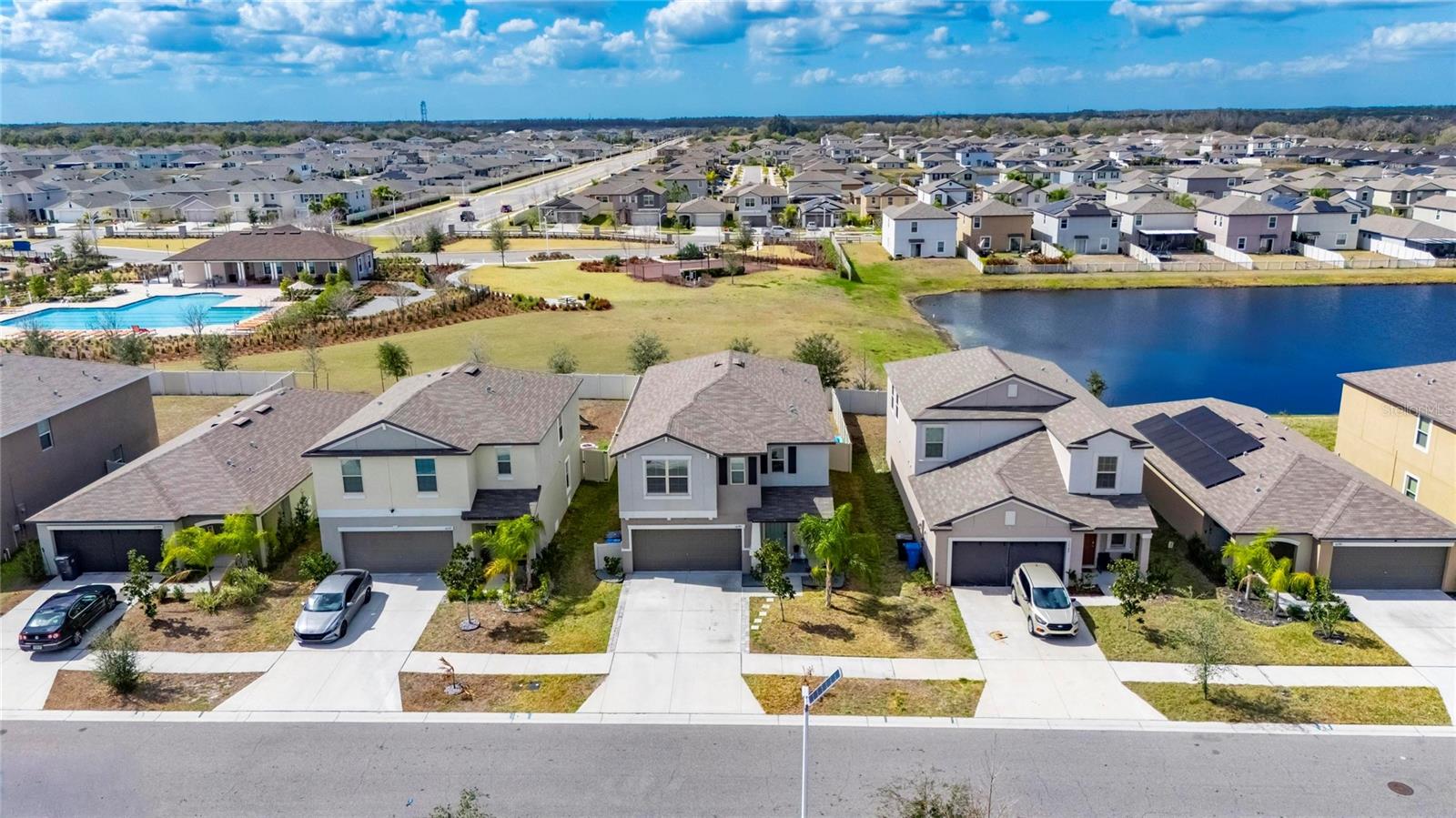Welcome to this exceptional 2022-built residence offering the perfect blend of modern design, comfort, and effortless Florida living. With six spacious bedrooms, three full bathrooms, and a versatile loft, this thoughtfully designed two-story home provides extraordinary space and flexibility for today’s lifestyle. From the moment you arrive, the home’s beautiful curb appeal and low-maintenance landscaping create a polished first impression. Specialized exterior lighting elegantly enhances the façade, allowing you to showcase the home for holidays, special occasions, or simply enjoy a warm, ambient glow in the evenings. Inside, tile flooring flows seamlessly throughout the first floor, complementing the expansive open-concept design and soaring ceilings. The generous living and dining areas create an inviting atmosphere ideal for both intimate gatherings and large-scale entertaining. At the heart of the home, the kitchen is as functional as it is impressive, featuring granite countertops, abundant prep space, stainless steel appliances, and an oversized island with ample seating. The kitchen opens beautifully to a dining area spacious enough to accommodate a ten-person table, creating a natural setting for memorable meals and celebrations. A highly desirable first-floor bedroom and full bath provide exceptional flexibility, ideal for guests, multigenerational living, or a private home office. Sliding glass doors from the family room lead to the outdoor patio and fully fenced backyard — your own private retreat and slice of Florida sunshine. Upstairs, a generous loft offers additional living space perfect for a media room, playroom, study area, or fitness space. Five well-appointed secondary bedrooms provide comfort and versatility, ensuring room for everyone and everything. An additional full bathroom with countertops and dual sinks supports the needs of a busy household with ease. The split floor plan enhances privacy for the primary suite, a true sanctuary designed for rest and relaxation. This spacious retreat comfortably accommodates large furnishings and features dual vanities, a separate water closet, a walk-in closet, tiled flooring, and a private shower area — thoughtfully designed for both luxury and functionality. Throughout the home, a neutral color palette and modern finishes create a timeless aesthetic. Only four years young, this residence is move-in ready and waiting for you to make it your own. Residents enjoy access to community amenities including a cabana-style pool, clubhouse, playground, and basketball courts, all with a low HOA fee. Ideally situated near major highways, medical facilities, shopping, dining, MacDill Air Force Base, and the beautiful Gulf Coast beaches, the location offers both convenience and lifestyle. This remarkable six-bedroom home delivers the space, comfort, and setting you’ve been searching for. Schedule your private tour and experience everything this stunning property has to offer.