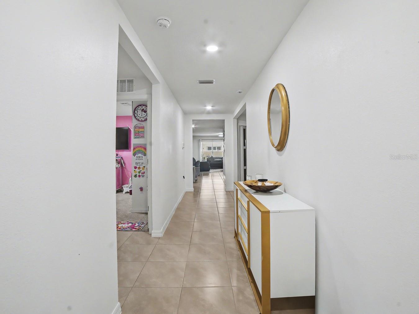 One or more photo(s) has been virtually staged. Welcome to this beautifully maintained 4-bedroom, 2-bathroom Cali floor plan by D.R. Horton, located in the highly desirable Berry Bay community. This move-in ready home offers modern design, thoughtful upgrades, and exceptional convenience. The thoughtfully designed layout optimizes living space with an open-concept kitchen overlooking the living area, dining room, and covered outdoor lanai—perfect for entertaining and everyday living. The well-appointed kitchen comes complete with all appliances, including a refrigerator, built-in dishwasher, electric range, and microwave. White cabinetry, granite countertops, recessed lighting, a walk-in pantry, and a spacious center island that comfortably accommodates three counter stools complete the space. Ceramic tile flooring flows throughout the hallway, wet areas, gathering room, and dining room, offering durability and a cohesive contemporary feel. Sliding glass doors in the dining area lead directly to the screened lanai and patio, creating seamless indoor-outdoor living. The owner’s suite is privately located at the back of the home and features an en-suite bathroom with dual sinks and white cabinetry. Two additional bedrooms share the secondary bathroom, which includes a convenient tub/shower combo. The fourth bedroom is situated near the laundry room, providing flexible space ideal for guests, a home office, or hobbies. As a bonus, this D.R. Horton Smart Home is equipped with advanced technology designed for comfort and security. Features include a Z-Wave programmable thermostat manufactured by Honeywell, a Z-Wave door lock manufactured by Kwikset, a Smart Switch, a touchscreen Smart Home control device manufactured by Qolsys Inc., an automation platform from Alarm.com, and an Alarm.com video doorbell. This integrated system allows you to monitor and control your home with ease—from adjusting the temperature to managing lighting and security—delivering modern convenience at its finest. Additional highlights include Hanwha Q CELLS solar panels for energy efficiency and an AC warranty (parts and labor) through September 2034. Purity Bay Whole House water filtration system plus water softener. Enjoy Florida living with a covered lanai, extended screened enclosure, and vinyl-fenced backyard. A spacious garage provides ample parking and storage. Berry Bay residents enjoy resort-style amenities including a sparkling swimming pool, clubhouse, scenic picnic areas, dog park, playground, basketball court, and pickleball court. The community is also conveniently located near Little Manatee River State Park, offering hiking trails, kayaking, camping, and beautiful natural surroundings just minutes away. Just a short drive north, Tampa has become the heart of Florida’s Gulf Coast and a top destination for new homeowners. With its convenient location, you’ll be close to Downtown Tampa, Tampa International Airport, and International Plaza and Bay Street, and just a bridge commute away from the world-class beaches of St. Petersburg and Clearwater. Enjoy waterfront dining, vibrant entertainment, and family attractions such as Busch Gardens Tampa Bay, ZooTampa at Lowry Park, and The Florida Aquarium. With professional sports teams, renowned hospitals, top-rated schools, and major universities, the Tampa Bay area offers every reason to call this home.