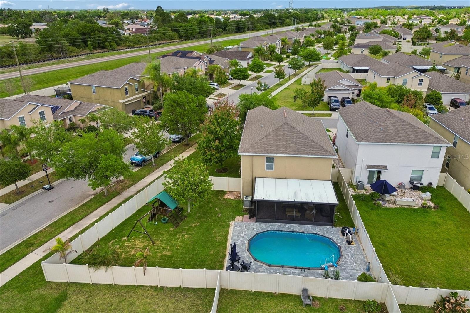 Spacious and beautifully designed 5-bedroom, 3-bath two-story pool home situated on an oversized corner lot of nearly a quarter acre. This property features an open and functional layout with generously sized living areas and an abundance of custom elements throughout. The eat-in kitchen offers a large island, perfect for gathering and entertaining. The expansive primary suite includes a private en suite bath for added comfort and convenience. Step outside to enjoy the screened lanai and sparkling pool—ideal for relaxing or hosting guests year-round. With ample space both inside and out, this home is perfect for those seeking comfort, style, and room to grow.