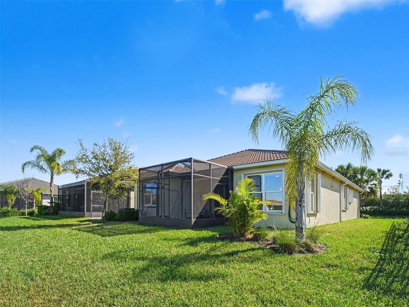 From the moment you step inside, you’re greeted by soaring ceilings, elegant crown molding, and a seamless open-concept floor plan designed for both entertaining and everyday living. Tile flooring flows effortlessly throughout the home, complemented by a warm beige palette, crisp white cabinetry, and modern finishes that create a timeless, sophisticated feel. The gourmet kitchen is a true showstopper, featuring quartz countertops, upgraded cabinetry, a spacious center island, stainless steel appliances, and a gas stove with exterior venting. Thoughtful details like under and above cabinet lighting elevate the space, while sliding glass doors lead directly to the extended screened lanai—complete with an electric hurricane/sun screen—blending indoor and outdoor living effortlessly. Retreat to the private owner’s suite, where a tray ceiling, dual closets with custom California Closet systems, and a spa-inspired bath create a serene escape. Every bedroom is thoughtfully designed with both comfort and organization in mind. This home is loaded with premium upgrades, including hurricane impact windows, permanent accordion shutters, a tankless water heater, whole-home water softener, reverse osmosis system, and a 50A EV charger in the extended epoxy-finished two-car garage. Even the laundry room has been elevated with cabinetry, premium appliances, and a utility sink. Every detail has been carefully curated—this home is truly move-in ready perfection. Located in the highly sought-after 55+ community of Valencia Del Sol, residents enjoy a resort-style lifestyle with world-class amenities, including a grand clubhouse, fitness center, resort and lap pools, pickleball and tennis courts, an upscale bistro, and a vibrant social calendar designed for active living. Perfectly positioned near shopping, dining, medical facilities, major highways, and just a short drive to Tampa, Sarasota, St. Petersburg, and the Gulf’s award-winning beaches, this home offers both convenience and luxury.