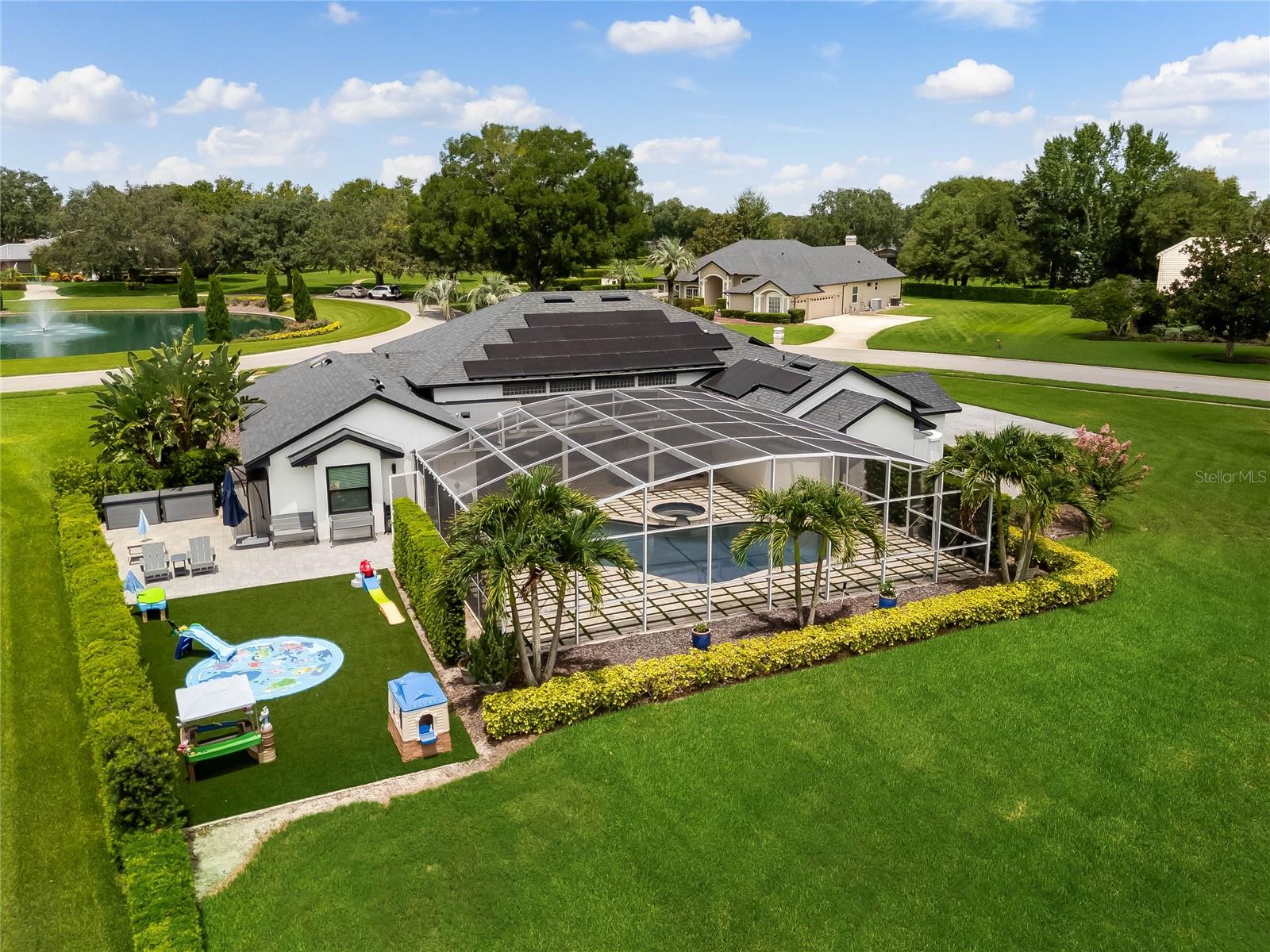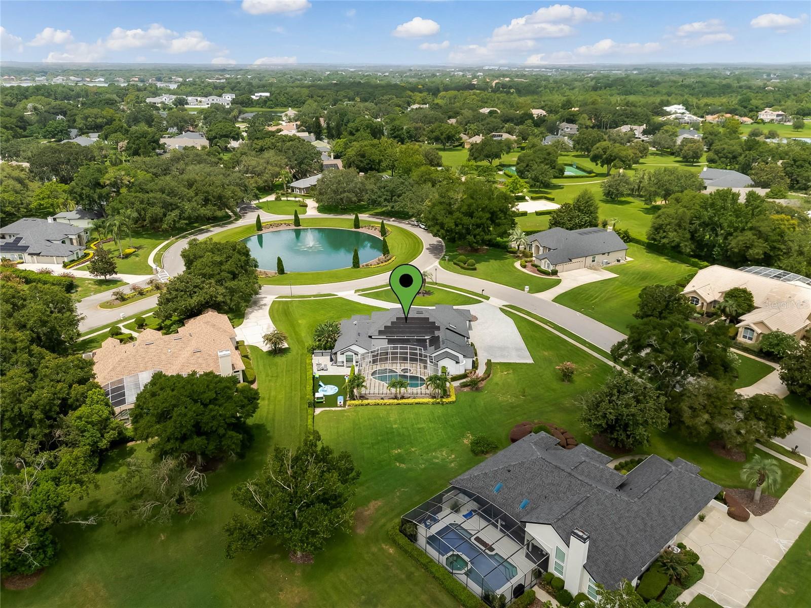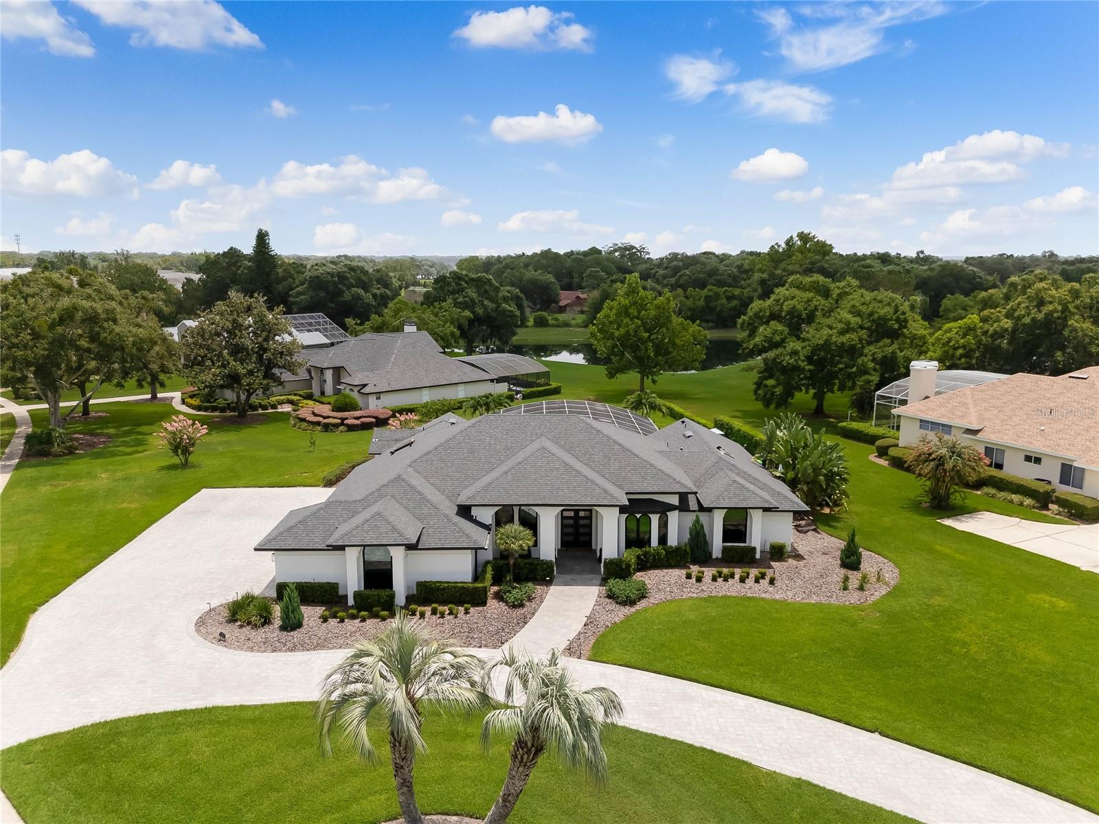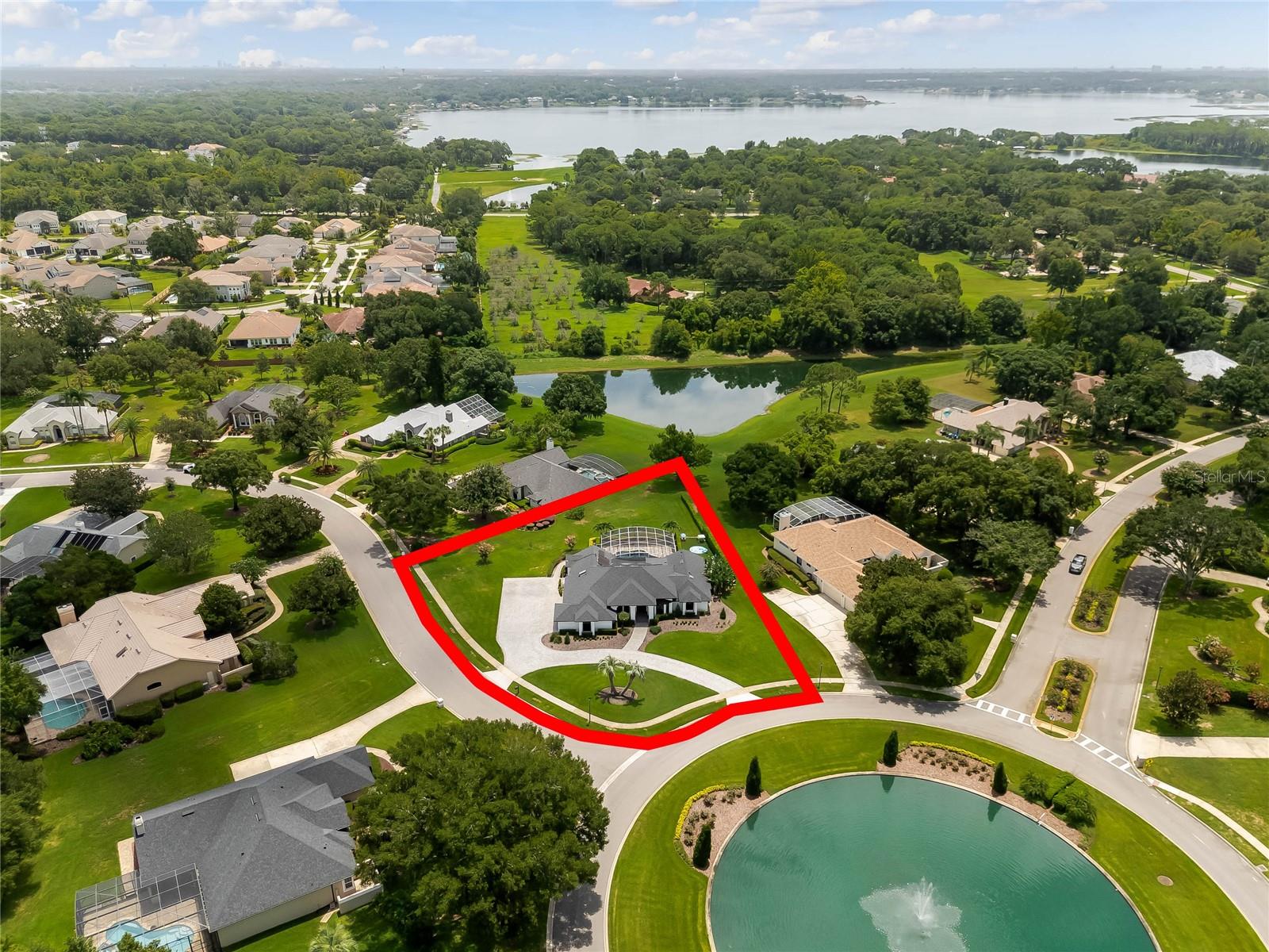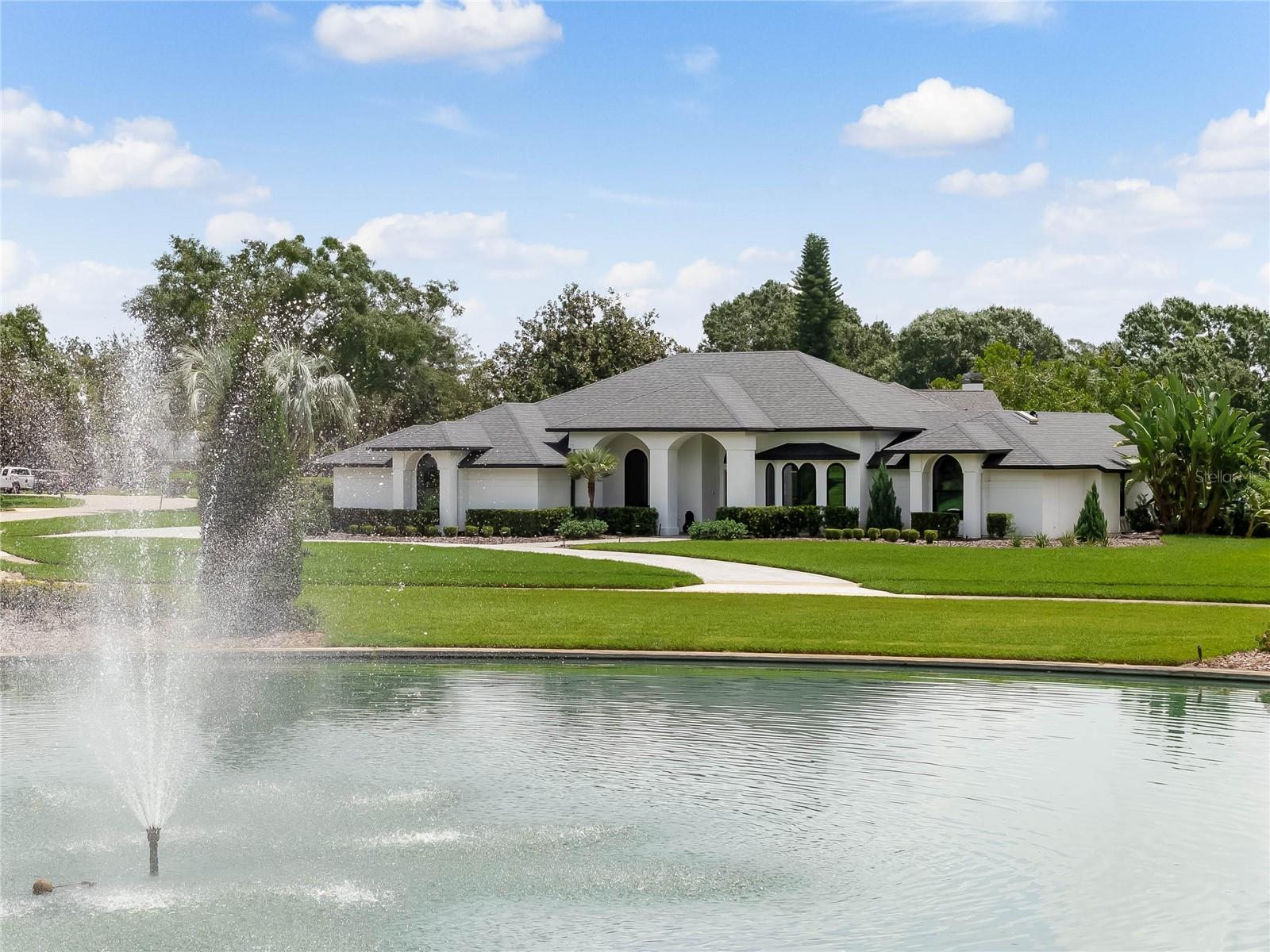 This custom-built home radiates charm and sophistication. Positioned on a generous corner lot of nearly 3/4 acre, it showcases a new architectural shingle roof, a 3-car garage with a paver circular drive, and impeccably landscaped grounds. With picturesque views of a pond adorned with an illuminated fountain in the front and a tranquil greenbelt in the rear, this executive residence offers unparalleled privacy and peace. Inside, the recently updated kitchen boasts granite countertops, wood cabinets, stainless steel appliances, and elegant luxury vinyl flooring that seamlessly flows into the family room. The entire home has been freshly painted and outfitted with new lanai screening, ensuring a move-in-ready experience. The lanai, featuring a sparkling pool and soothing spa, provides an idyllic retreat for relaxation and entertainment. The master suite serves as a serene sanctuary, featuring a roman-style walk-in shower and picturesque views overlooking the lanai and pond. Nestled in the highly sought-after Willows at Lake Rhea neighborhood, residents enjoy access to amenities such as scenic walking paths, a playground, and tennis courts. Conveniently located near Windermere Elementary School and local ball fields, this home harmoniously blends luxury with convenience—a remarkable opportunity for discerning buyers in search of a distinguished lifestyle.