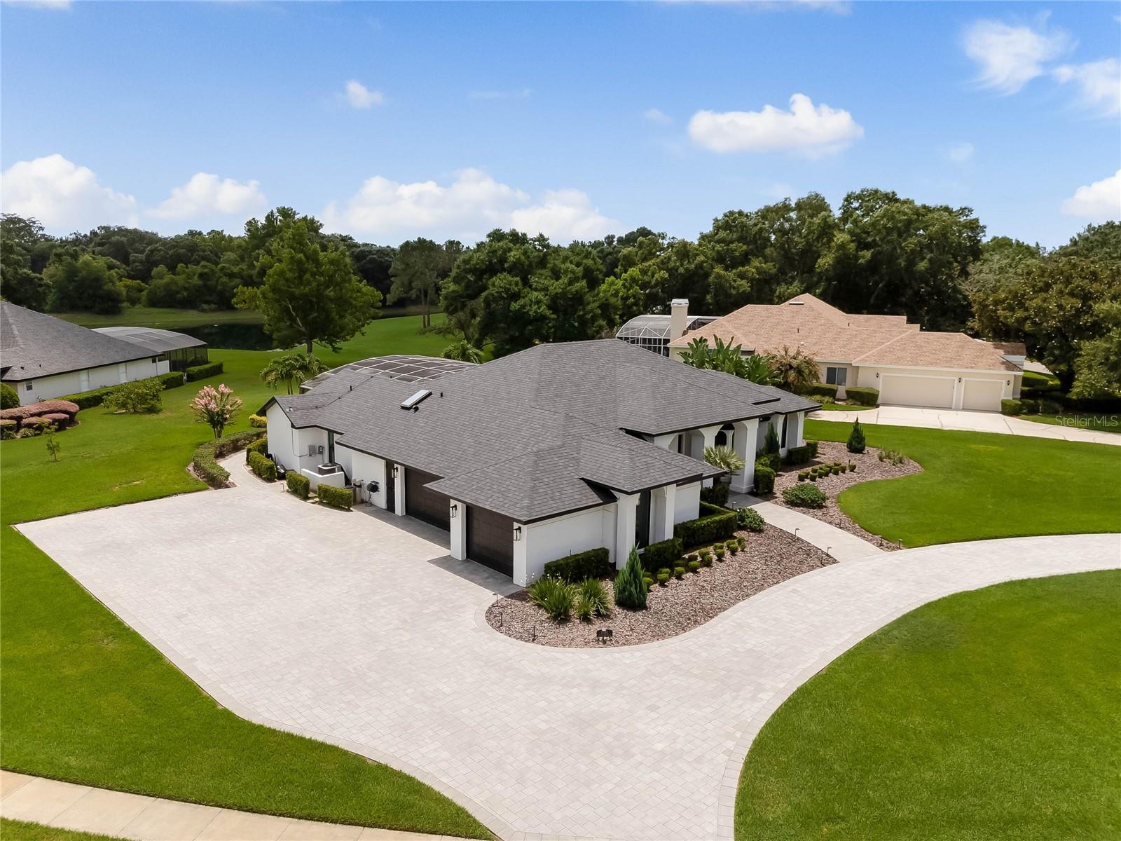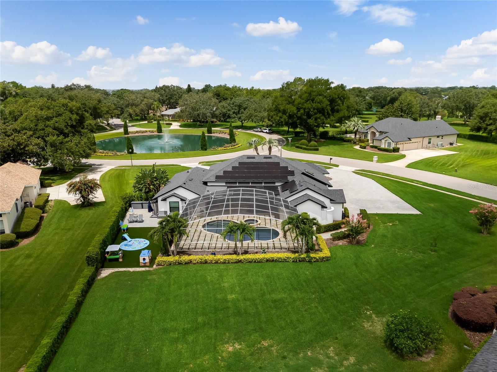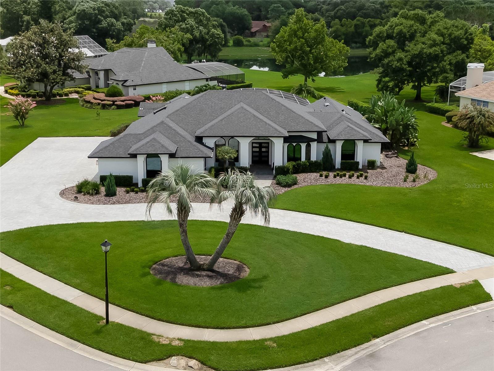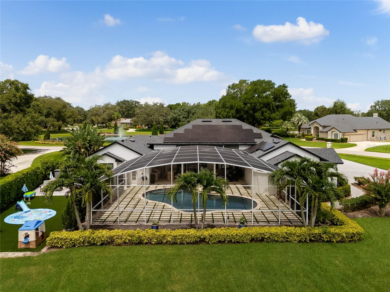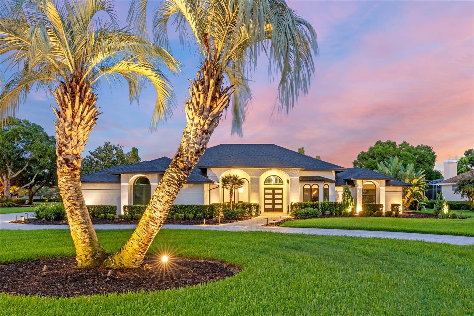 This custom-built home radiates charm and sophistication. Positioned on a generous corner lot of nearly 3/4 acre, it showcases a new architectural shingle roof, a 3-car garage with a paver circular drive, and impeccably landscaped grounds. With picturesque views of a pond adorned with an illuminated fountain in the front and a tranquil greenbelt in the rear, this executive residence offers unparalleled privacy and peace. Inside, the recently updated kitchen boasts granite countertops, wood cabinets, stainless steel appliances, and elegant luxury vinyl flooring that seamlessly flows into the family room. The entire home has been freshly painted and outfitted with new lanai screening, ensuring a move-in-ready experience. The lanai, featuring a sparkling pool and soothing spa, provides an idyllic retreat for relaxation and entertainment. The master suite serves as a serene sanctuary, featuring a roman-style walk-in shower and picturesque views overlooking the lanai and pond. Nestled in the highly sought-after Willows at Lake Rhea neighborhood, residents enjoy access to amenities such as scenic walking paths, a playground, and tennis courts. Conveniently located near Windermere Elementary School and local ball fields, this home harmoniously blends luxury with convenience—a remarkable opportunity for discerning buyers in search of a distinguished lifestyle.