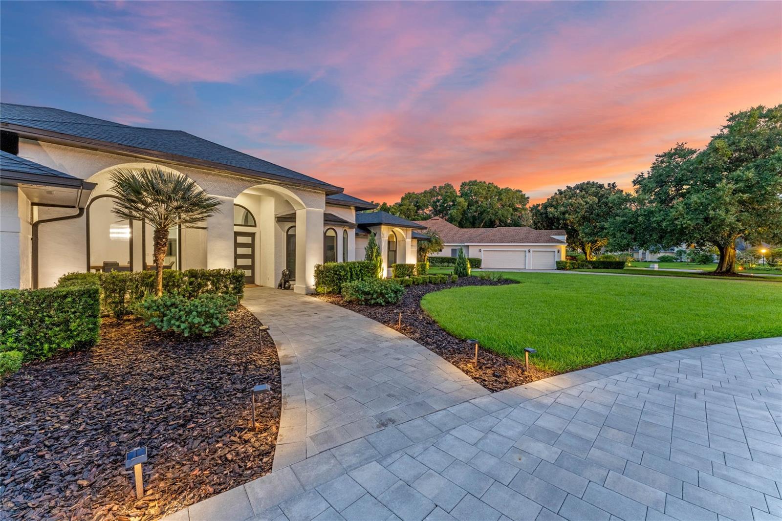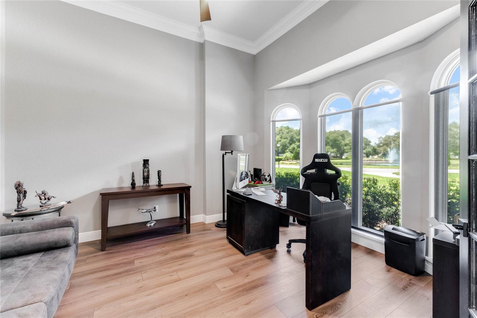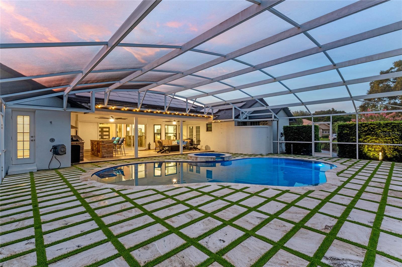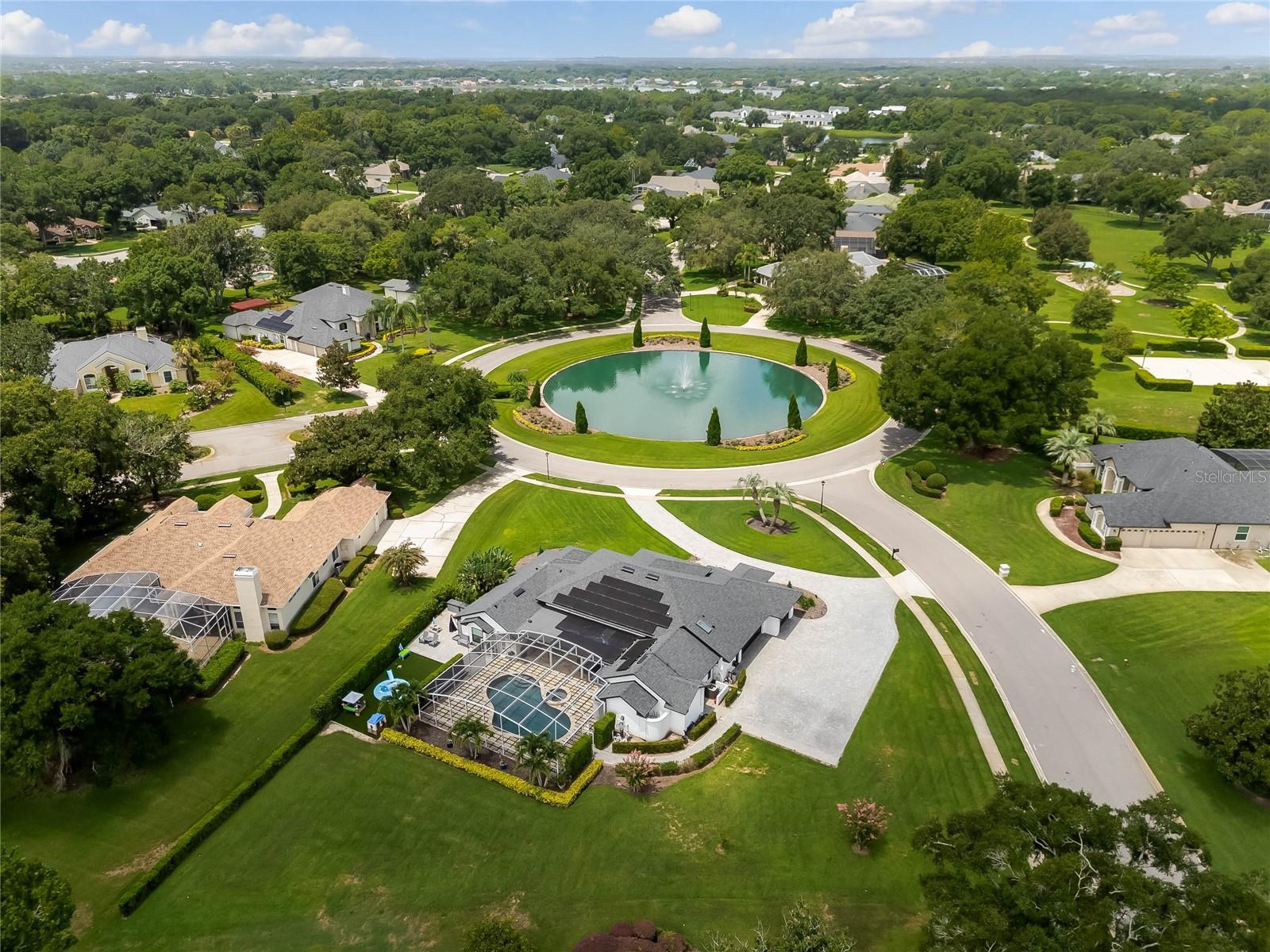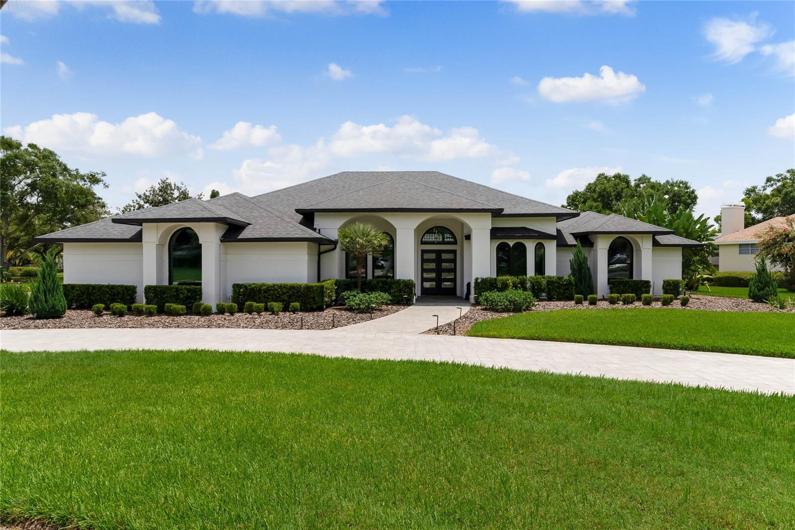 This custom-built home radiates charm and sophistication. Positioned on a generous corner lot of nearly 3/4 acre, it showcases a new architectural shingle roof, a 3-car garage with a paver circular drive, and impeccably landscaped grounds. With picturesque views of a pond adorned with an illuminated fountain in the front and a tranquil greenbelt in the rear, this executive residence offers unparalleled privacy and peace. Inside, the recently updated kitchen boasts granite countertops, wood cabinets, stainless steel appliances, and elegant luxury vinyl flooring that seamlessly flows into the family room. The entire home has been freshly painted and outfitted with new lanai screening, ensuring a move-in-ready experience. The lanai, featuring a sparkling pool and soothing spa, provides an idyllic retreat for relaxation and entertainment. The master suite serves as a serene sanctuary, featuring a roman-style walk-in shower and picturesque views overlooking the lanai and pond. Nestled in the highly sought-after Willows at Lake Rhea neighborhood, residents enjoy access to amenities such as scenic walking paths, a playground, and tennis courts. Conveniently located near Windermere Elementary School and local ball fields, this home harmoniously blends luxury with convenience—a remarkable opportunity for discerning buyers in search of a distinguished lifestyle.