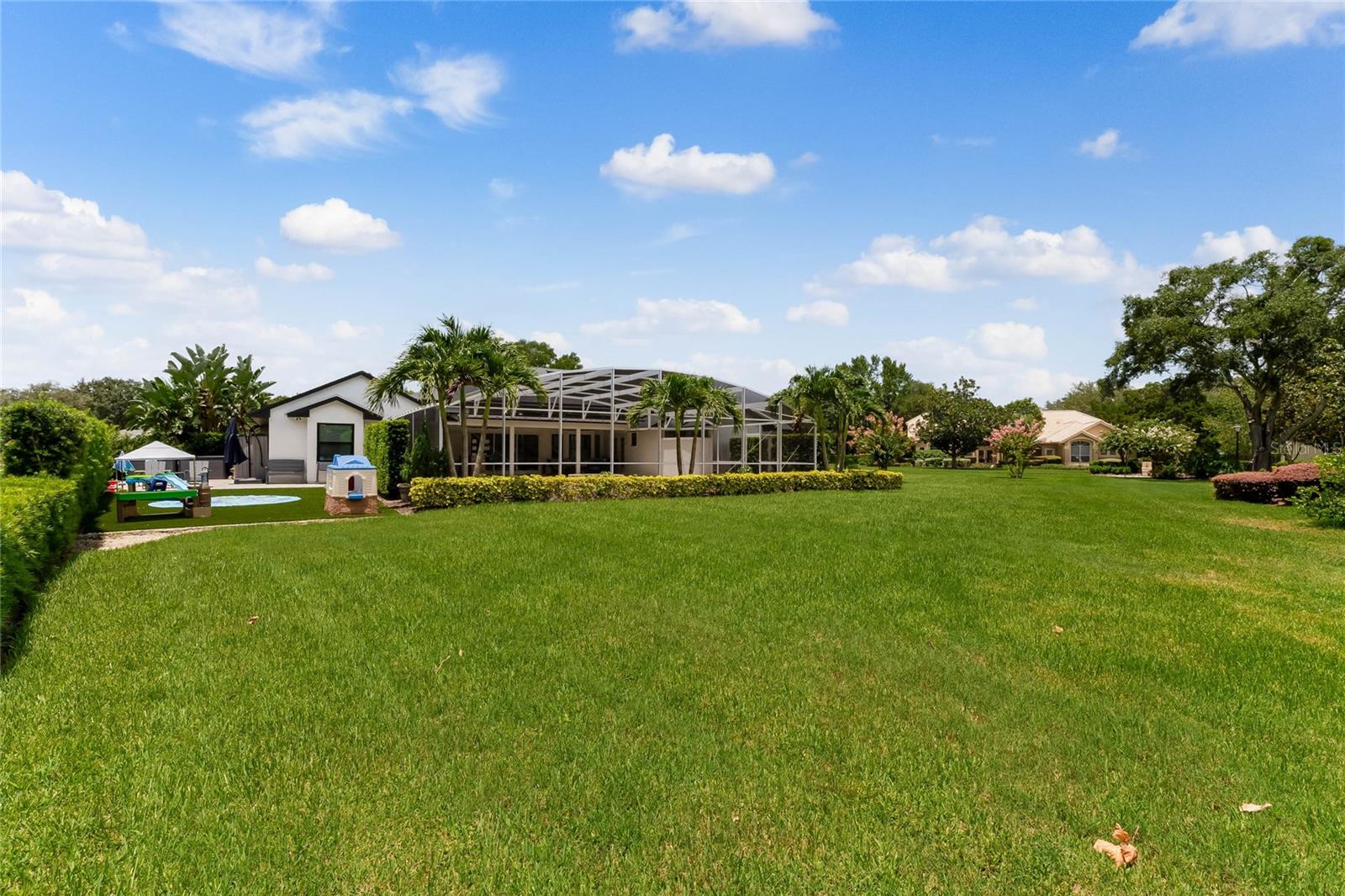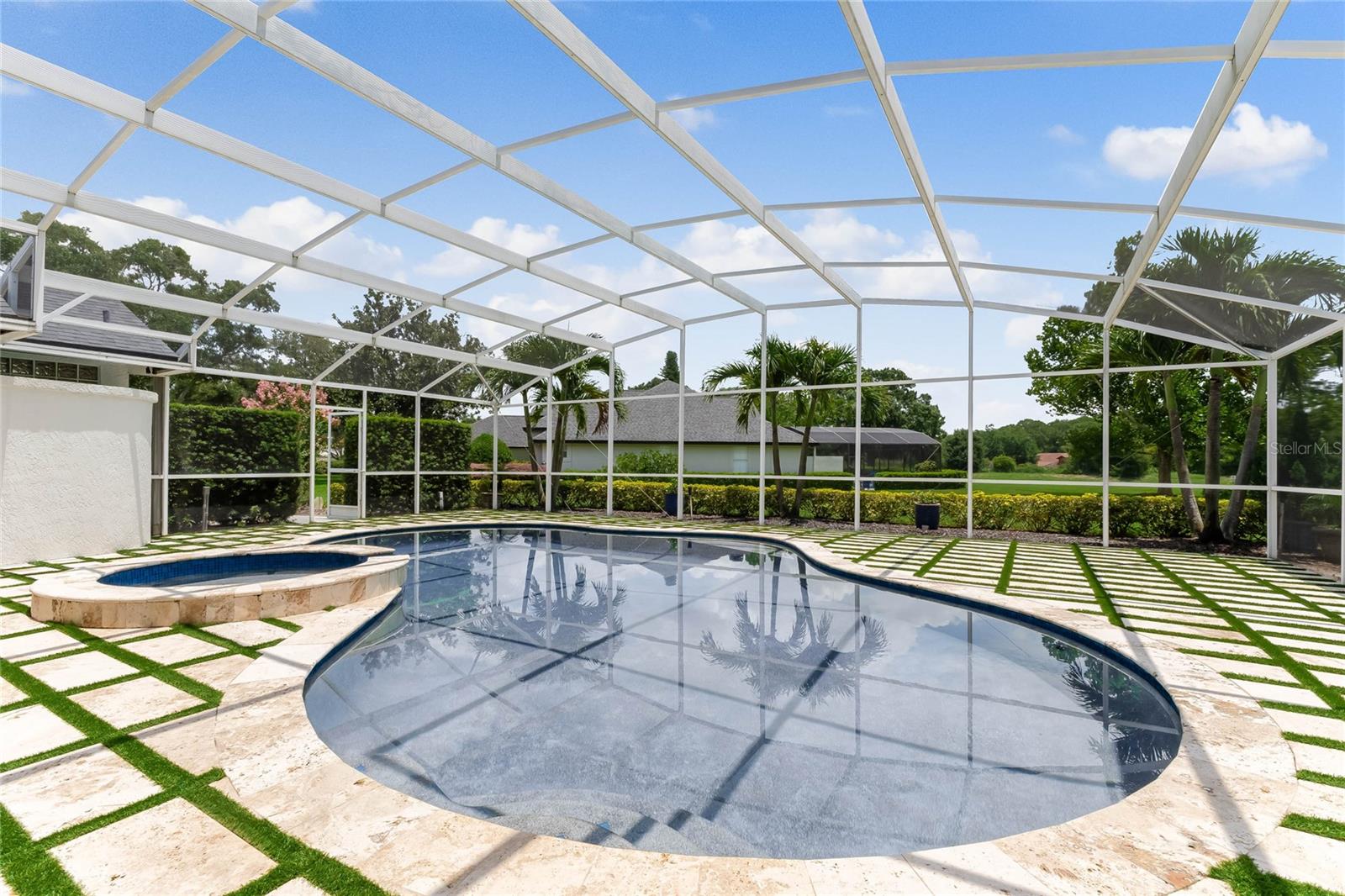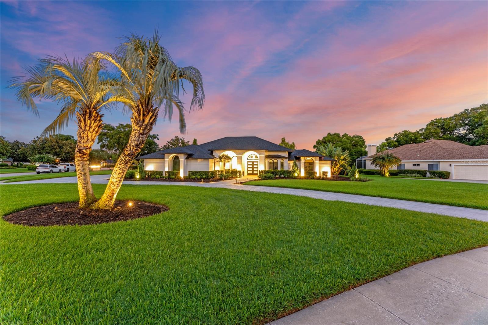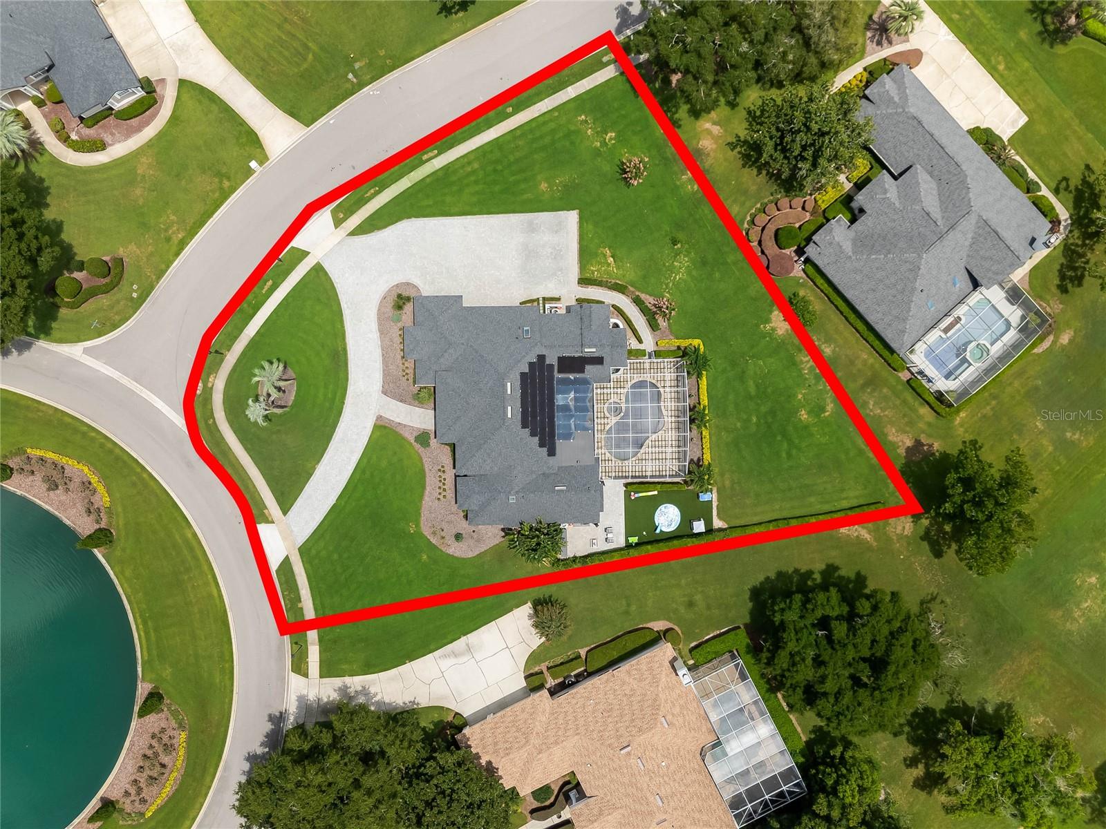 This custom-built home radiates charm and sophistication. Positioned on a generous corner lot of nearly 3/4 acre, it showcases a new architectural shingle roof, a 3-car garage with a paver circular drive, and impeccably landscaped grounds. With picturesque views of a pond adorned with an illuminated fountain in the front and a tranquil greenbelt in the rear, this executive residence offers unparalleled privacy and peace. Inside, the recently updated kitchen boasts granite countertops, wood cabinets, stainless steel appliances, and elegant luxury vinyl flooring that seamlessly flows into the family room. The entire home has been freshly painted and outfitted with new lanai screening, ensuring a move-in-ready experience. The lanai, featuring a sparkling pool and soothing spa, provides an idyllic retreat for relaxation and entertainment. The master suite serves as a serene sanctuary, featuring a roman-style walk-in shower and picturesque views overlooking the lanai and pond. Nestled in the highly sought-after Willows at Lake Rhea neighborhood, residents enjoy access to amenities such as scenic walking paths, a playground, and tennis courts. Conveniently located near Windermere Elementary School and local ball fields, this home harmoniously blends luxury with convenience—a remarkable opportunity for discerning buyers in search of a distinguished lifestyle.