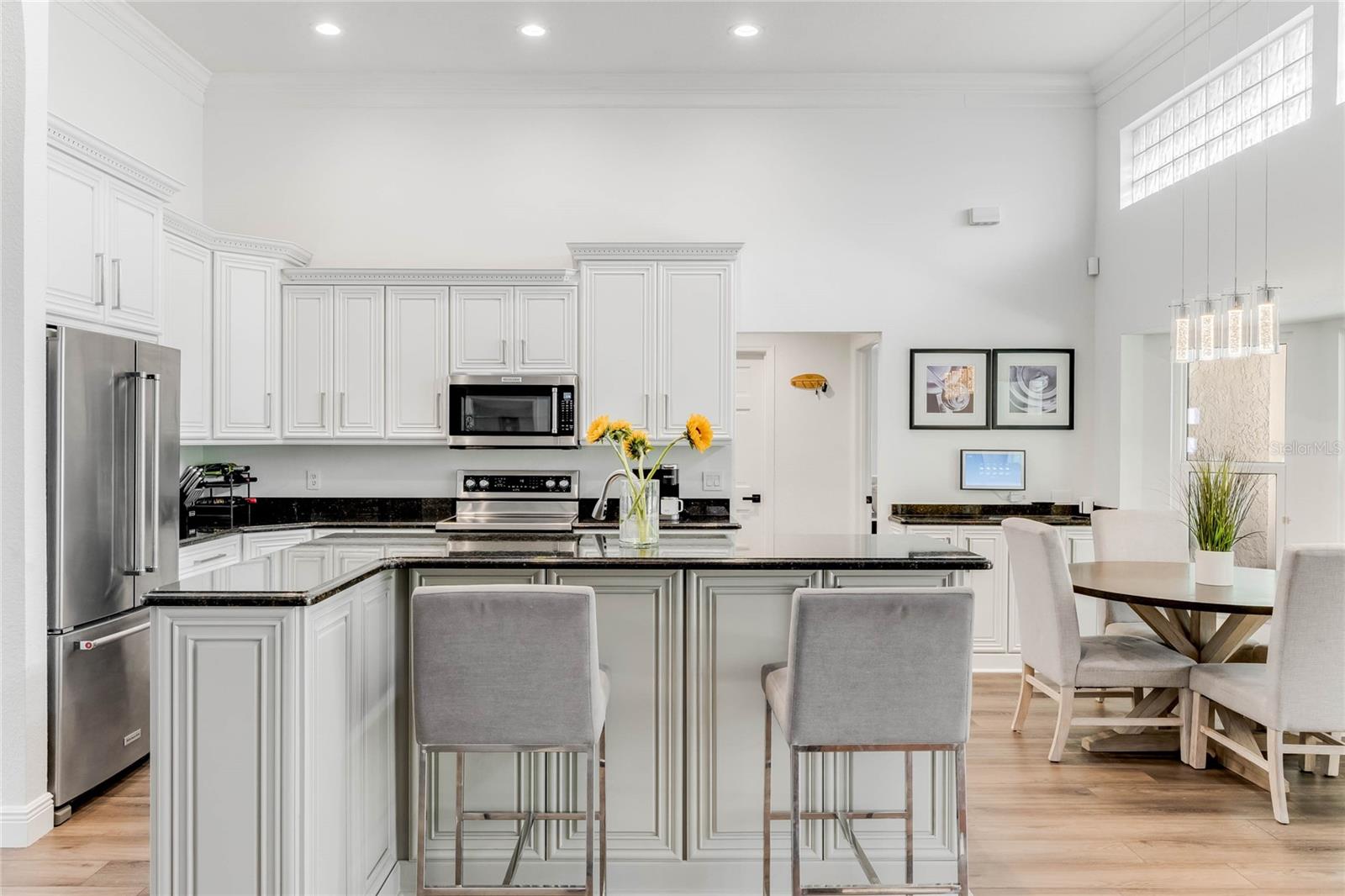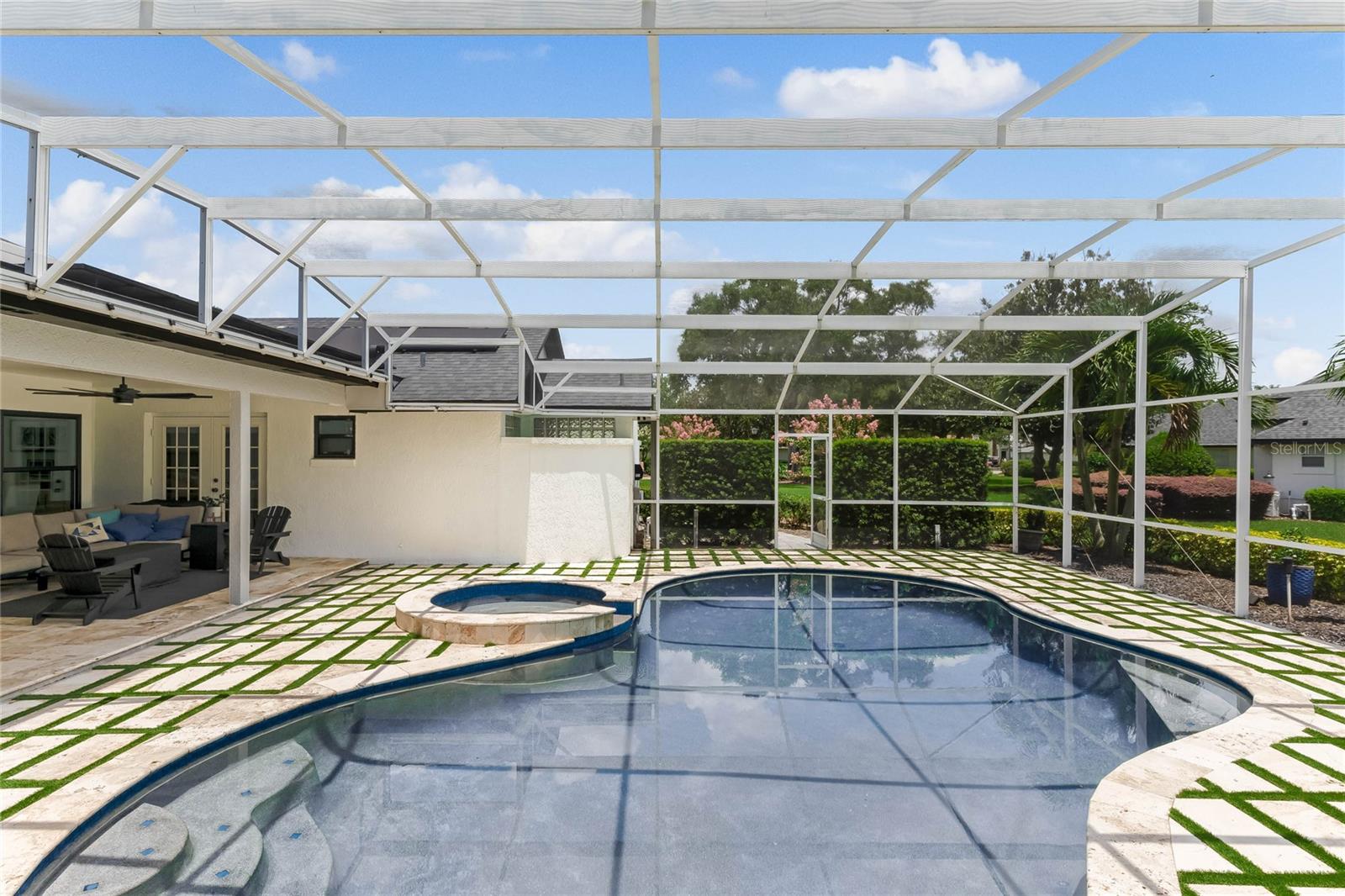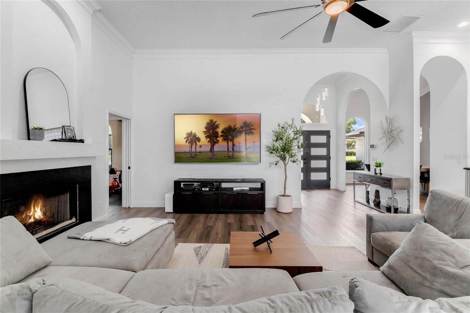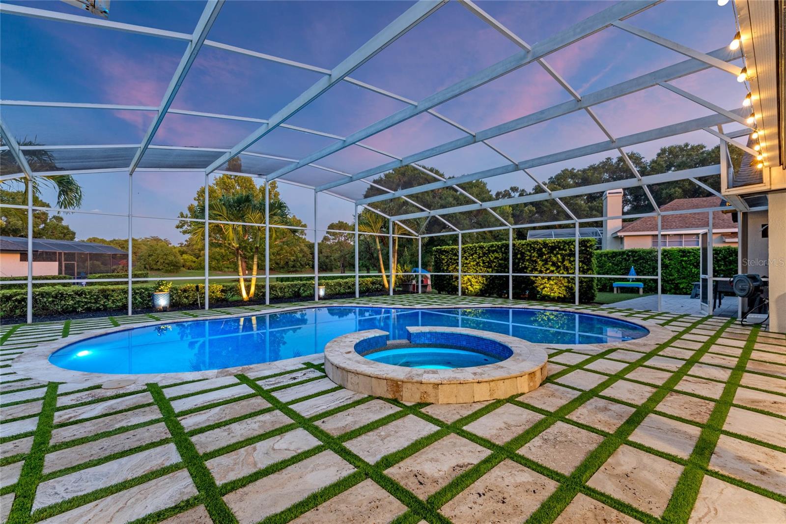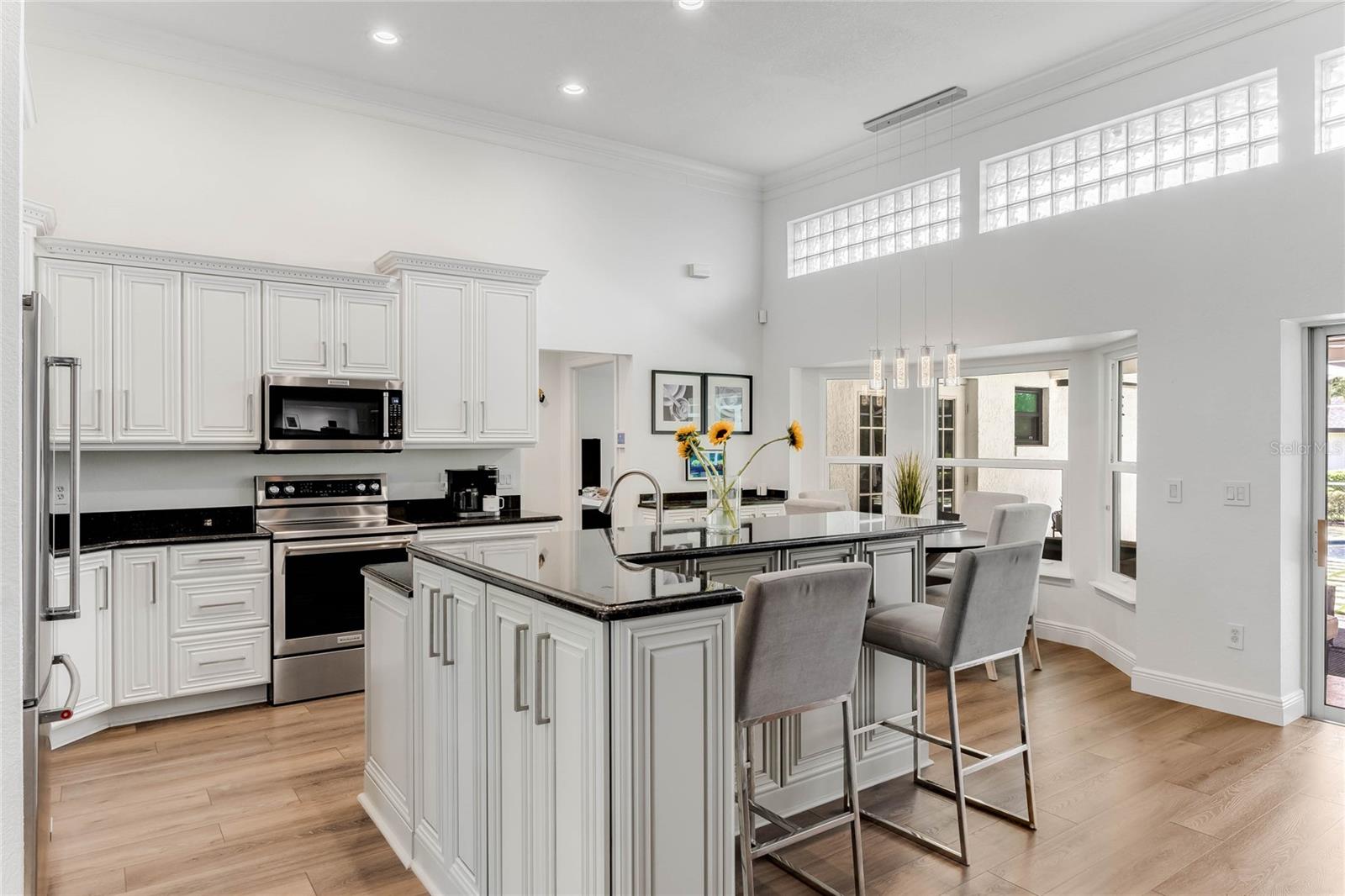 This custom-built home radiates charm and sophistication. Positioned on a generous corner lot of nearly 3/4 acre, it showcases a new architectural shingle roof, a 3-car garage with a paver circular drive, and impeccably landscaped grounds. With picturesque views of a pond adorned with an illuminated fountain in the front and a tranquil greenbelt in the rear, this executive residence offers unparalleled privacy and peace. Inside, the recently updated kitchen boasts granite countertops, wood cabinets, stainless steel appliances, and elegant luxury vinyl flooring that seamlessly flows into the family room. The entire home has been freshly painted and outfitted with new lanai screening, ensuring a move-in-ready experience. The lanai, featuring a sparkling pool and soothing spa, provides an idyllic retreat for relaxation and entertainment. The master suite serves as a serene sanctuary, featuring a roman-style walk-in shower and picturesque views overlooking the lanai and pond. Nestled in the highly sought-after Willows at Lake Rhea neighborhood, residents enjoy access to amenities such as scenic walking paths, a playground, and tennis courts. Conveniently located near Windermere Elementary School and local ball fields, this home harmoniously blends luxury with convenience—a remarkable opportunity for discerning buyers in search of a distinguished lifestyle.