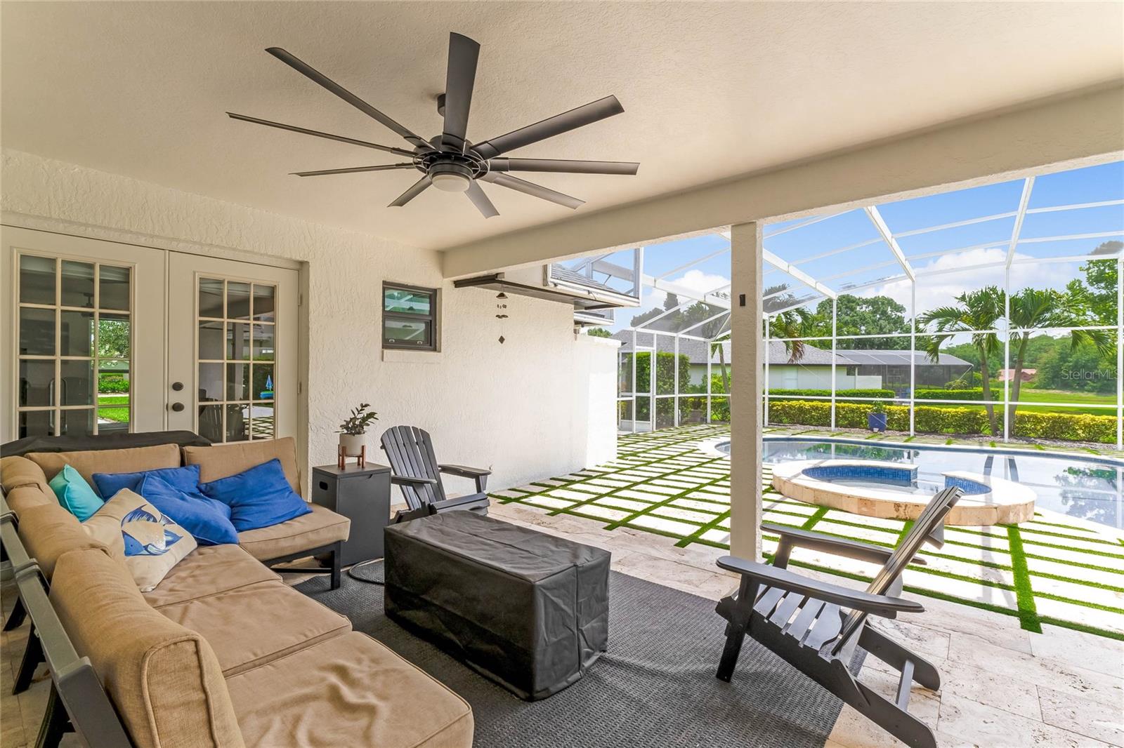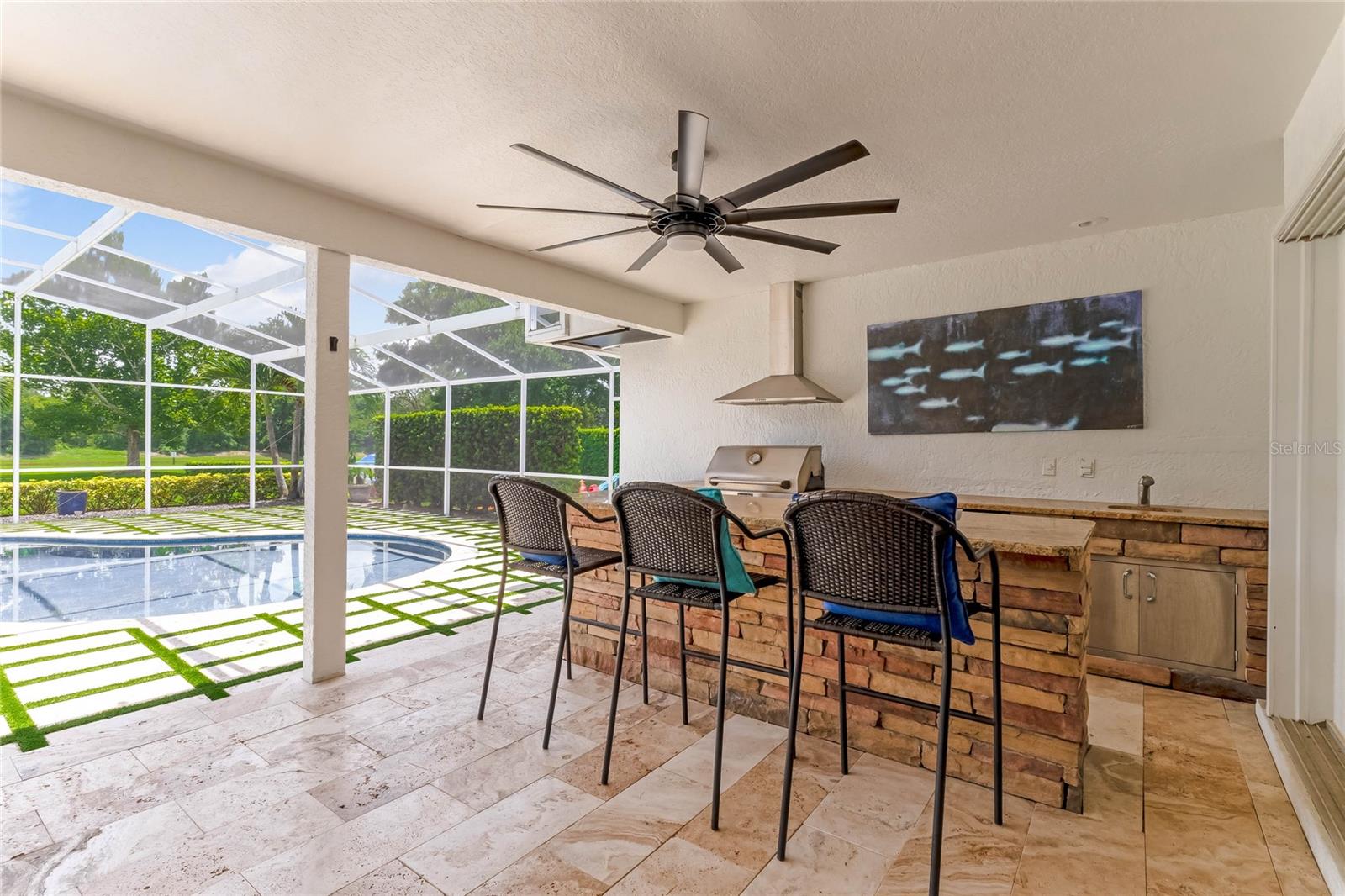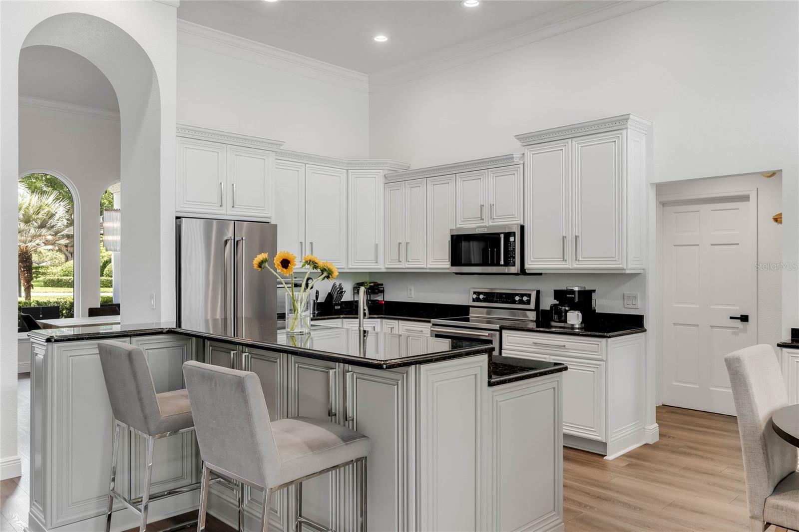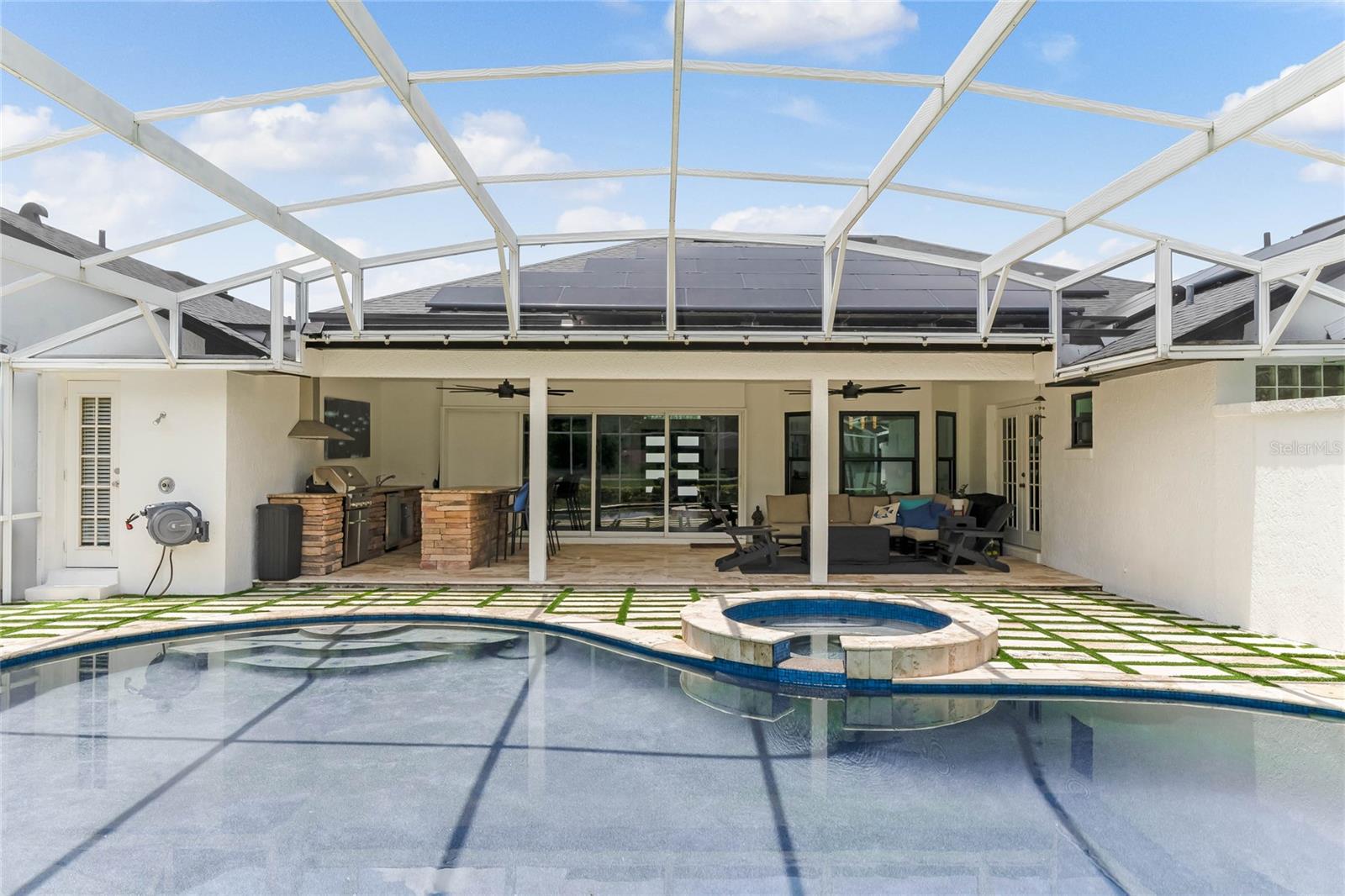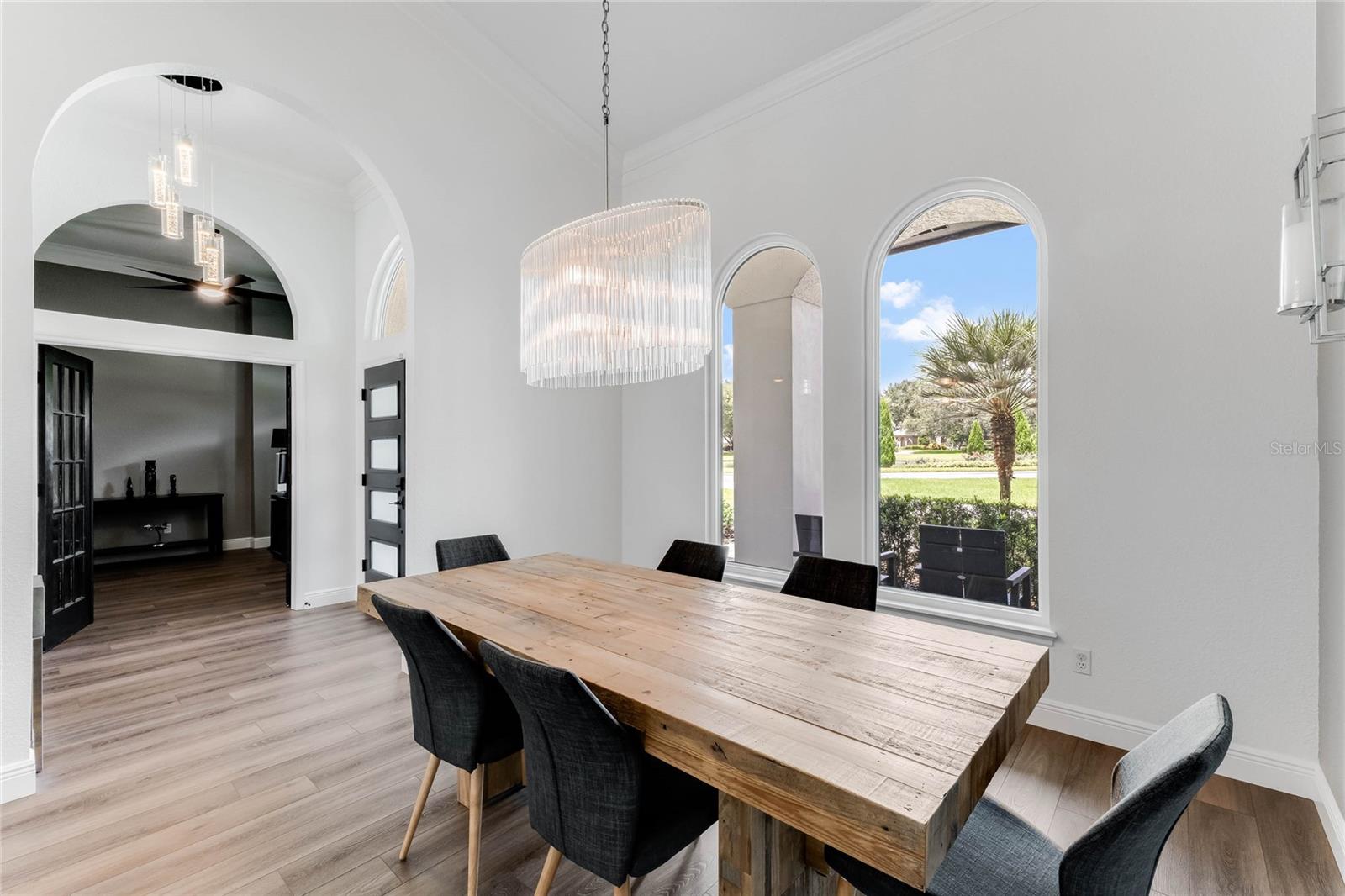 This custom-built home radiates charm and sophistication. Positioned on a generous corner lot of nearly 3/4 acre, it showcases a new architectural shingle roof, a 3-car garage with a paver circular drive, and impeccably landscaped grounds. With picturesque views of a pond adorned with an illuminated fountain in the front and a tranquil greenbelt in the rear, this executive residence offers unparalleled privacy and peace. Inside, the recently updated kitchen boasts granite countertops, wood cabinets, stainless steel appliances, and elegant luxury vinyl flooring that seamlessly flows into the family room. The entire home has been freshly painted and outfitted with new lanai screening, ensuring a move-in-ready experience. The lanai, featuring a sparkling pool and soothing spa, provides an idyllic retreat for relaxation and entertainment. The master suite serves as a serene sanctuary, featuring a roman-style walk-in shower and picturesque views overlooking the lanai and pond. Nestled in the highly sought-after Willows at Lake Rhea neighborhood, residents enjoy access to amenities such as scenic walking paths, a playground, and tennis courts. Conveniently located near Windermere Elementary School and local ball fields, this home harmoniously blends luxury with convenience—a remarkable opportunity for discerning buyers in search of a distinguished lifestyle.