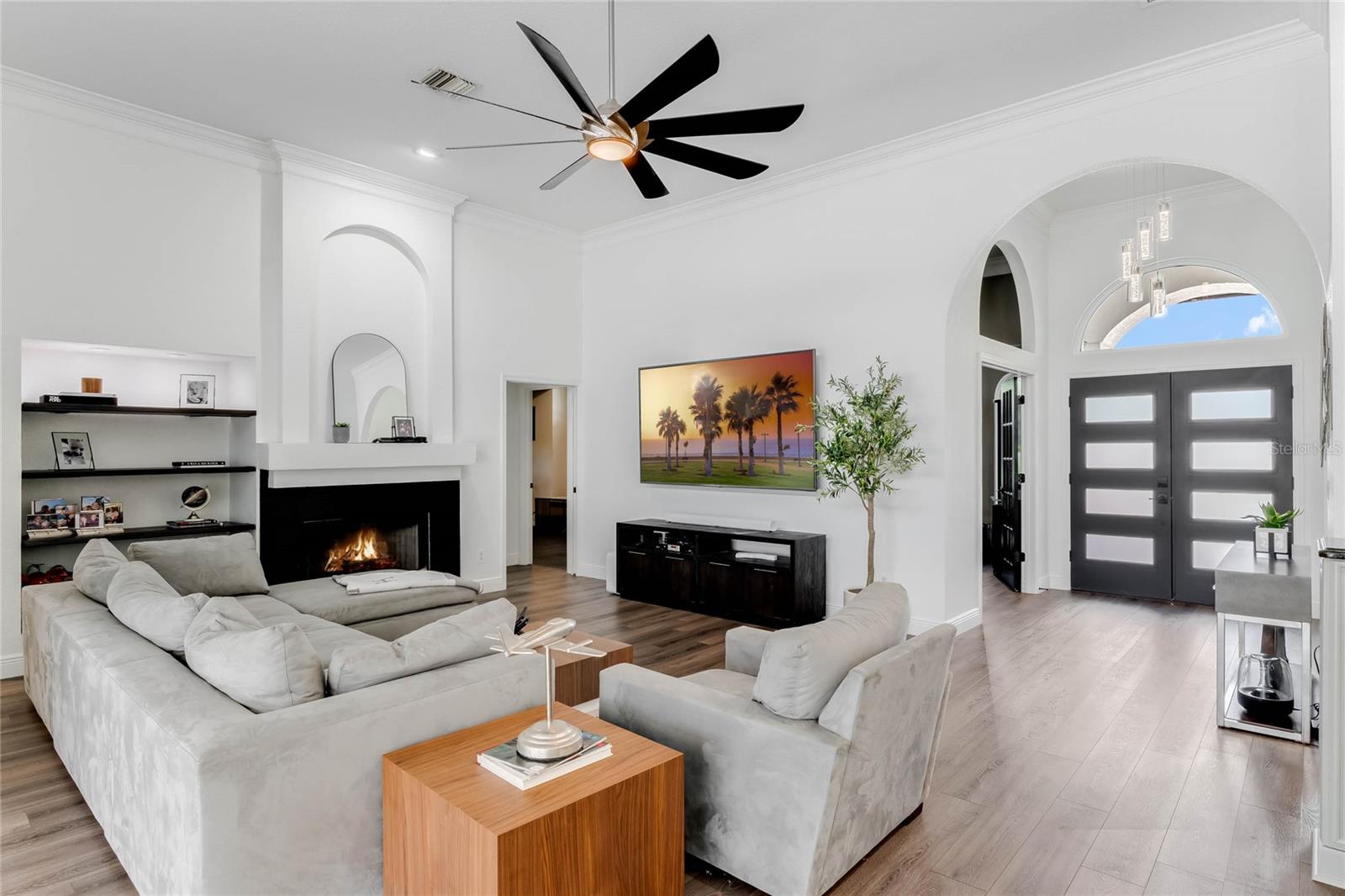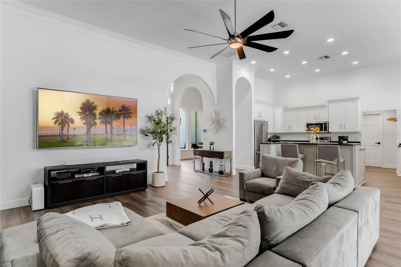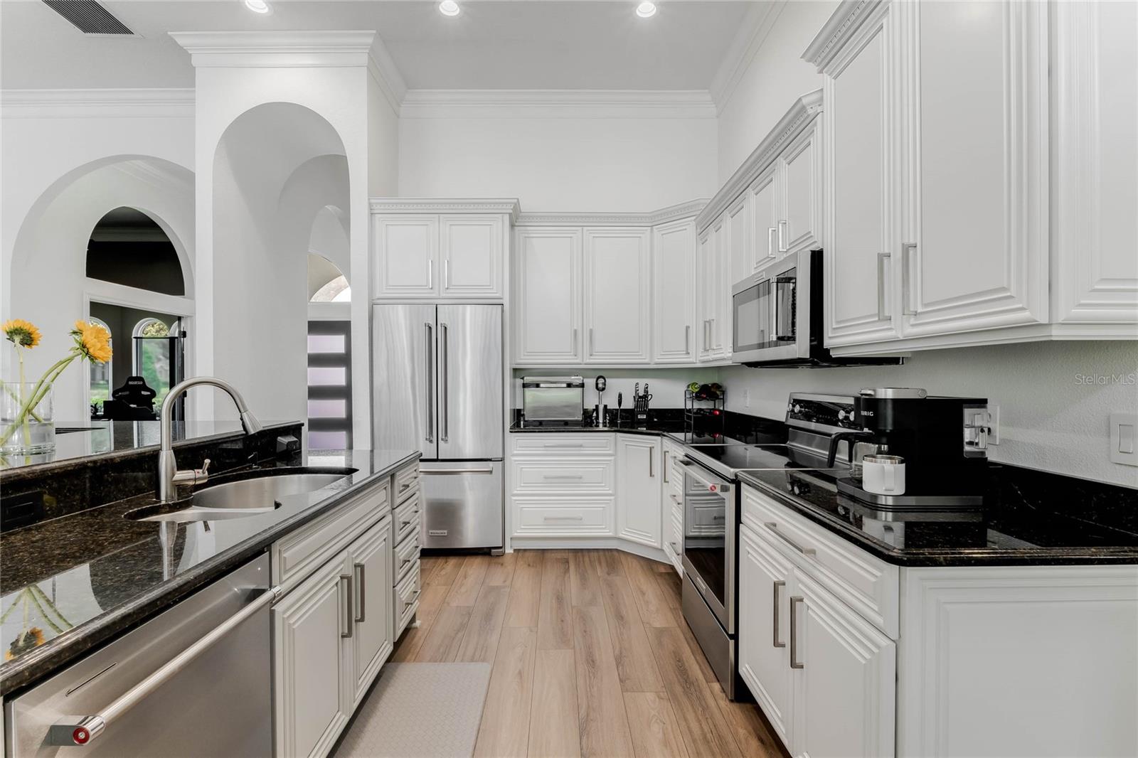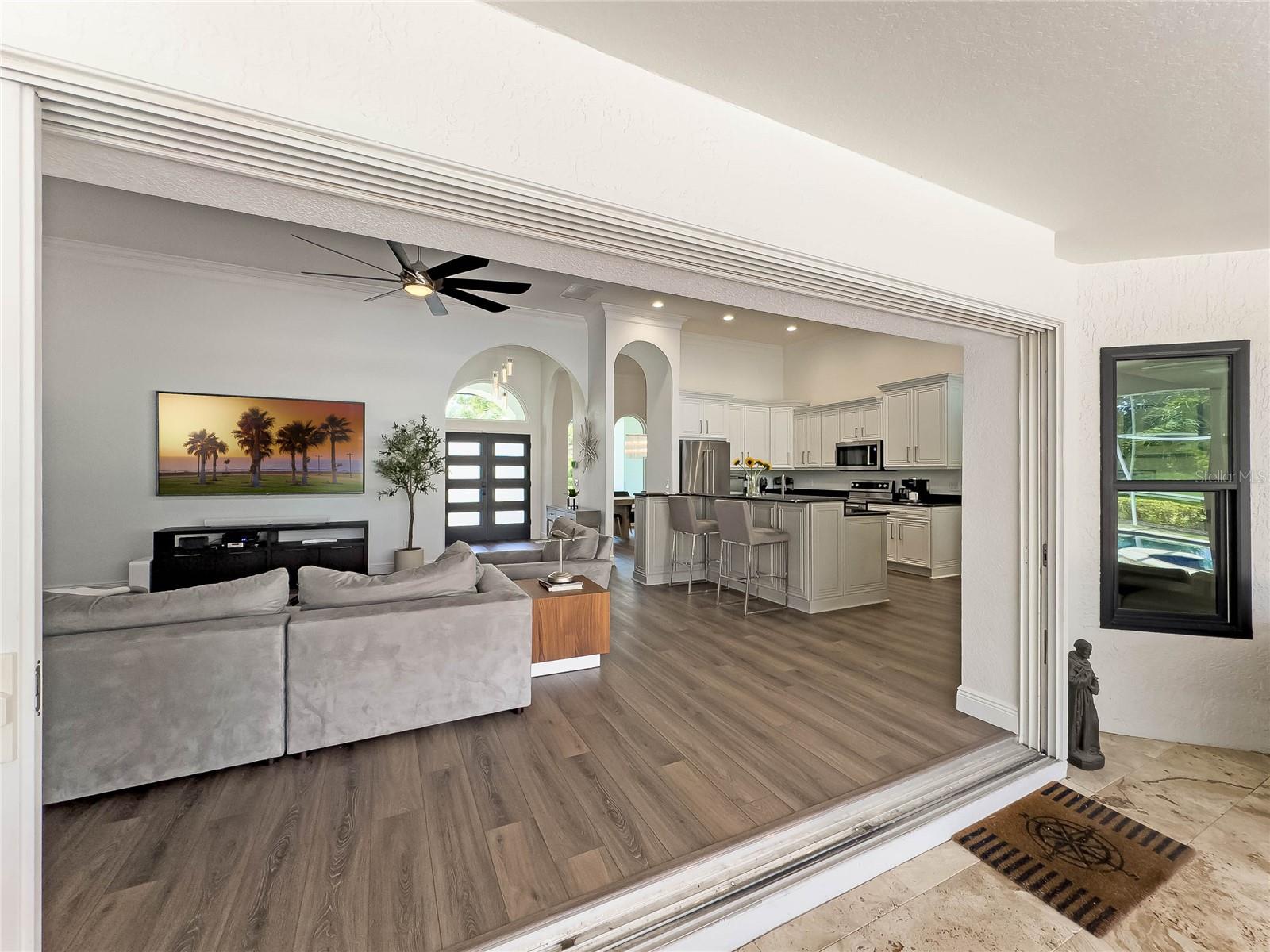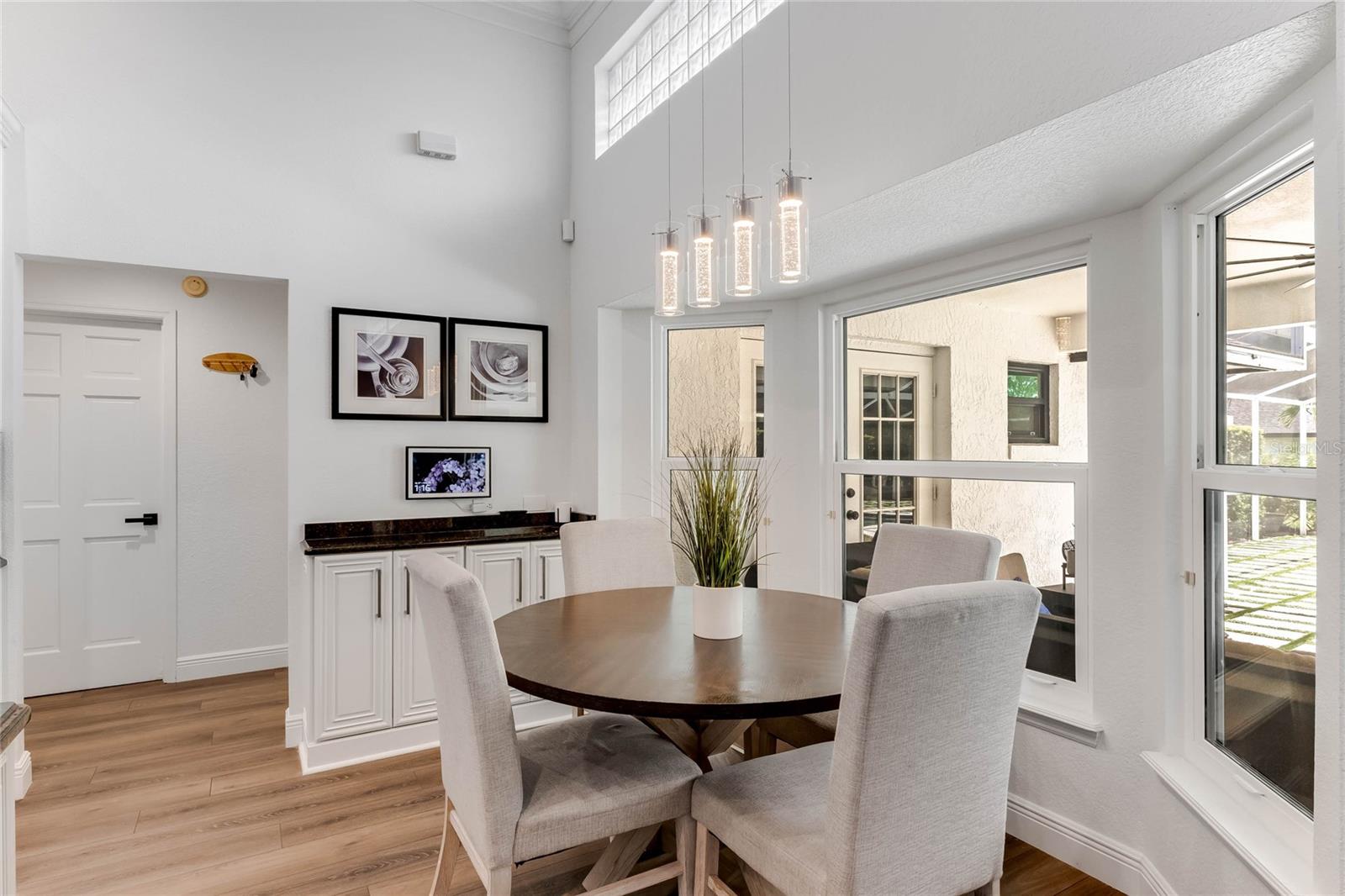 This custom-built home radiates charm and sophistication. Positioned on a generous corner lot of nearly 3/4 acre, it showcases a new architectural shingle roof, a 3-car garage with a paver circular drive, and impeccably landscaped grounds. With picturesque views of a pond adorned with an illuminated fountain in the front and a tranquil greenbelt in the rear, this executive residence offers unparalleled privacy and peace. Inside, the recently updated kitchen boasts granite countertops, wood cabinets, stainless steel appliances, and elegant luxury vinyl flooring that seamlessly flows into the family room. The entire home has been freshly painted and outfitted with new lanai screening, ensuring a move-in-ready experience. The lanai, featuring a sparkling pool and soothing spa, provides an idyllic retreat for relaxation and entertainment. The master suite serves as a serene sanctuary, featuring a roman-style walk-in shower and picturesque views overlooking the lanai and pond. Nestled in the highly sought-after Willows at Lake Rhea neighborhood, residents enjoy access to amenities such as scenic walking paths, a playground, and tennis courts. Conveniently located near Windermere Elementary School and local ball fields, this home harmoniously blends luxury with convenience—a remarkable opportunity for discerning buyers in search of a distinguished lifestyle.