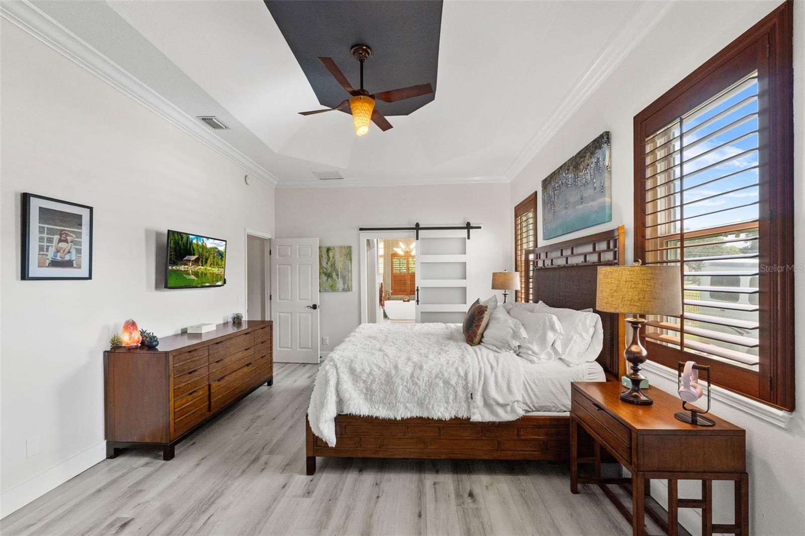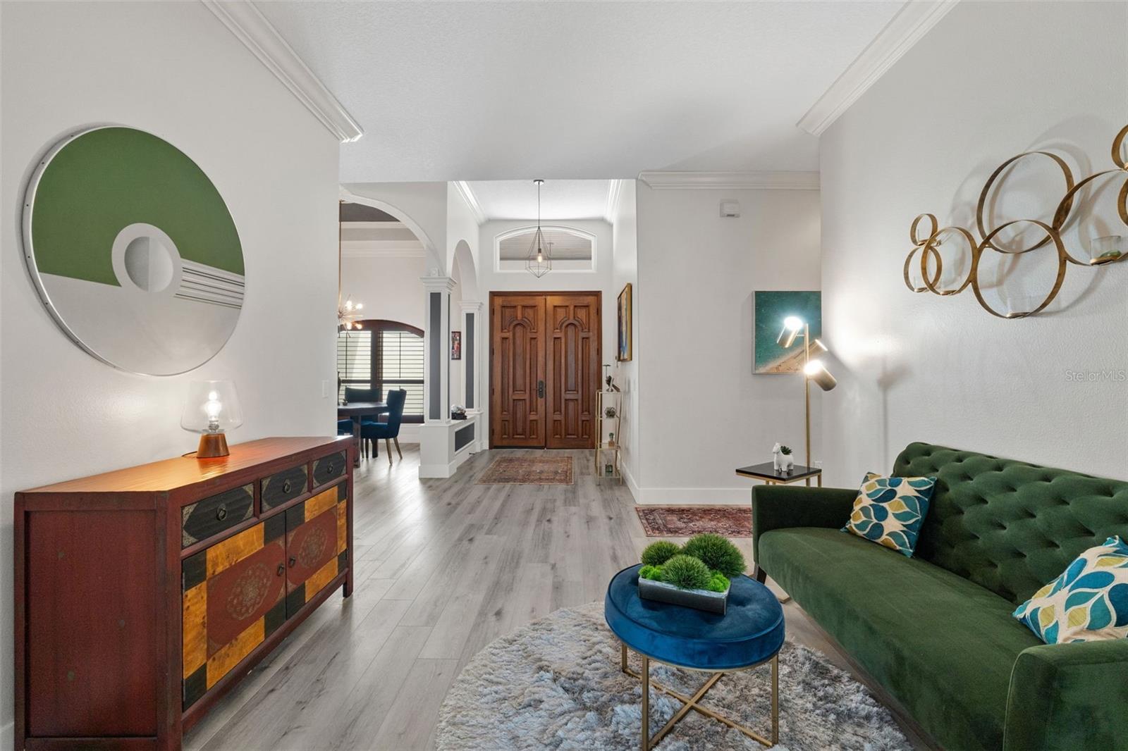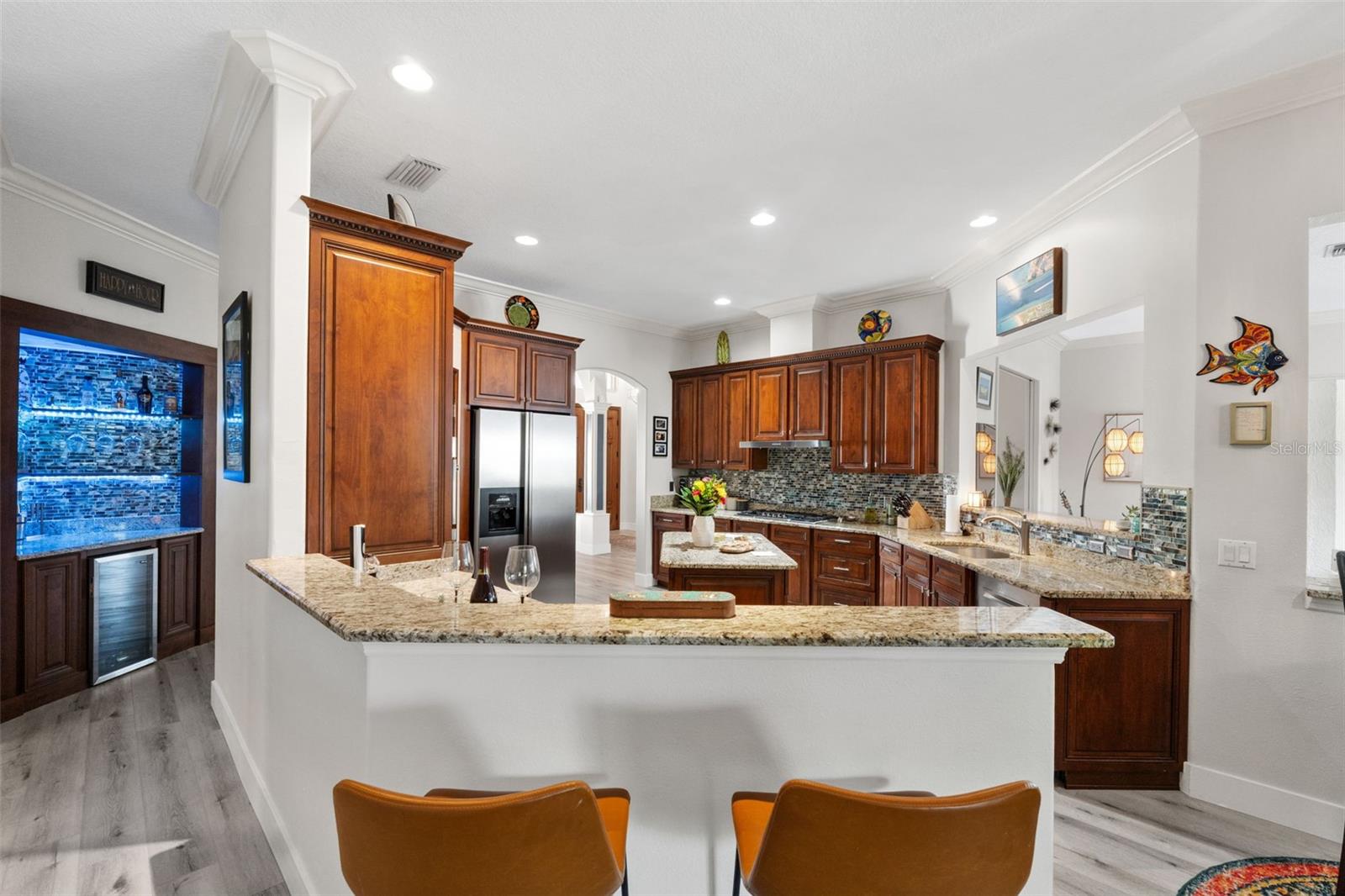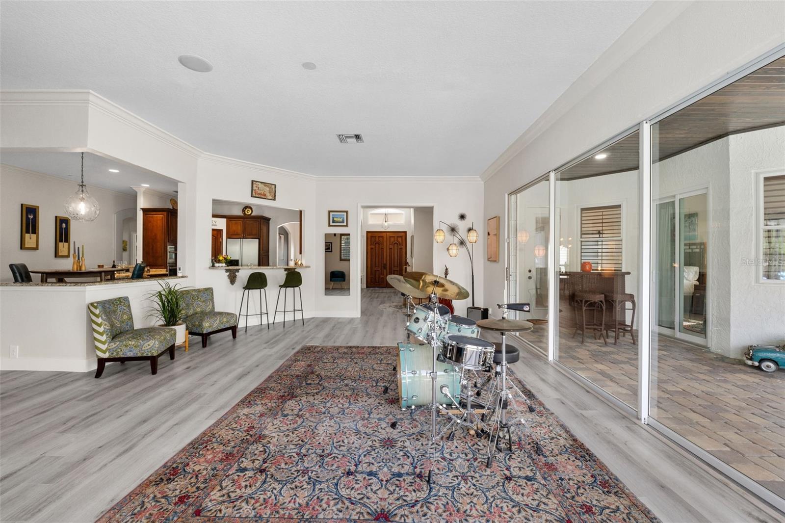 Kitchen refresh...Quartz countertops, seamless oversized sink. A kitchen designed to gather, host, and impress. Welcome to a private Windermere estate where thoughtful design meets relaxed luxury—set on over an acre with no restrictions. This beautifully updated 3-bedroom, 3.5-bath home offers space, privacy, and versatility, all surrounded by natural beauty. Enter through oversized double wood doors into an airy interior with soaring gable ceilings and an intentional split floor plan that balances openness with privacy. Whether you’re entertaining or unwinding, the home flows effortlessly from one space to the next. The primary suite is a true retreat, featuring a spa-inspired bathroom with soaking tub, oversized glass shower, and a custom-designed walk-in closet that feels more like a private boutique—complete with dedicated shoe storage, display showcase, and generous hanging space. At the heart of the home, the refreshed kitchen anchors everyday living and entertaining. Quartz countertops, a seamless oversized sink, center island with bar seating, walk-in pantry, and breakfast nook open seamlessly to the great room with gas fireplace and serene backyard views—ideal for hosting or quiet evenings in. A standout feature of the home is the expansive recreation room, offering incredible flexibility. With walls of sliding glass doors and abundant natural light, this space adapts easily to your lifestyle—whether as a media lounge, creative studio, or elegant entertaining space—flowing directly to the resort-style pool and outdoor living area. Outside, the backyard feels like a private resort. The pool features a waterfall and grotto, surrounded by a paver-lined deck and covered patio—perfect for sunset gatherings, weekend brunches, or peaceful mornings overlooking the adjacent nature preserve. With no rear neighbors, privacy is unmatched. The detached stable adds exceptional value and versatility. While currently equipped with a tack/feed room and 12x12 stall, the structure can easily be reimagined as a studio, guest casita, home office, gym, or backyard retreat—offering endless possibilities to customize the property to your lifestyle. Additional highlights include split plan with two additional bedrooms, with one large enough to be a second primary, an oversized garage with tall ceilings and side entry, circular driveway with dual gates, RV and boat parking with electric hookup, and riding-friendly neighborhood access. Lake Butler is just minutes away for boating and water activities. Recent updates reflect a strong commitment to quality and design: new metal roof, new gutters, exterior paint, pool resurfacing, updated tile and pumps, refreshed landscaping and irrigation, remodeled bathrooms by designer Nathan Vangas featuring imported Italian marble and quartz countertops, luxury vinyl flooring throughout, custom primary closet, energy-efficient windows, custom shutters, and fresh interior paint. Conveniently located near SR-429, the Florida Turnpike, and FL-408, this Windermere property offers a rare blend of privacy, flexibility, and modern style—an ideal place to live beautifully, entertain effortlessly, and create a home that truly reflects you.