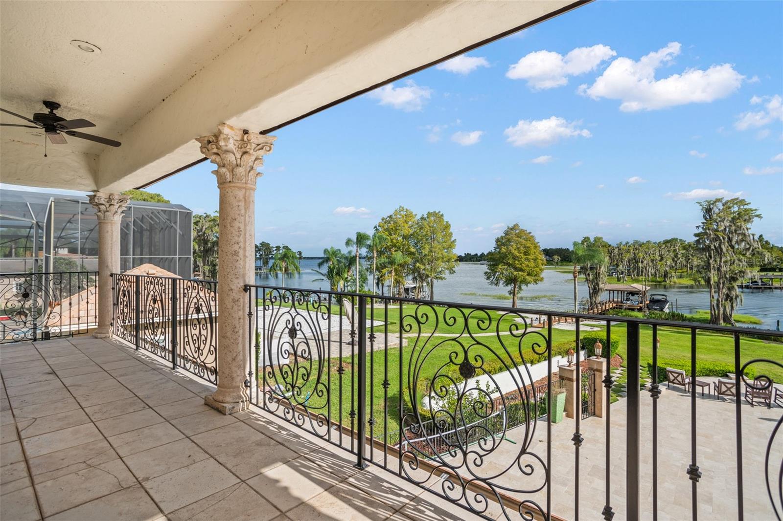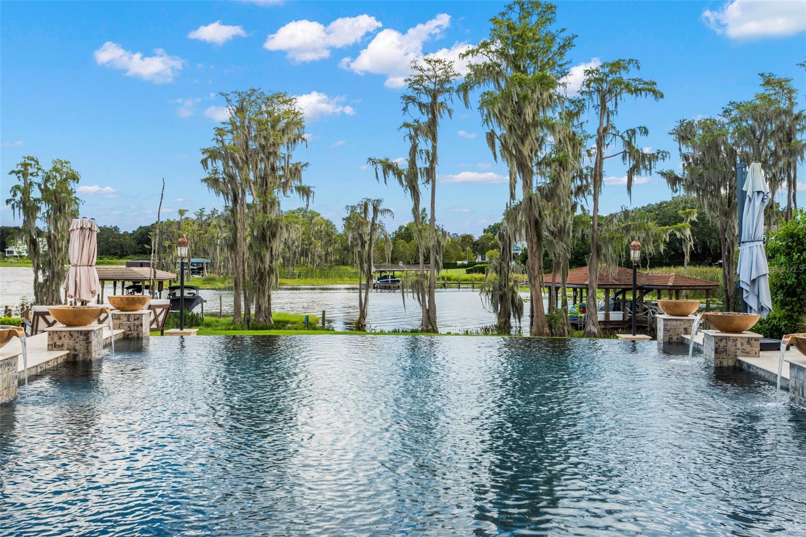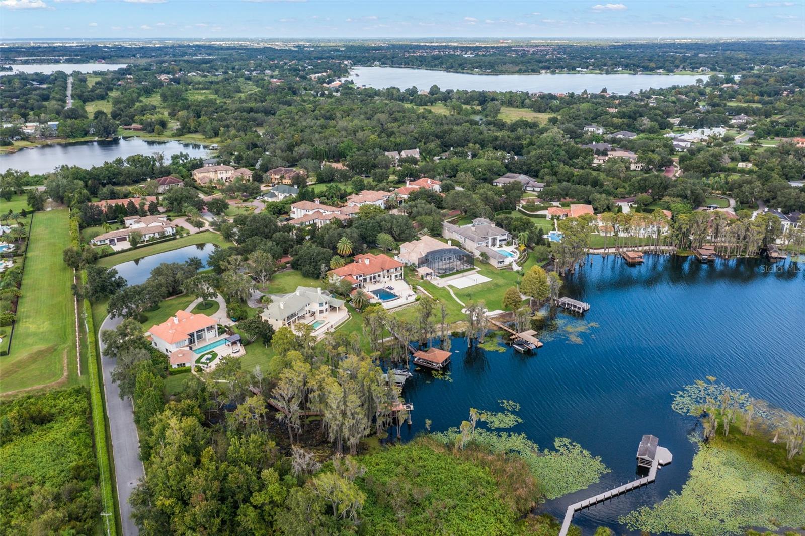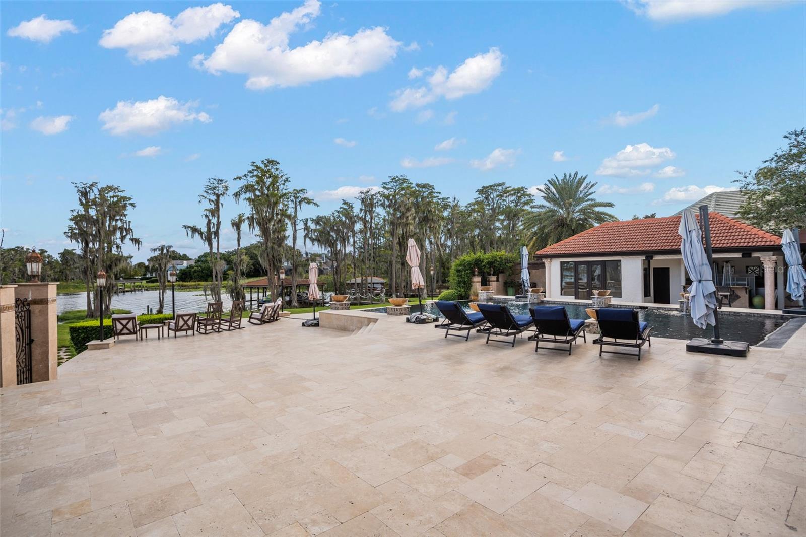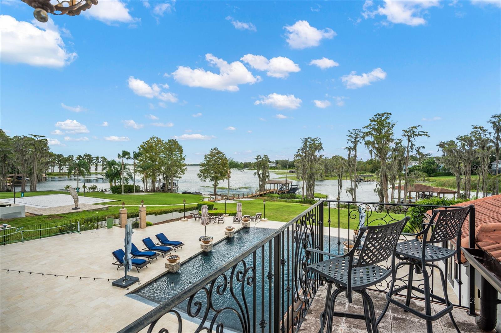Experience the epitome of sophistication at this exquisite Park Avenue estate, cradled in a peaceful cove of Lake Butler. As you step inside, harmonious blends of transitional finesse and timeless grandeur greet you, set against the poetic panorama of Windermere's lakefront, behind the private gates of Chaine du Lac. Take advantage of updates including a refreshed kitchen and state-of-the-art appliances, newer pool deck, new boat dock, ultra-efficient air conditioning units, and whole-home generator – no detail has been overlooked. The expansive family room seamlessly merges with a kitchen and cozy breakfast nook, offering serene water vistas. Dramatic living and dining rooms with soaring ceilings and double-sided fireplace deliver luxurious space for entertaining. The first-floor primary retreat offers a sumptuous escape from the ordinary with panoramic octagonal windows and elegant French doors. Alongside, discover a private den for working from home. Opposite on the main floor is a full guest suite with sauna. Upstairs is a media room and three additional bedrooms, all ensuite. Just above the master bedroom is a second staircase leading to a game room, offering a full bar, restaurant-grade smoke filtration system, half-bath and a private balcony. An attached cabana could be a 6th bedroom or gym. Embrace resort-style living with a grand canopy-covered summer kitchen. Bask in mesmerizing sunsets, enjoy Orlando's iconic attractions, and be enchanted by nightly Disney fireworks. Unwind under an Italian-inspired pergola adorned with hanging vines, a cozy loveseat swing, and a warm fireplace. A dual-berth boat dock and pristine beachfront beckon, while a spacious 4-car garage add to the estate's unmatched amenities. This property and its commanding views stand as a true testament to the best of Windermere lakefront living.