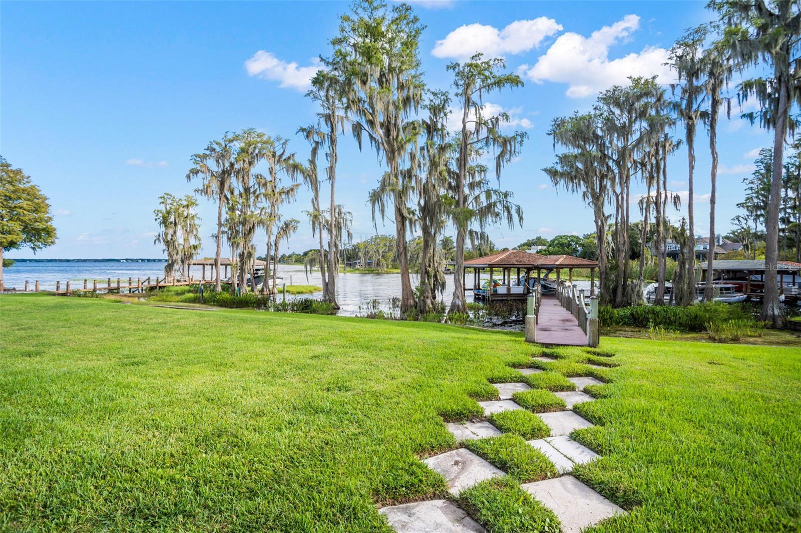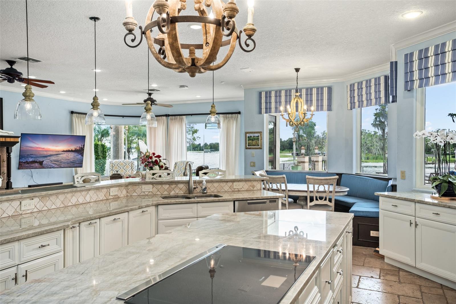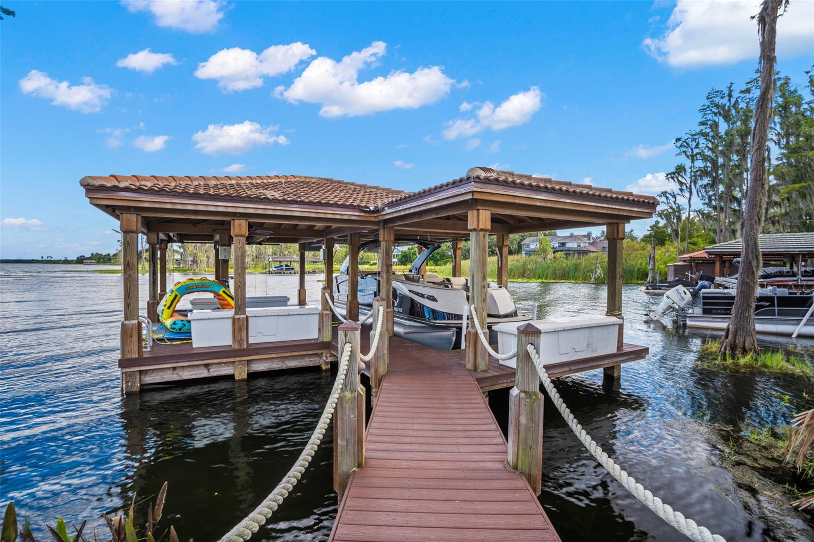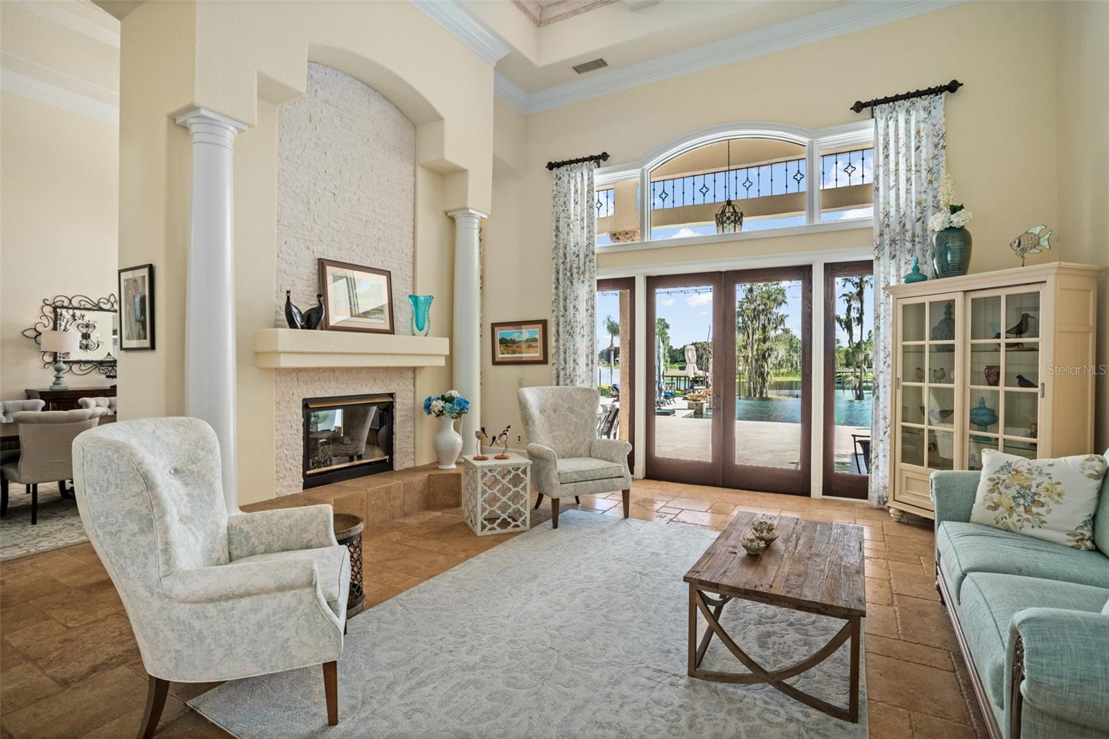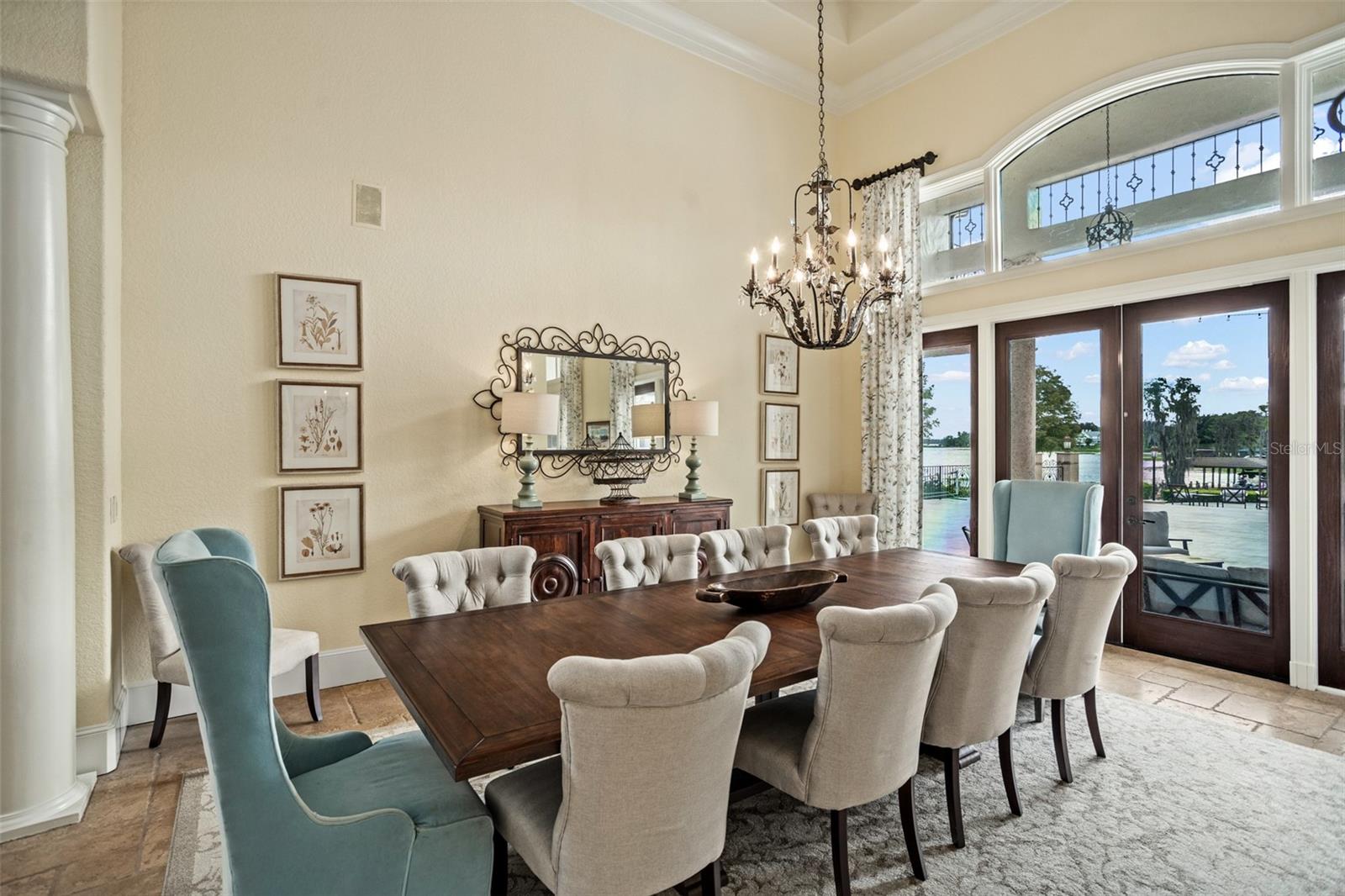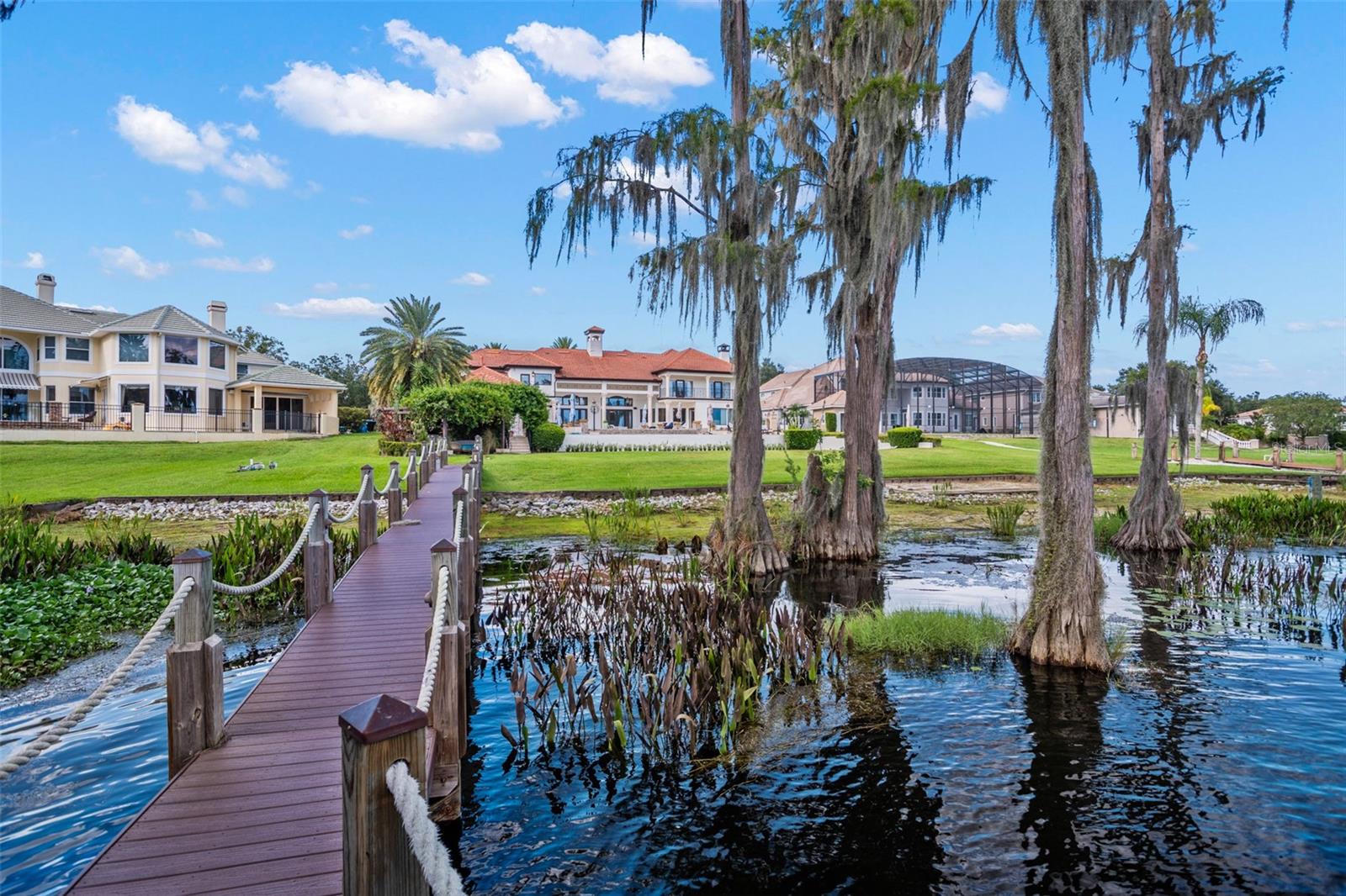 Experience the epitome of sophistication at this exquisite Park Avenue estate, cradled in a peaceful cove of Lake Butler. As you step inside, harmonious blends of transitional finesse and timeless grandeur greet you, set against the poetic panorama of Windermere's lakefront, behind the private gates of Chaine du Lac. Take advantage of updates including a refreshed kitchen and state-of-the-art appliances, newer pool deck, new boat dock, ultra-efficient air conditioning units, and whole-home generator – no detail has been overlooked. The expansive family room seamlessly merges with a kitchen and cozy breakfast nook, offering serene water vistas. Dramatic living and dining rooms with soaring ceilings and double-sided fireplace deliver luxurious space for entertaining. The first-floor primary retreat offers a sumptuous escape from the ordinary with panoramic octagonal windows and elegant French doors. Alongside, discover a private den for working from home. Opposite on the main floor is a full guest suite with sauna. Upstairs is a media room and three additional bedrooms, all ensuite. Just above the master bedroom is a second staircase leading to a game room, offering a full bar, restaurant-grade smoke filtration system, half-bath and a private balcony. An attached cabana could be a 6th bedroom or gym. Embrace resort-style living with a grand canopy-covered summer kitchen. Bask in mesmerizing sunsets, enjoy Orlando's iconic attractions, and be enchanted by nightly Disney fireworks. Unwind under an Italian-inspired pergola adorned with hanging vines, a cozy loveseat swing, and a warm fireplace. A dual-berth boat dock and pristine beachfront beckon, while a spacious 4-car garage add to the estate's unmatched amenities. This property and its commanding views stand as a true testament to the best of Windermere lakefront living.