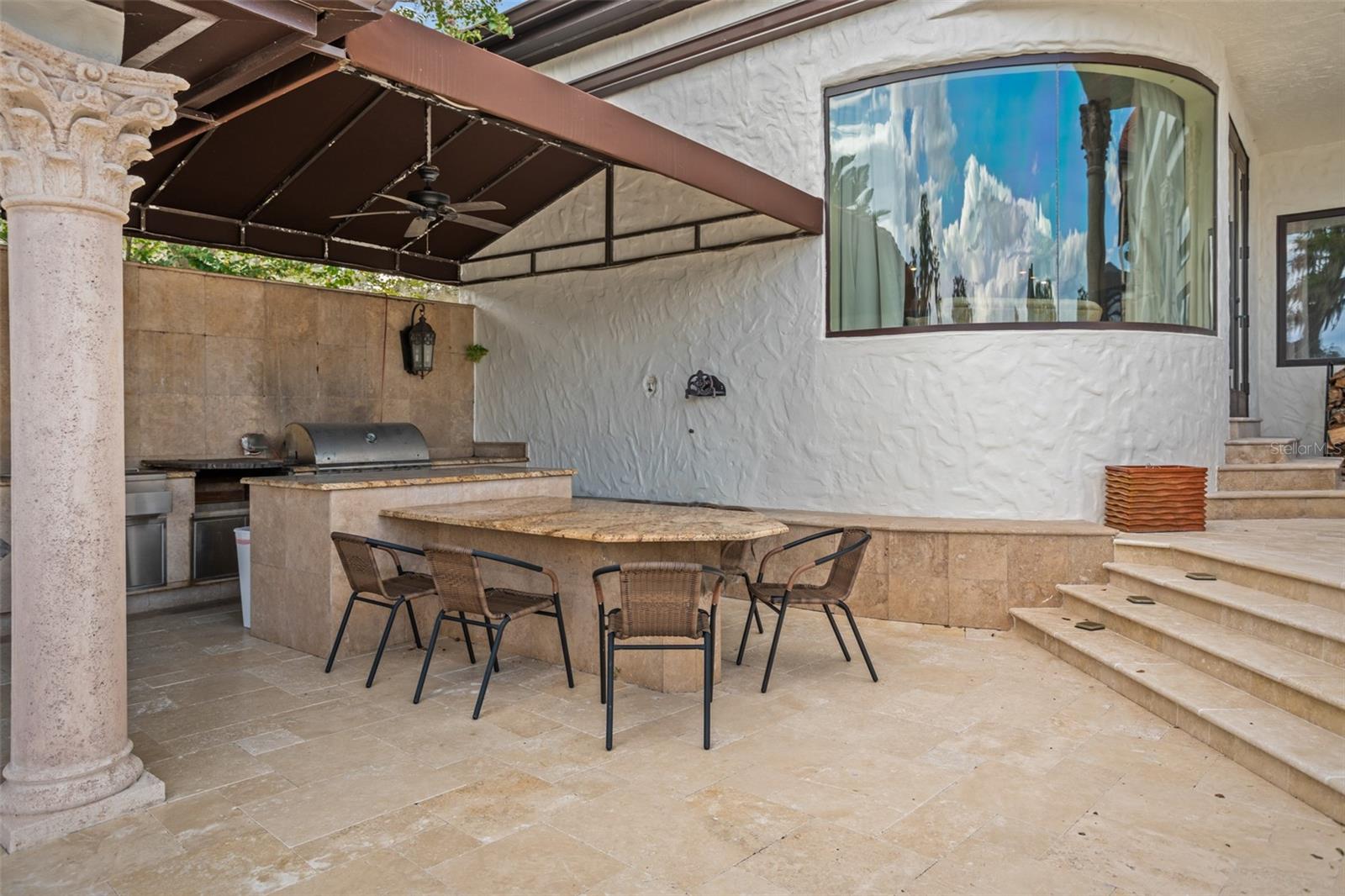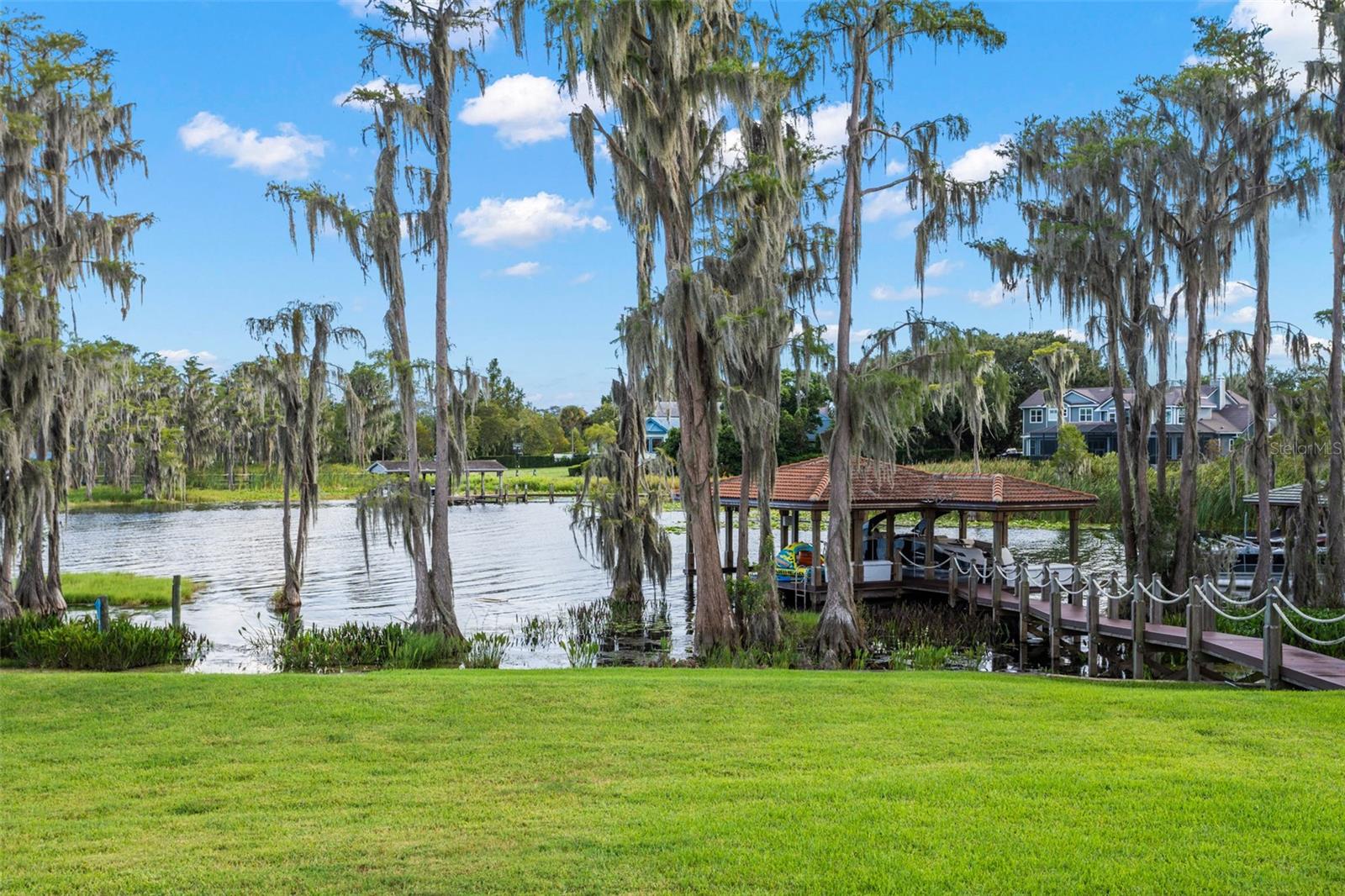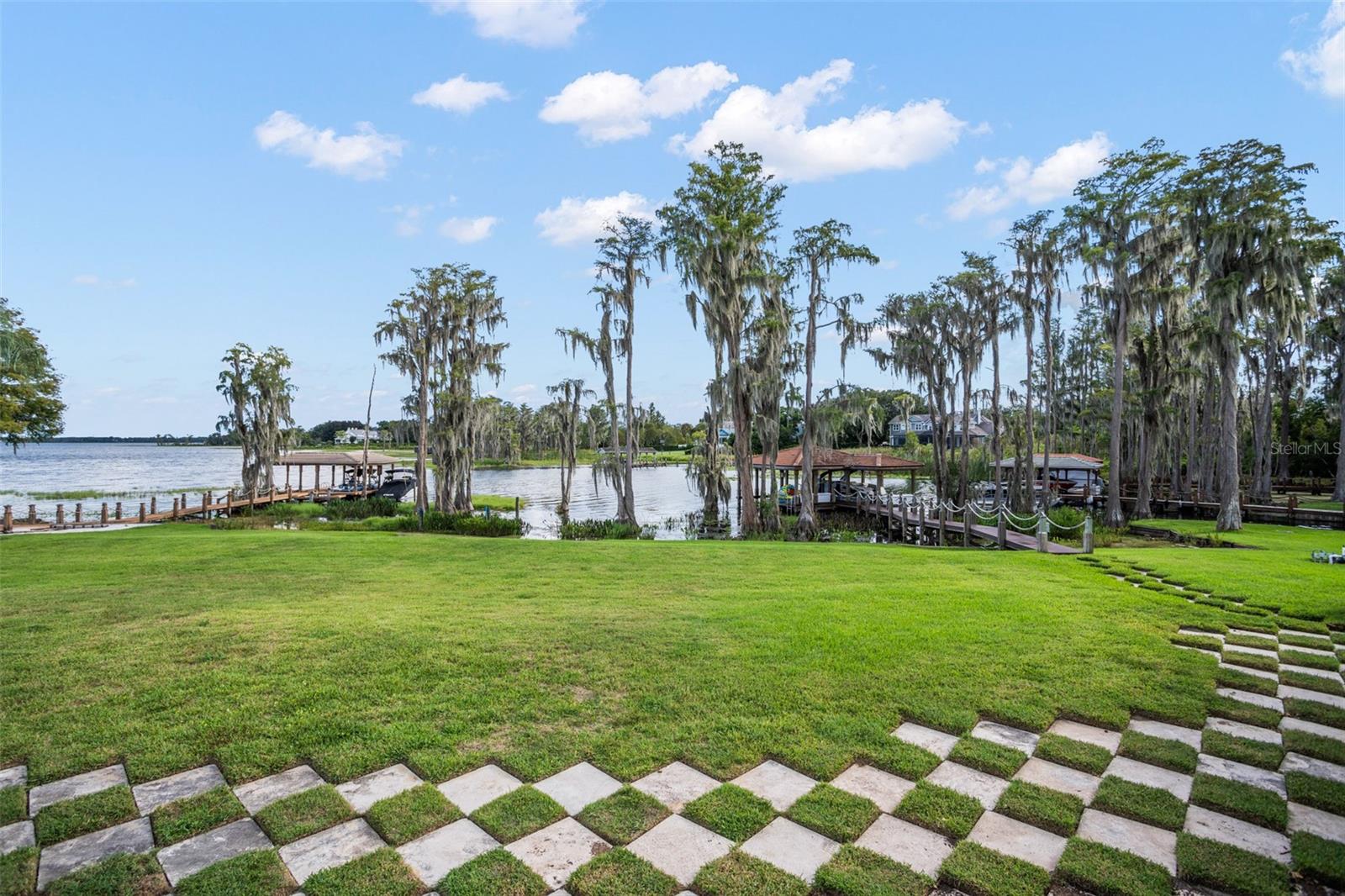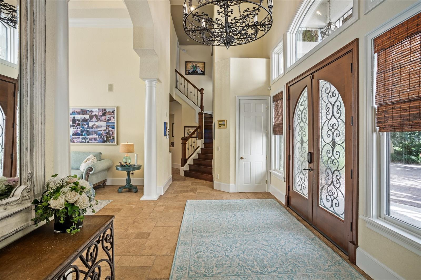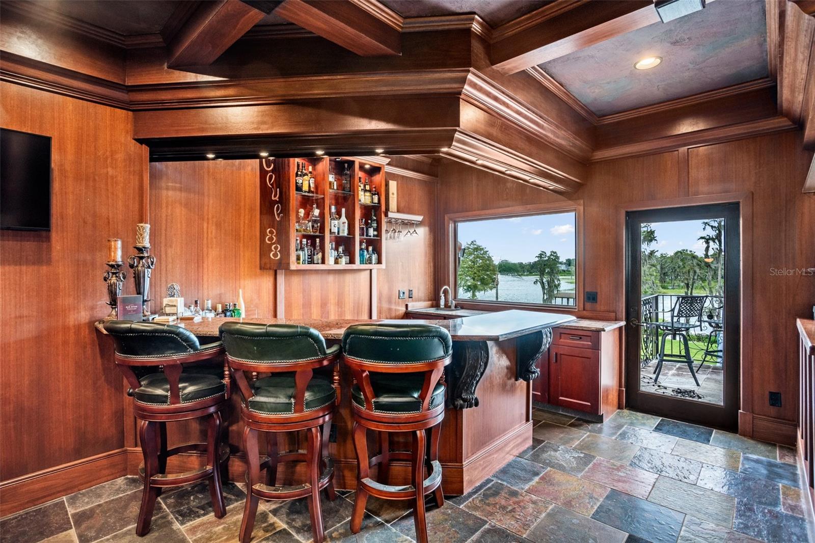 Experience the epitome of sophistication at this exquisite Park Avenue estate, cradled in a peaceful cove of Lake Butler. As you step inside, harmonious blends of transitional finesse and timeless grandeur greet you, set against the poetic panorama of Windermere's lakefront, behind the private gates of Chaine du Lac. Take advantage of updates including a refreshed kitchen and state-of-the-art appliances, newer pool deck, new boat dock, ultra-efficient air conditioning units, and whole-home generator – no detail has been overlooked. The expansive family room seamlessly merges with a kitchen and cozy breakfast nook, offering serene water vistas. Dramatic living and dining rooms with soaring ceilings and double-sided fireplace deliver luxurious space for entertaining. The first-floor primary retreat offers a sumptuous escape from the ordinary with panoramic octagonal windows and elegant French doors. Alongside, discover a private den for working from home. Opposite on the main floor is a full guest suite with sauna. Upstairs is a media room and three additional bedrooms, all ensuite. Just above the master bedroom is a second staircase leading to a game room, offering a full bar, restaurant-grade smoke filtration system, half-bath and a private balcony. An attached cabana could be a 6th bedroom or gym. Embrace resort-style living with a grand canopy-covered summer kitchen. Bask in mesmerizing sunsets, enjoy Orlando's iconic attractions, and be enchanted by nightly Disney fireworks. Unwind under an Italian-inspired pergola adorned with hanging vines, a cozy loveseat swing, and a warm fireplace. A dual-berth boat dock and pristine beachfront beckon, while a spacious 4-car garage add to the estate's unmatched amenities. This property and its commanding views stand as a true testament to the best of Windermere lakefront living.