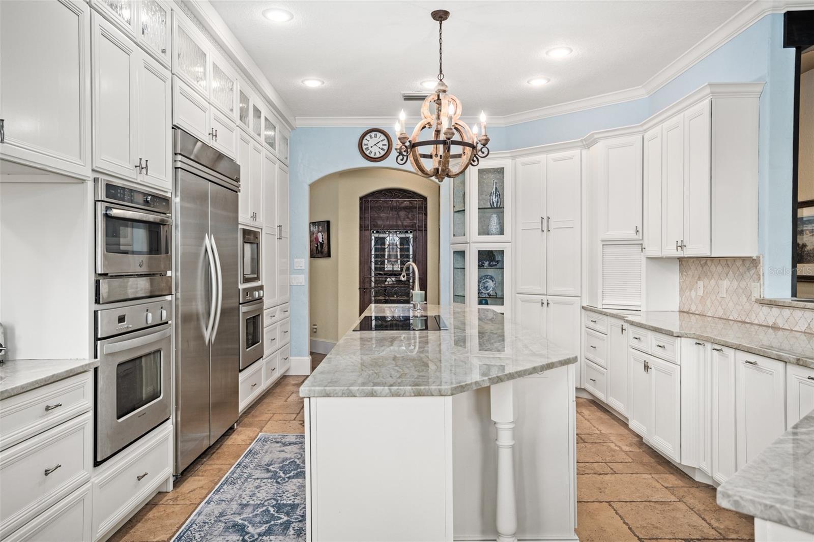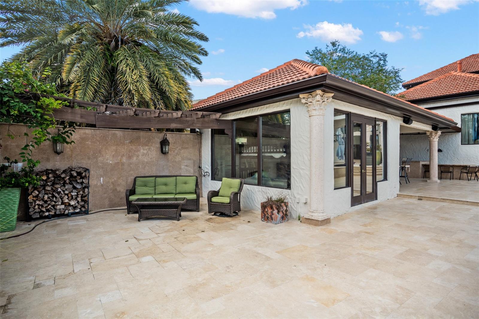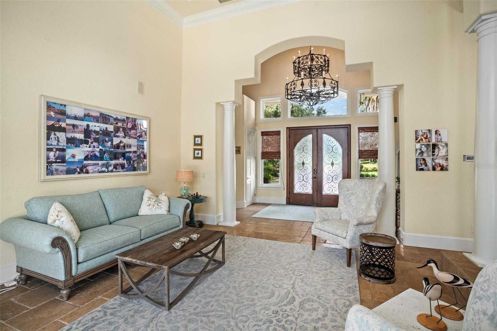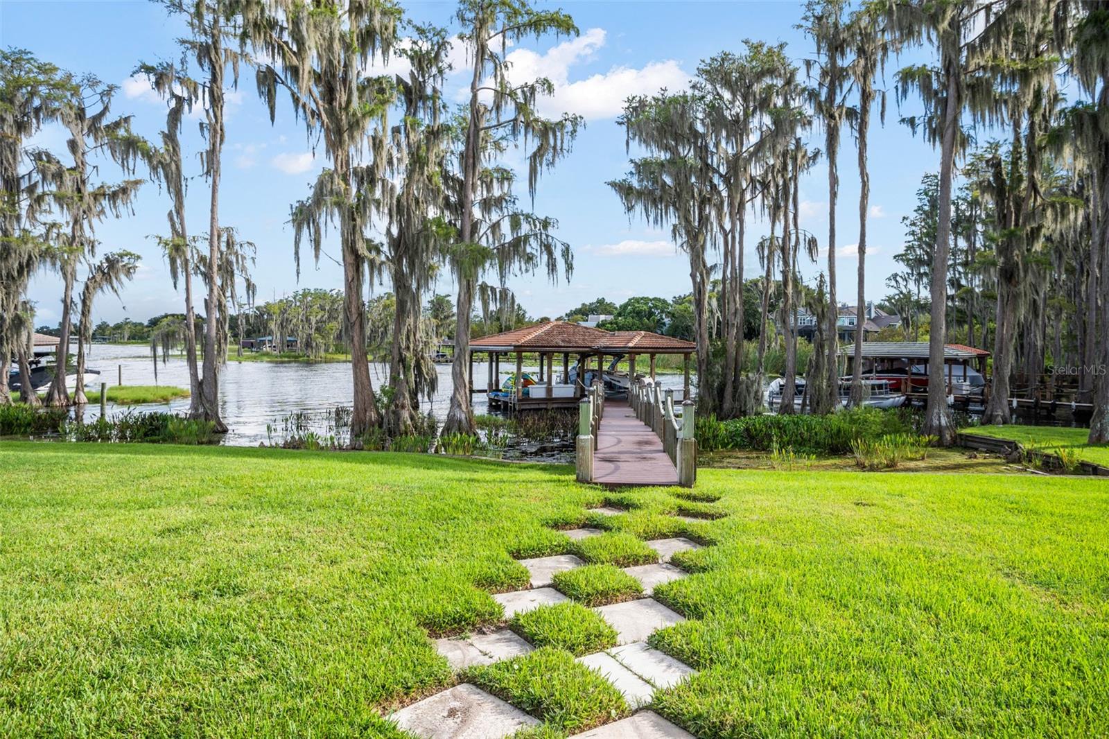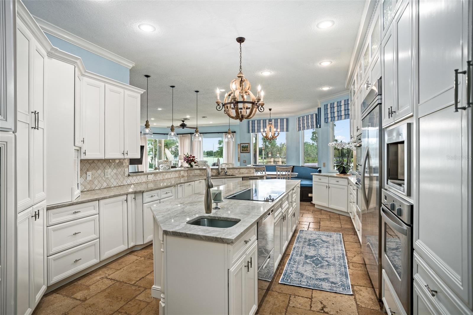 Experience the epitome of sophistication at this exquisite Park Avenue estate, cradled in a peaceful cove of Lake Butler. As you step inside, harmonious blends of transitional finesse and timeless grandeur greet you, set against the poetic panorama of Windermere's lakefront, behind the private gates of Chaine du Lac. Take advantage of updates including a refreshed kitchen and state-of-the-art appliances, newer pool deck, new boat dock, ultra-efficient air conditioning units, and whole-home generator – no detail has been overlooked. The expansive family room seamlessly merges with a kitchen and cozy breakfast nook, offering serene water vistas. Dramatic living and dining rooms with soaring ceilings and double-sided fireplace deliver luxurious space for entertaining. The first-floor primary retreat offers a sumptuous escape from the ordinary with panoramic octagonal windows and elegant French doors. Alongside, discover a private den for working from home. Opposite on the main floor is a full guest suite with sauna. Upstairs is a media room and three additional bedrooms, all ensuite. Just above the master bedroom is a second staircase leading to a game room, offering a full bar, restaurant-grade smoke filtration system, half-bath and a private balcony. An attached cabana could be a 6th bedroom or gym. Embrace resort-style living with a grand canopy-covered summer kitchen. Bask in mesmerizing sunsets, enjoy Orlando's iconic attractions, and be enchanted by nightly Disney fireworks. Unwind under an Italian-inspired pergola adorned with hanging vines, a cozy loveseat swing, and a warm fireplace. A dual-berth boat dock and pristine beachfront beckon, while a spacious 4-car garage add to the estate's unmatched amenities. This property and its commanding views stand as a true testament to the best of Windermere lakefront living.