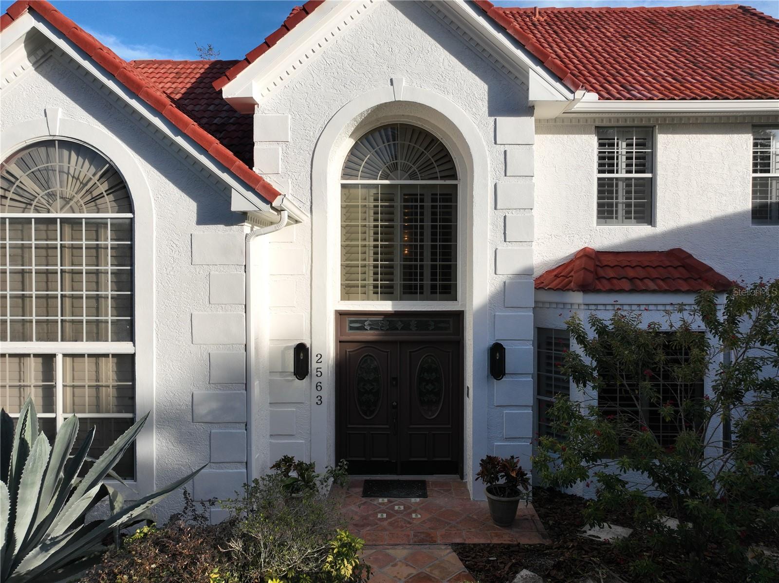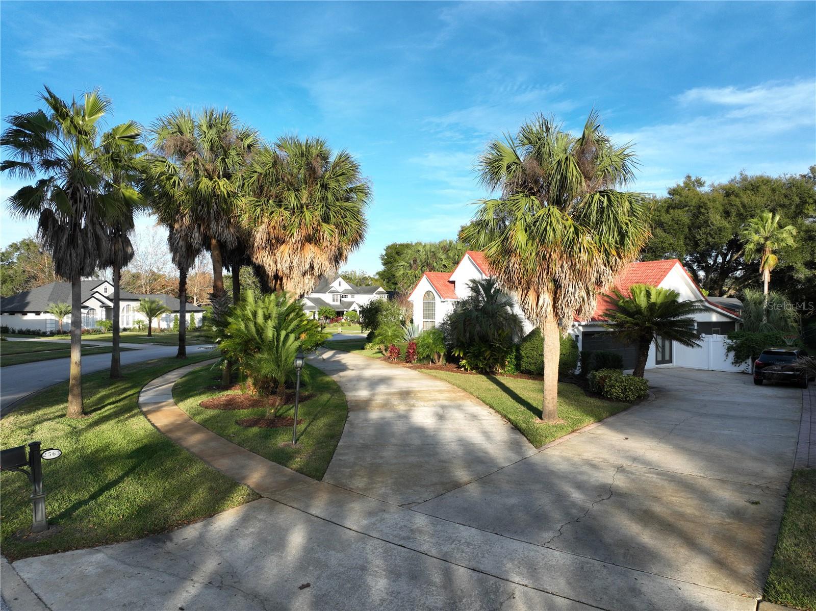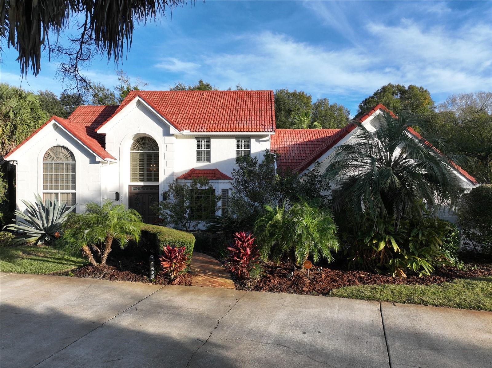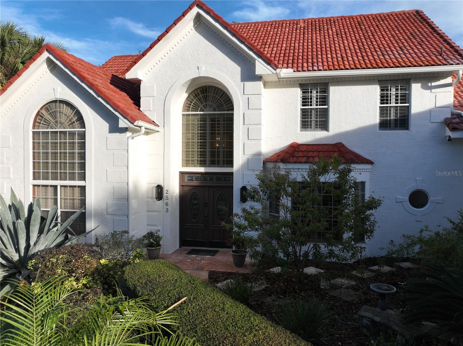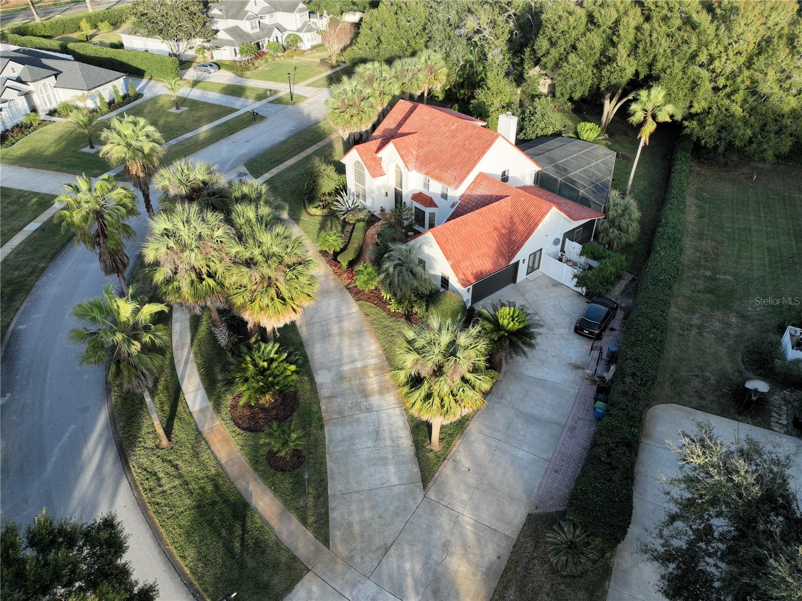 Back in the market! Stunning pool home on a spacious corner lot, just shy of three-quarters of an acre, in Windermere's sought-after Manors at Butler Bay! The home has new light fixtures, and fresh paint both inside and out. The circular, palm tree lined driveway offers a grand entrance and plenty of extra parking. The side-entry garage allows for full attention on the front facade with tile roof and fresh landscaping. The front entry with stained-glass front doors opens up to tall ceilings, an impressive staircase with mosaic tile and custom railing, along with Saltillo Adobe tile - warm and inviting! The foyer opens up to the family room which features soaring ceilings and a brick, wood-burning fireplace. The open concept family room, breakfast nook, and kitchen allows for easy entertaining. The kitchen has 42" upper cabinets, two-toned granite, hammered-copper sink, stainless steel appliances with built-in double oven and wine fridge, and a cooking island. Floor to ceiling windows overlook the relaxing outdoor space which features a large, free-form pool with tranquil water feature, paver deck, covered patio with outdoor kitchen, and expansive views of the large backyard with mature landscaping. The covered patio offers private access to the pool bath and bonus room/flex space/secondary office. The master suite is conveniently located downstairs and features tons of natural light, double sinks, soaking tub, walk-in shower, private water closet, and spacious walk-in closet. The office/study is located off of the entry for convenient access and all of your work-from-home needs! The staircase leads you to a balcony overlooking the family room along with 4 oversized bedrooms and 2 full bathrooms. This established community offers deeded access to the Butler Chain of Lakes, tennis courts and playgrounds, low HOA dues, and a quick walk or bike to town. Top rated Windermere schools and convenient access to Downtown Windermere offering shops, restaurants, local events, and farmers markets.