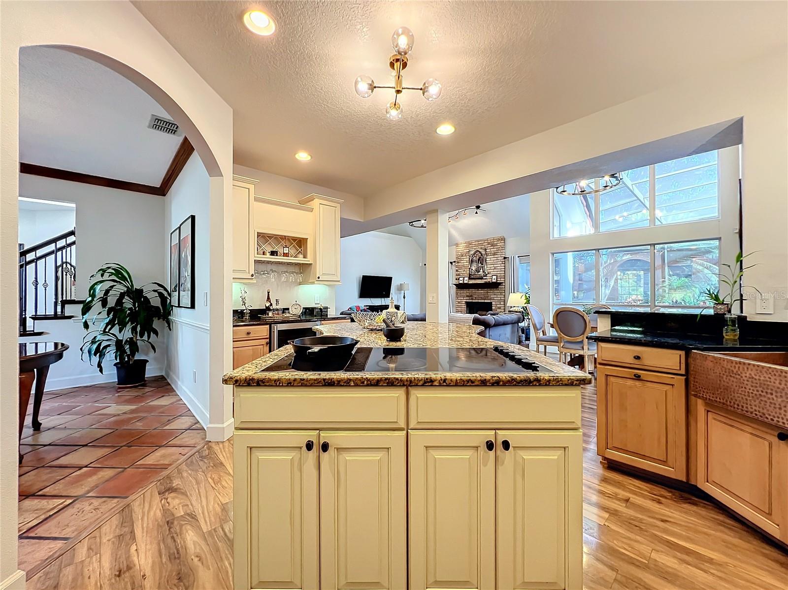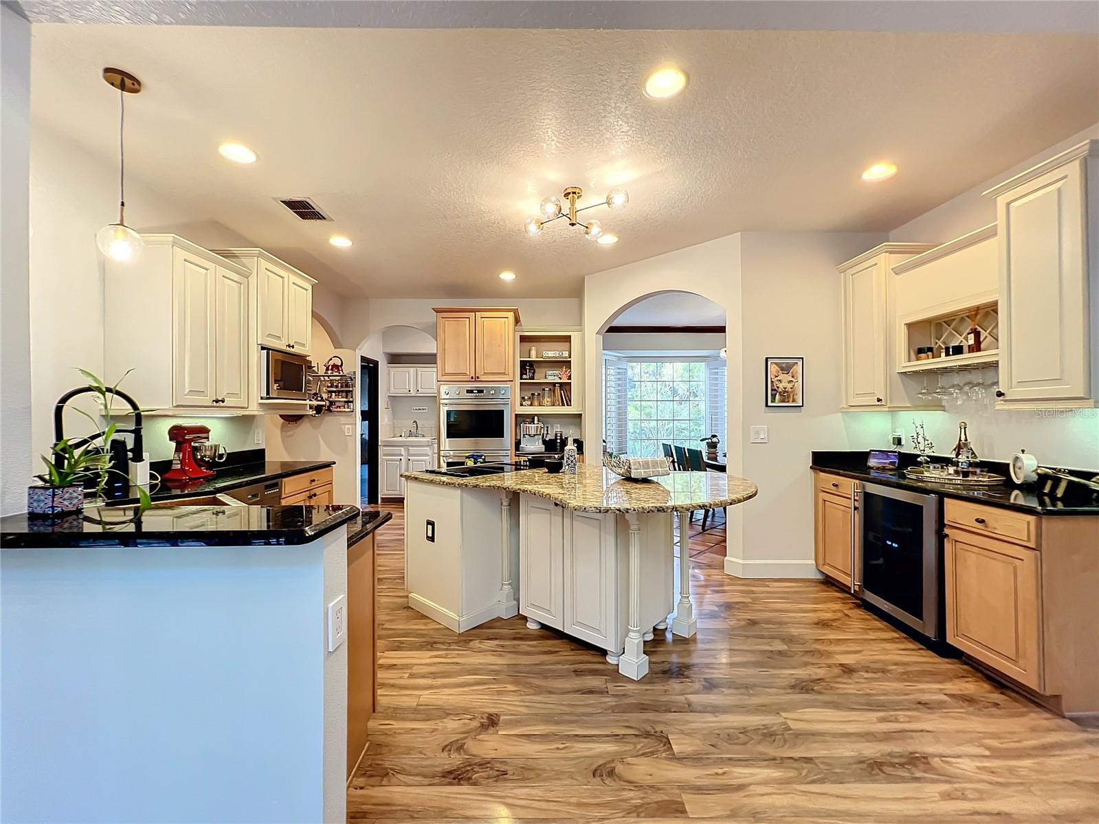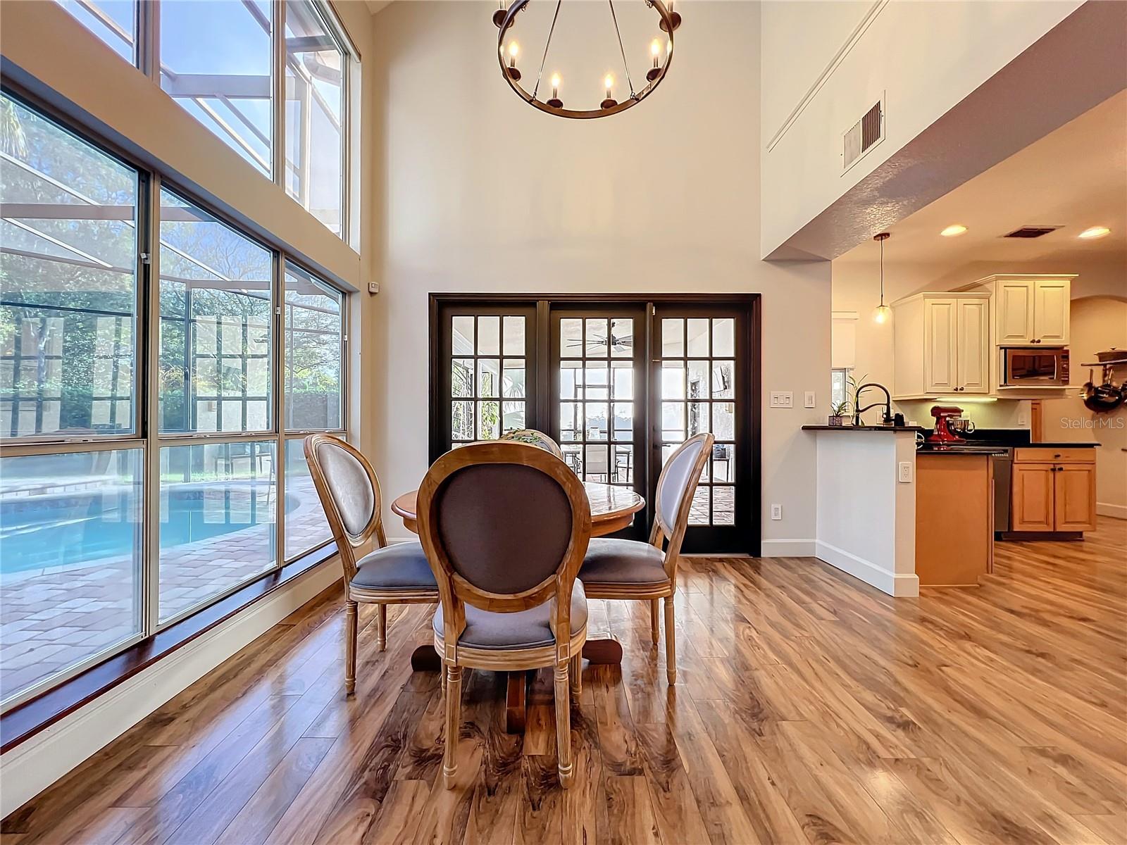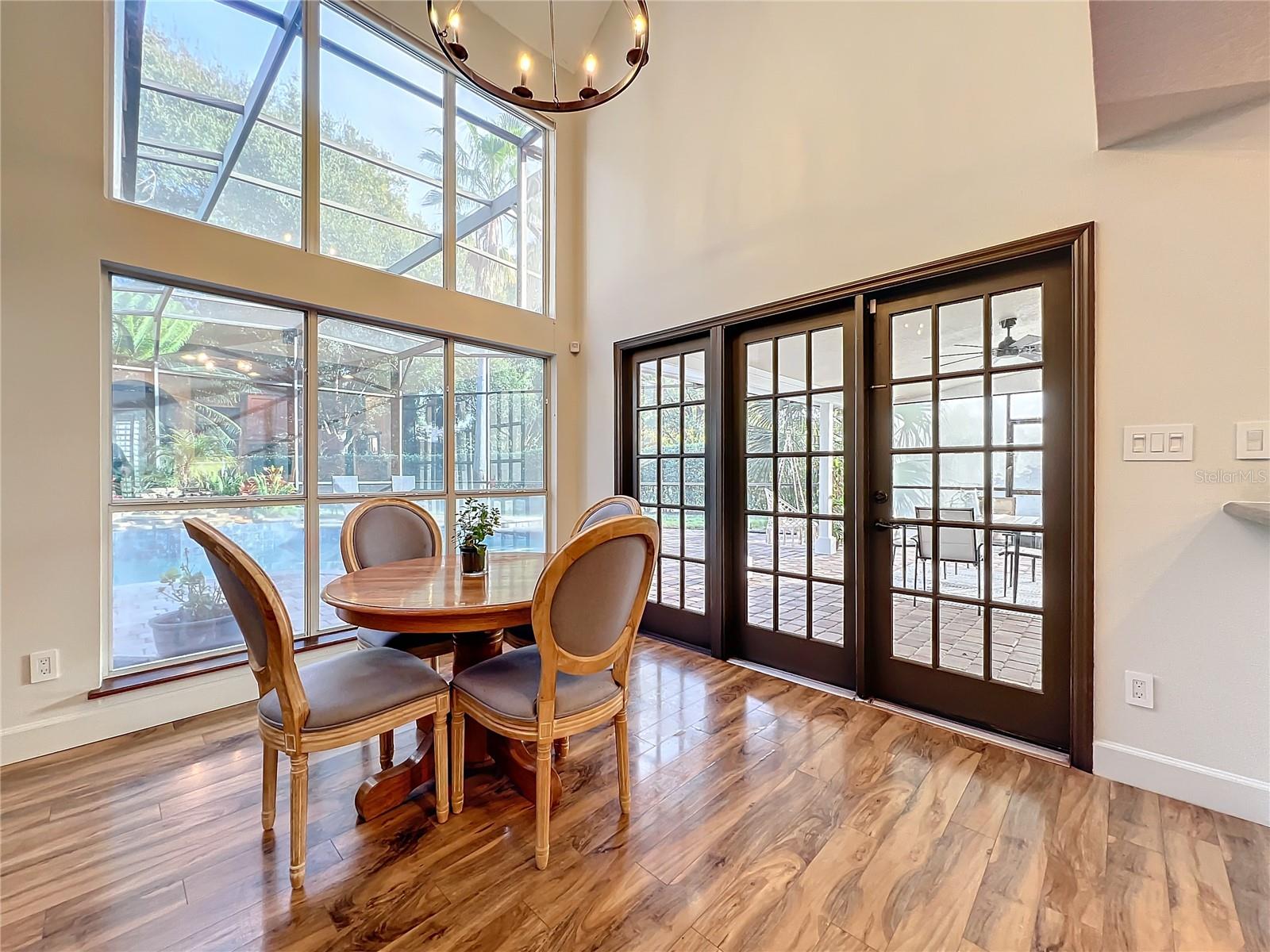 Back in the market! Stunning pool home on a spacious corner lot, just shy of three-quarters of an acre, in Windermere's sought-after Manors at Butler Bay! The home has new light fixtures, and fresh paint both inside and out. The circular, palm tree lined driveway offers a grand entrance and plenty of extra parking. The side-entry garage allows for full attention on the front facade with tile roof and fresh landscaping. The front entry with stained-glass front doors opens up to tall ceilings, an impressive staircase with mosaic tile and custom railing, along with Saltillo Adobe tile - warm and inviting! The foyer opens up to the family room which features soaring ceilings and a brick, wood-burning fireplace. The open concept family room, breakfast nook, and kitchen allows for easy entertaining. The kitchen has 42" upper cabinets, two-toned granite, hammered-copper sink, stainless steel appliances with built-in double oven and wine fridge, and a cooking island. Floor to ceiling windows overlook the relaxing outdoor space which features a large, free-form pool with tranquil water feature, paver deck, covered patio with outdoor kitchen, and expansive views of the large backyard with mature landscaping. The covered patio offers private access to the pool bath and bonus room/flex space/secondary office. The master suite is conveniently located downstairs and features tons of natural light, double sinks, soaking tub, walk-in shower, private water closet, and spacious walk-in closet. The office/study is located off of the entry for convenient access and all of your work-from-home needs! The staircase leads you to a balcony overlooking the family room along with 4 oversized bedrooms and 2 full bathrooms. This established community offers deeded access to the Butler Chain of Lakes, tennis courts and playgrounds, low HOA dues, and a quick walk or bike to town. Top rated Windermere schools and convenient access to Downtown Windermere offering shops, restaurants, local events, and farmers markets.