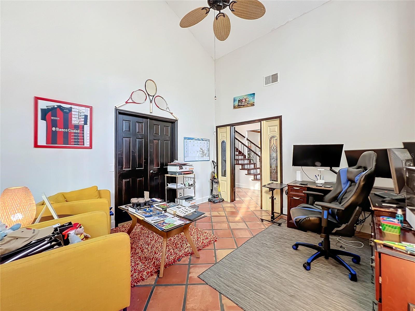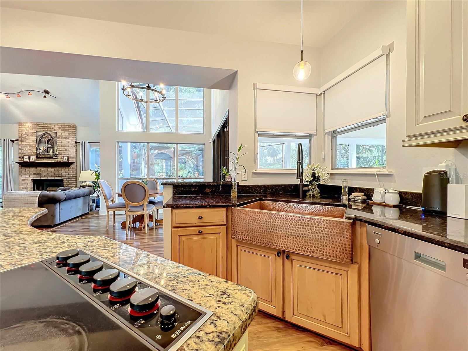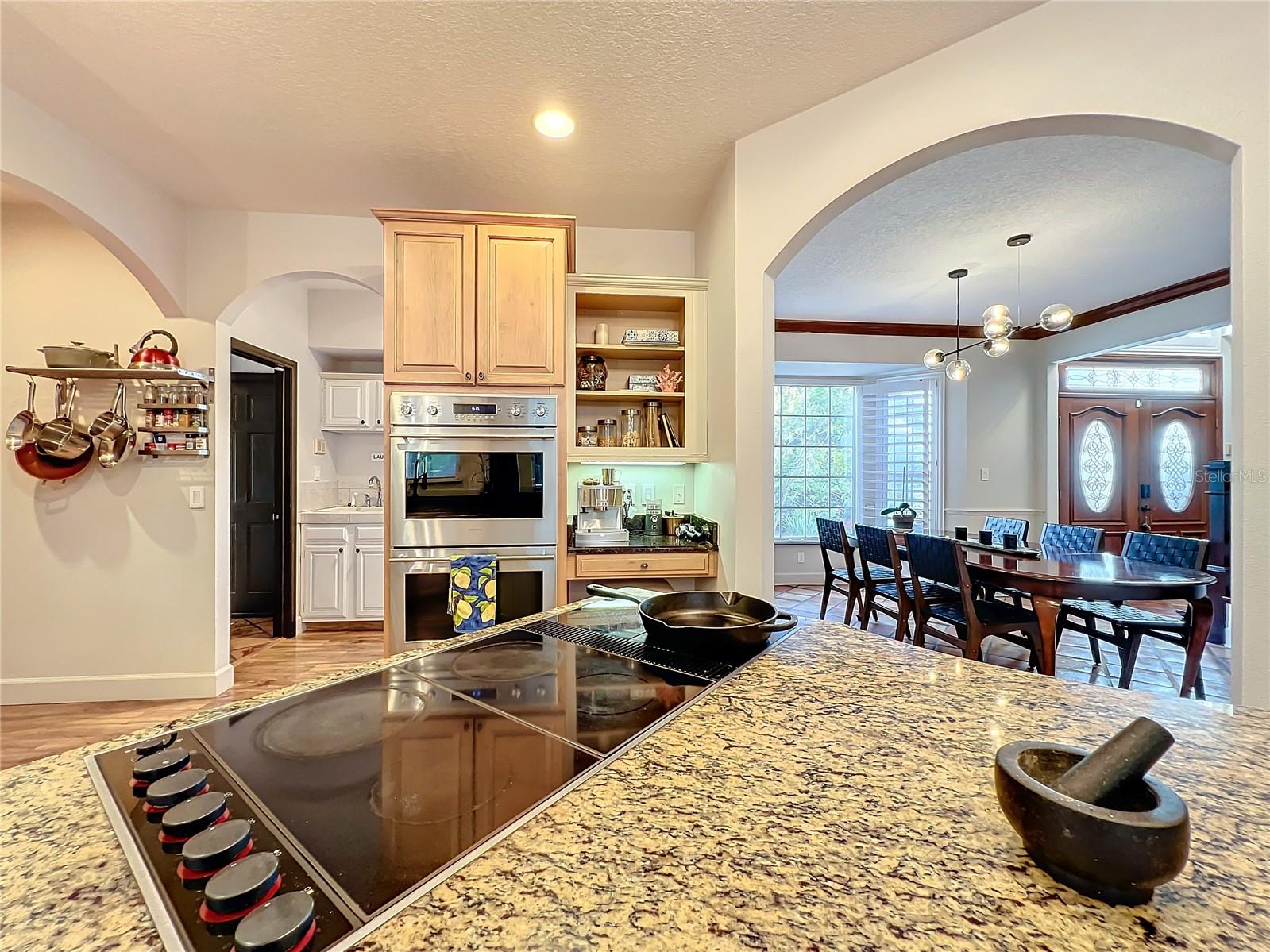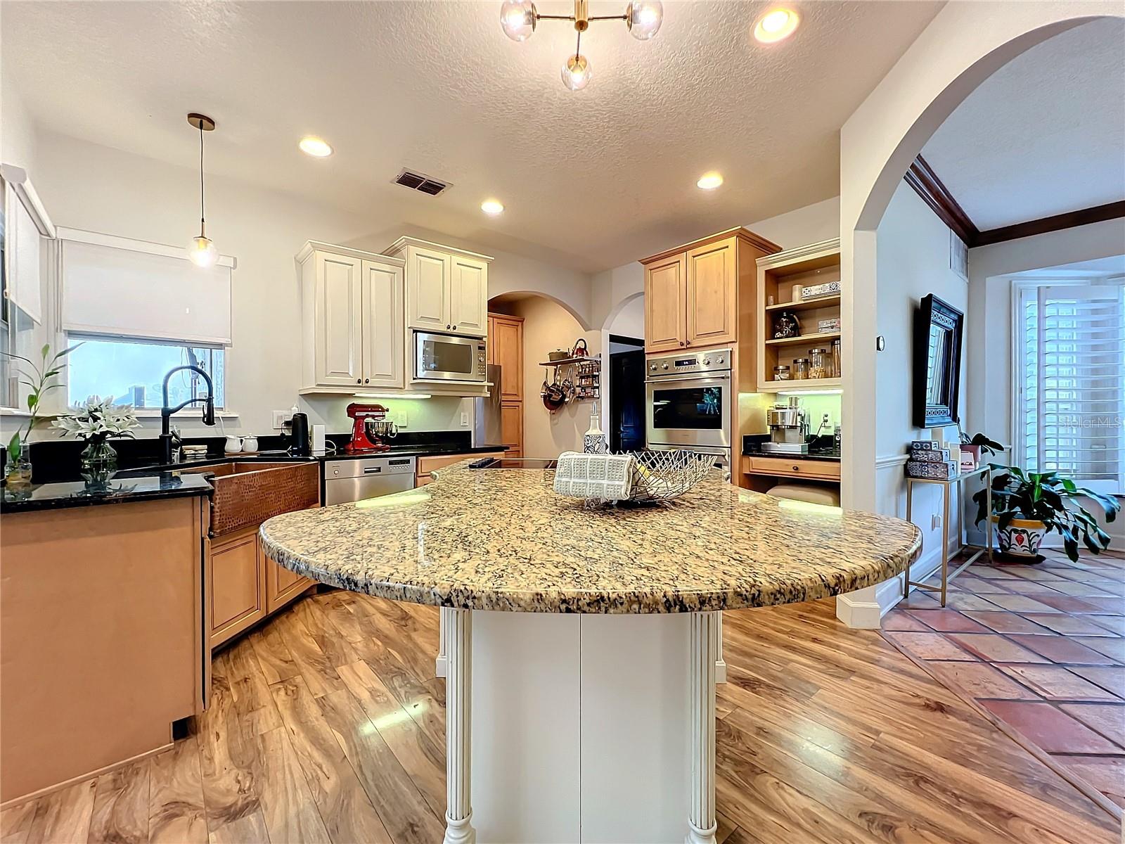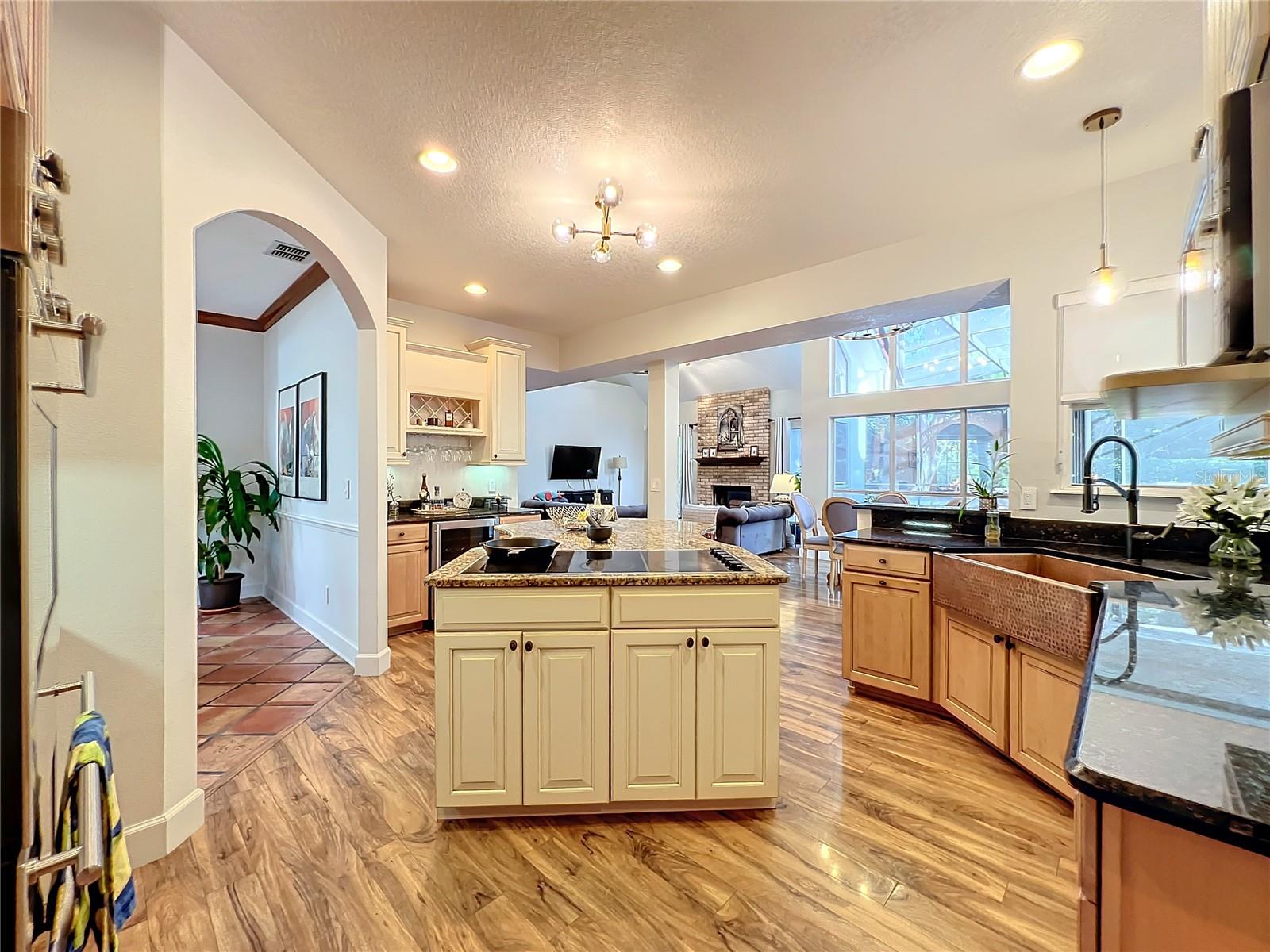 Back in the market! Stunning pool home on a spacious corner lot, just shy of three-quarters of an acre, in Windermere's sought-after Manors at Butler Bay! The home has new light fixtures, and fresh paint both inside and out. The circular, palm tree lined driveway offers a grand entrance and plenty of extra parking. The side-entry garage allows for full attention on the front facade with tile roof and fresh landscaping. The front entry with stained-glass front doors opens up to tall ceilings, an impressive staircase with mosaic tile and custom railing, along with Saltillo Adobe tile - warm and inviting! The foyer opens up to the family room which features soaring ceilings and a brick, wood-burning fireplace. The open concept family room, breakfast nook, and kitchen allows for easy entertaining. The kitchen has 42" upper cabinets, two-toned granite, hammered-copper sink, stainless steel appliances with built-in double oven and wine fridge, and a cooking island. Floor to ceiling windows overlook the relaxing outdoor space which features a large, free-form pool with tranquil water feature, paver deck, covered patio with outdoor kitchen, and expansive views of the large backyard with mature landscaping. The covered patio offers private access to the pool bath and bonus room/flex space/secondary office. The master suite is conveniently located downstairs and features tons of natural light, double sinks, soaking tub, walk-in shower, private water closet, and spacious walk-in closet. The office/study is located off of the entry for convenient access and all of your work-from-home needs! The staircase leads you to a balcony overlooking the family room along with 4 oversized bedrooms and 2 full bathrooms. This established community offers deeded access to the Butler Chain of Lakes, tennis courts and playgrounds, low HOA dues, and a quick walk or bike to town. Top rated Windermere schools and convenient access to Downtown Windermere offering shops, restaurants, local events, and farmers markets.