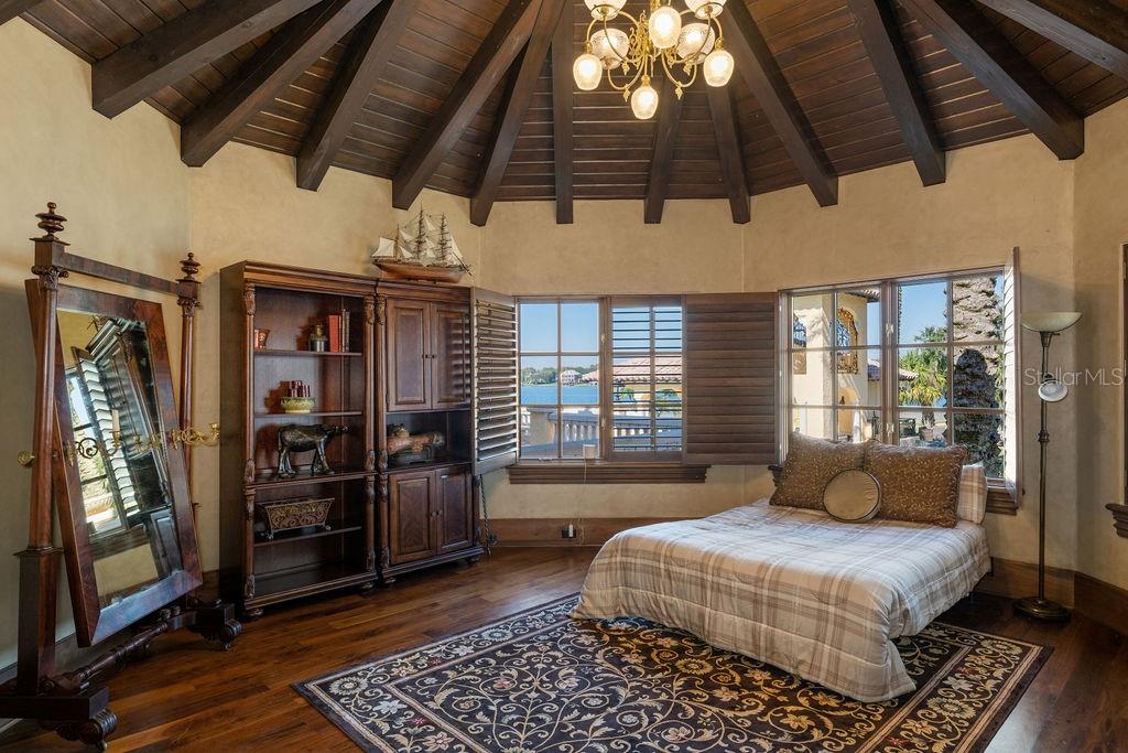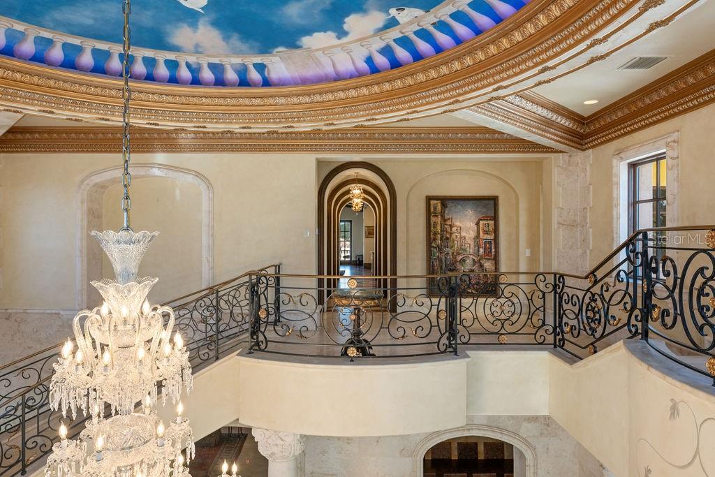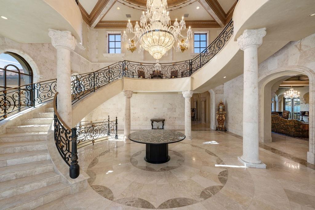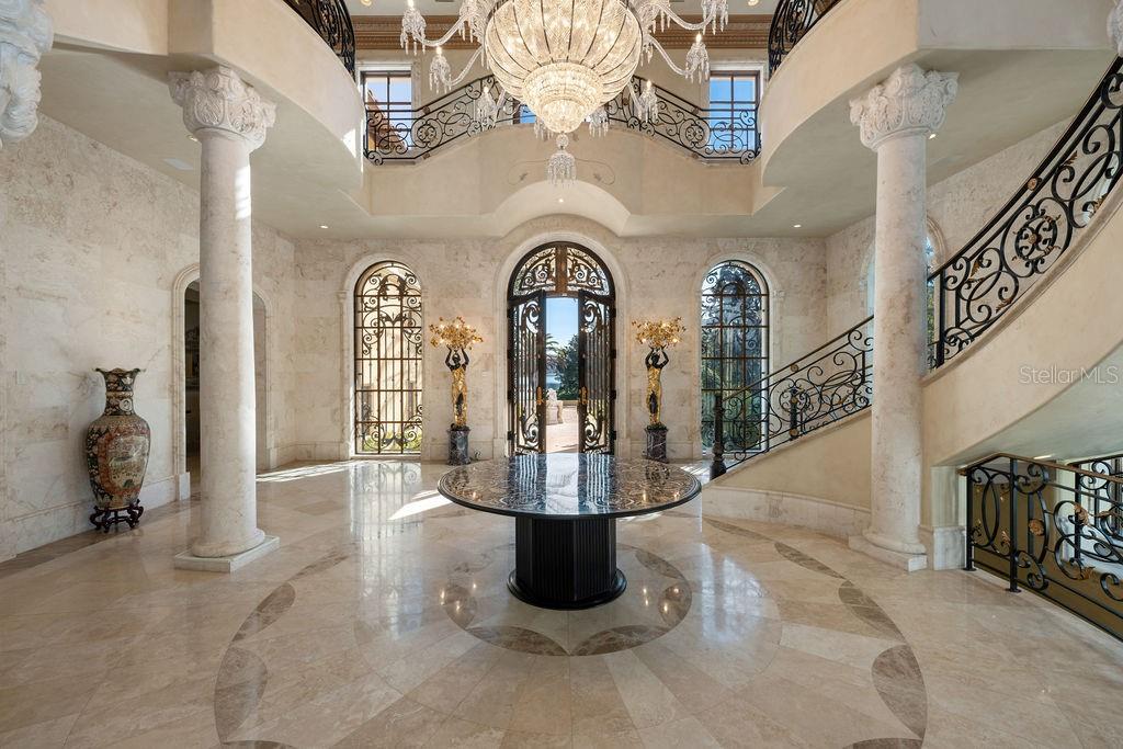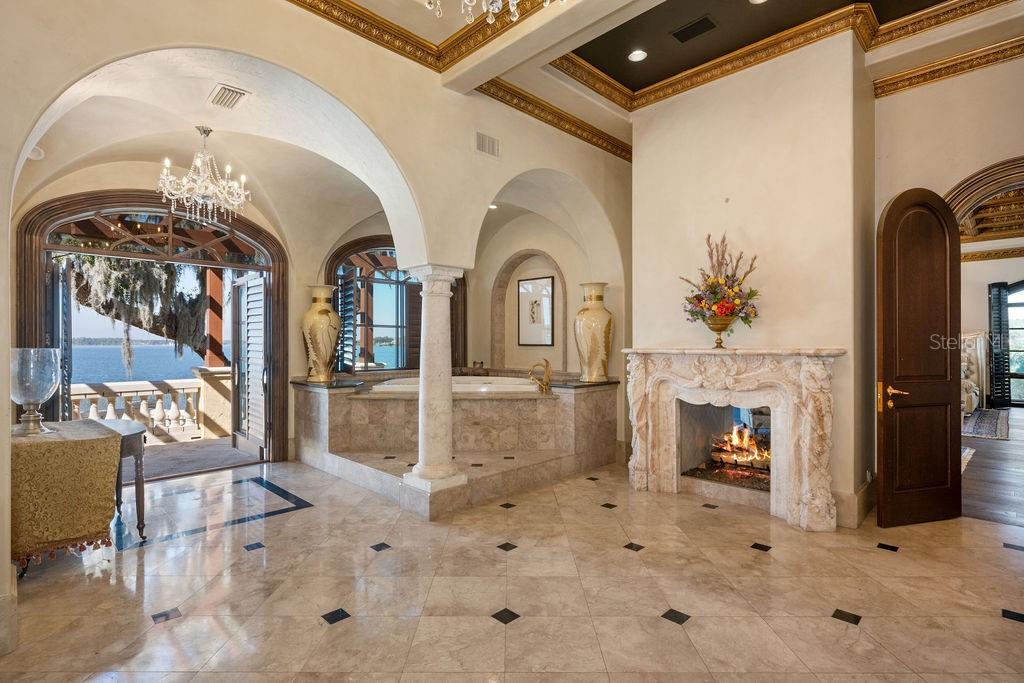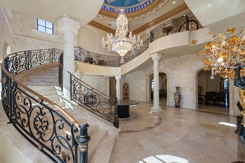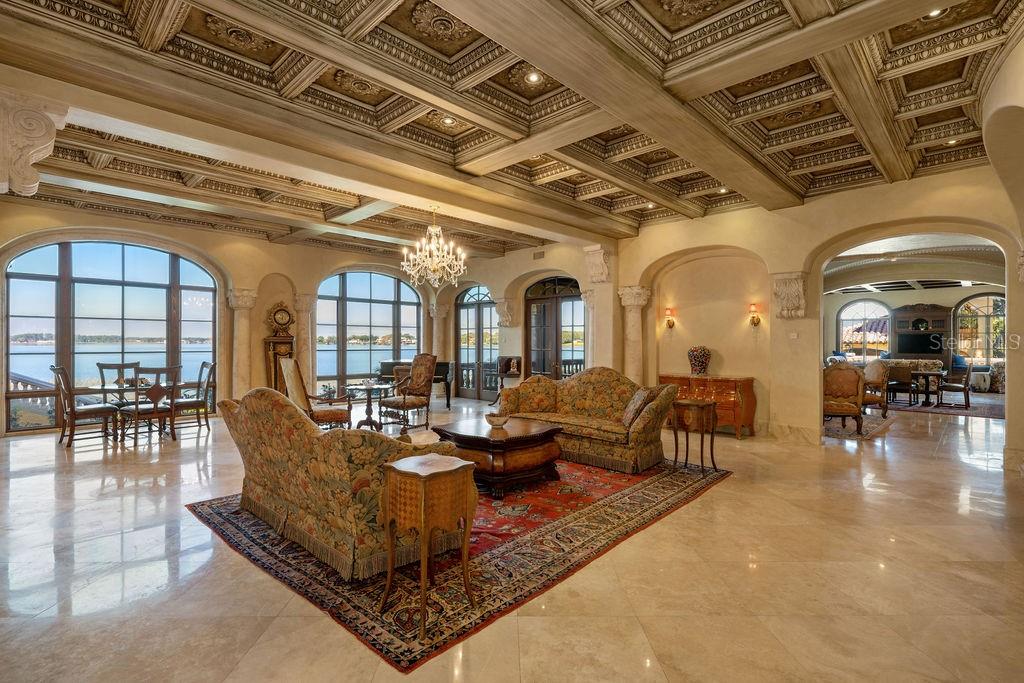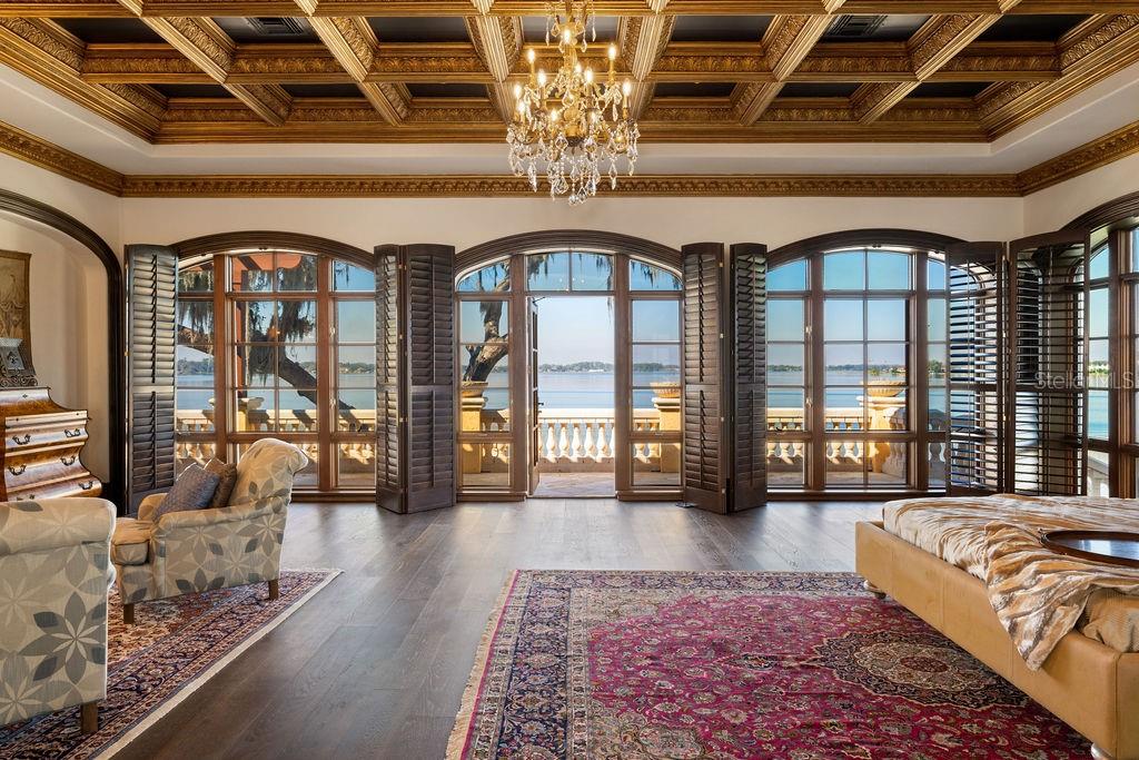 Nestled along almost 1,000’ of the highly sought after Butler Chain of Lakes in Windermere, this exquisite Mediterranean estate beckons with unrivaled opulence. Beyond a private gate, a 2-acre peninsula reveals a masterpiece of architectural brilliance designed by Nasrallah and built by Ray Coudriet. The grand entry sets the tone, with a majestic staircase, a 25+ft hand-painted rotunda ceiling, and a stunning 10-ft Waterford chandelier. Every inch of this residence exudes sophistication, from the marble floors and corbels to the intricately carved fireplace mantels or even the ornate door hinges. Boasting 5 spacious bedroom suites, four with outdoor walk-outs, in the main home, complemented by a separate guest/staff apartment, this estate offers flexibility and privacy. A resort-style pool, cabana, along with a boathouse, dock and paver paths meandering through the property, create an outdoor haven for entertaining and relaxation. The guest quarters or a private office that takes in views from 3 sides. Architectural marvels abound, with handcrafted coffered ceilings, exposed wood beams, and a gourmet kitchen featuring a red brick barreled ceiling and appliances by Wolf and Sub-Zero. Hosting events is effortless with a separate full caterer's kitchen. The primary suite offers serene panoramic water views, complemented by an extraordinary dressing room and bathroom. For wine connoisseurs, a climate-controlled 3,000+ bottle wine cellar awaits. Verandas and terraces afford fresco dining, bar area and sweeping views, enhancing the outdoor experience. Work in the masterful office with birds’ eye 180-degree water views or step into the game room for a game of pool or a sunset view off the balcony. A large travertine parking area for events and a 4-car garage adds practicality to this extraordinary property. This masterpiece transcends the ordinary, offering a lifestyle of unparalleled luxury and sophistication. Seize the opportunity to make this stunning estate your own.