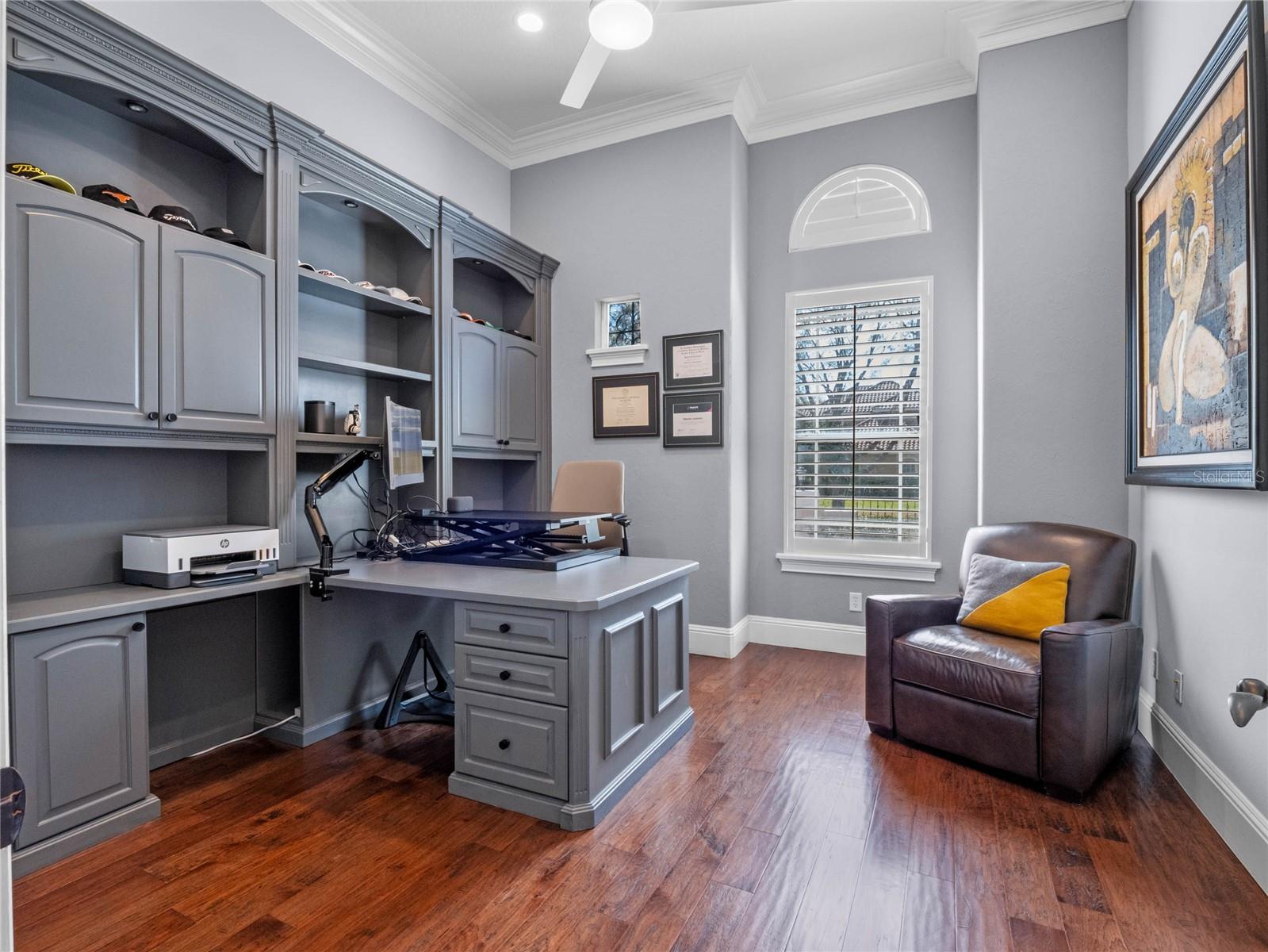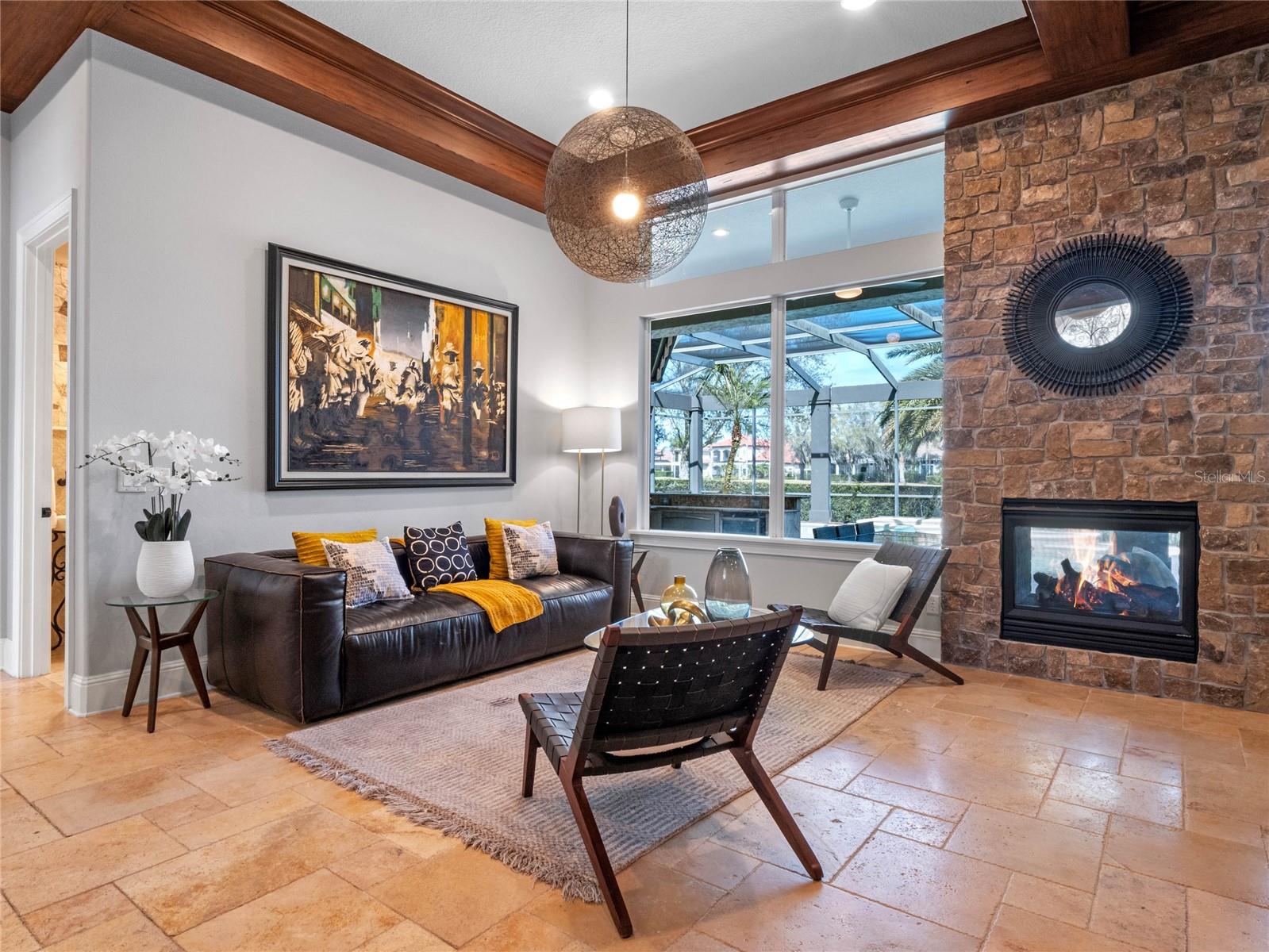 Offering amazing water views and overlooking the 4th fairway of the popular Jack Nicklaus designed golf course at the Golden Bear Club! A CUSTOM BUILT stunning home that offers an incredible floor plan coupled with a long list of recent improvements! Updated with modern transitional design in mind, this OPEN and airy concept features 5 bedrooms, 5 full bathrooms, 2 separate PRIVATE OFFICE SPACES, a deluxe ***Movie Theatre Room*** and a HUGE BONUS ROOM that would also make a great IN-LAW SUITE !!The over-sized 3 Car Garage also offers ***3 ELECTRIC CAR CHARGING STATIONS***, built-ins and an epoxy coated garage floor. Spanning over 5,000 square feet, and featuring 12 foot ceilings on the main level, each space is ample in size and is light and bright. Distinctive elements give this home character and elegance at the same time. With wood beams in the living, dining and kitchen areas, an indoor / outdoor gas fireplace, custom light fixtures, travertine and wood flooring throughout make this home comfortable and exceptional all in one! There are custom cabinets, custom built-ins and custom trim work that add to the uniqueness of this property. Outside, enjoy true Florida living and indulge in the SALT WATER HEATED POOL AND SPA, the Summer Kitchen with BBQ NATURAL GAS GRILL, Professional Grade Hood, Sink, Beverage Refrigerator and Warming Drawer. There is plenty of space to entertain or enjoy the day with family both inside and out! Conveniently located in Windermere, Keene’s Pointe provides residents access to a boat ramp & dock directly to Lake Burden. With separate membership, you may join the Golden Bear Club and enjoy all of its amazing amenities including the Olympic size pool, tennis courts, restaurant, work-out room, pro shop and golf. There are two 24/7 manned gates that provide easy access to Downtown Windermere, Winter Garden and Dr. Phillips with Sand Lake Roads “Restaurant Row” and what is considered to be some of the best schools in the district. You can be to Disney and all of the theme parks in minutes or catch a flight out of Orlando International Airport. Call today for a private tour!
