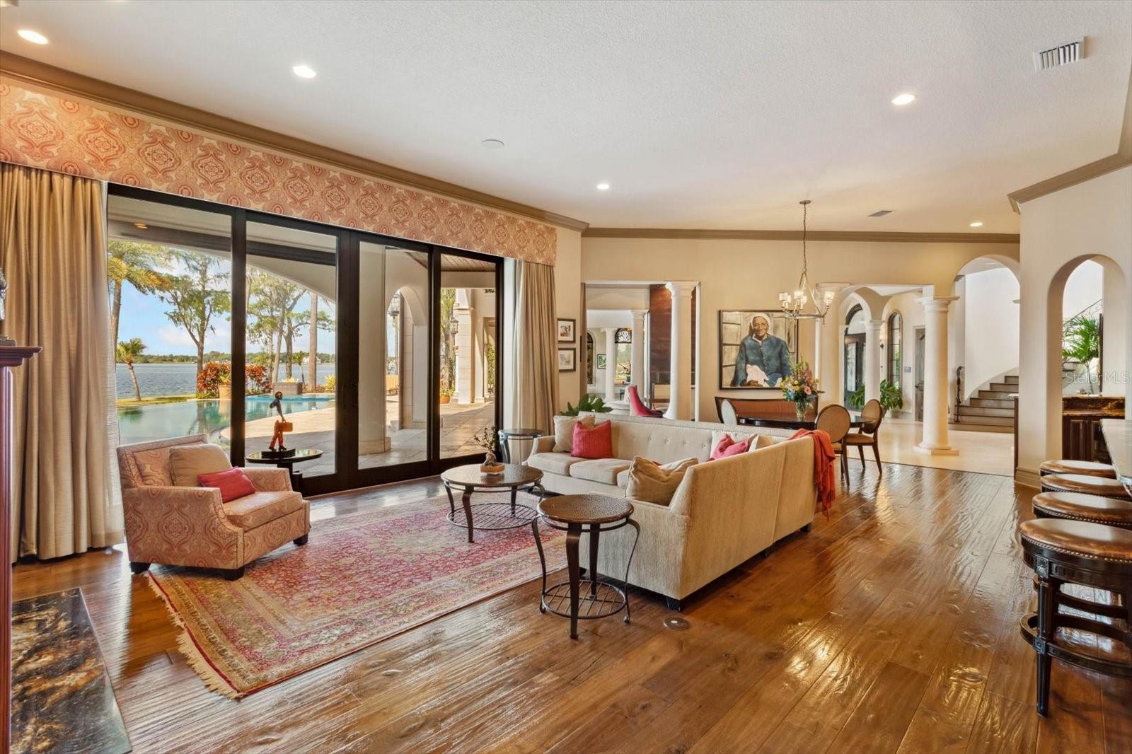 Welcome to your own slice of paradise in Florida! Nestled on 4.743 acres of pristine land, this one-of-a-kind family compound offers unparalleled luxury and breathtaking views of Lake Butler on the Butler Chain of Lakes. With over 700 ft of lake frontage, sandy beaches, boat ramps, and docks, this estate is truly a waterfront oasis. The family compound consists of two exquisite residences. The primary residence, located at 11900 Lake Butler Boulevard, boasts 11,253 sq ft of living space with 6 bedrooms and 6 bathrooms, providing ample room for relaxation and entertainment. This residence also features an attached guest house for added convenience and comfort. The second residence, situated at 11910 Lake Butler Boulevard, features two separate two-bedroom homes with patios and balconies overlooking the lush tropical gardens. Each home includes its own gourmet kitchen and summer kitchen. The residence is also equipped with an elevator, ensuring easy access to all levels and adding an extra touch of luxury. Indulge in the ultimate luxury with amenities such as a private theatre, gym, steam room, and sauna. Pamper yourself in the salon, or challenge friends to a game in the spacious game room. The summer kitchen, outfitted with top-of-the-line appliances, is perfect for outdoor entertaining with views of both sunrise and sunset over the lake. For the culinary enthusiast, the gourmet kitchen boasts a large walk-in pantry and is equipped with everything you need to create culinary masterpieces. After dinner, retreat to the large wine cellar, complete with its own ducted cooling system, to savor your favorite vintages. Outside, the meticulously landscaped grounds frame the spectacular views, creating a serene and tranquil atmosphere. Relax on the patio, take a dip in the pool, or stroll down to the sandy beach for a day of fun in the sun. One of the standout features of this property is the private moat and drawbridge, leading to your own dock and boat ramp. This unique element adds an extra layer of exclusivity and charm to the estate. This property also includes an additional parcel of land that encompasses the second residence, providing even more space and privacy for you and your guests. Don't miss this opportunity to own a piece of paradise in Florida. With its incredible detail and craftsmanship, unmatched amenities, and prime location on the Butler Chain of Lakes, this family compound is truly a once-in-a-lifetime opportunity. Schedule your private showing today and start living the life of luxury you deserve.