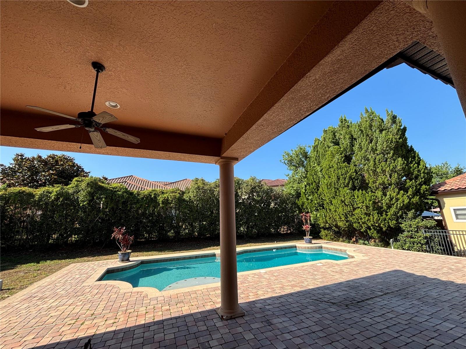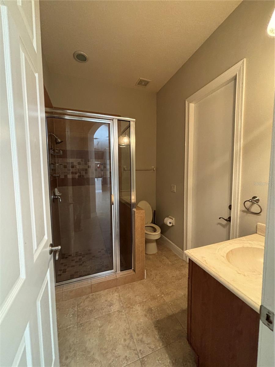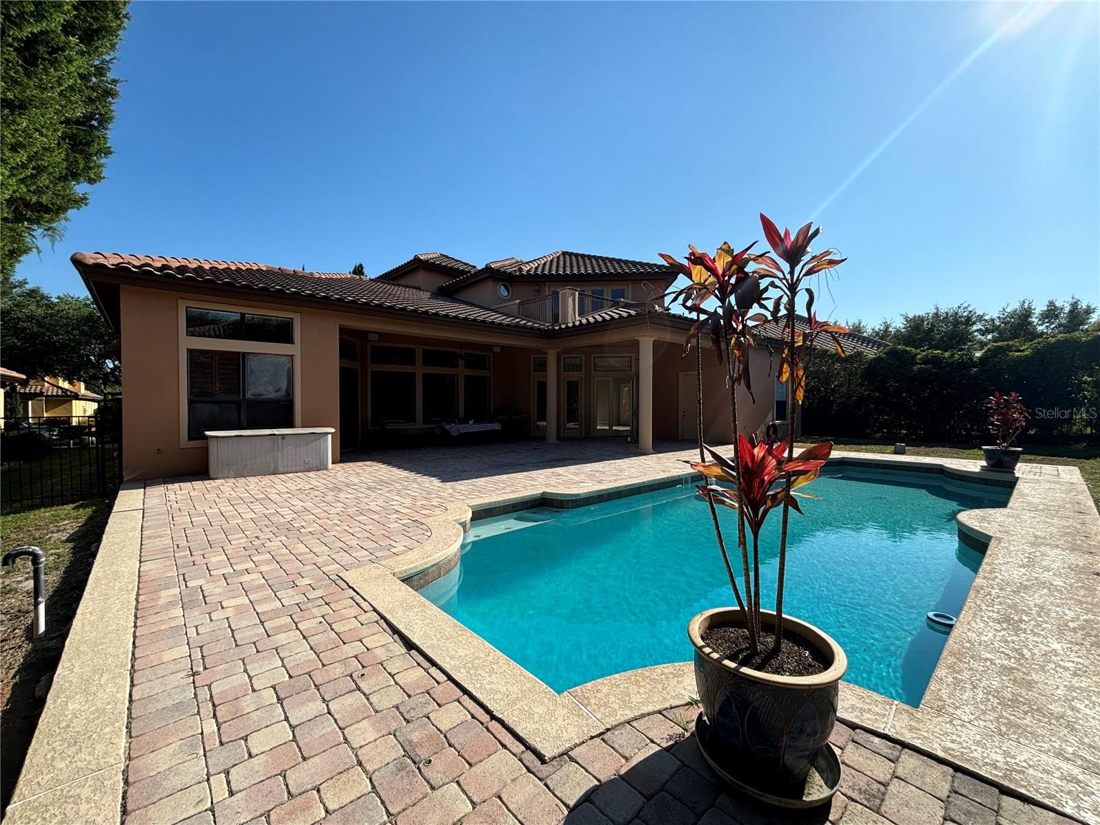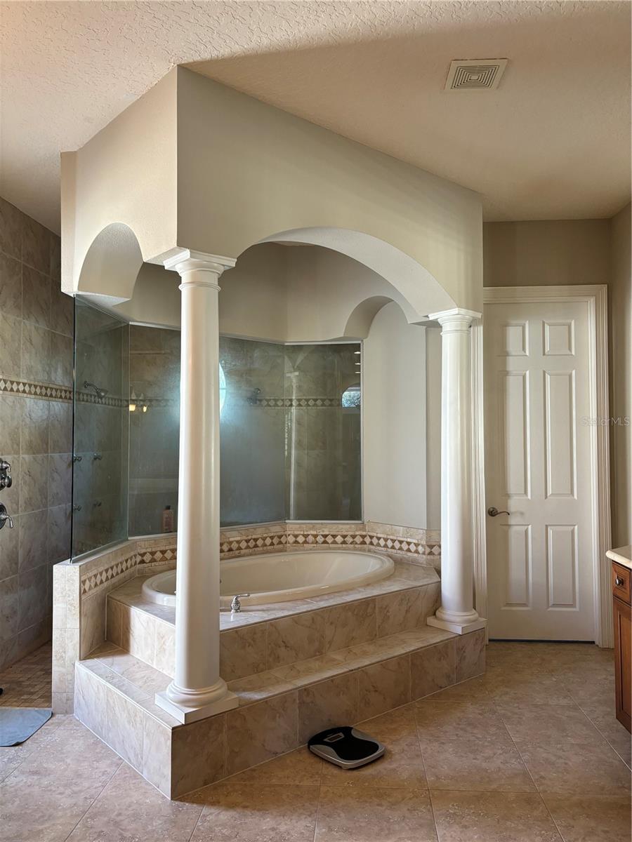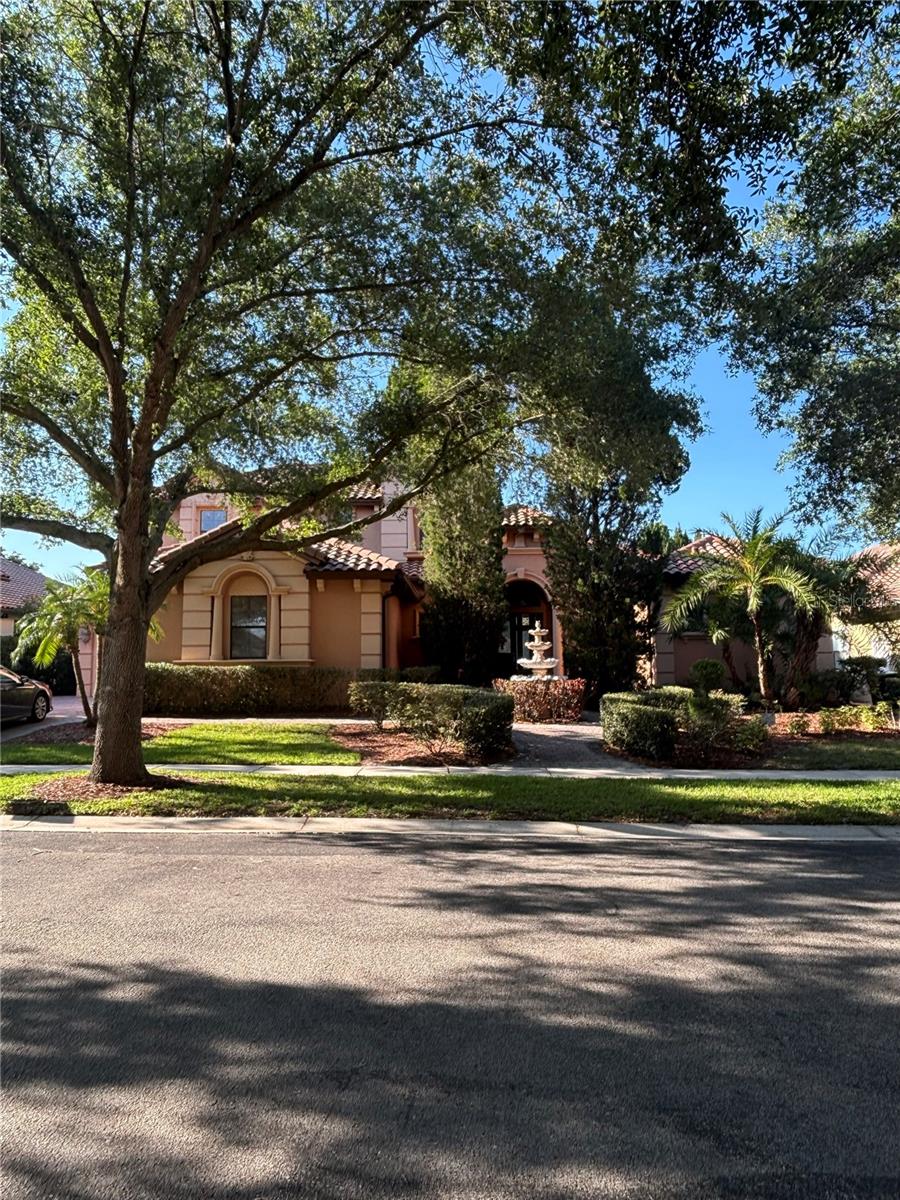 A MUST SEE MEDITERRANEAN POOL HOME IN TUSCANY RIDGE GATED COMMUNITY. This 5 bedroom 4.5 bath home has many features which include a tiled roof, brick paved driveway, water fountain, beautiful plush landscaping and a 3 CAR GARAGE. Grand entrance into this gorgeous home with OFFICE, downstairs guess room, centrally located gourmet kitchen is highlighted with 42” Maple cabinets with crown molding, granite countertops, 5 burner gas cooktop, breakfast bar, butler pantry station with wet bar, wine refrigerator, stainless steel appliances, and diagonal tiled backsplash with glass accent squares. The kitchen overlooks the family room that features a gas fireplace, surround sound speakers, and is covered with 18” porcelain tile with a breathtaking POOL view. Walk through double doors to enter the enormous downstairs owner’s retreat has an amazing pool view and features double tray ceilings with crown molding, designer ceiling fans, dual double entry walk-in closets with organizers, changing mirror, jacuzzi tub, enormous frameless shower tiled to the ceiling, his and her cultured marble countertops, and framed ceiling height mirrors with embedded decorative light fixtures. Walk out French glass doors from the family room or sliding glass doors from the master bedroom to enjoy outdoor Florida living by the large refreshing pool area with covered lanai with brick pavers, pre-wired for summer kitchen overlooking your tropical fenced oasis that is perfect for rest and relaxation. Recessed lighting, pillar accents, crown molding, French doors, chair railing, coffered ceilings, circular tray ceiling, plantation shutters, blinds, double oven range, 18” porcelain tile, built-in book shelve, pendant lights, glassed show cabinets, and embedded TV display in mirror provide the touches of elegance. The upstairs features 3 bedrooms, 2 bathrooms with 1 jack and jill bathroom, loft, balcony, and built-in desk station. The laundry corridor is highlighted with storage cabinets and a washing sink. TUSCANY RIDGE is a gated community that features a playground and tennis courts and is in a great location with easy access to HWY 408, 429, and FL Turnpike and is not too far from high-in restaurants, shops, golf courses, and all theme park attractions.